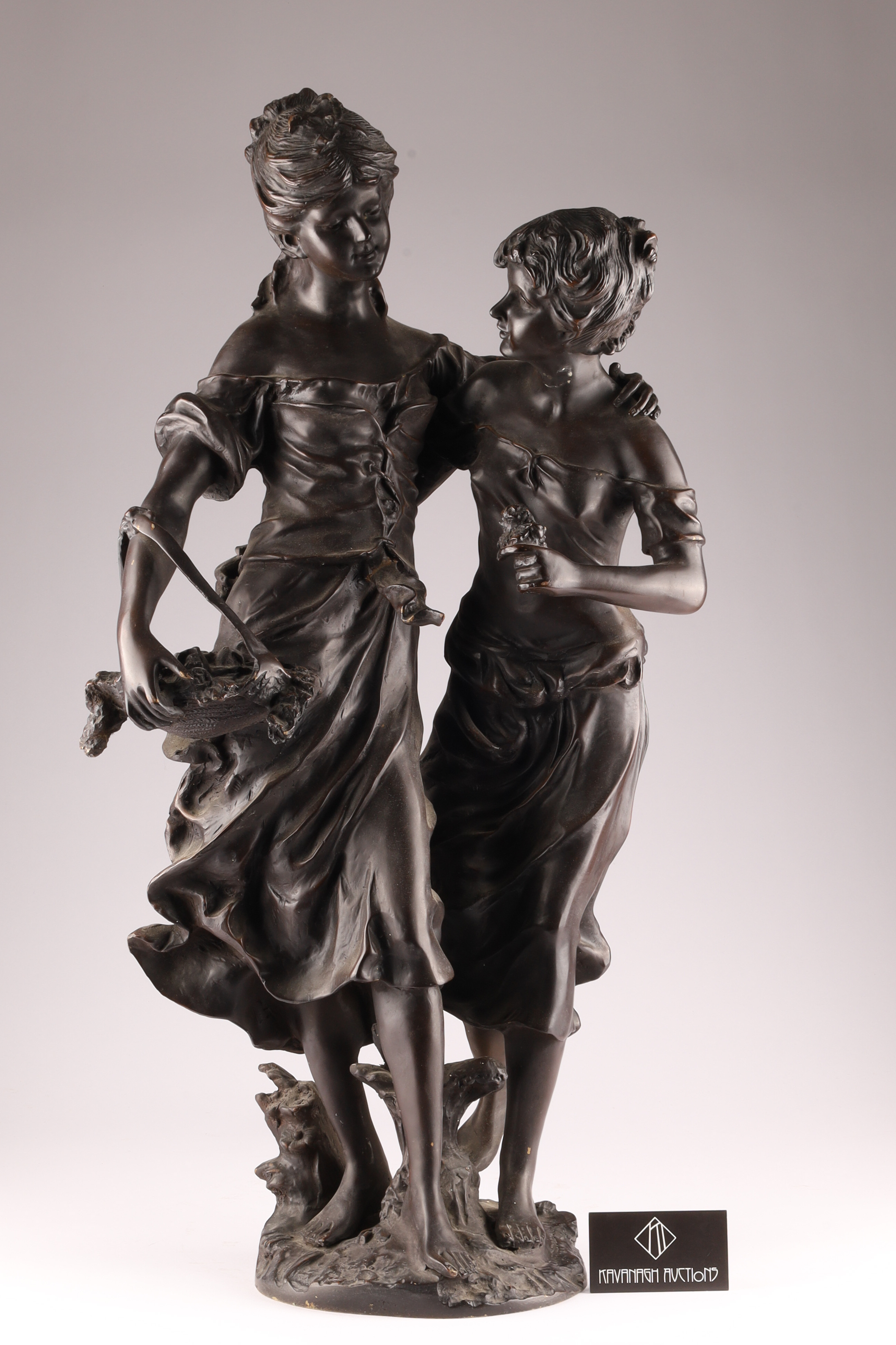 Large Bronze Group of Two Children, c. 1900