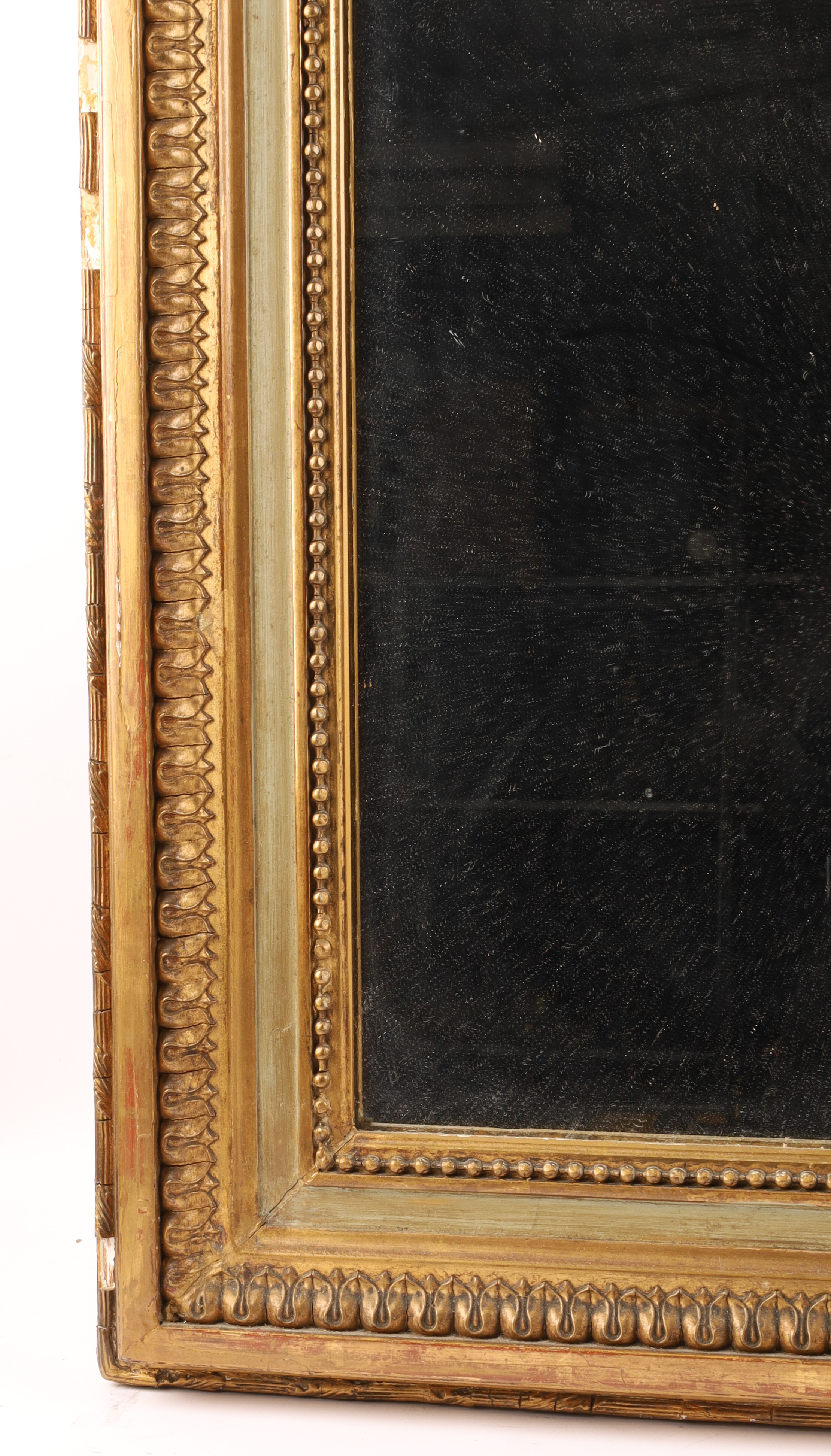 19th C French Napoleon III Gilt Overmantle Mirror with Celadon Trim