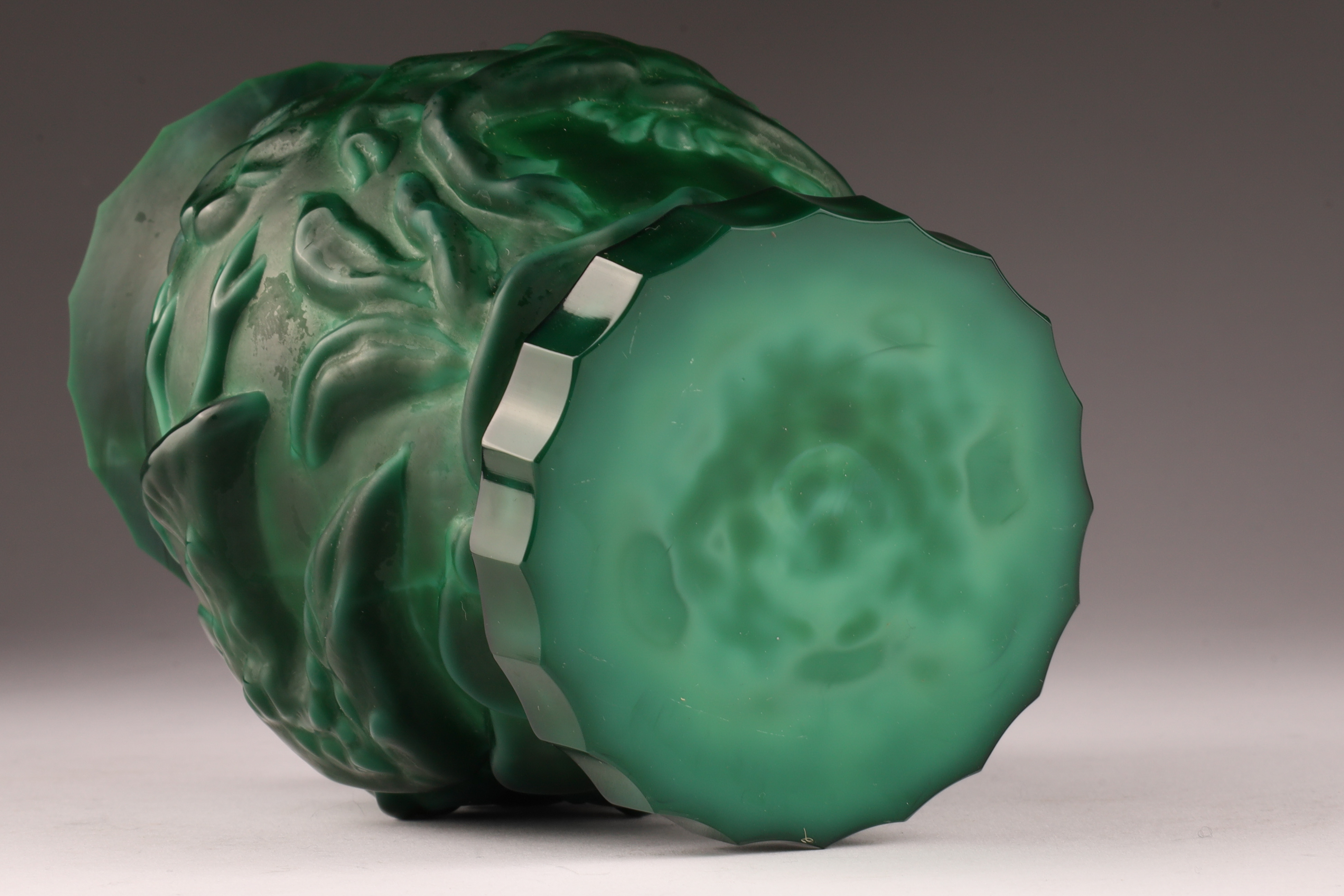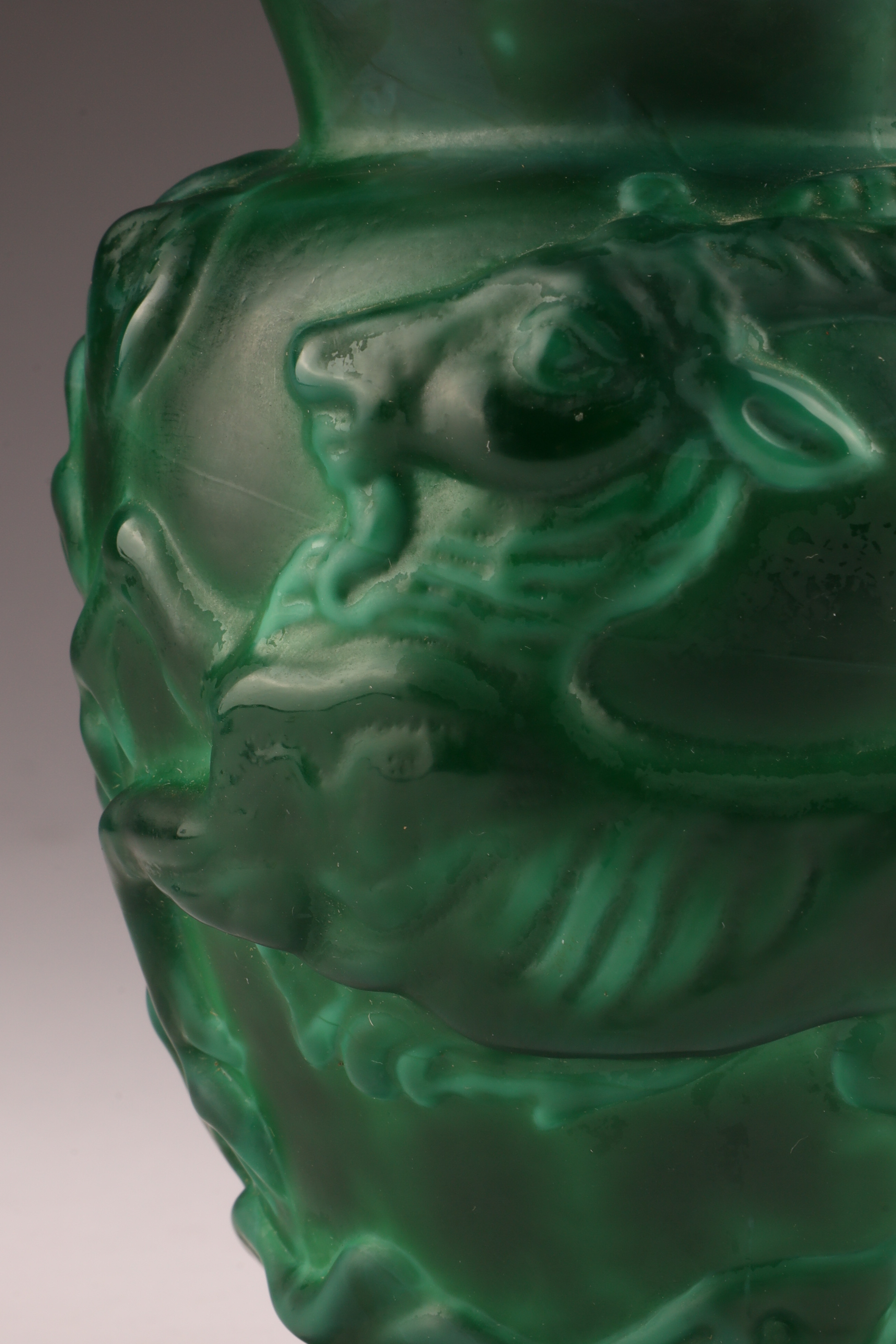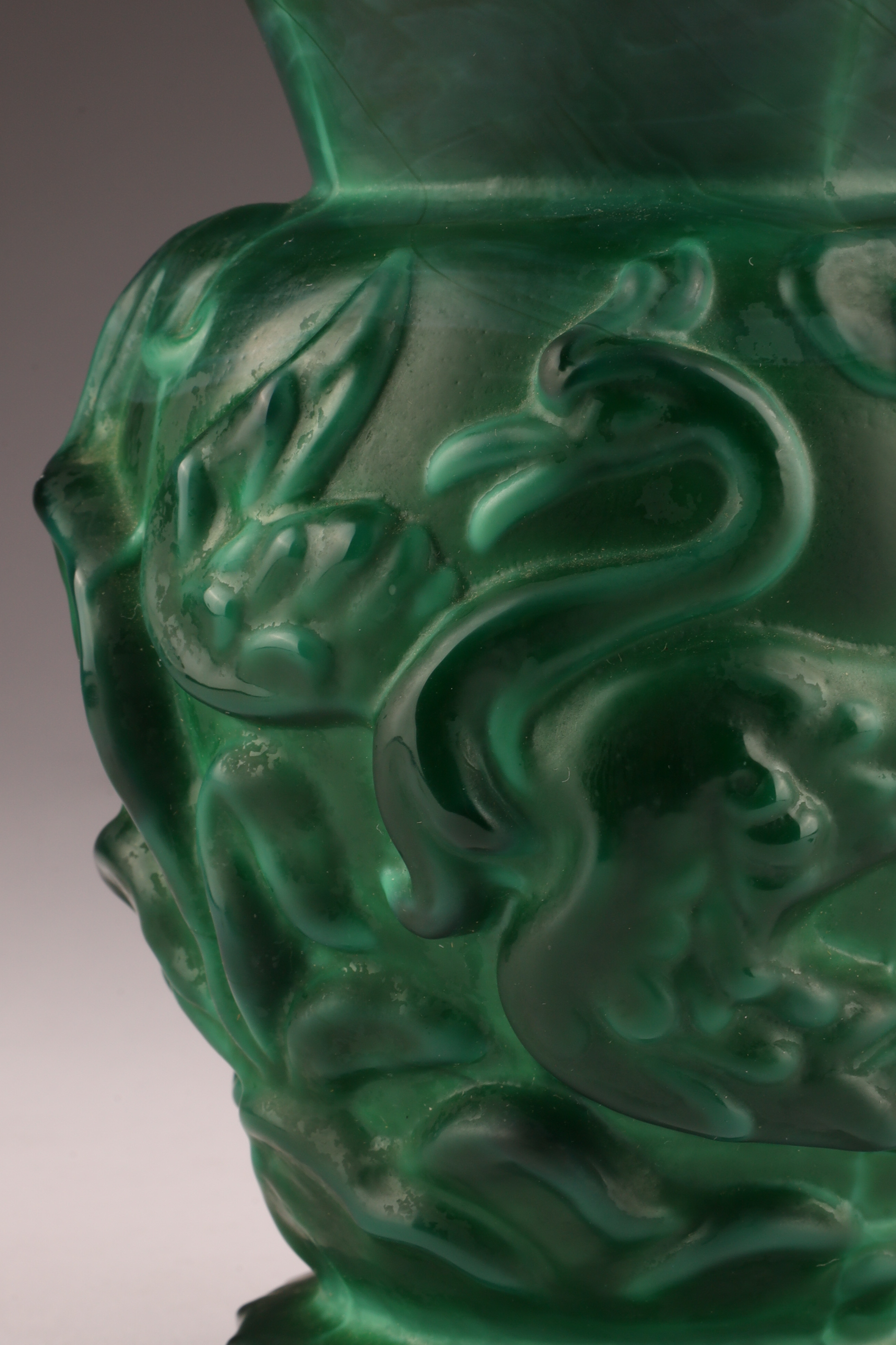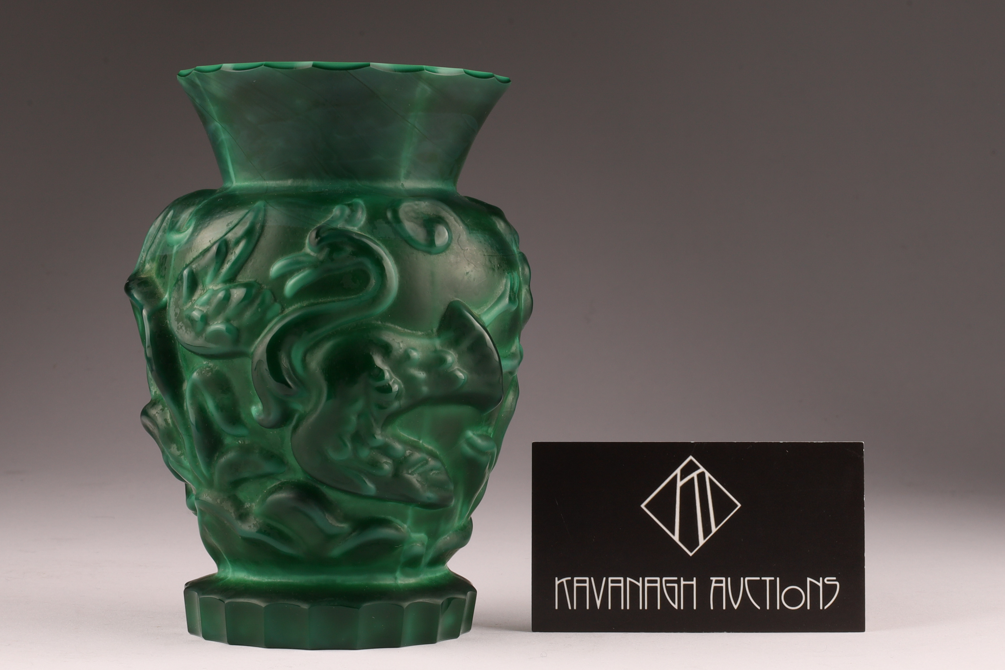 Czechoslovakian Art Deco Malachite Glass Gazelle and Bird Vase