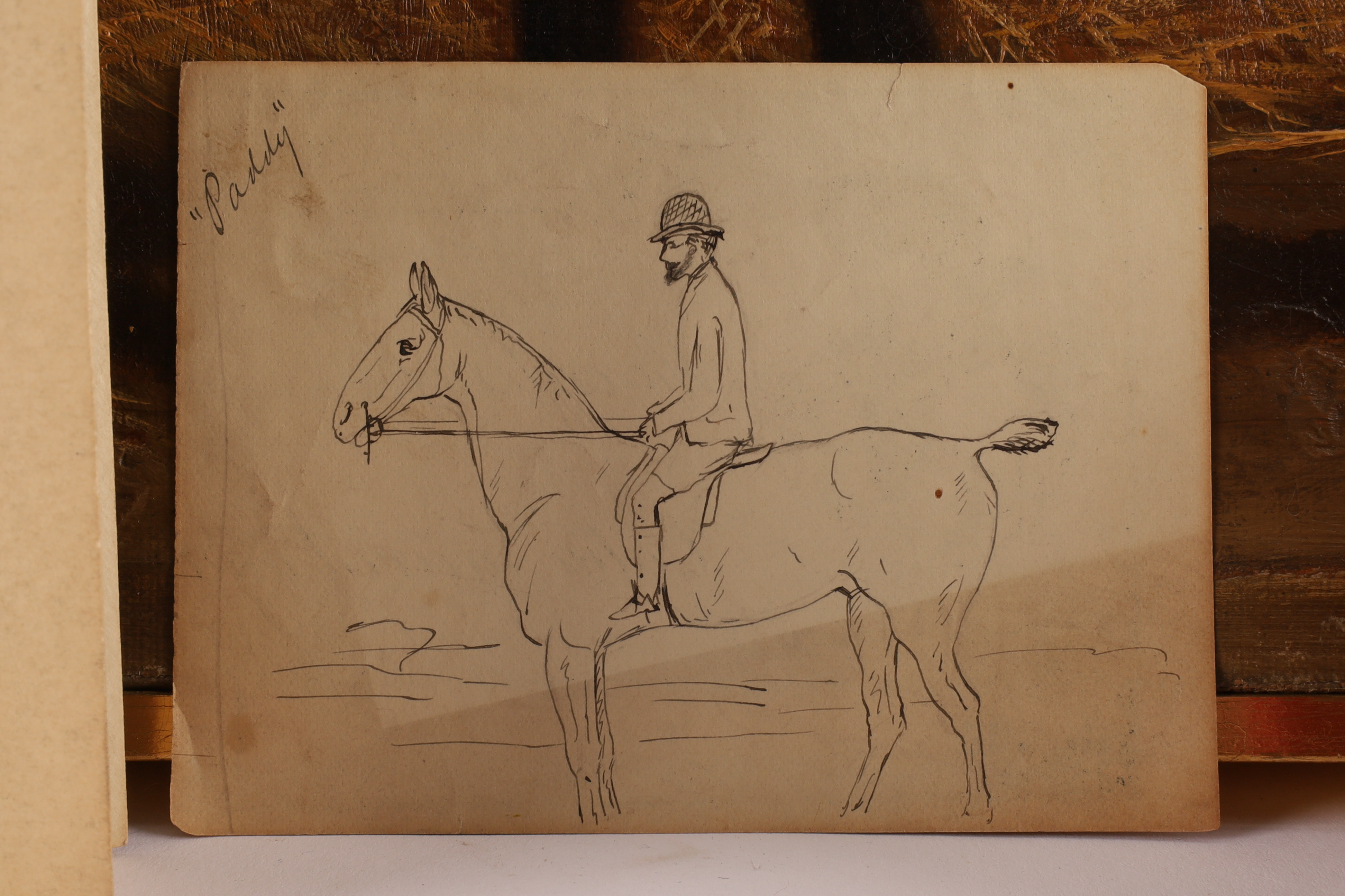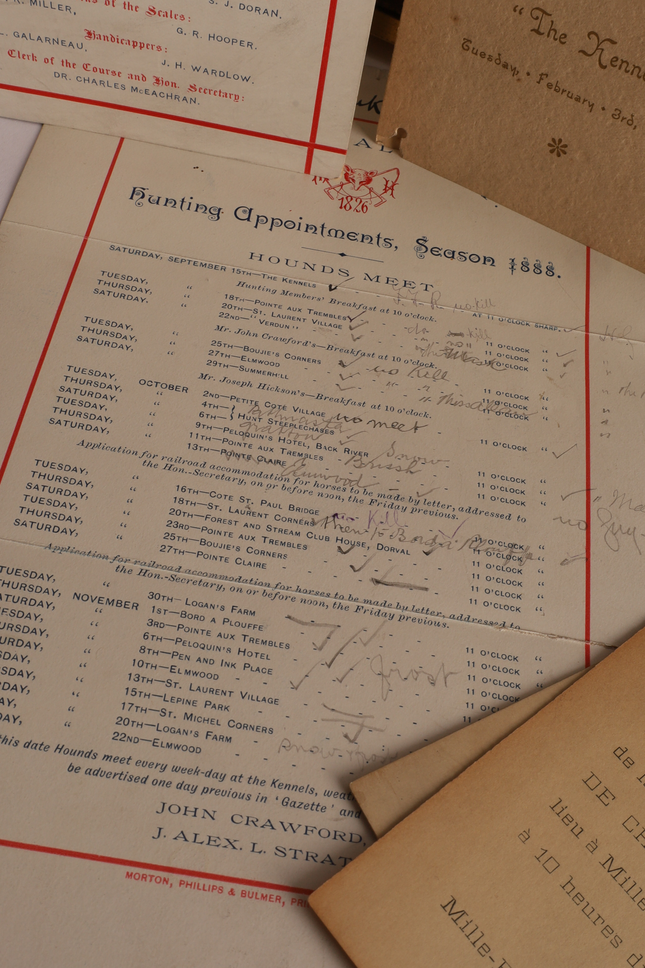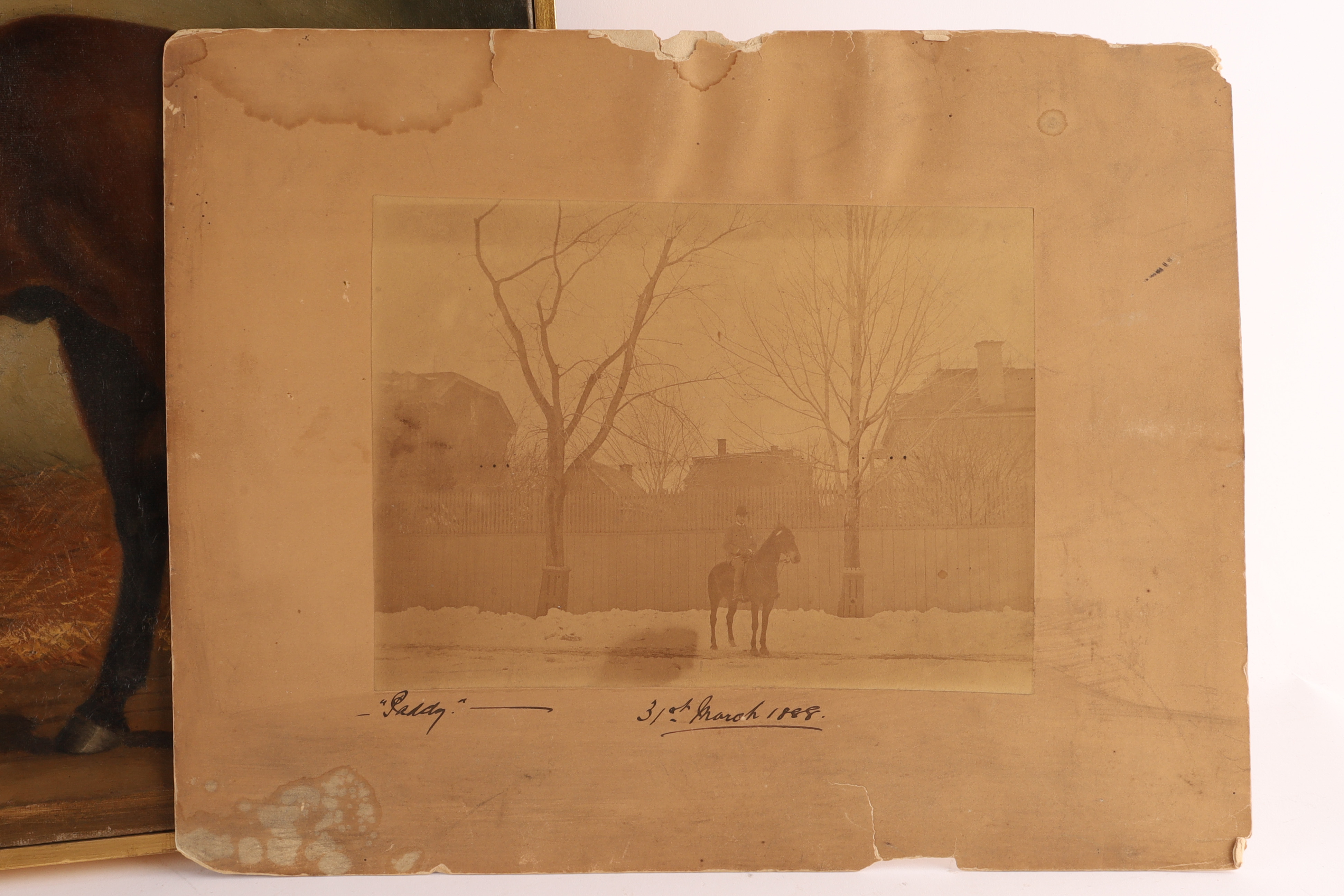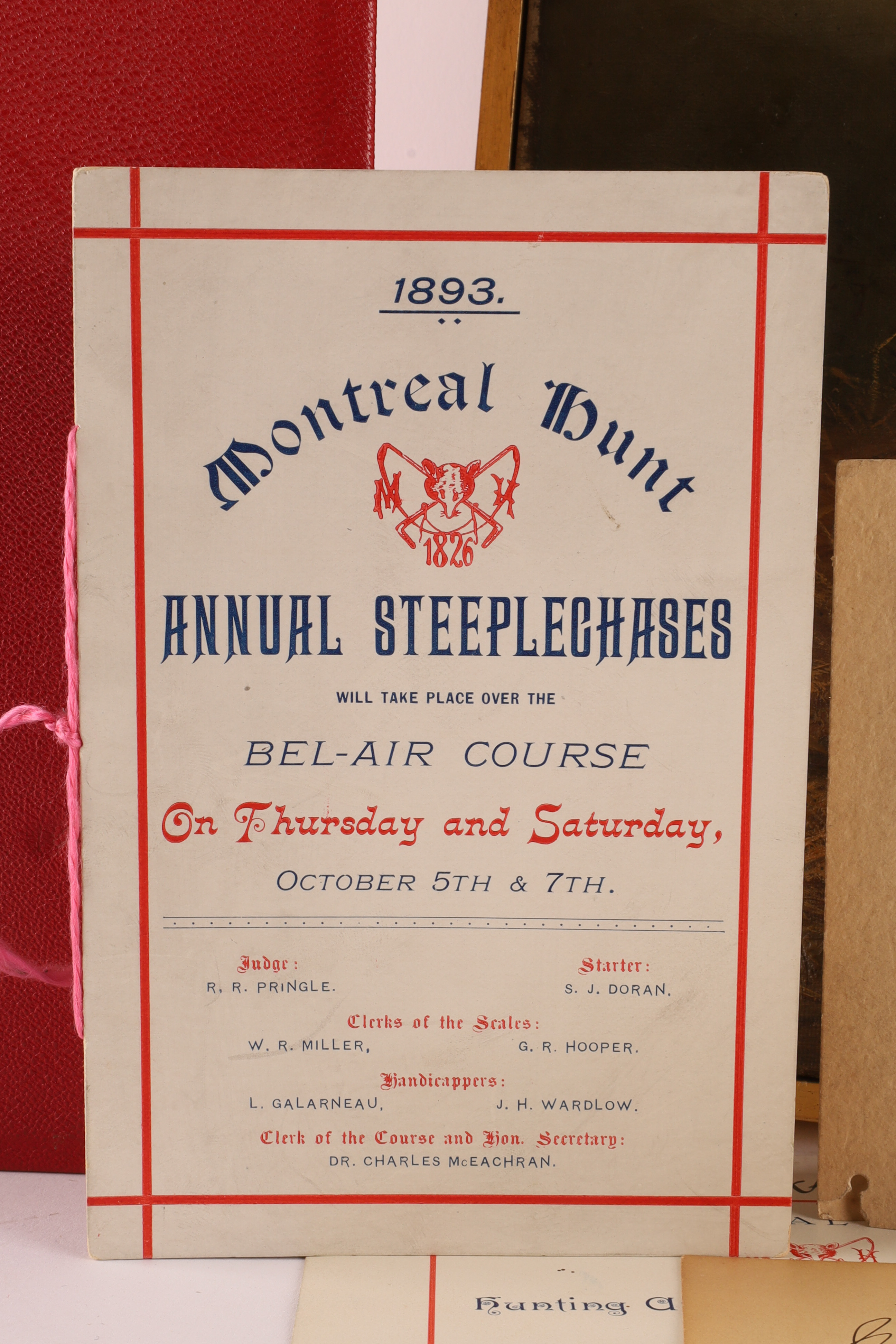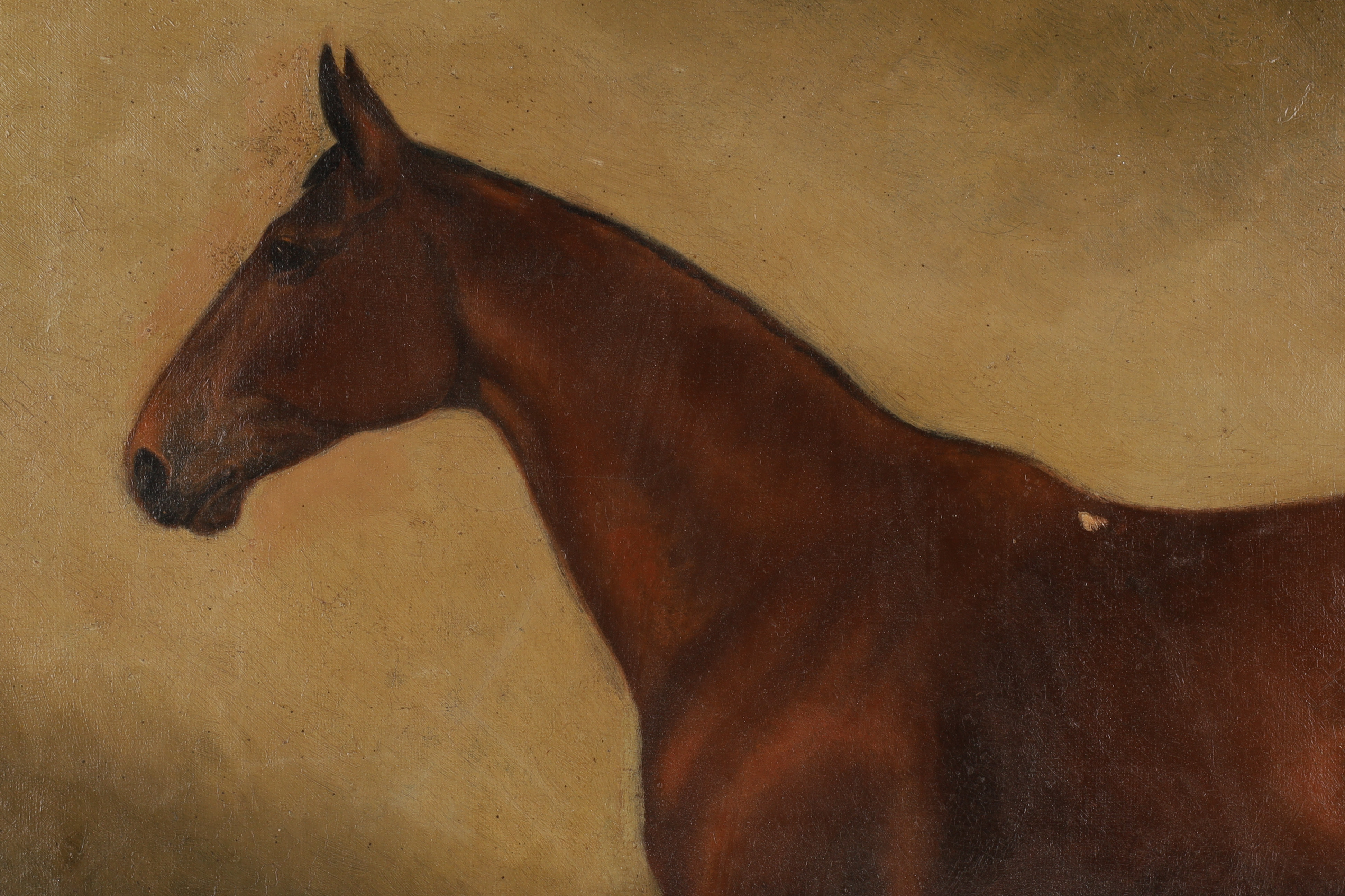 19th C Montreal Hunt Club Collection of Frank F. Rolland including Leopold Galarneau (Canadian, active 1882 – 1902) oil on canvas Portrait of a Horse, Paddy. Signed mid left, titled and dated 1889. Measuring 16.25 x 20.75 inches within slim gilt frame. Paddy was owned and ridden by Frank F. Rolland of the Montreal Hunt in the late nineteenth century. The Montreal Hunt Club (Le Club de Chasse a Courre de Montreal) holds the distinction of being the oldest hunt club in continuous existence in North America. Its history is closely intertwined with the development of Montreal’s social and military elite. Rolland was the grandson of the Honourable Jean Roch Rolland, lawyer, judge, member of the Executive Council, and seigneur (1785 – 1862).