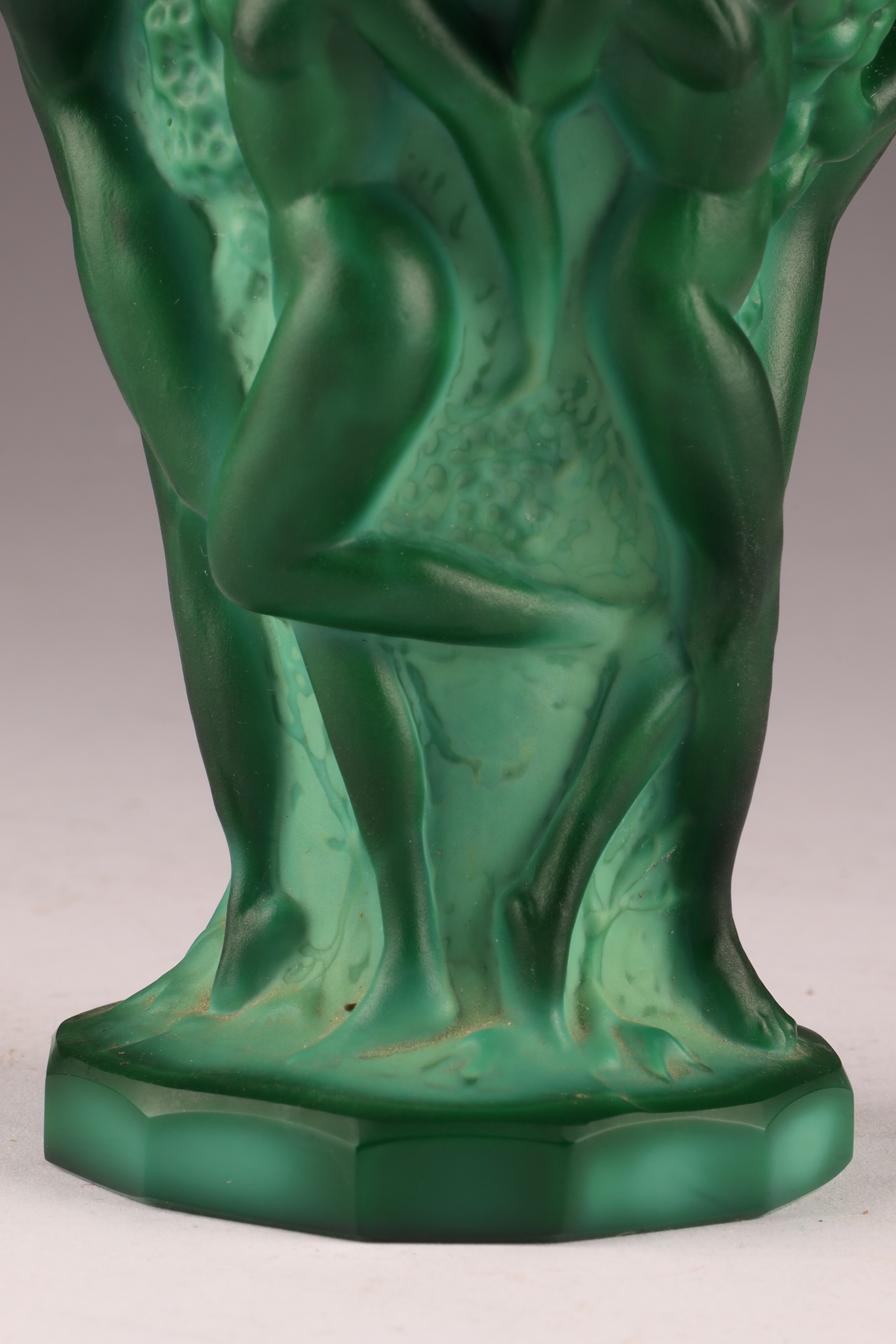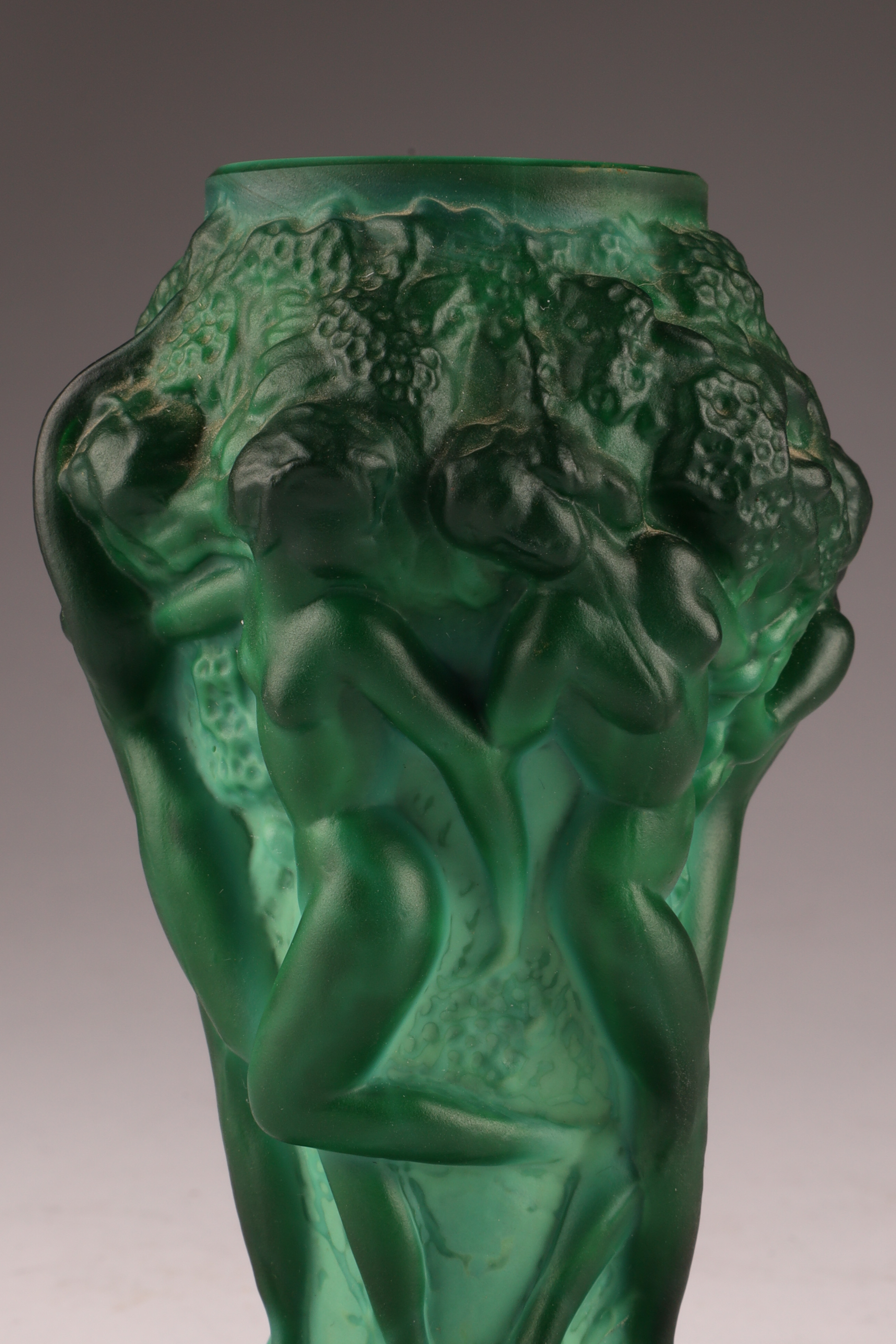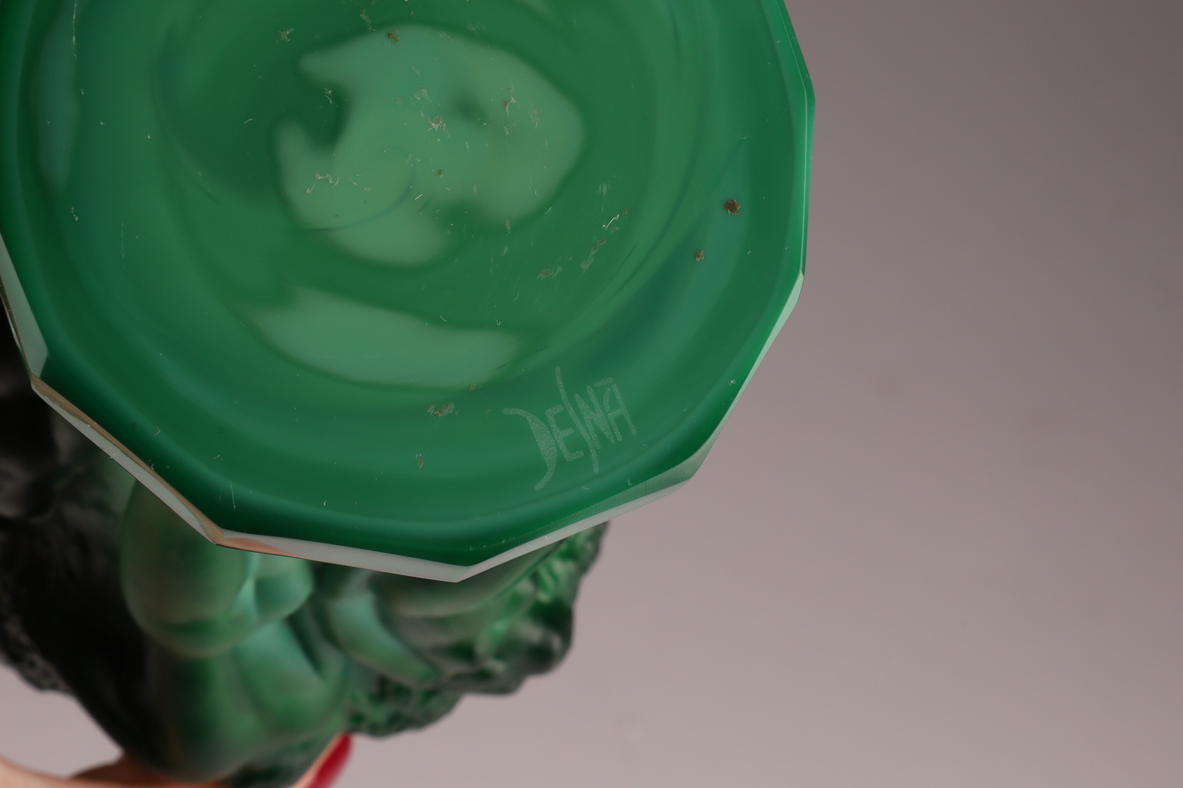 Art Deco Malachite Glass Wood Nymphs Vase Curt Schlevogt