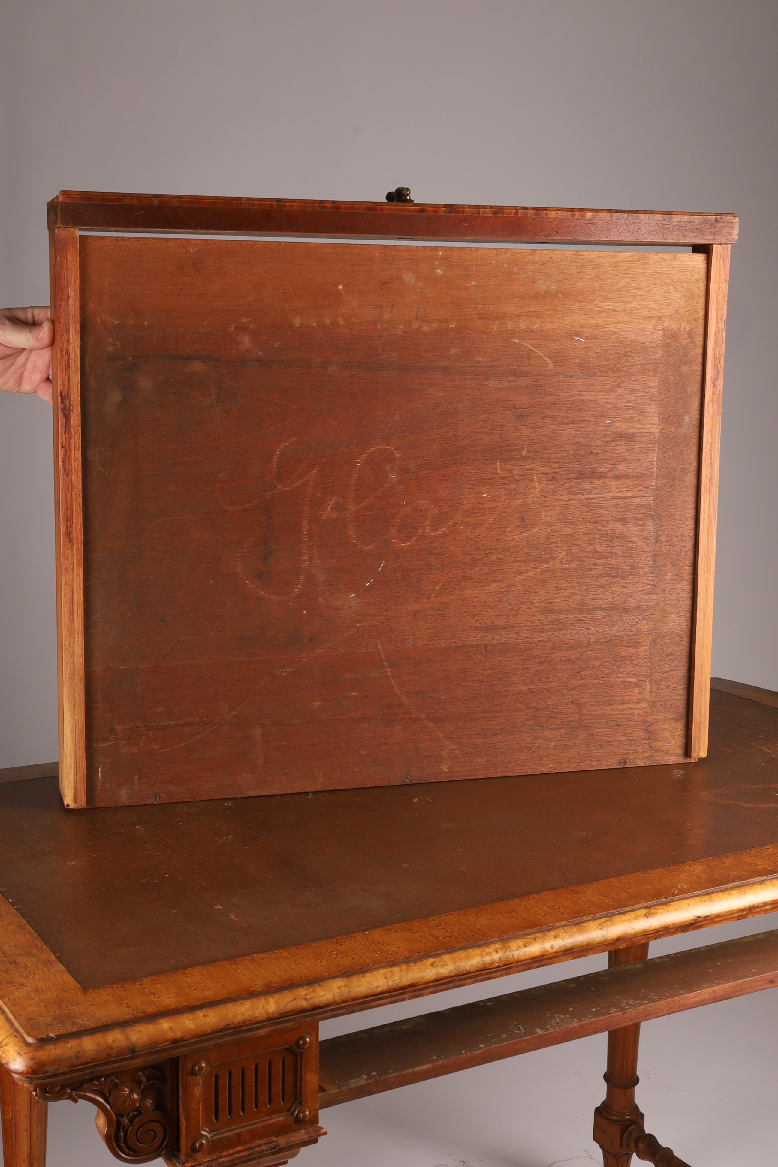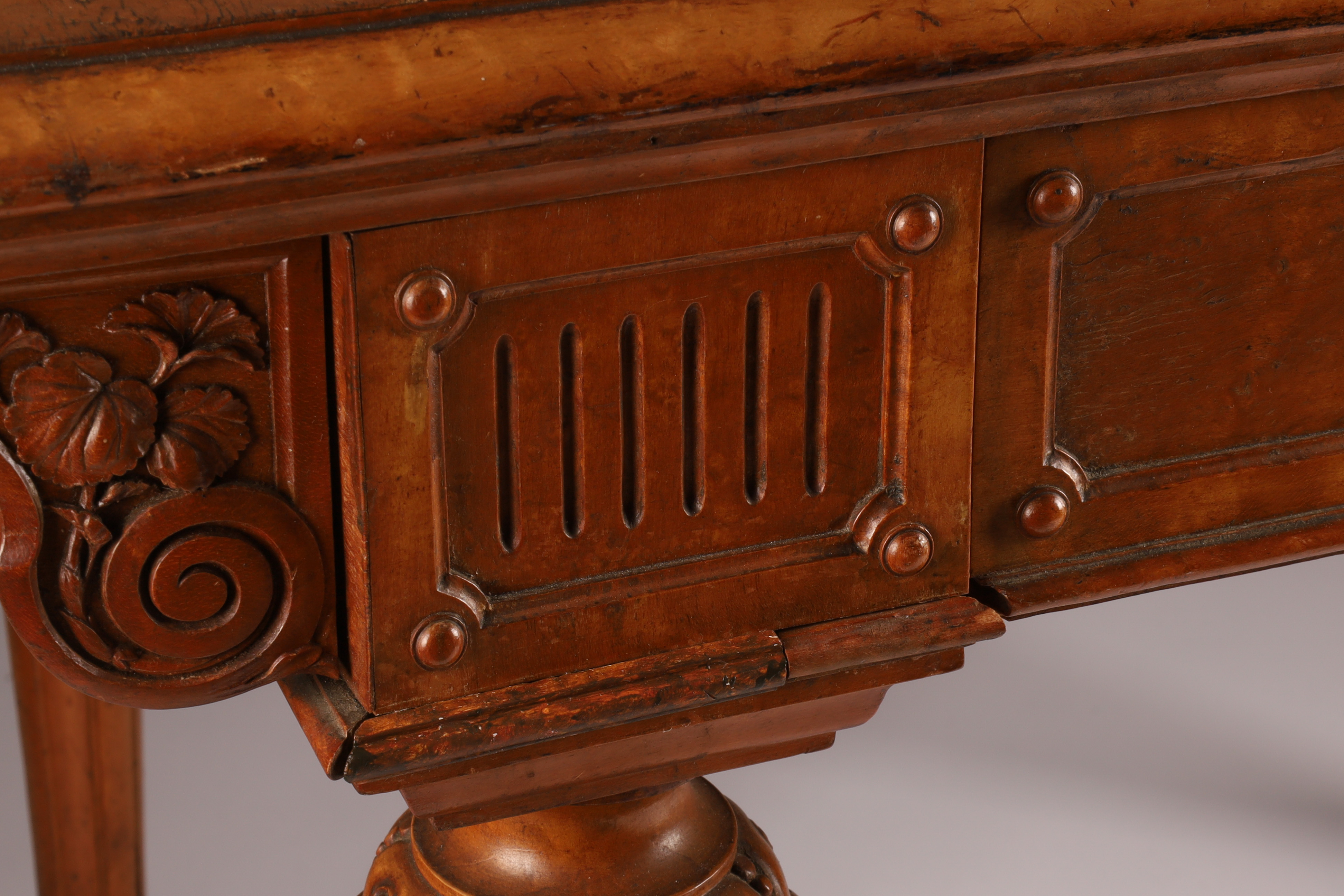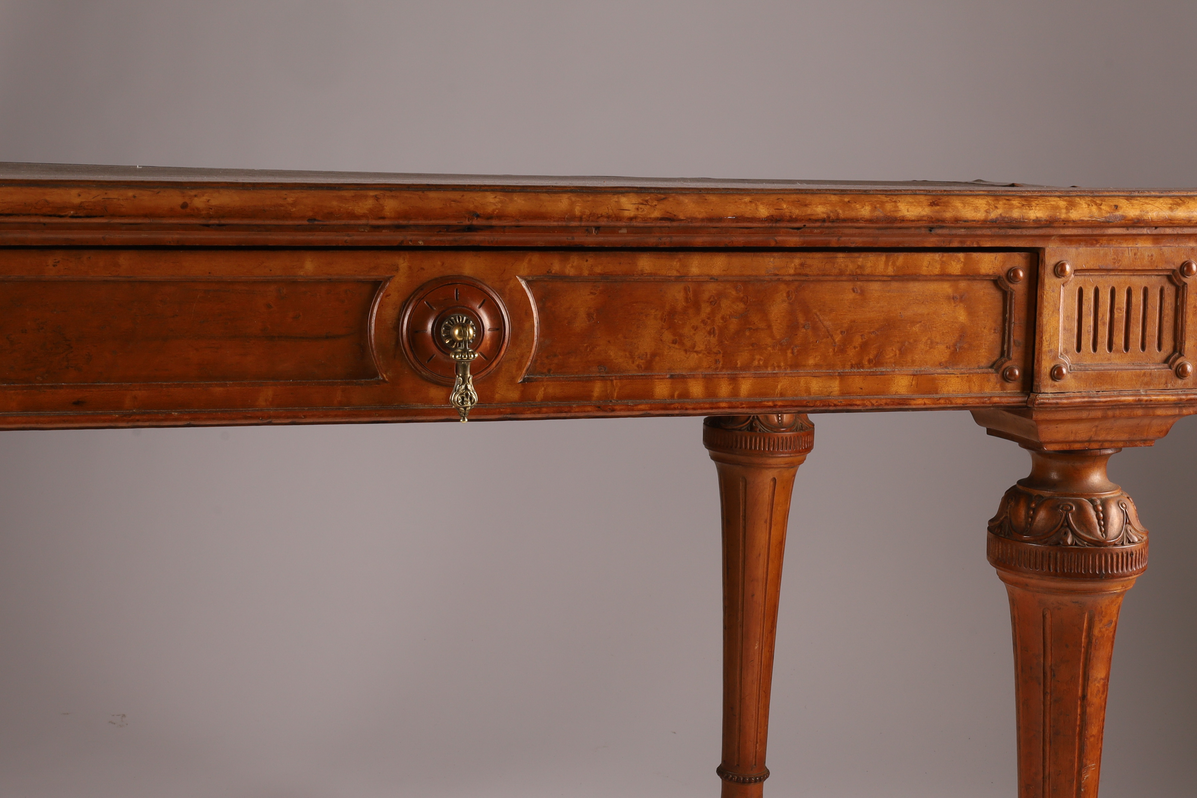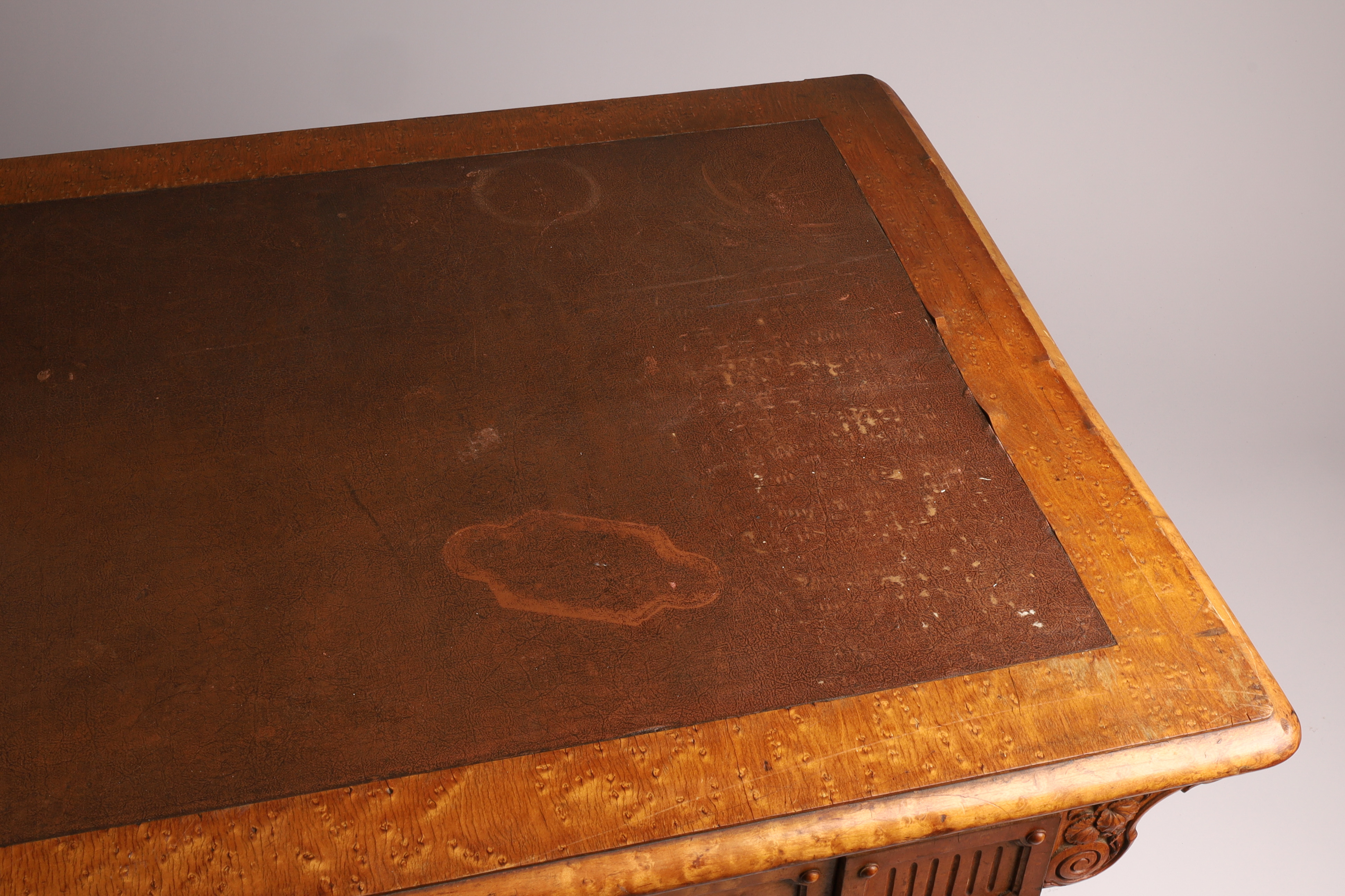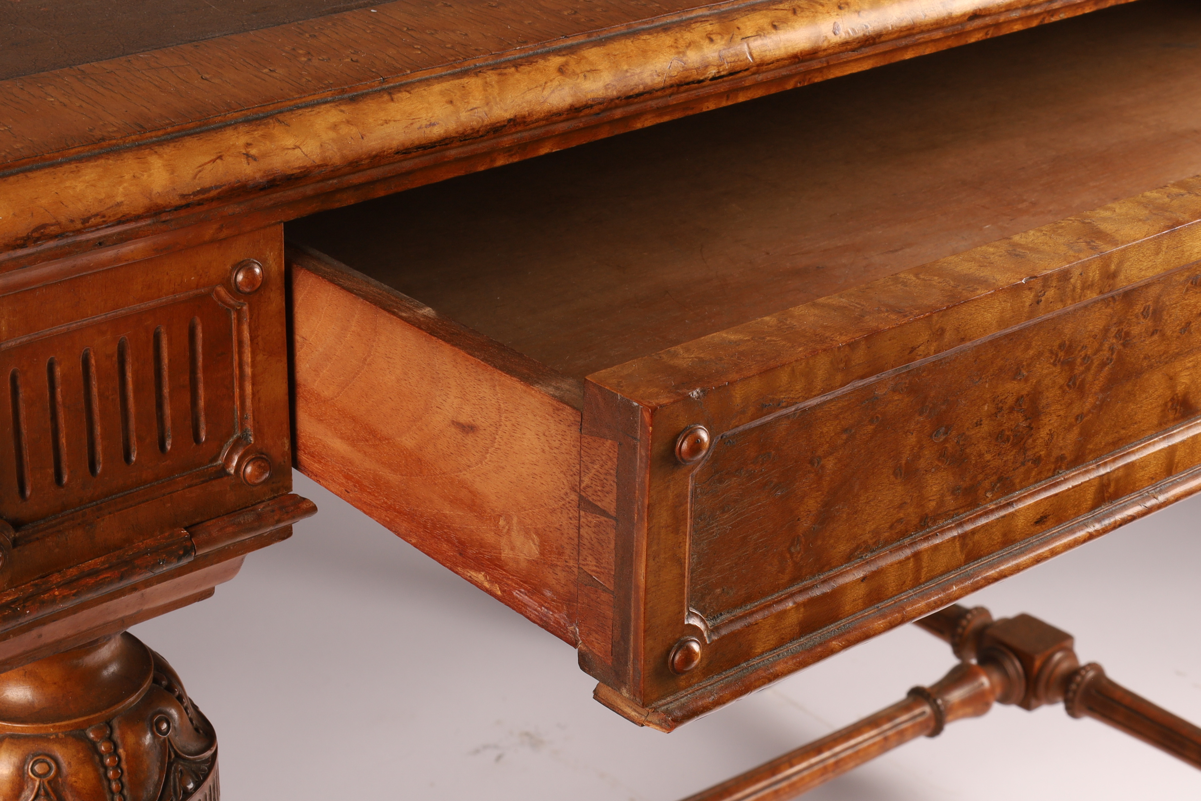 Antique English Regency Birds Eye Maple Carved Writing Desk