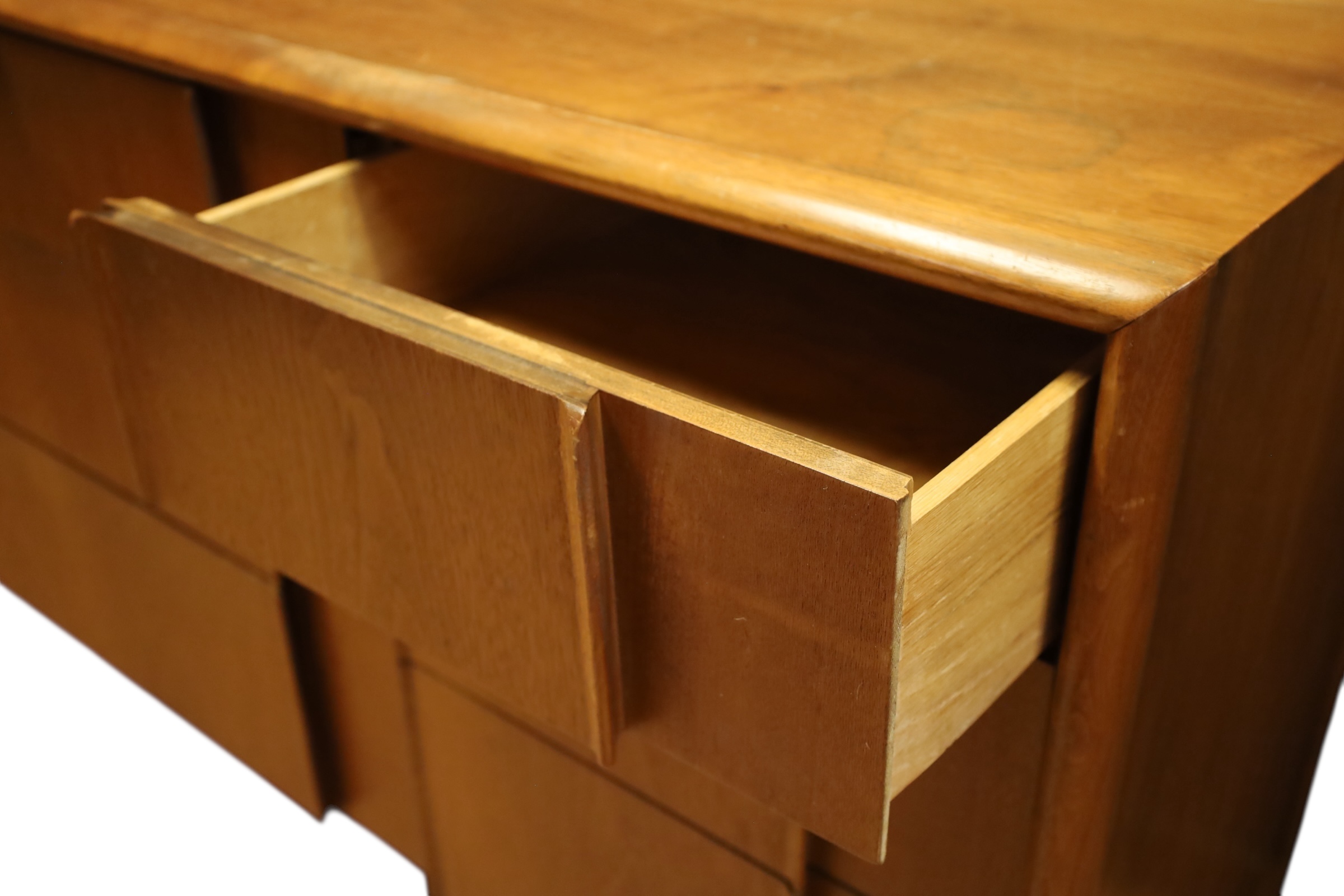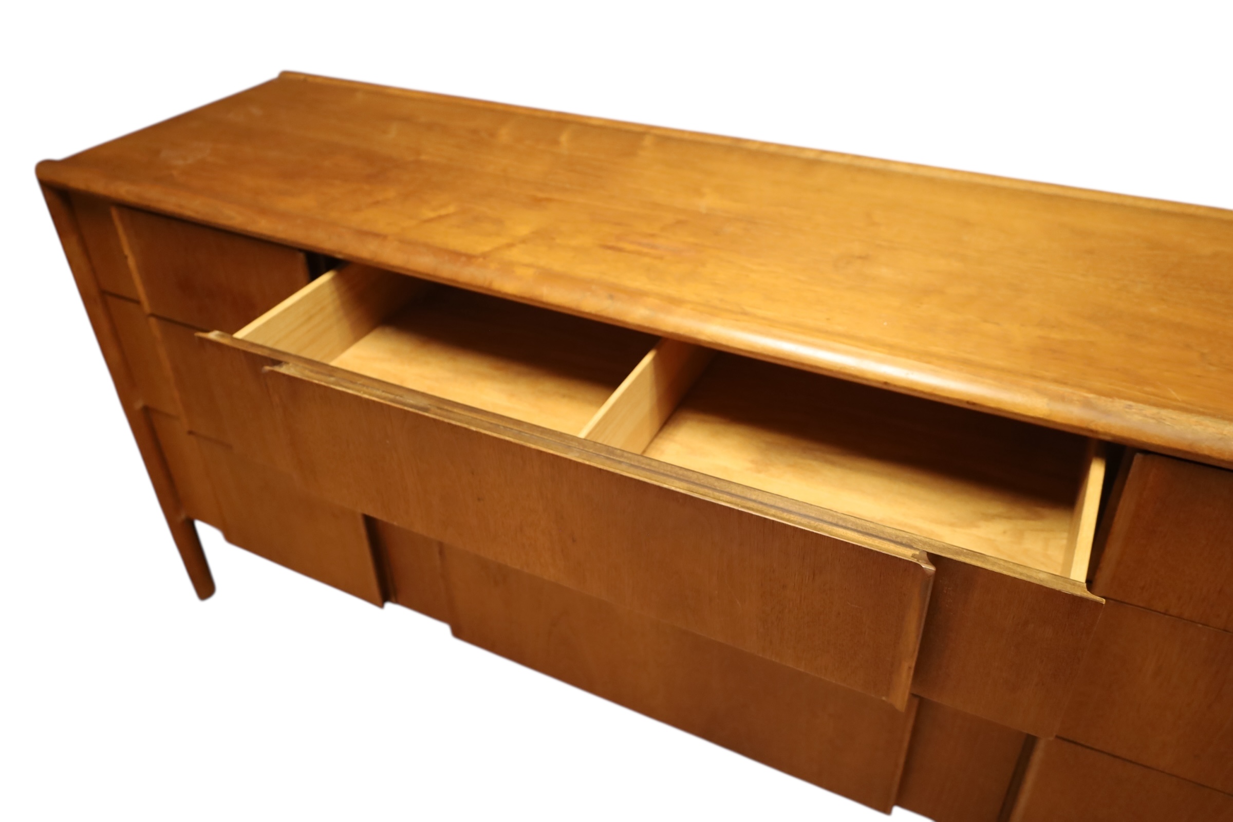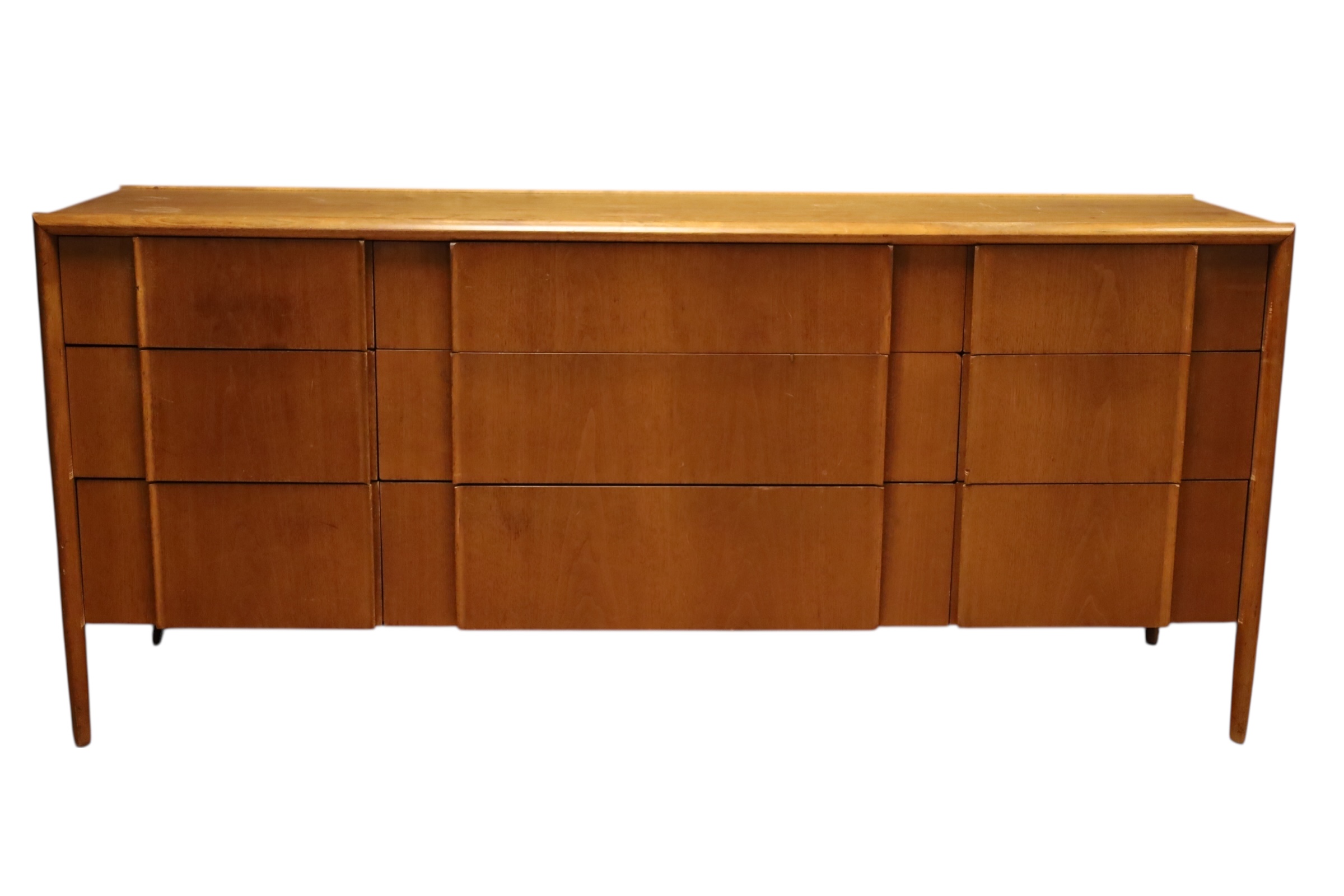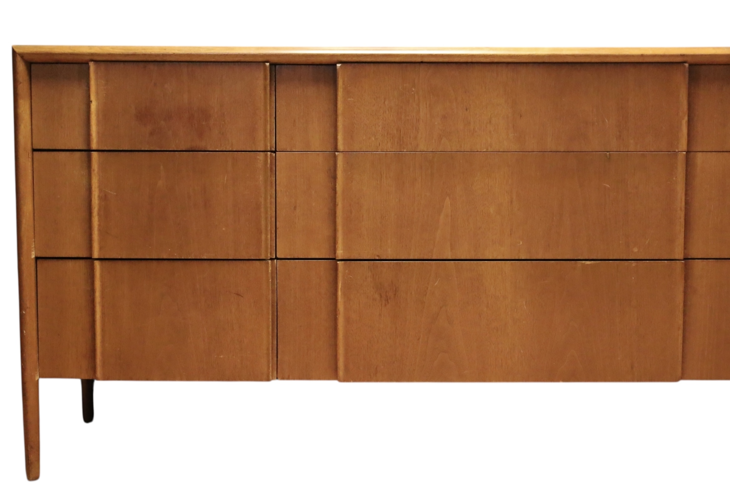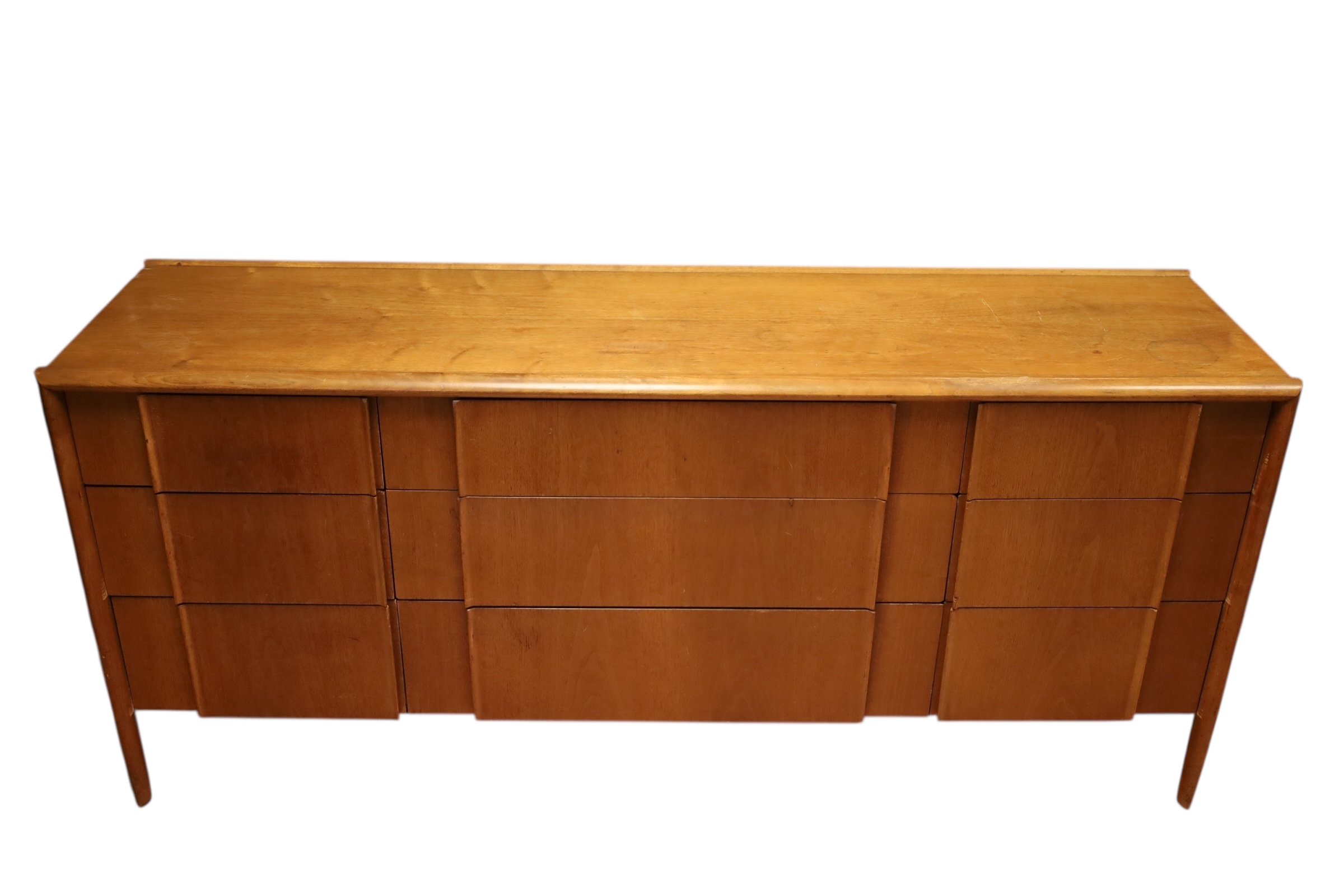 Mid Century Modern Teak Drexel Declaration Long Credenza with 9 drawers. 72 x 20 deep x 32 H. Some damage to surface as shown.