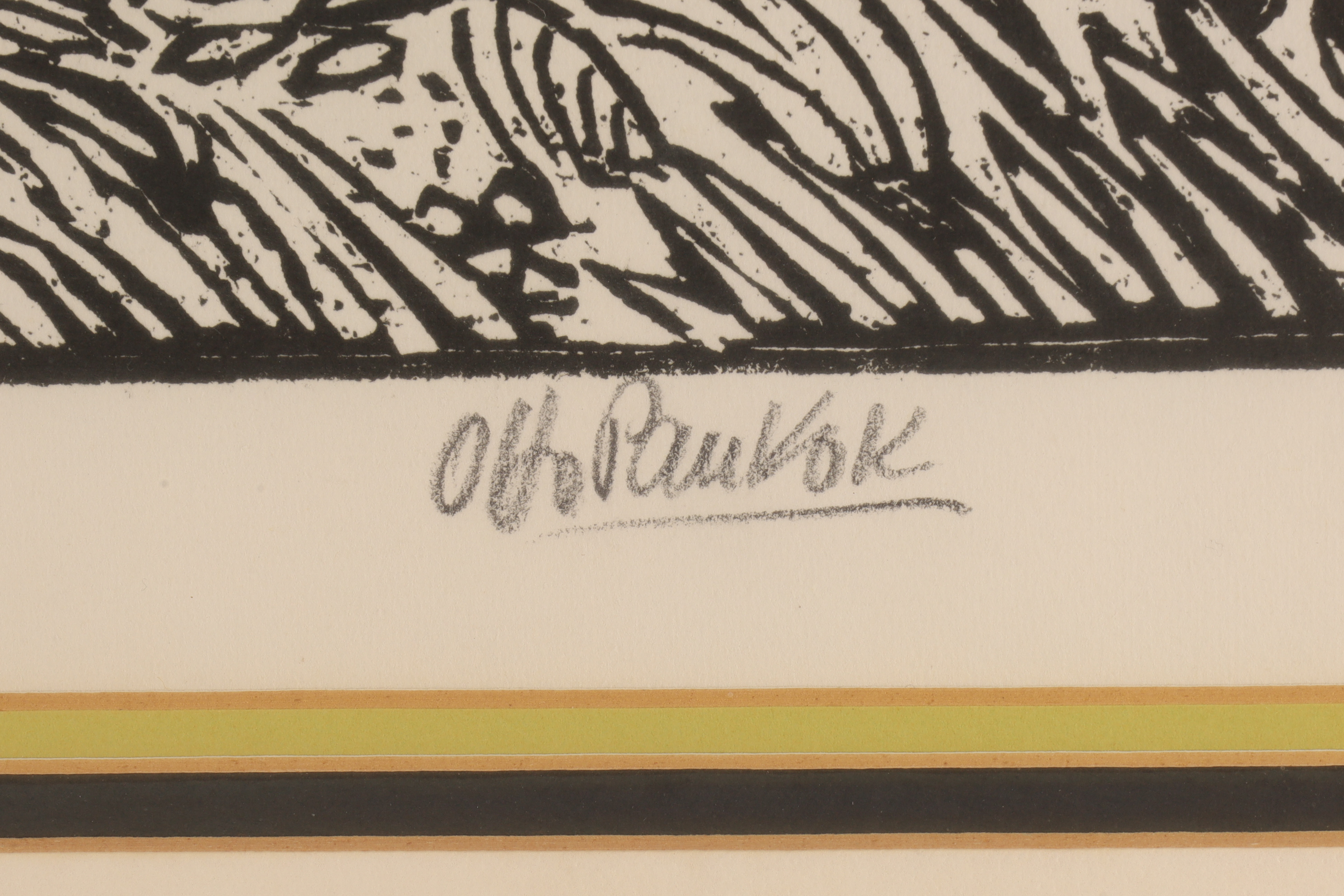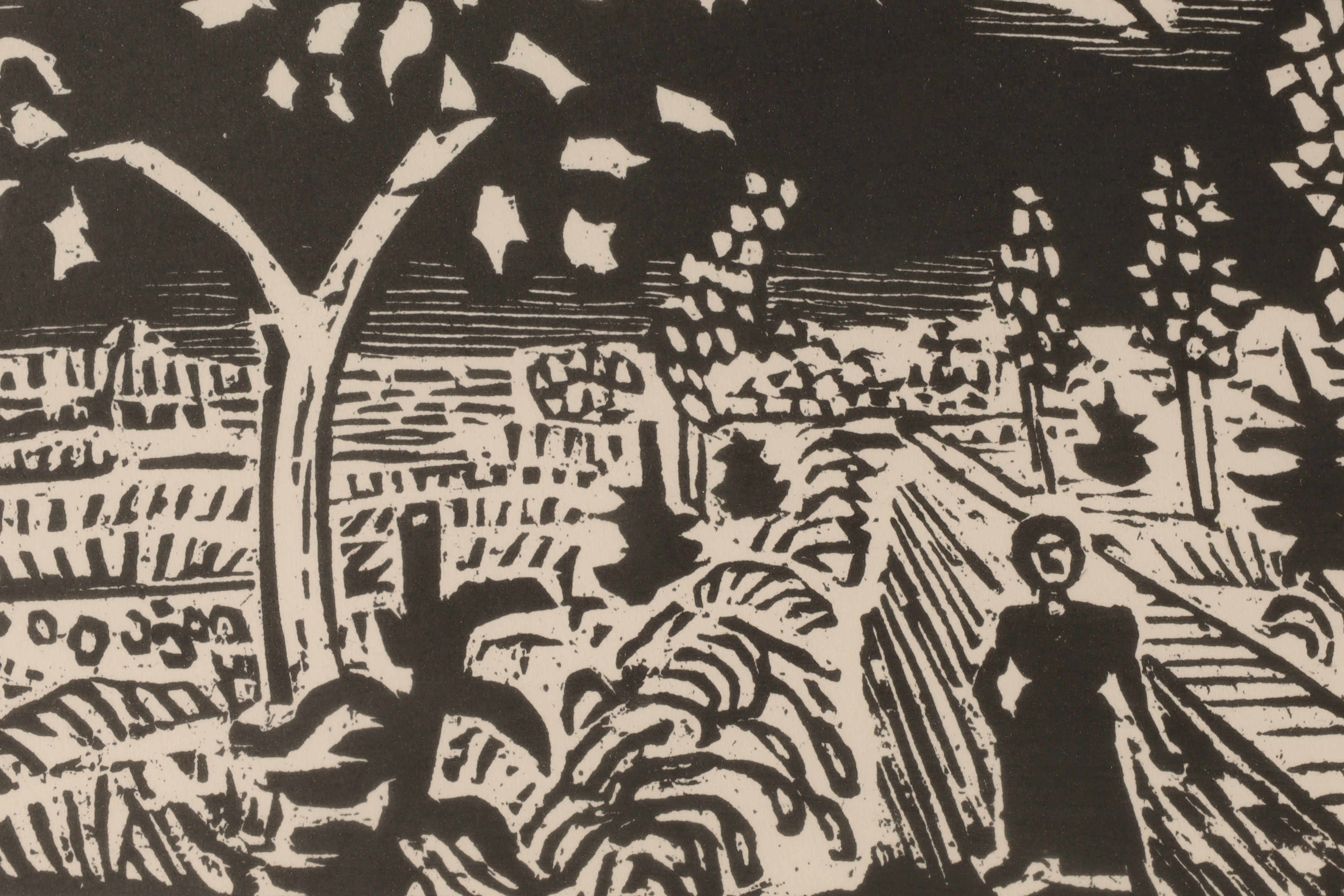 Otto Pankok (German, 1893 - 1966) Expressionist Woodcut Print Landscape with Figure