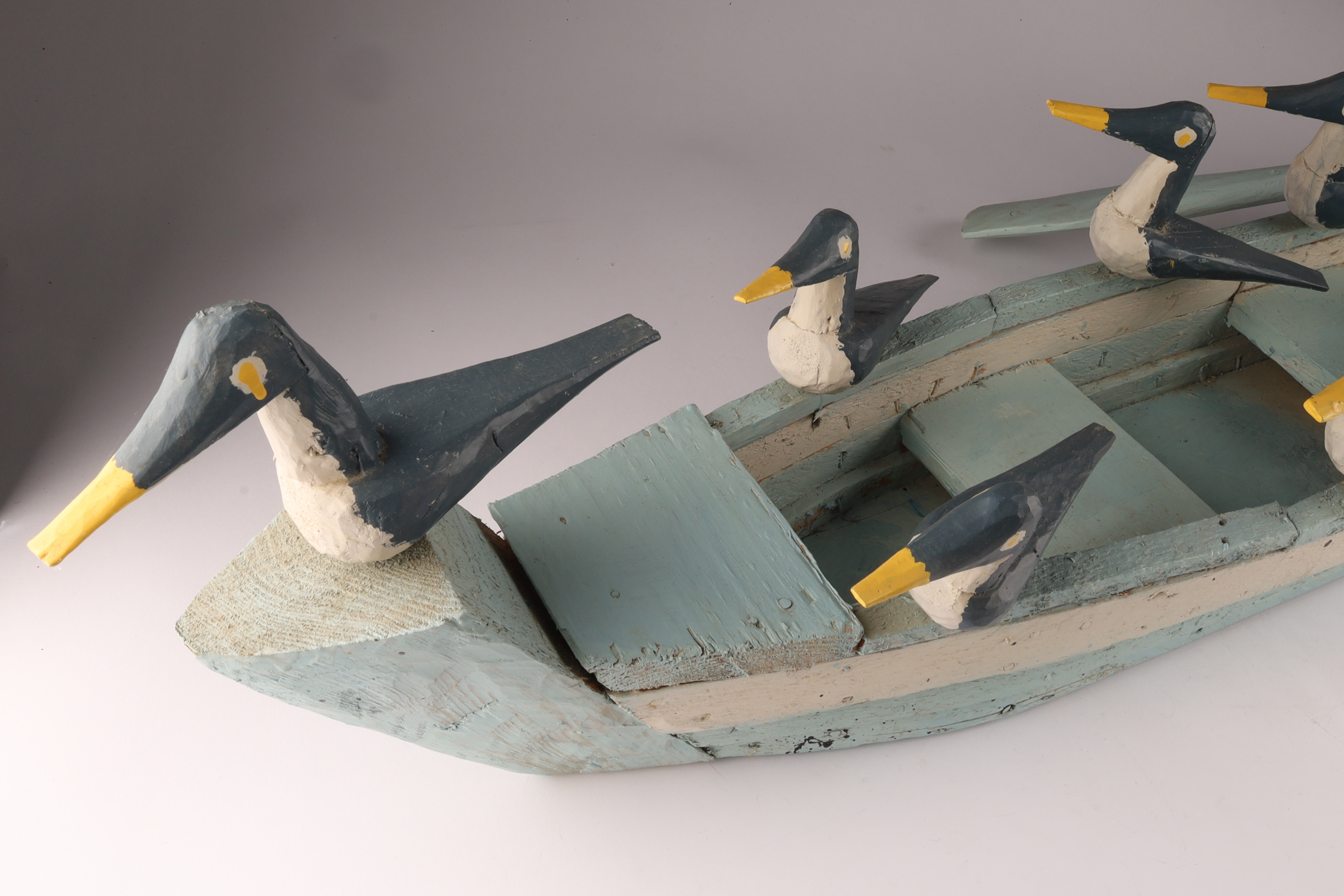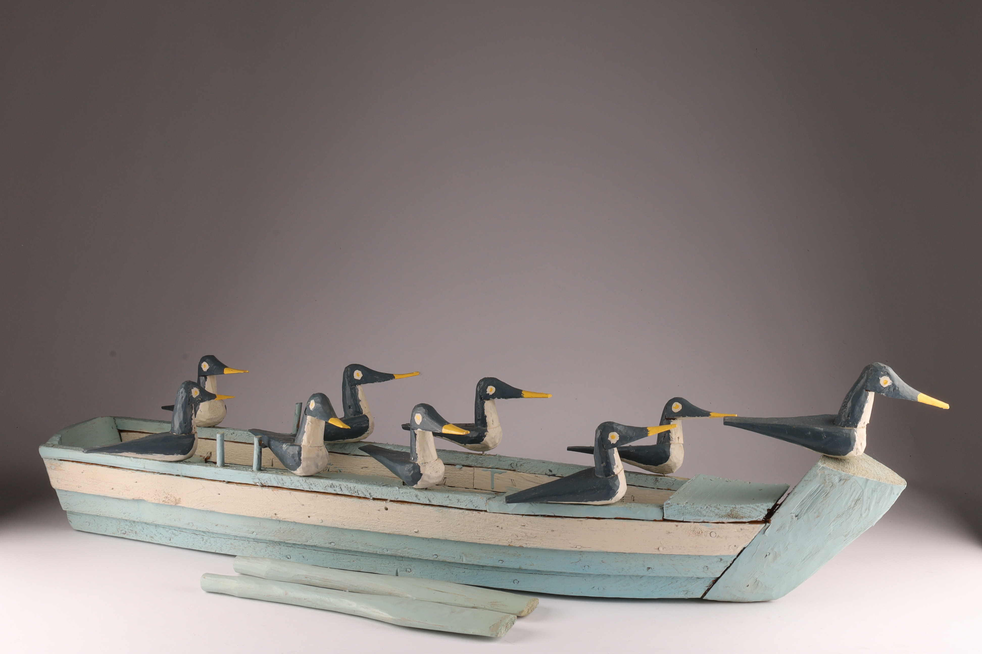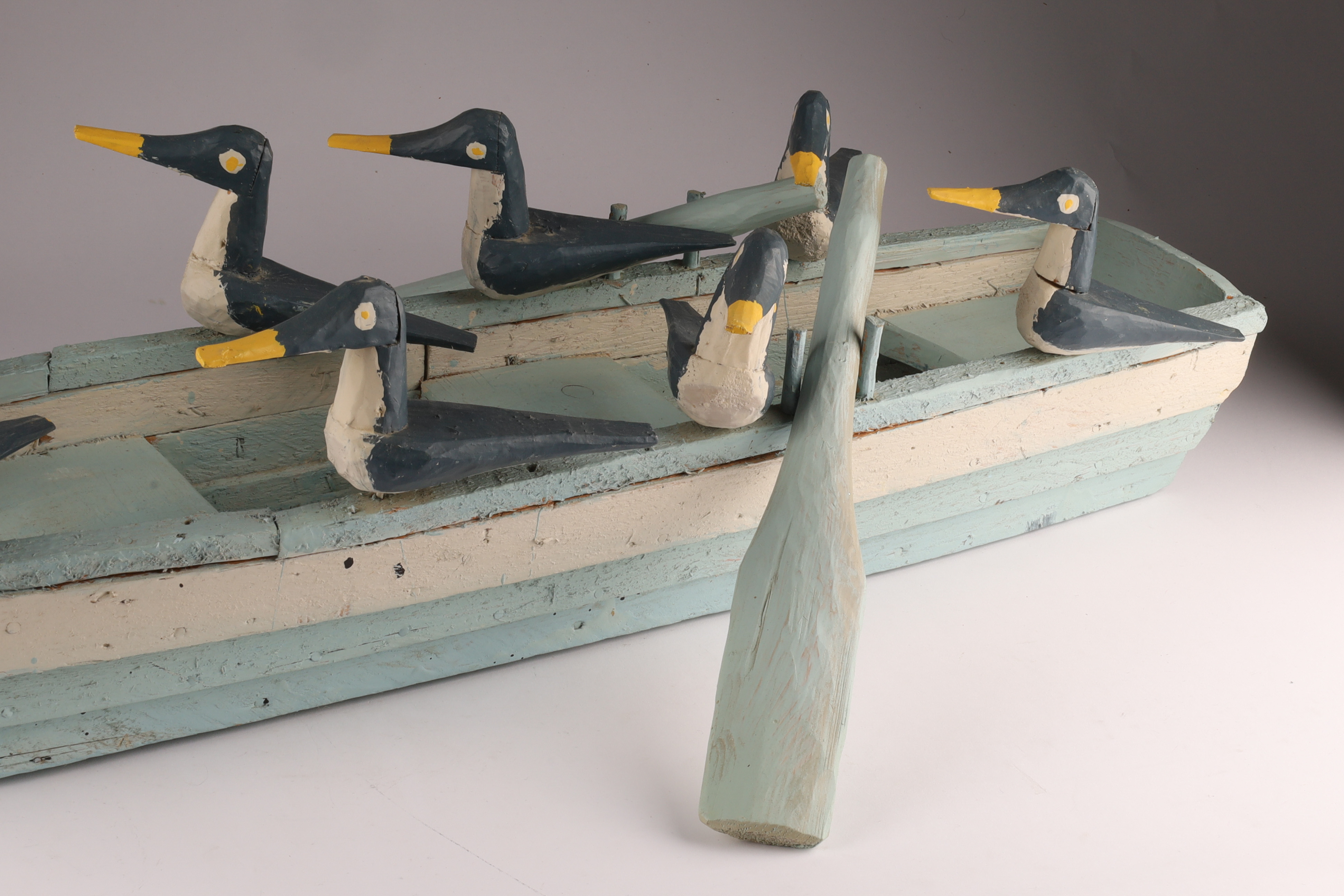 Nova Scotia Folk Art Carved and Painted Boat with Seagulls / inches Decoy Rig inches . 12 inchesW x 39 inchesL