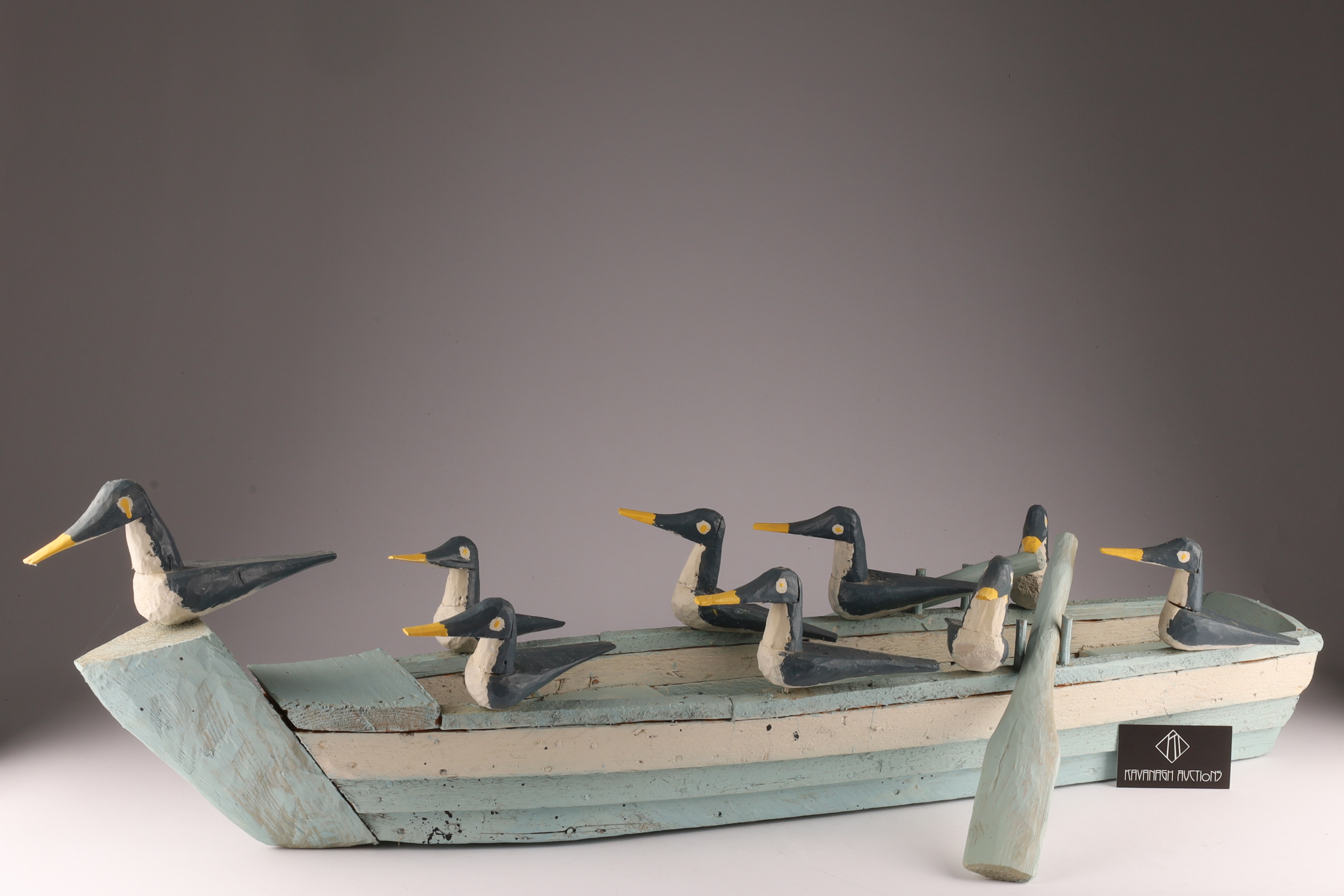 Nova Scotia Folk Art Boat with Seagulls / "Decoy Rig"