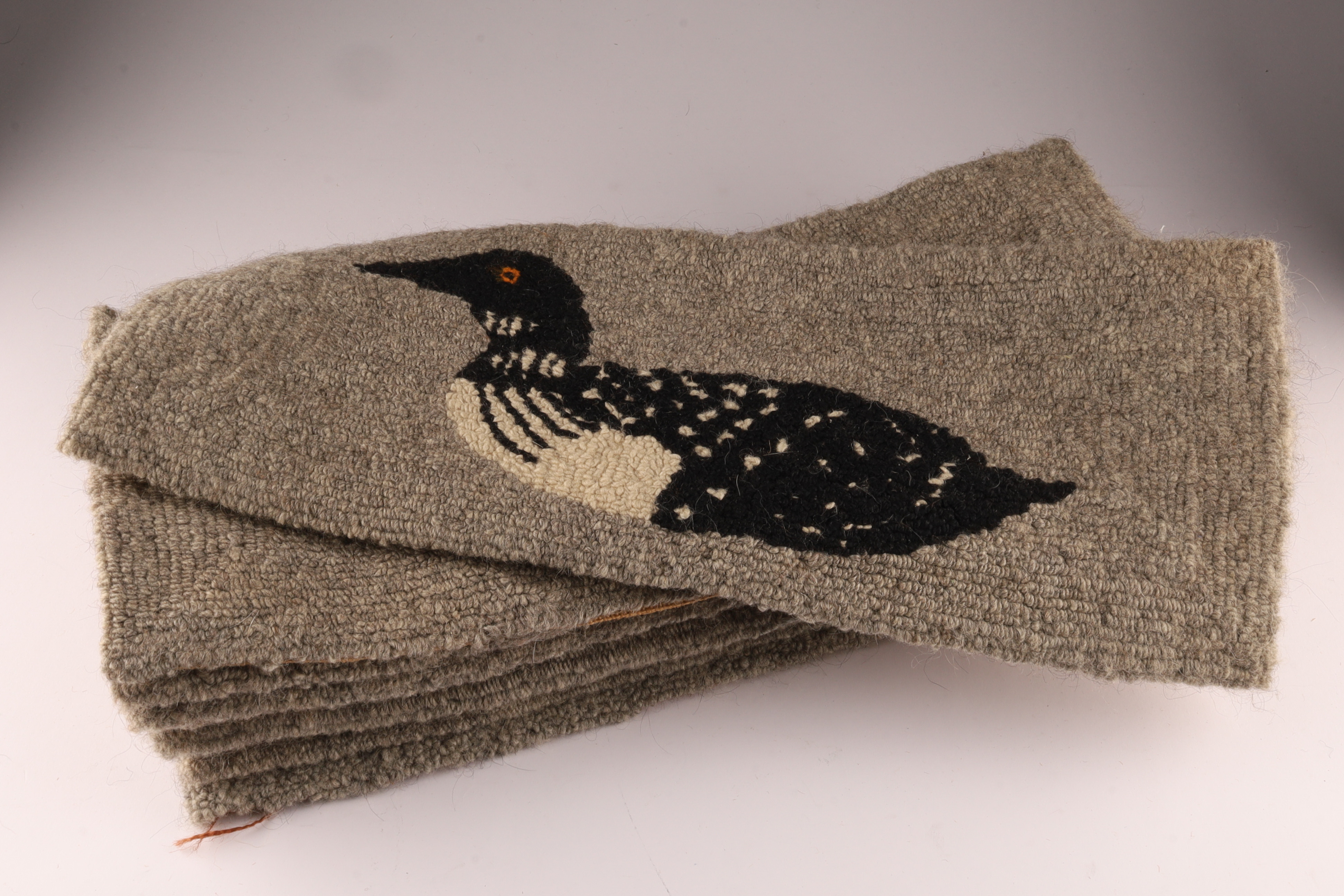 Set of 11 Nova Scotia Hooked Rugs of Ducks C. 1950s, Step Treads, measuring 20 inches L x 8.