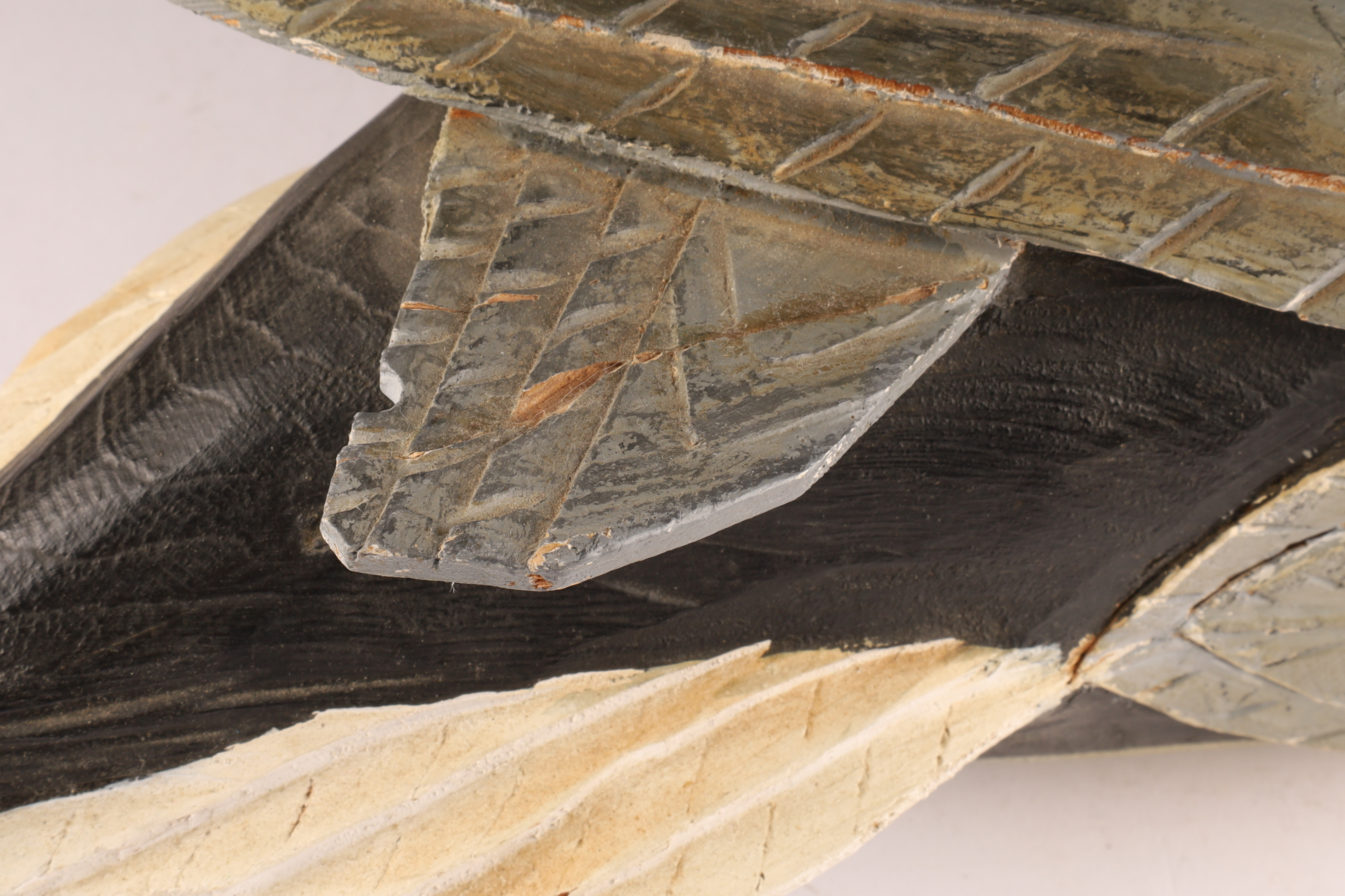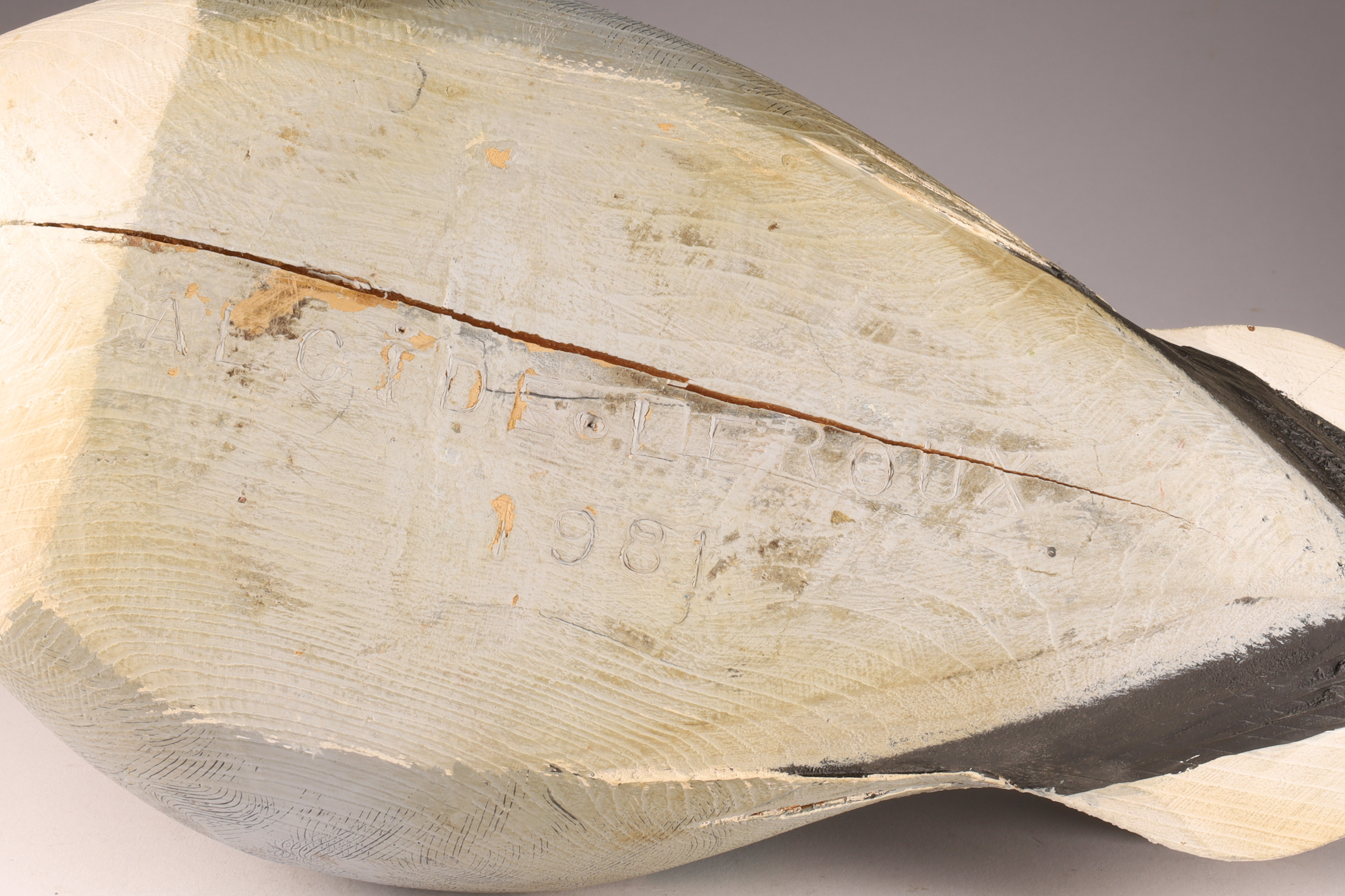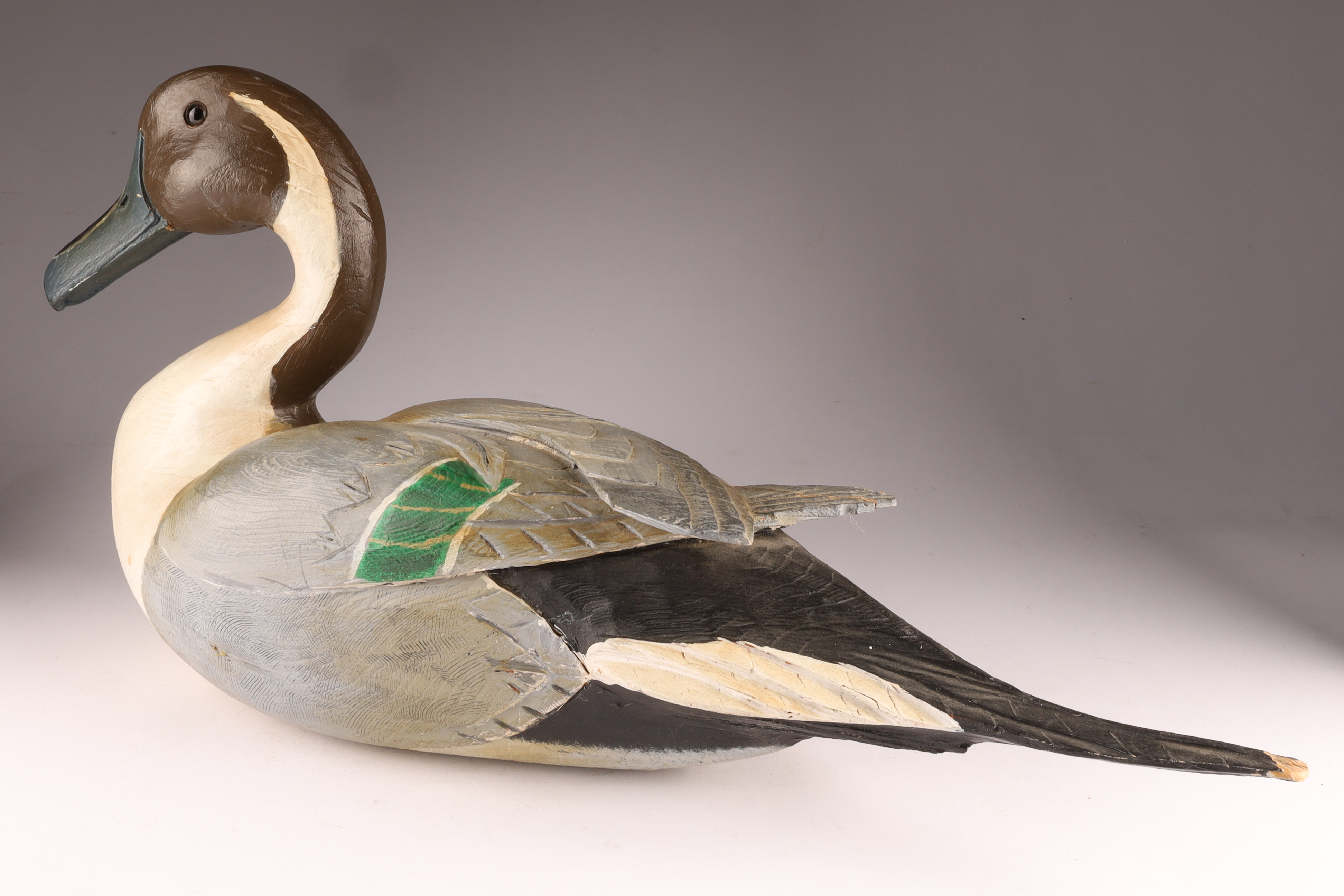 Pintail Drake Duck Decoy Alicide Leroux Riviere Beaudette Quebec. Signed on base, dated 1981. 20 inches L x 7 W x 6 H. Chip to tail.