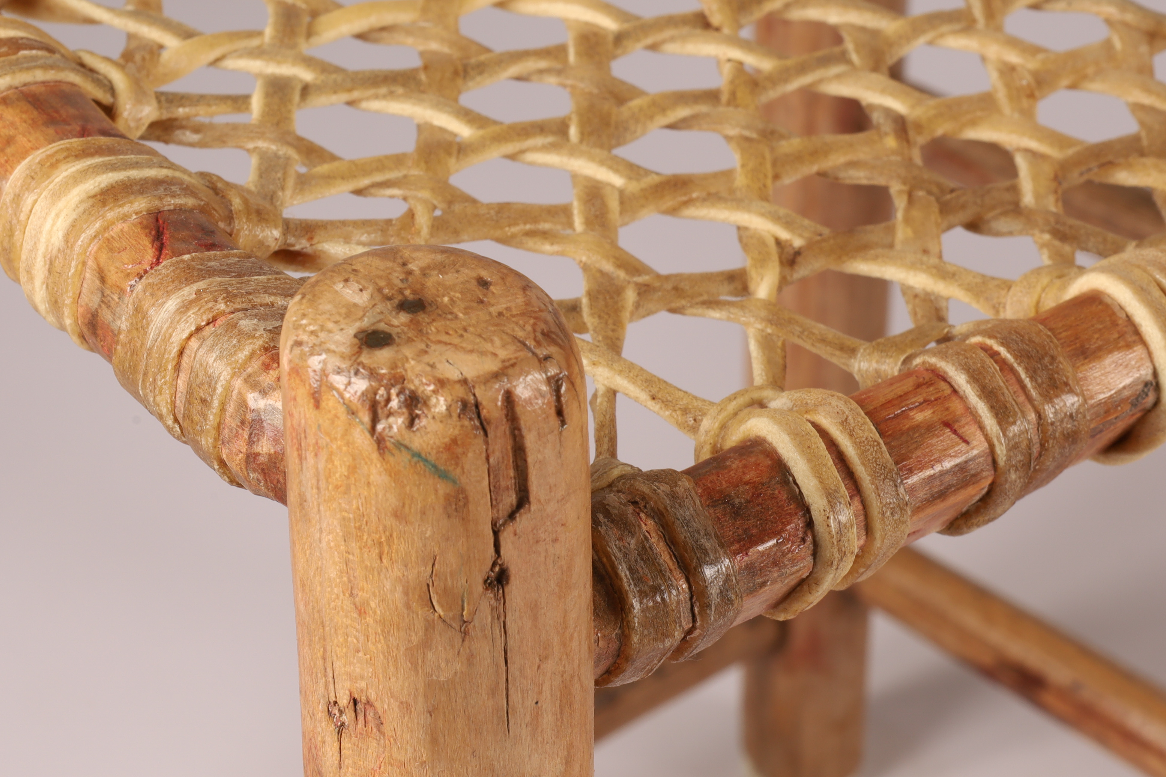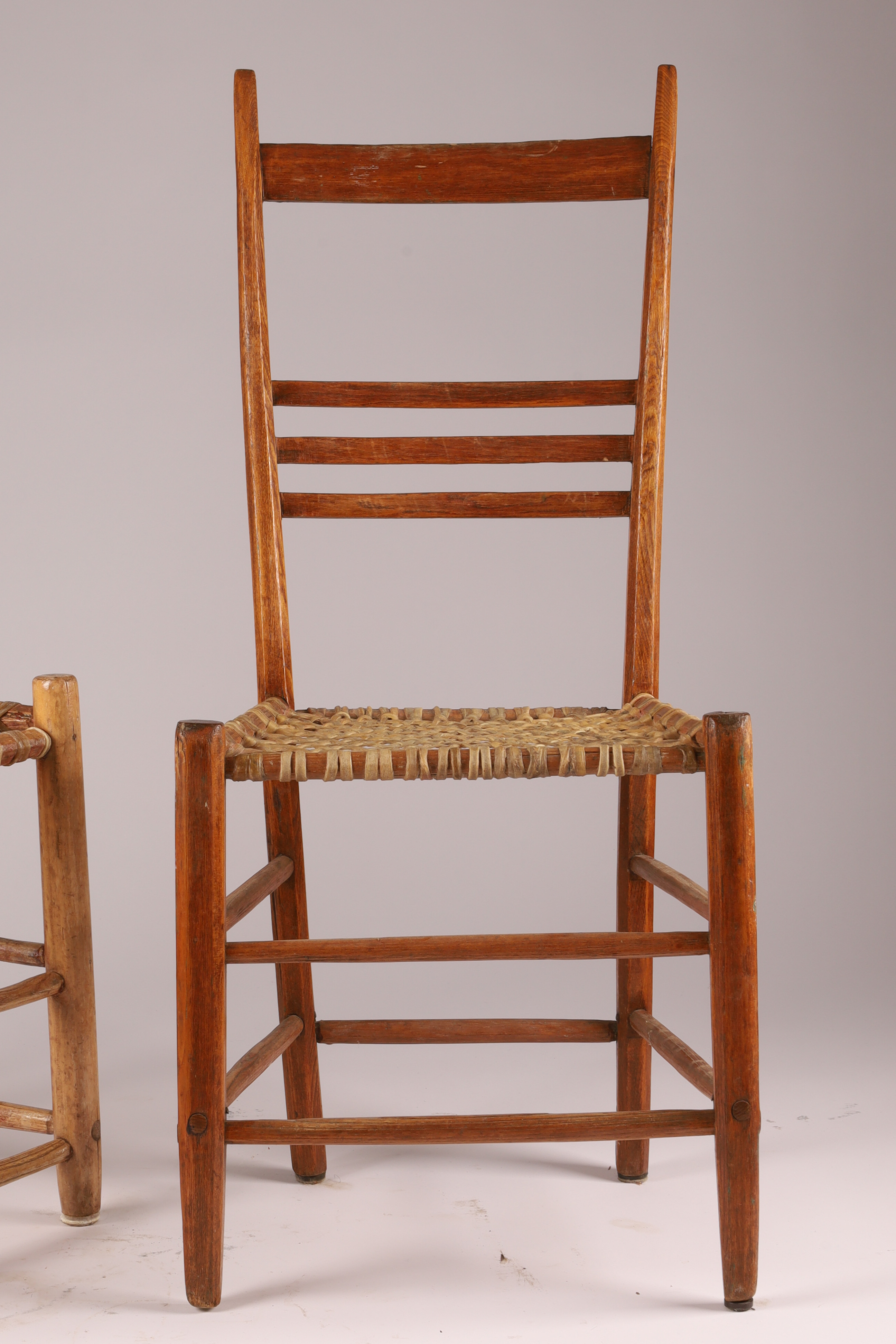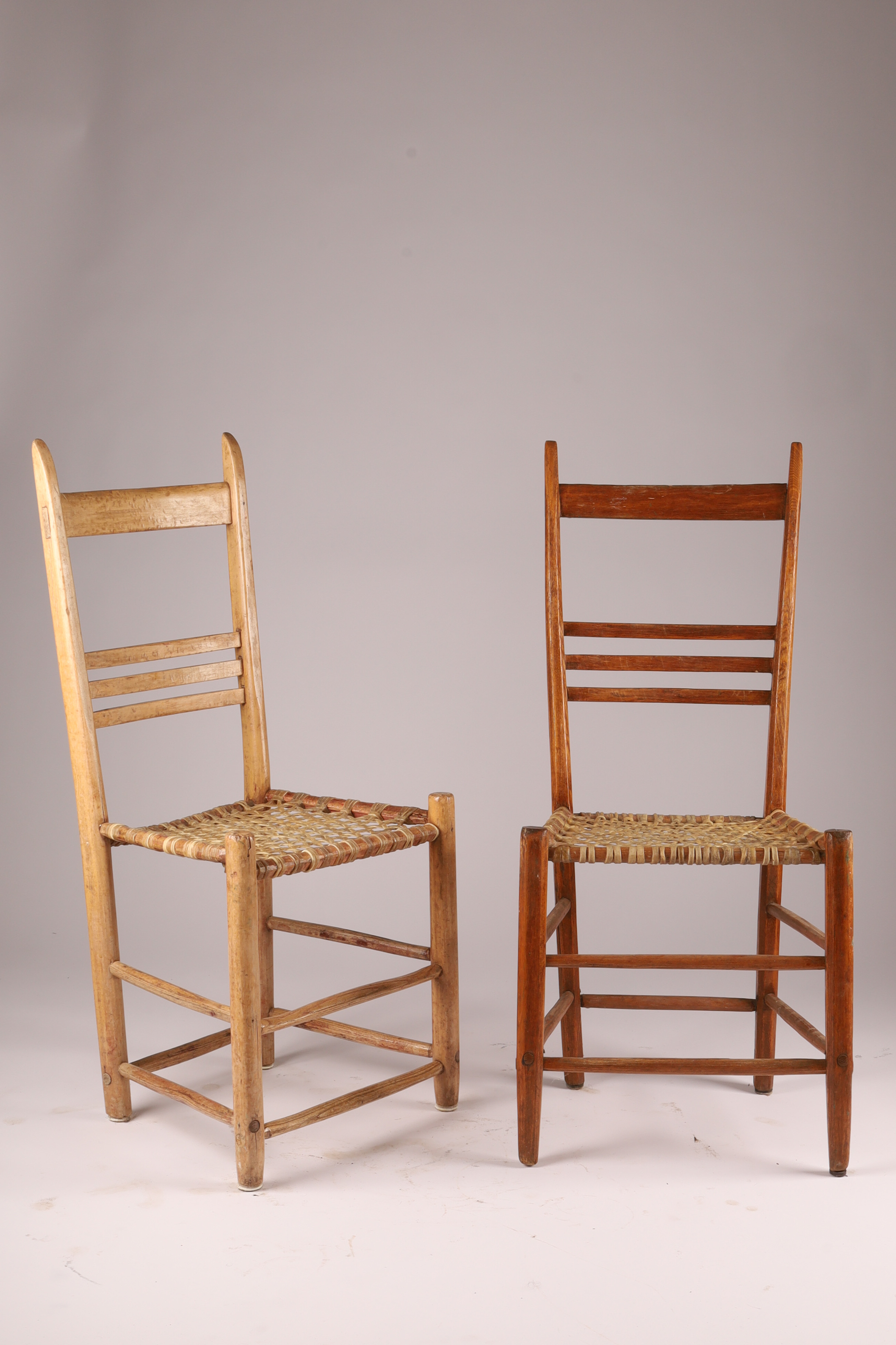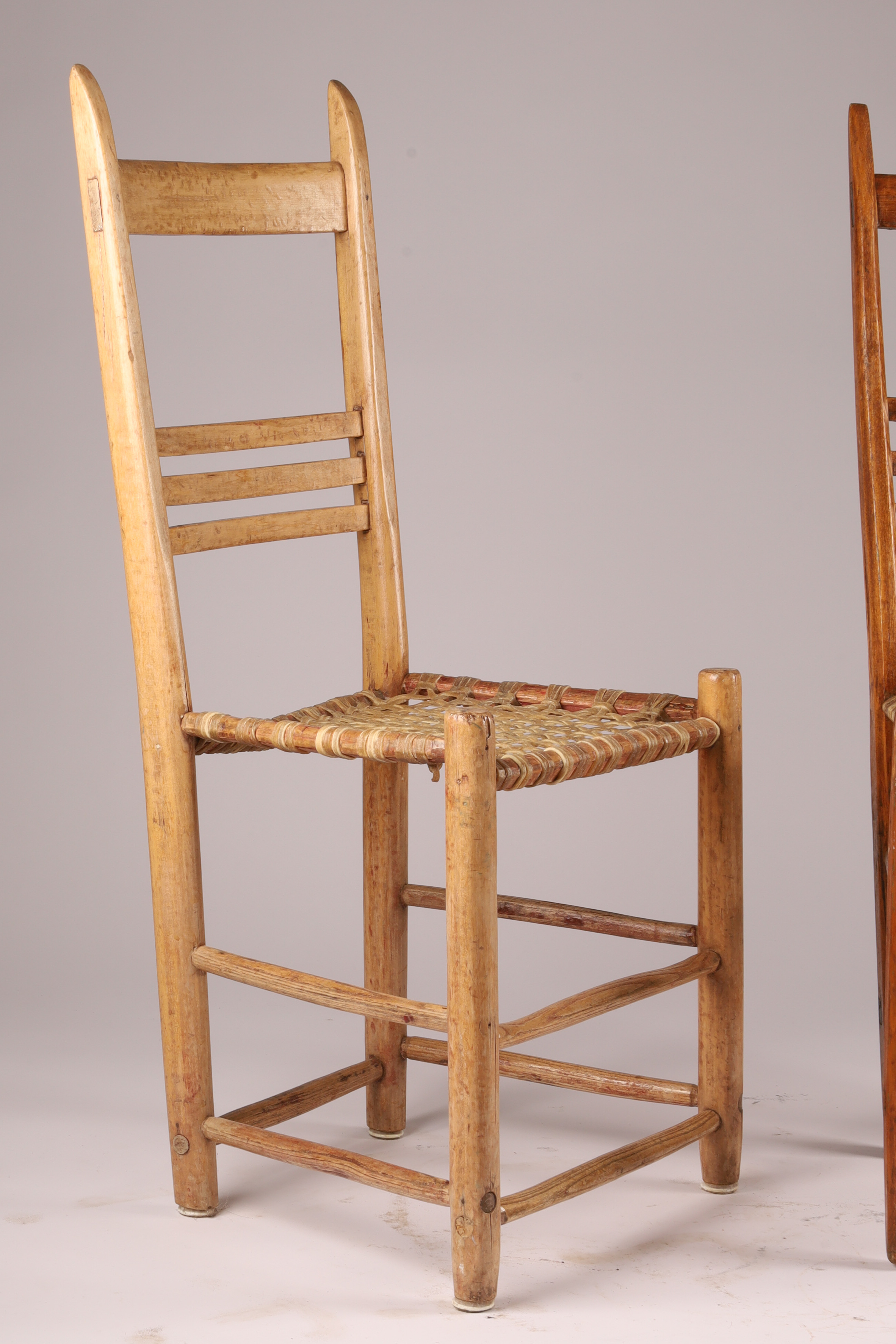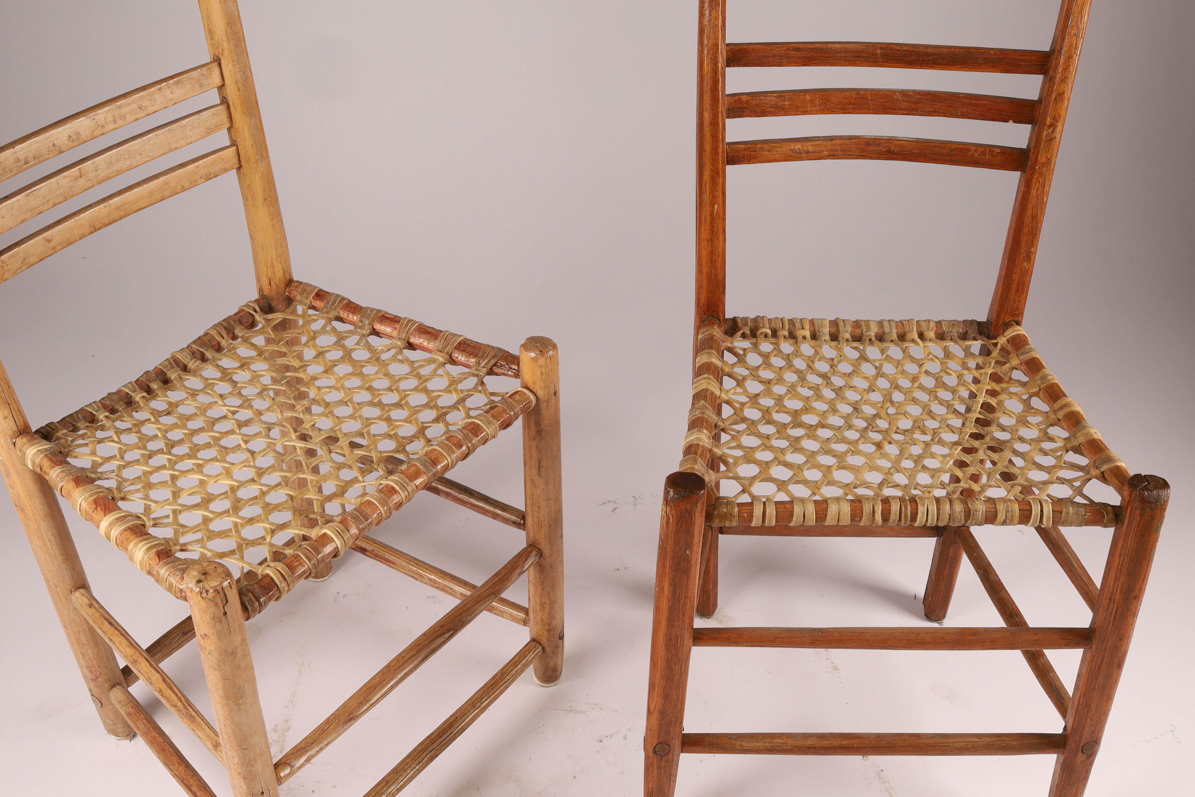 Pair of Antique Quebec Babiche Ladder Back Rabbit Ear Chairs