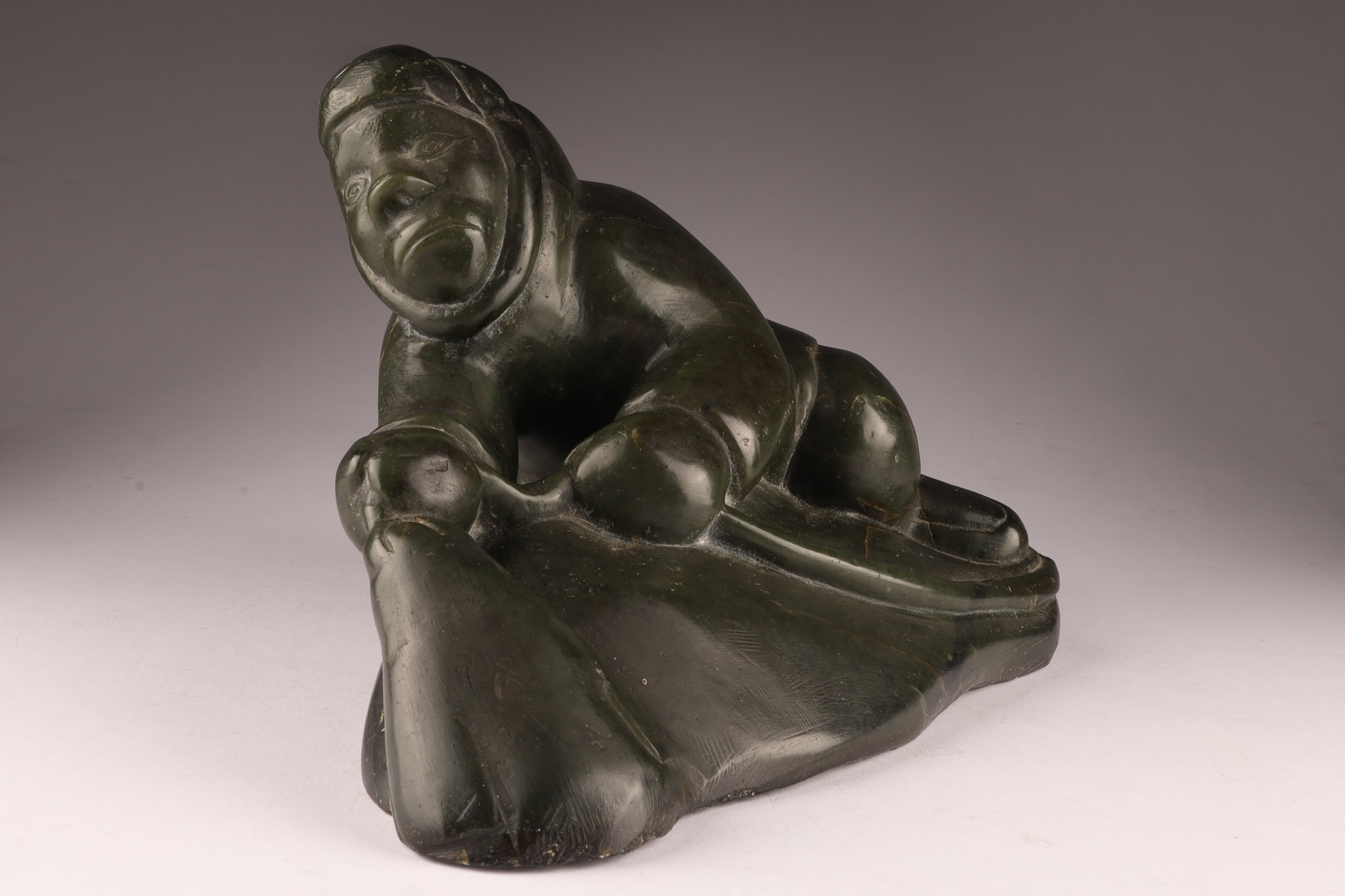 Inuit Soapstone Sculpture Hunter. 9 1/4 x 6 x 5 1/2 inches