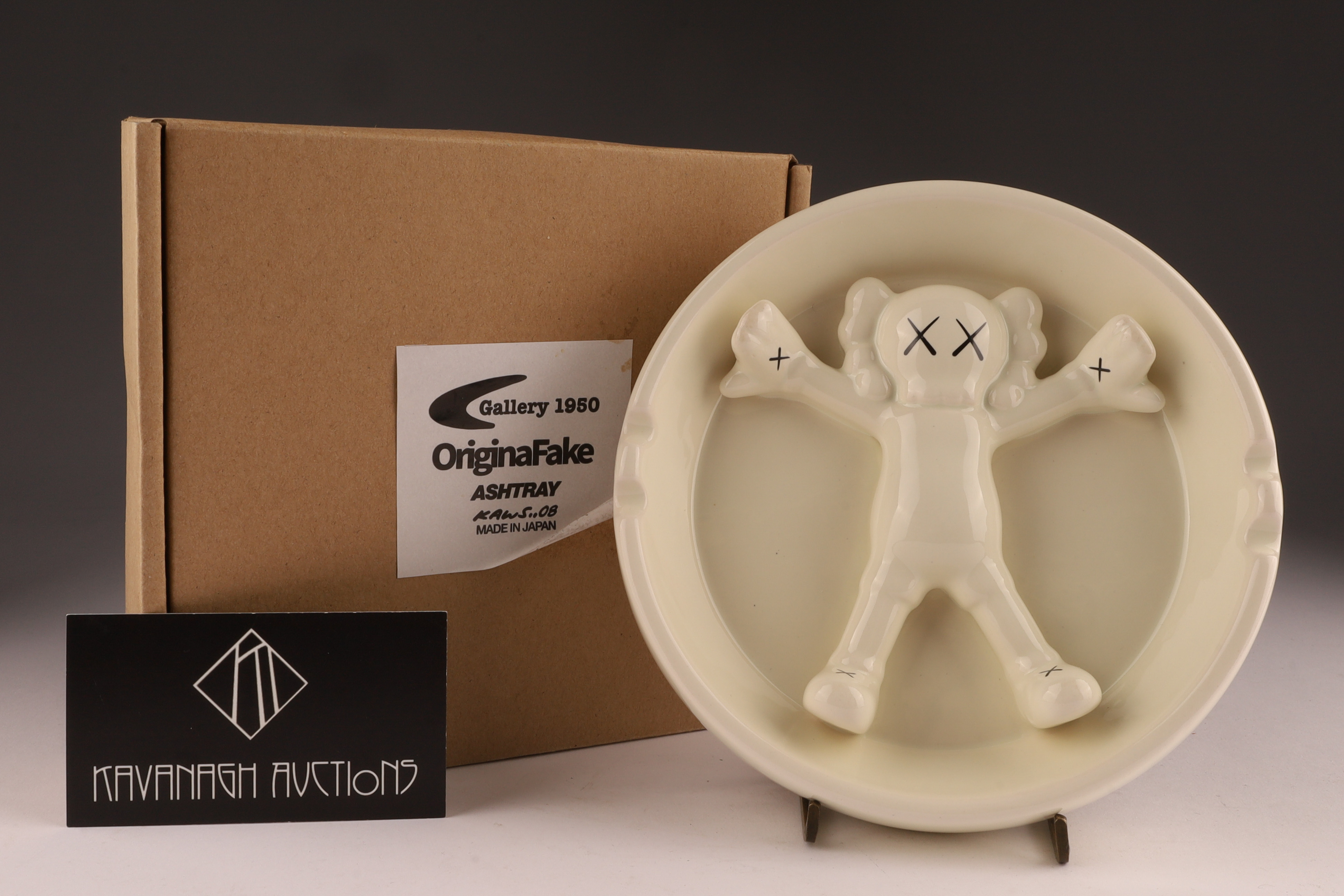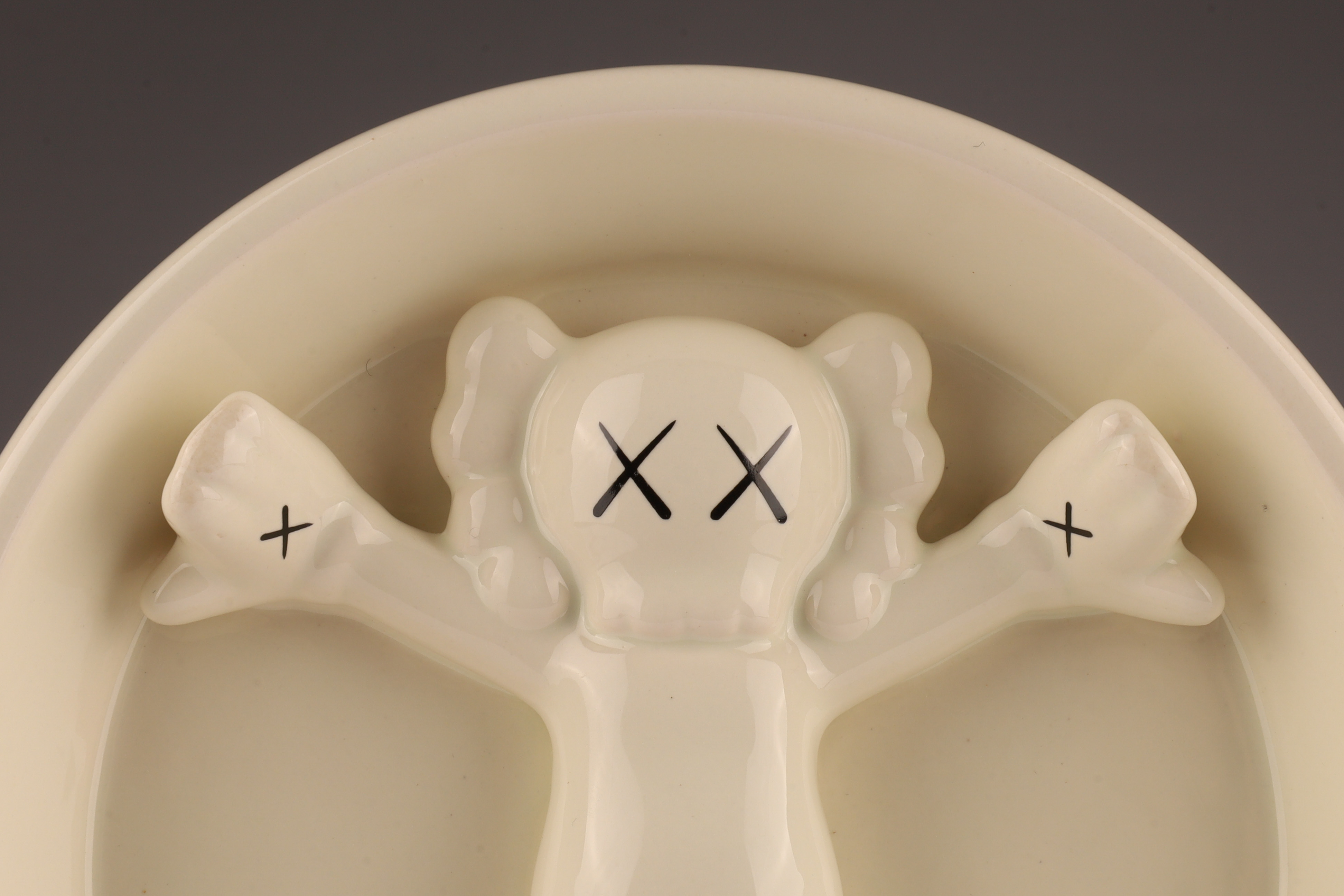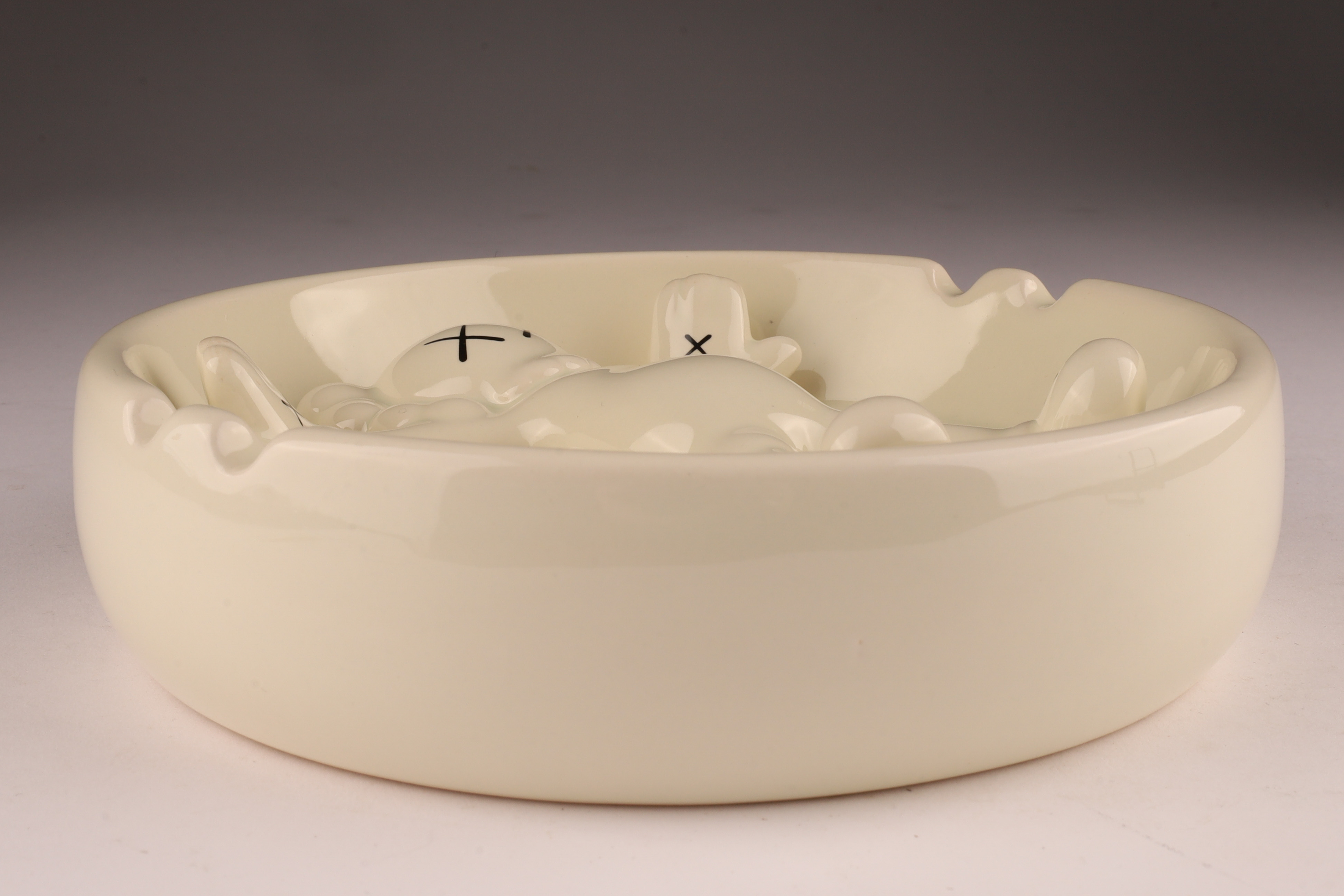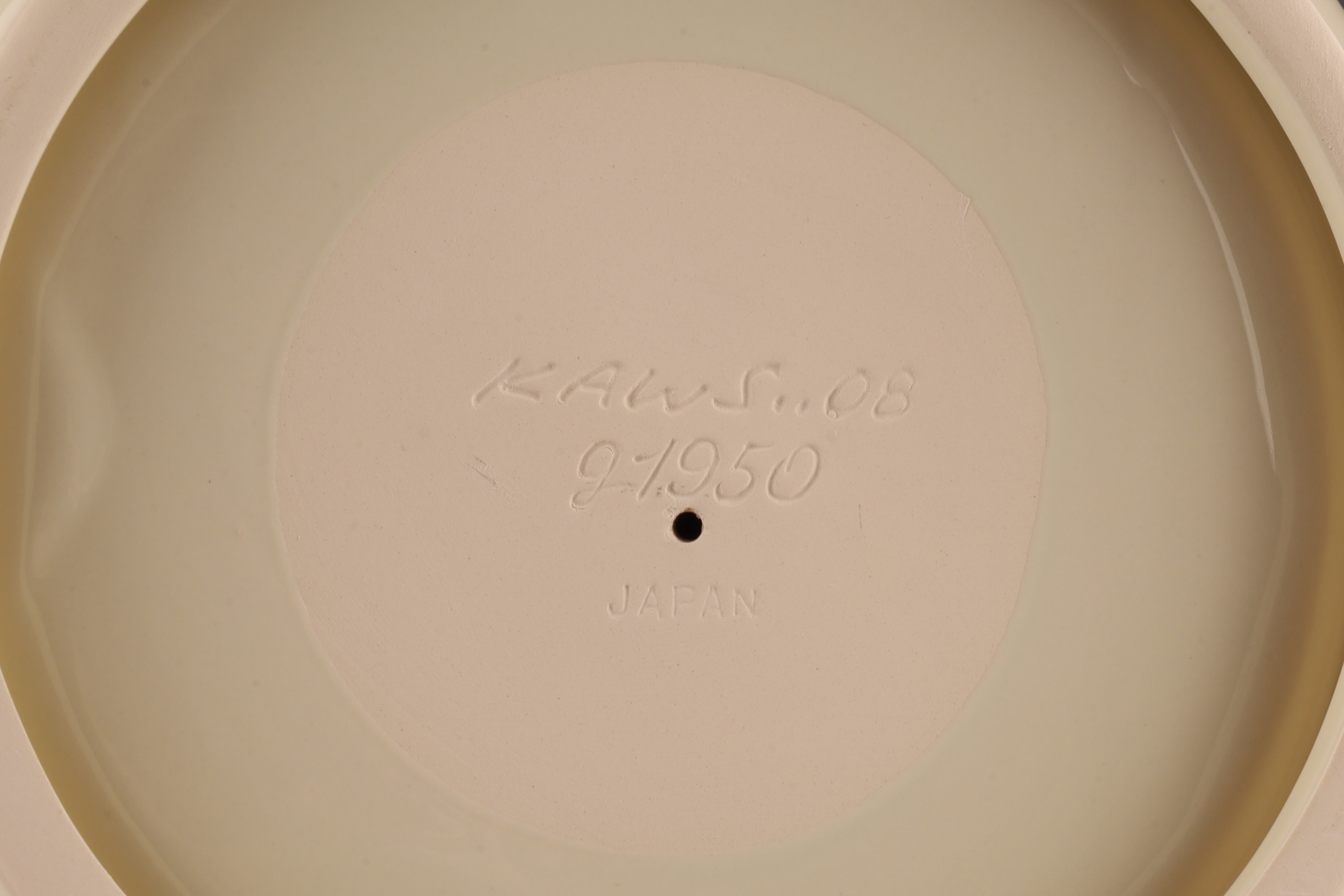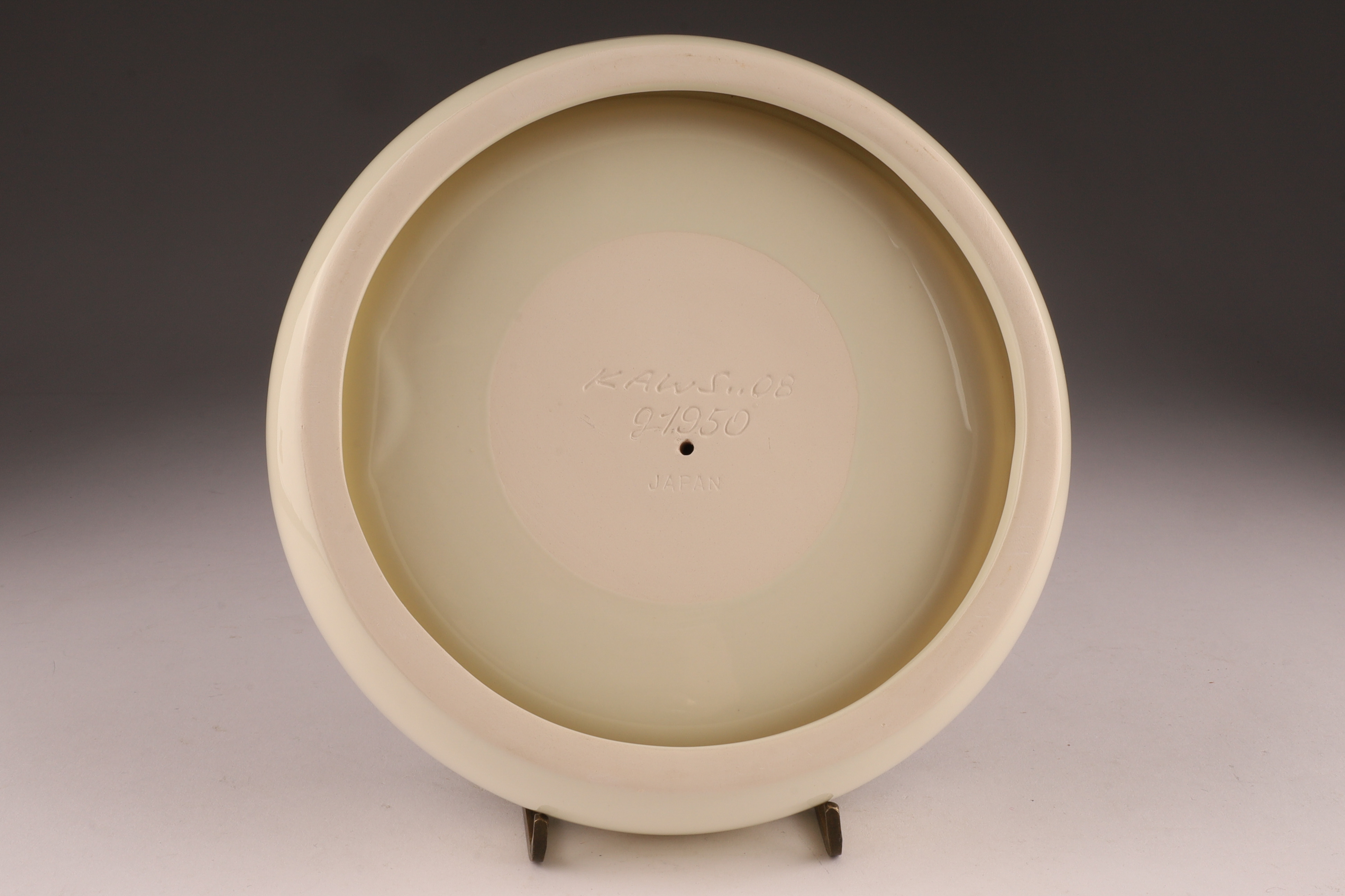 Whiteware ceramic with glazing, Published by Gallery 1950, Japan. In original box, measuring 6.25 inches diameter