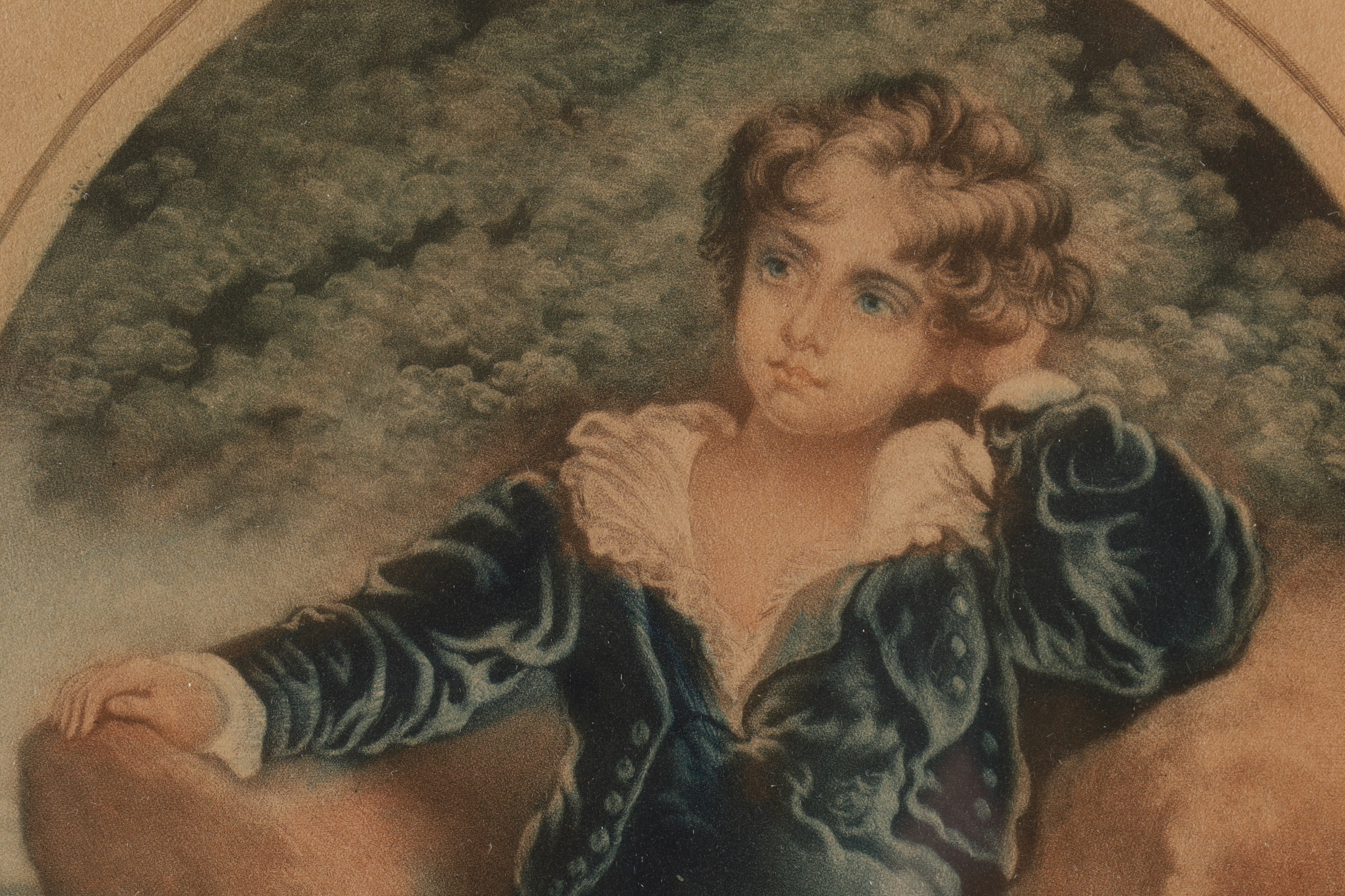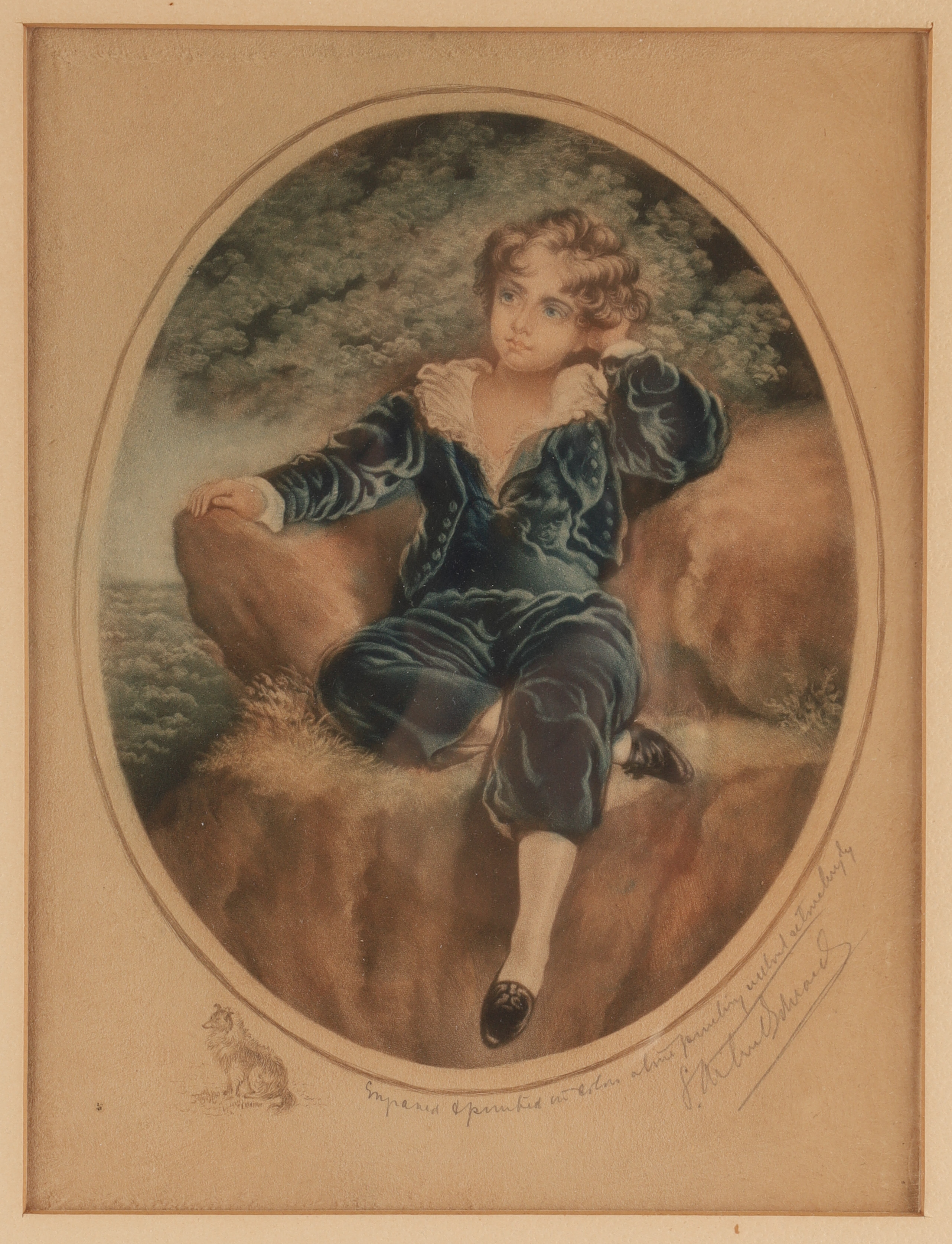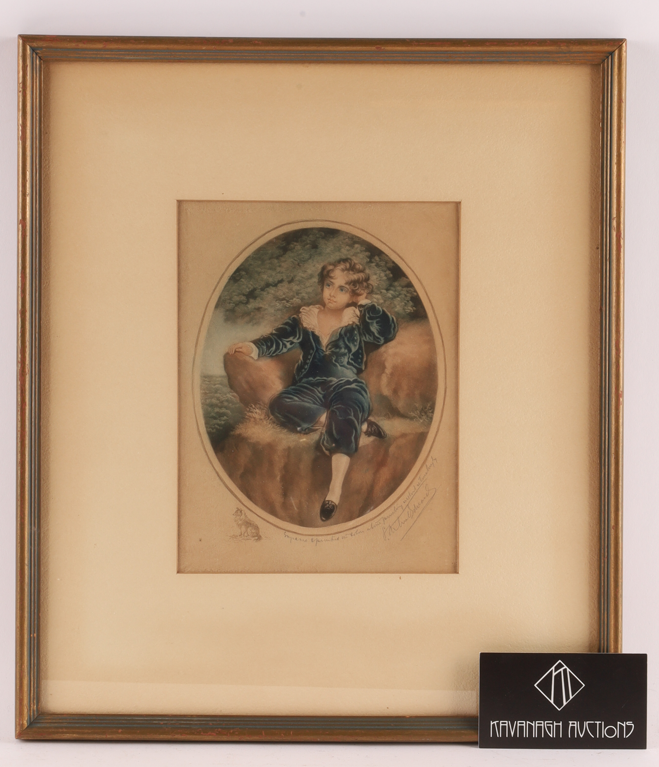 Antique mezzotint engraving by Samuel Arlent Edwards, based on the famous painting “The Red Boy” (also known as “Master Lambton”) by Sir Thomas Lawrence. The original painting, completed in 1825, is a portrait of Charles William Lambton, aged six or seven. Image measures 8 inches H x 6 W, 15 inches x 13 framed.