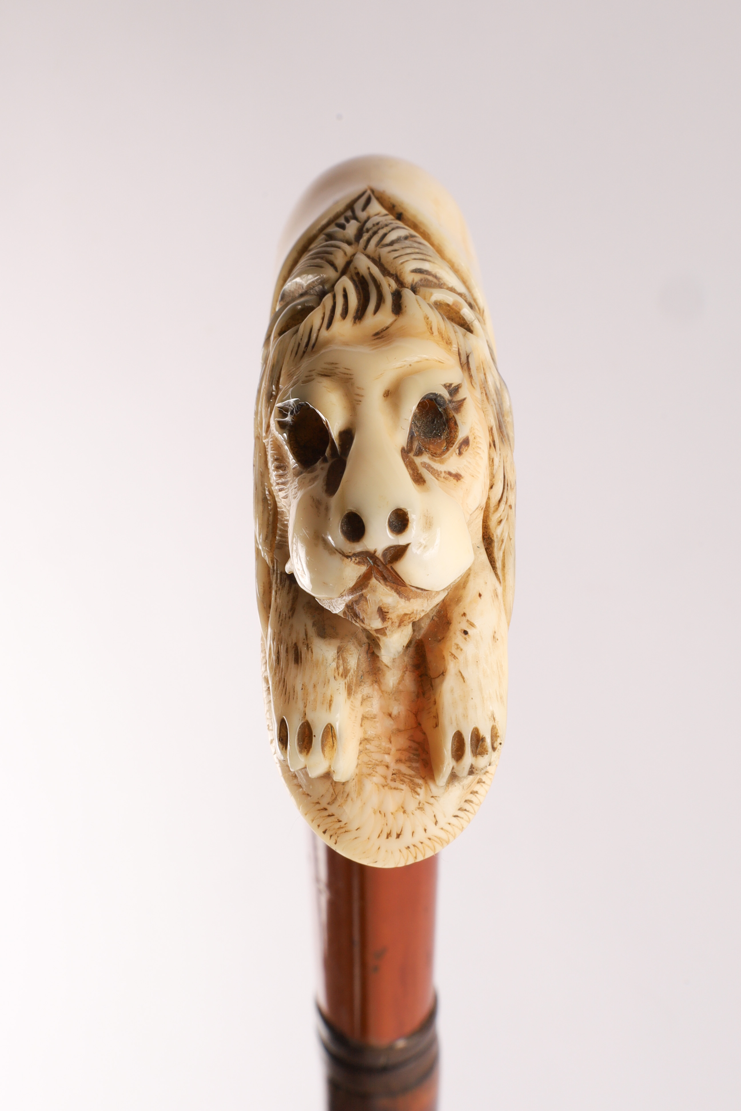 Antique Victorian Cane Walking Stick Sword, Carved Lion Handle