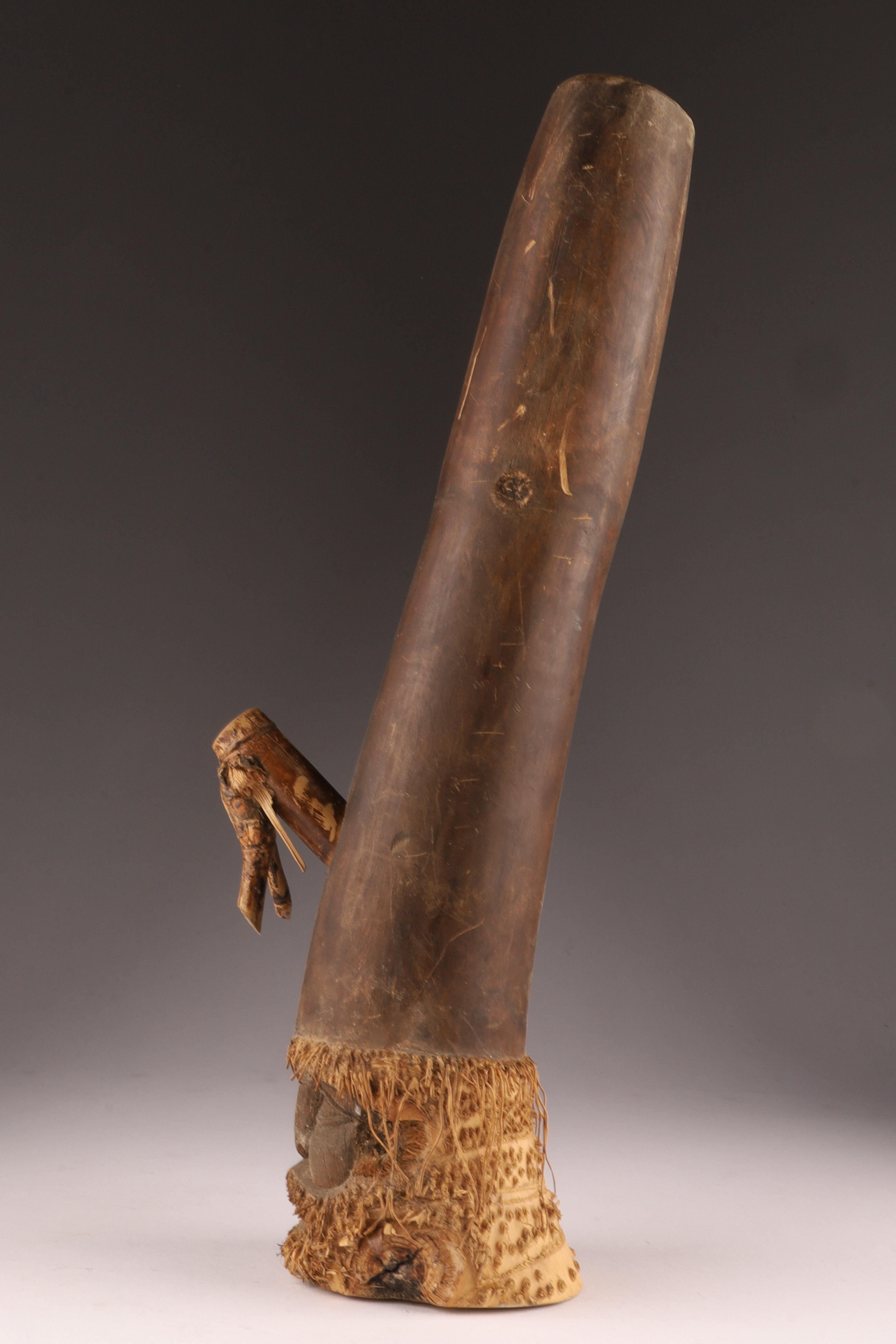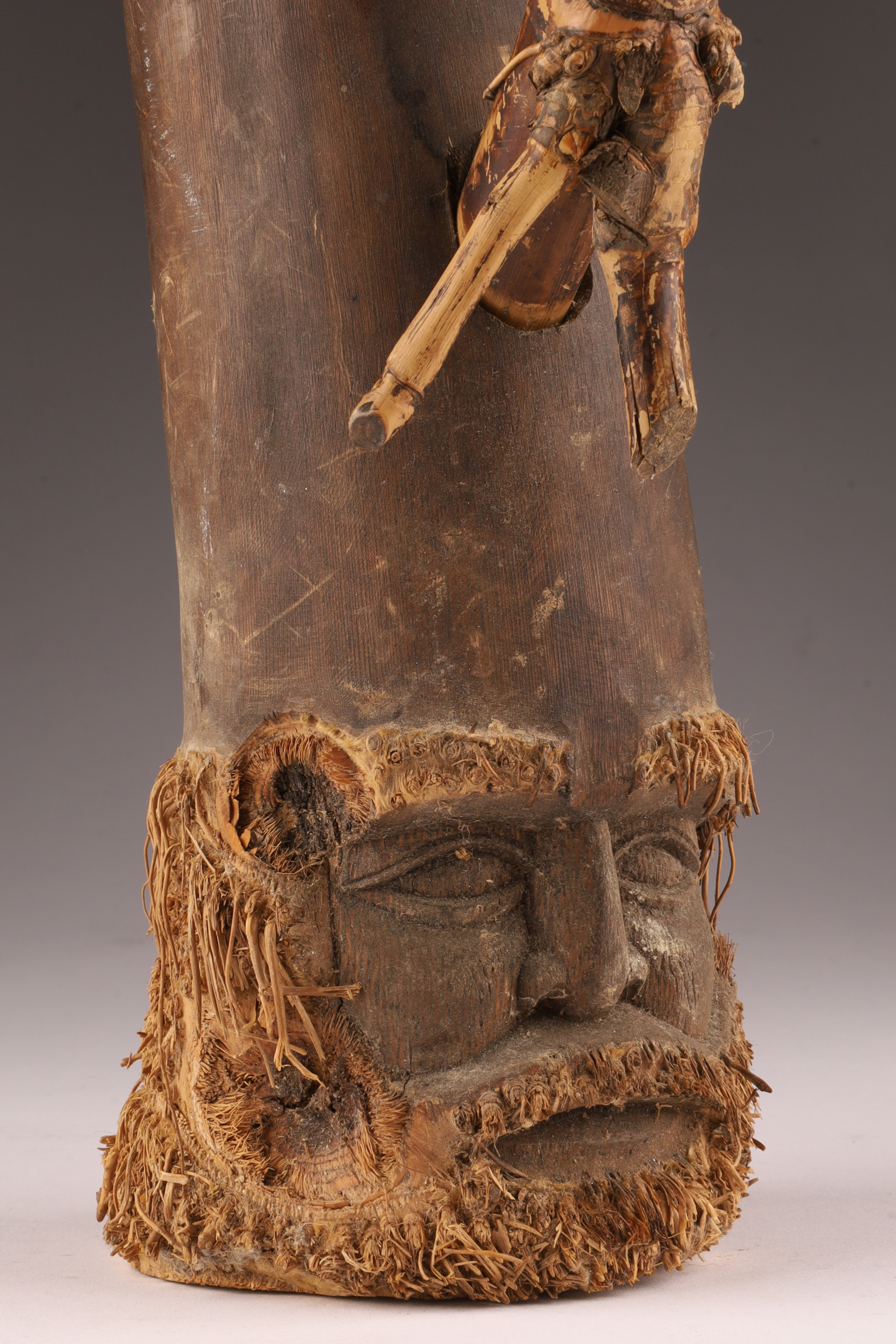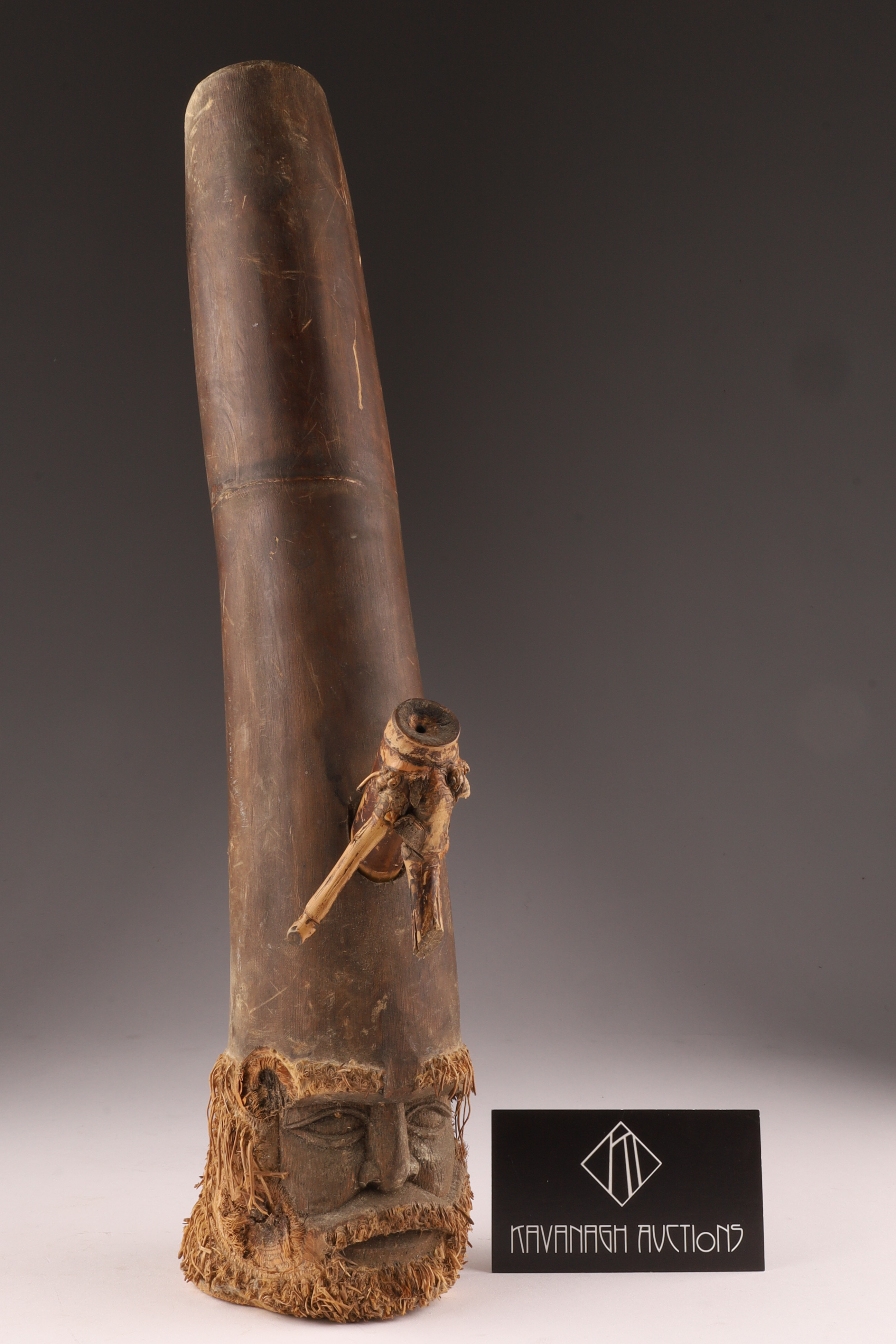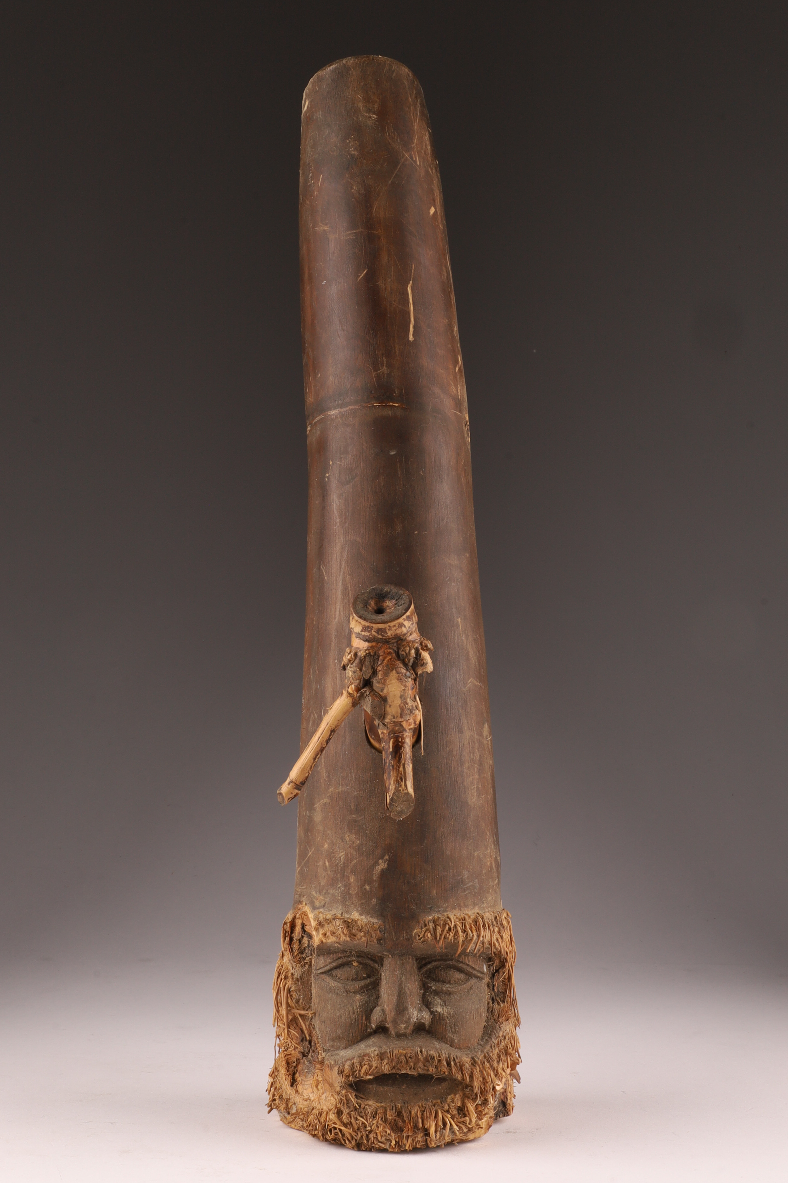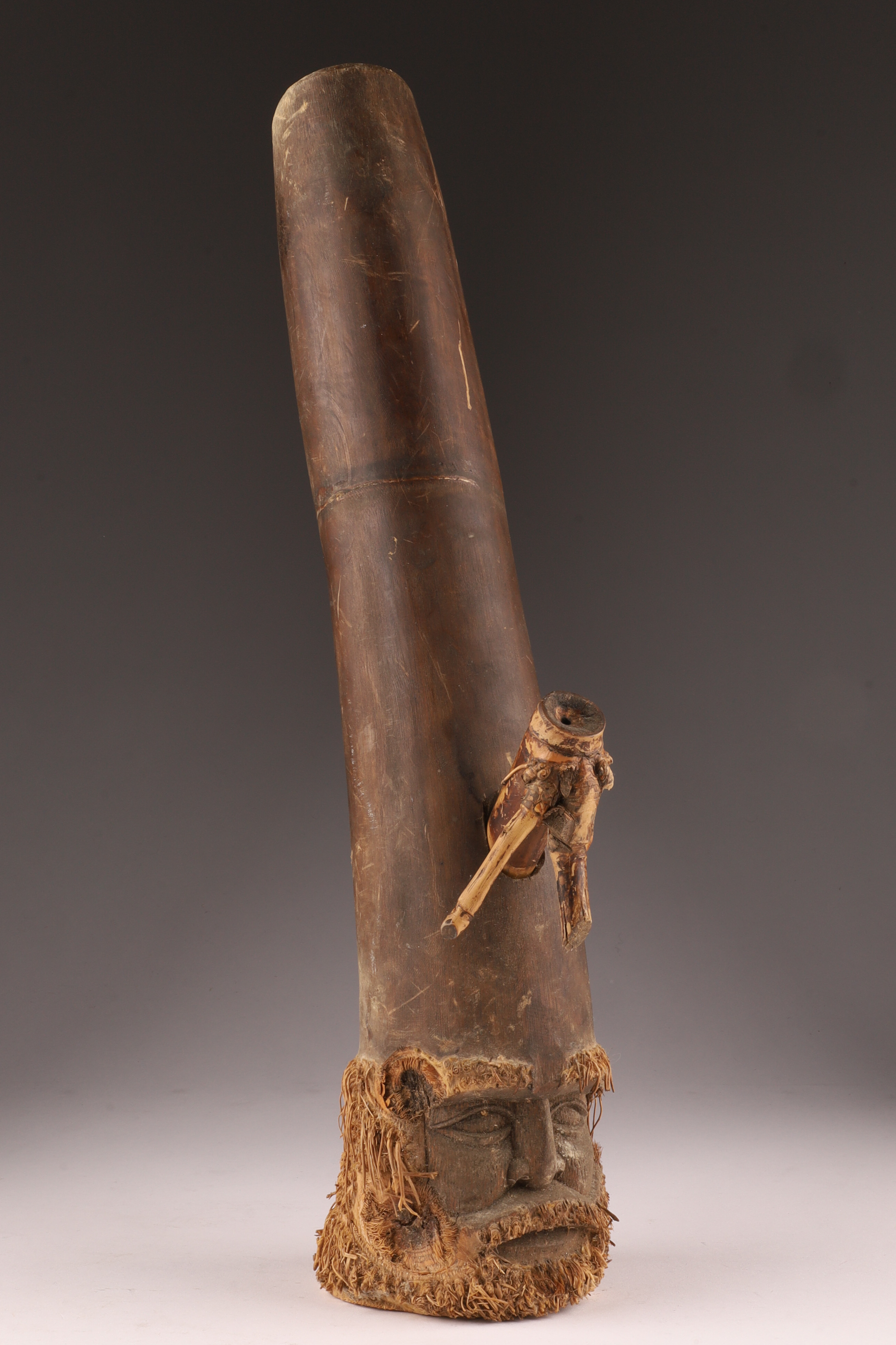 Tribal Bamboo Pipe with Carved Bearded Head, Sepik River Region, Papua New Guinea, mid-20th Century