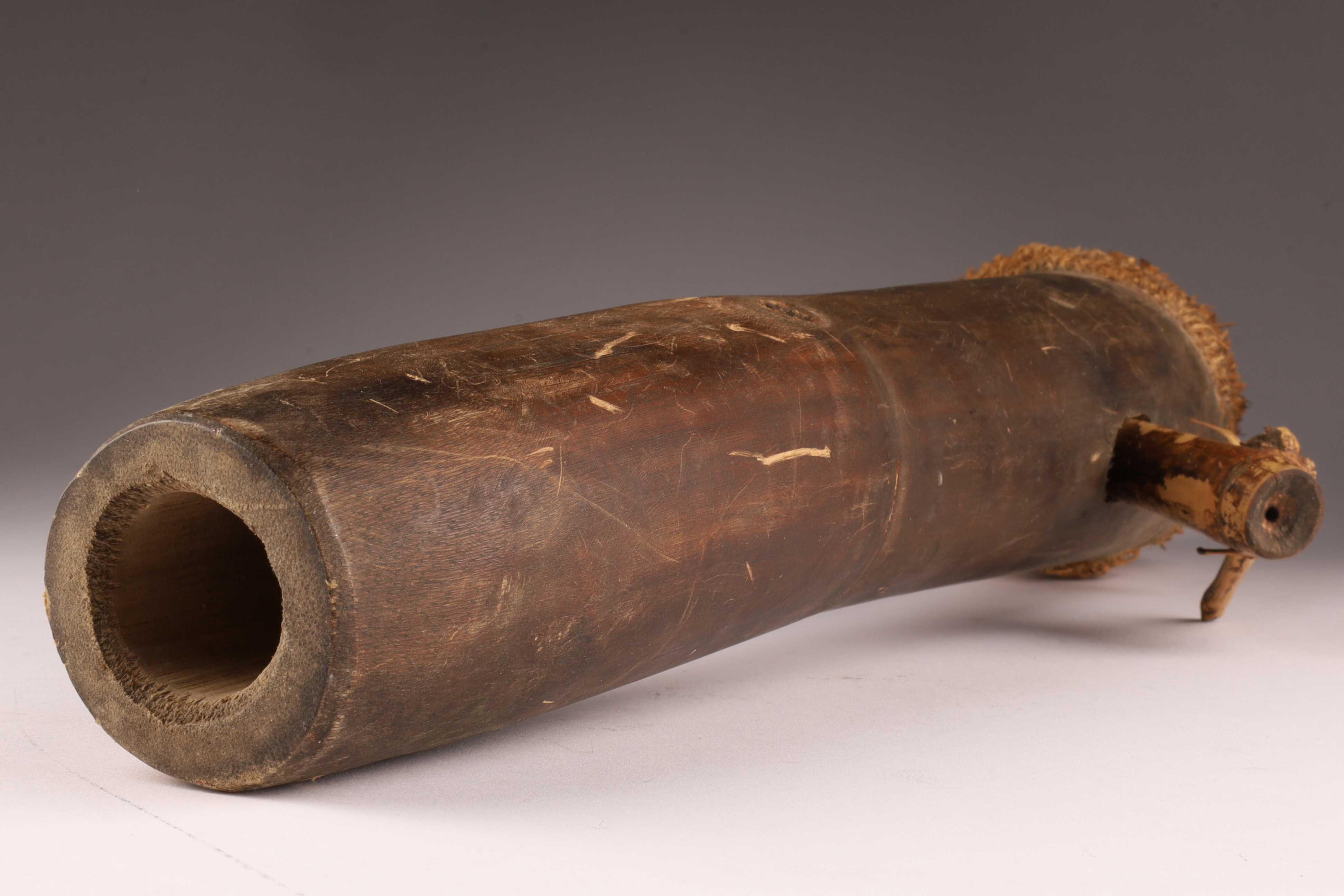 Condition: Age-consistent wear; surface patina and smoke darkening; minor fissures and losses to fiber elements. Structurally sound and complete.