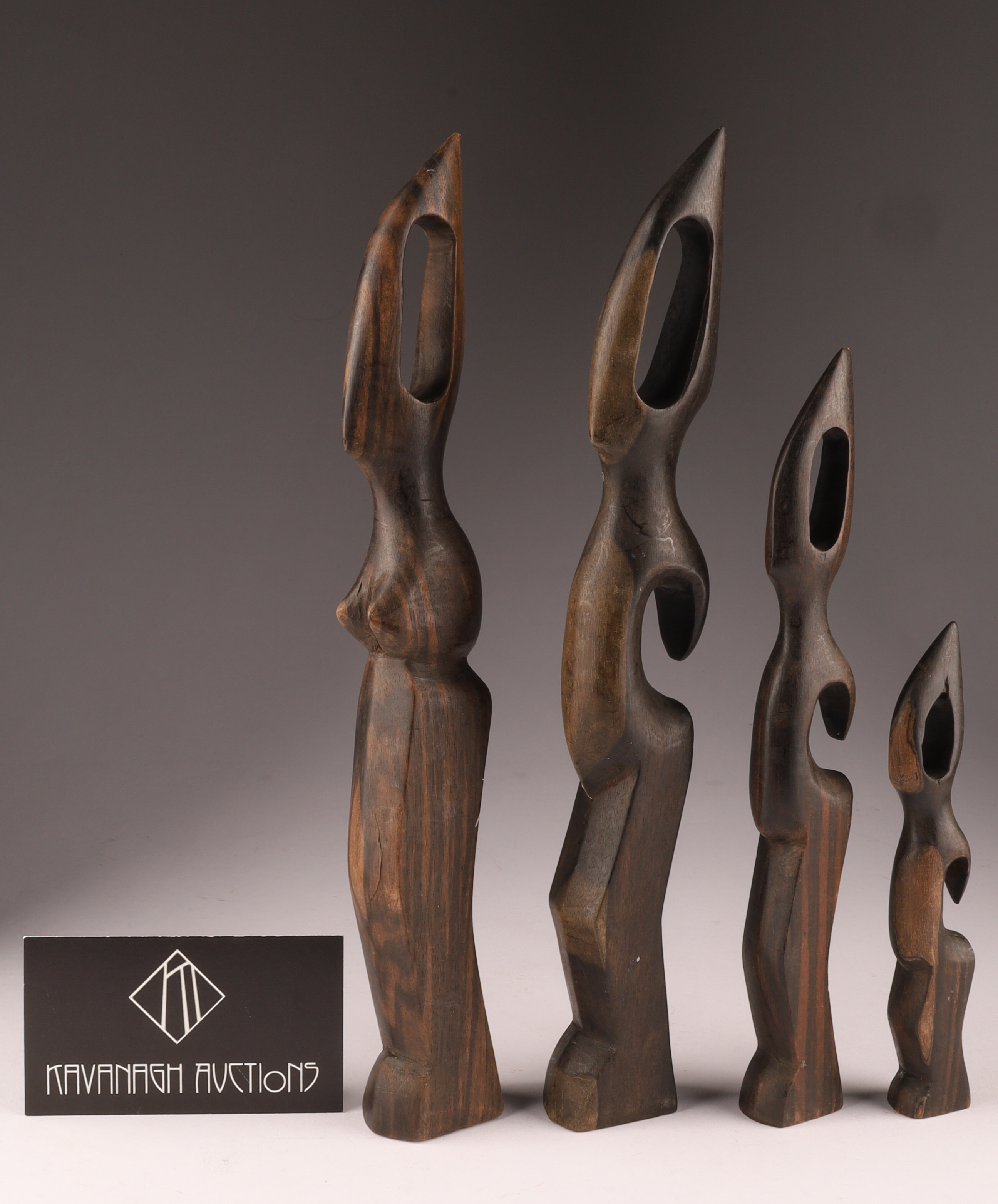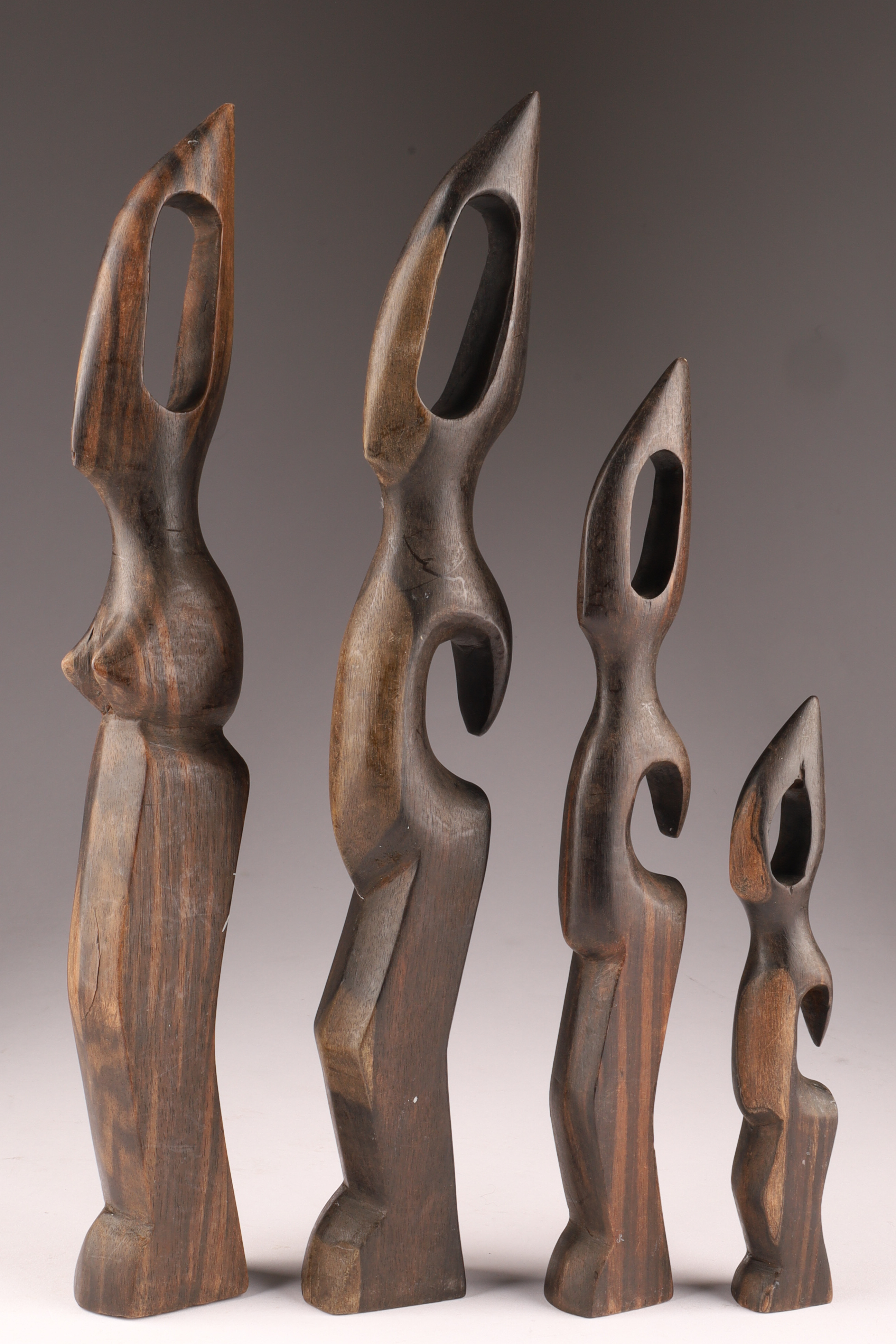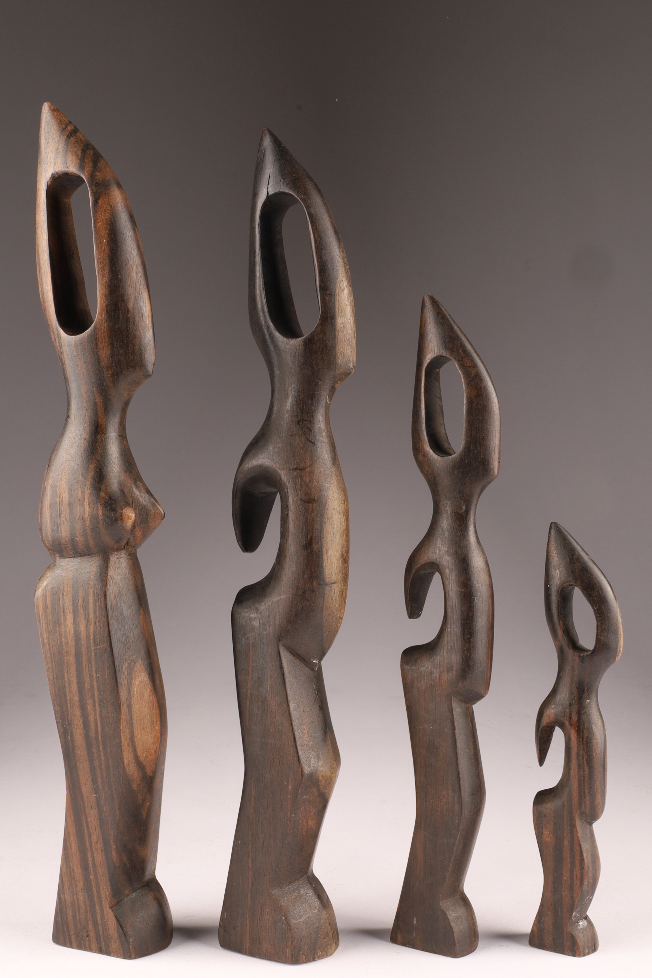 Set of 4 African Hand Carved Ebony Biomorphic Human Figures Sculptures