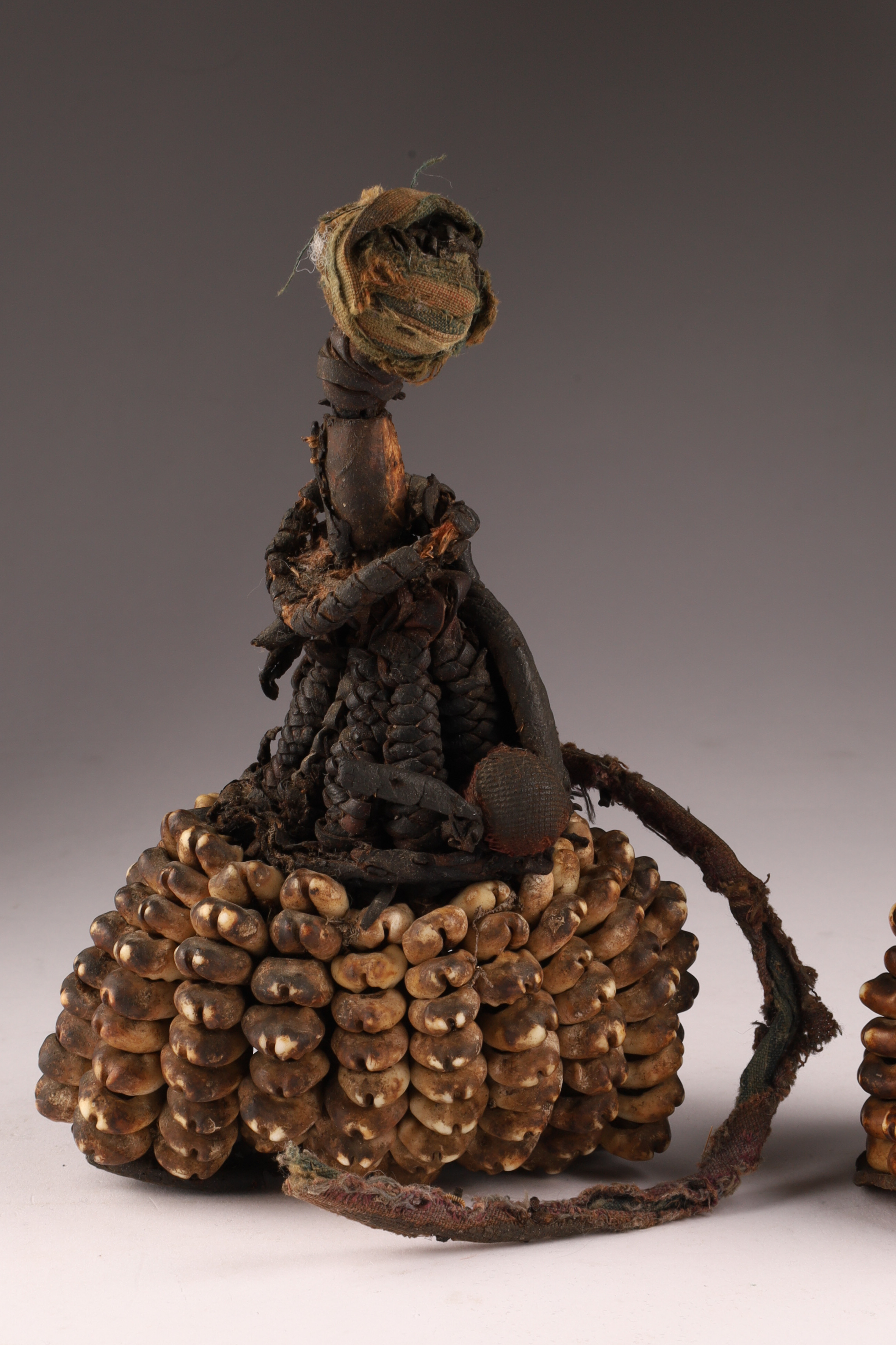 Lot Antique African Benin Yoruba Cowrie Shell and Leather Ritual Ibori / Ori Inu