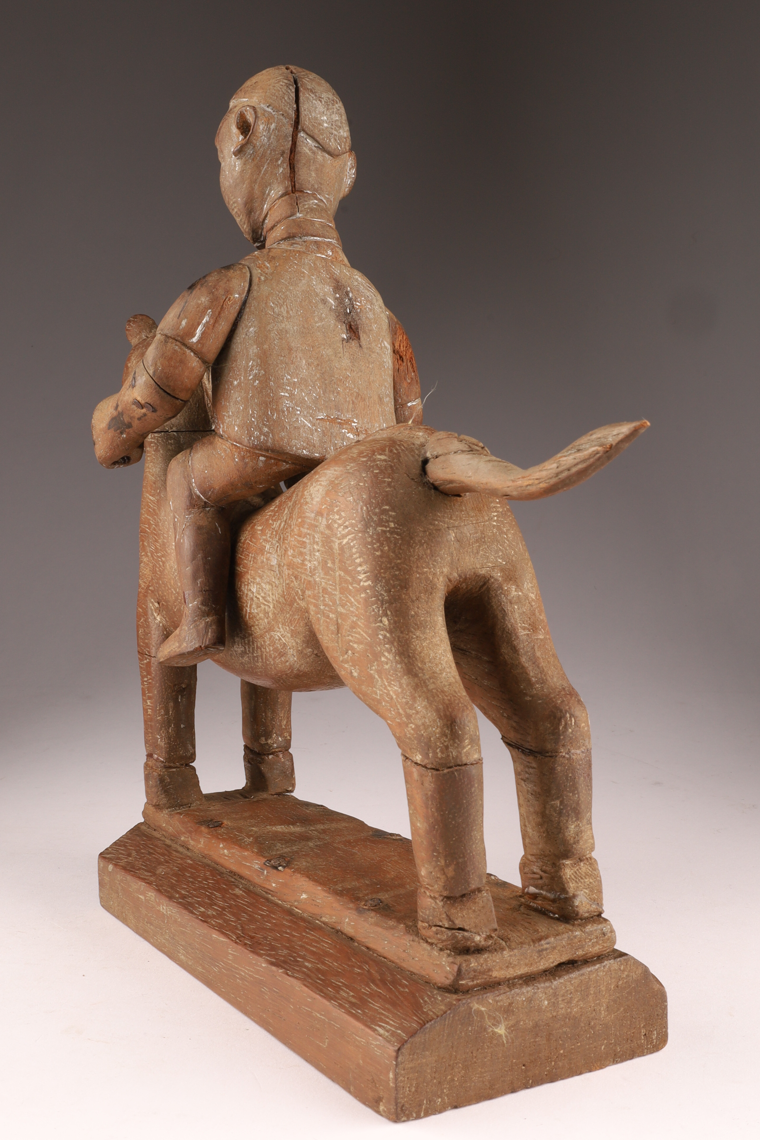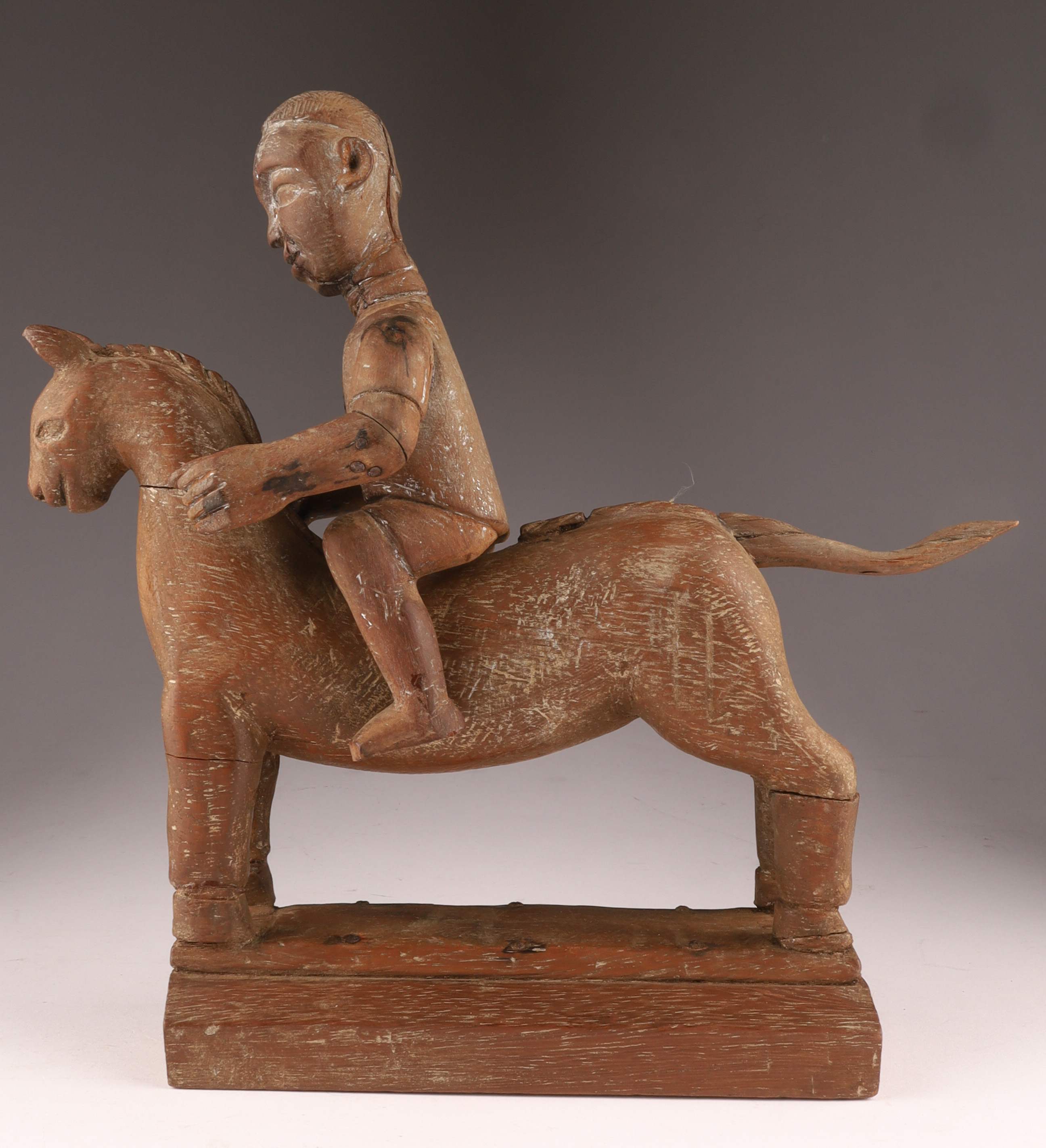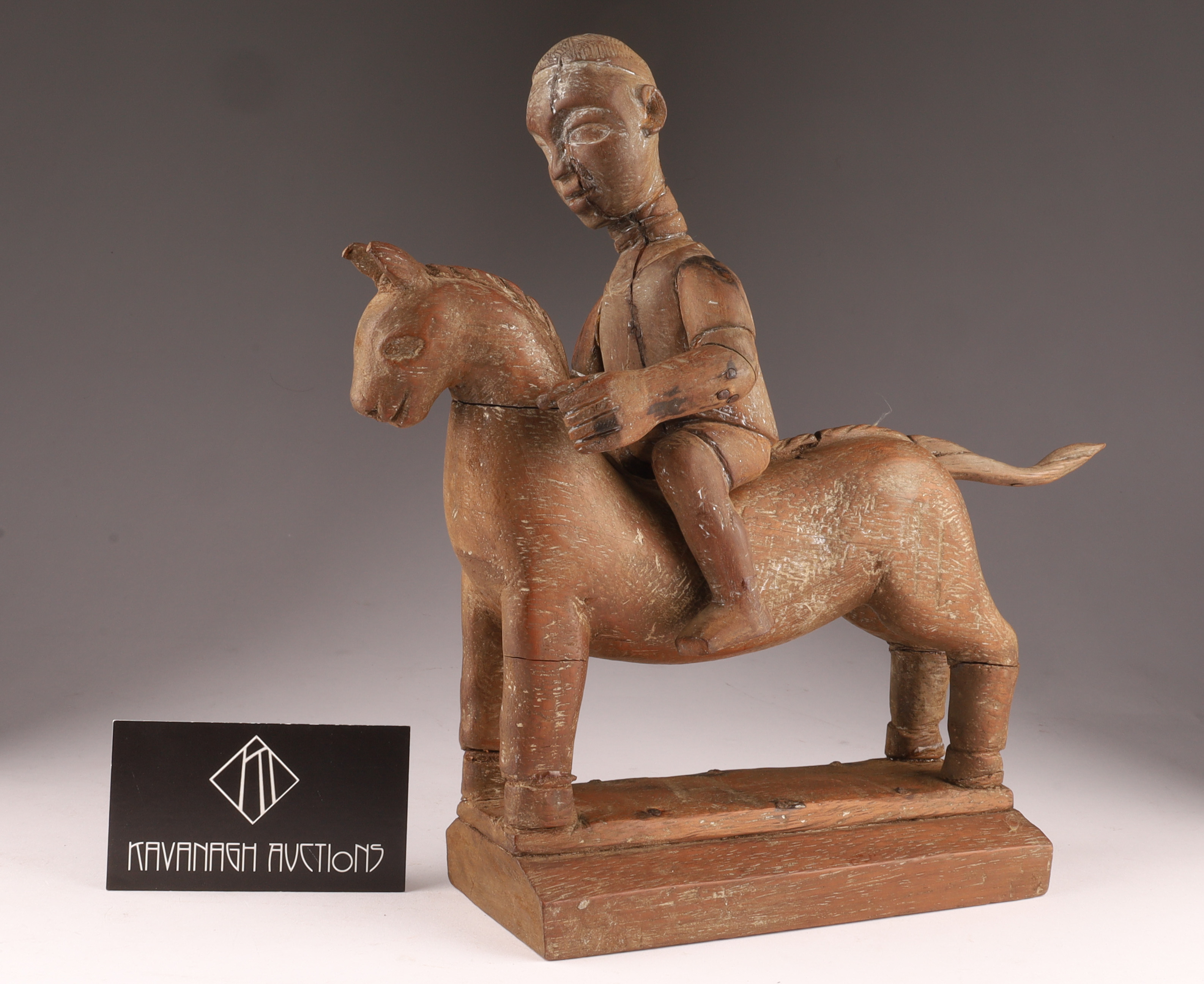 African Carved Hardwood Figural Group Rider on Horseback. Repairs, as shown. Measuring 11 inches H x 11 L x 3 W.