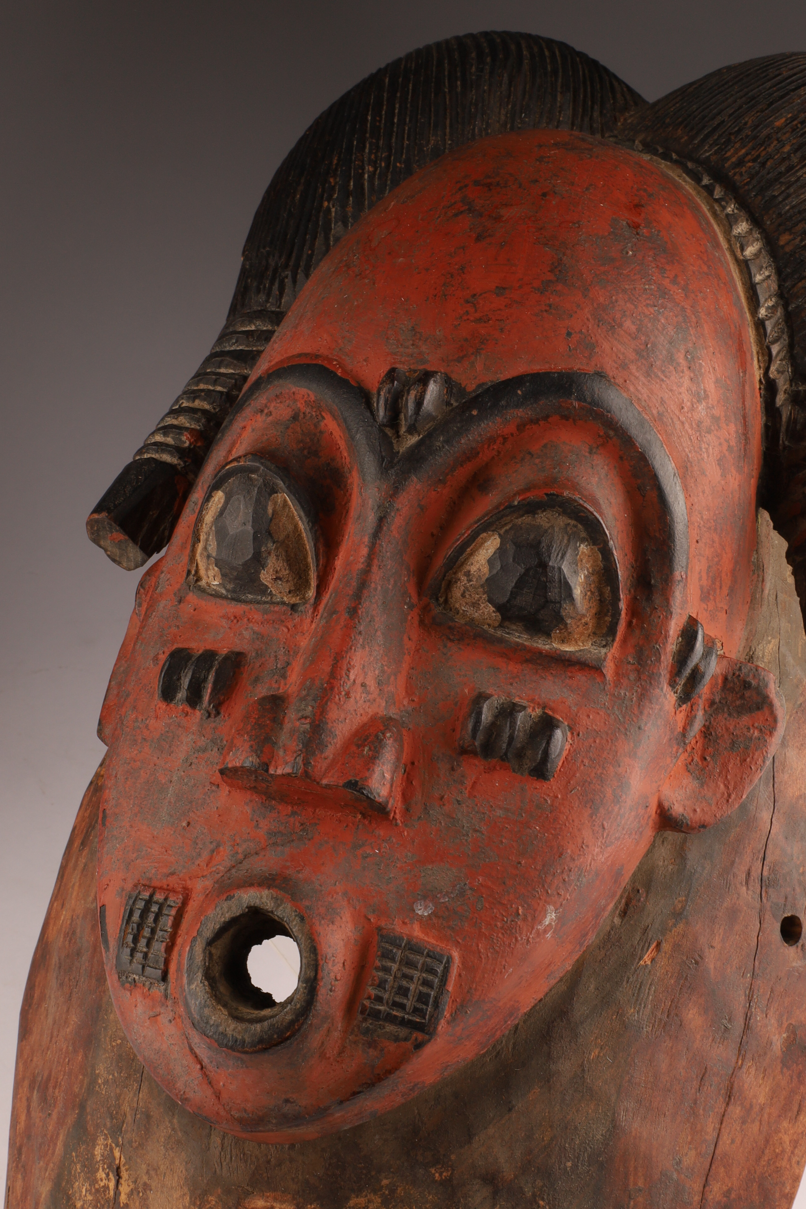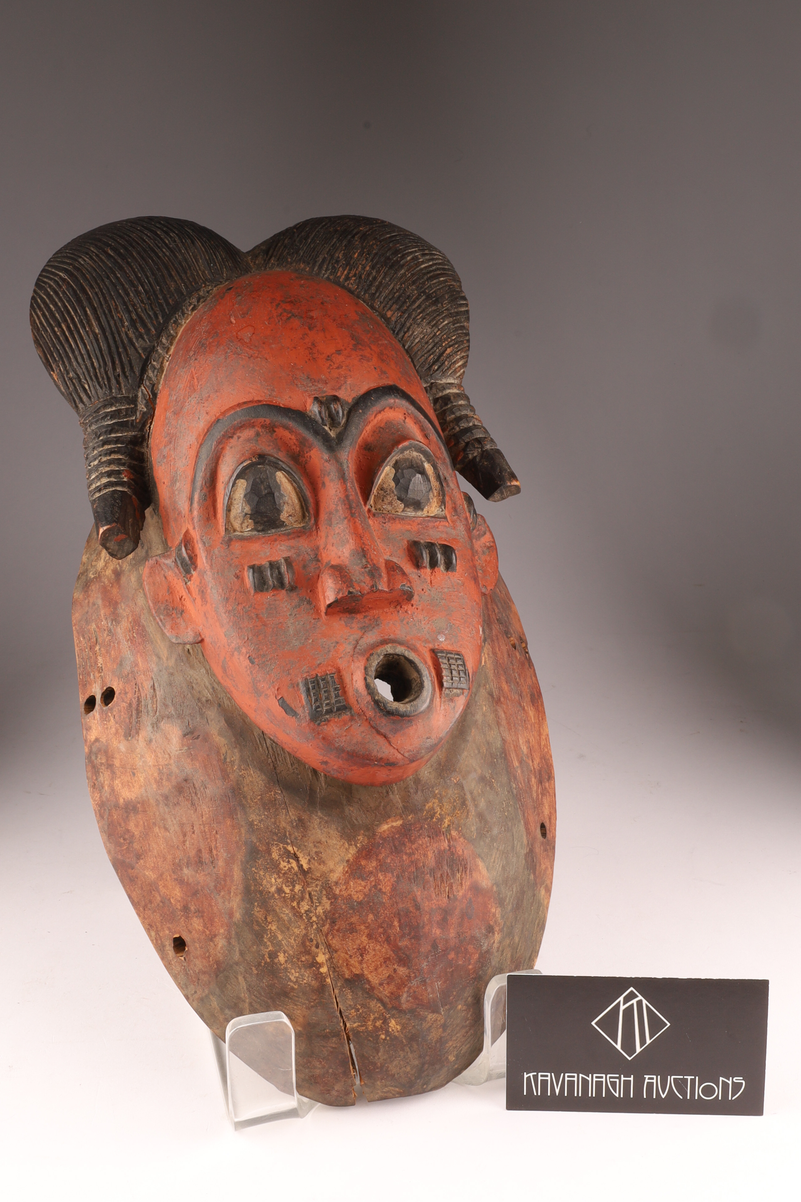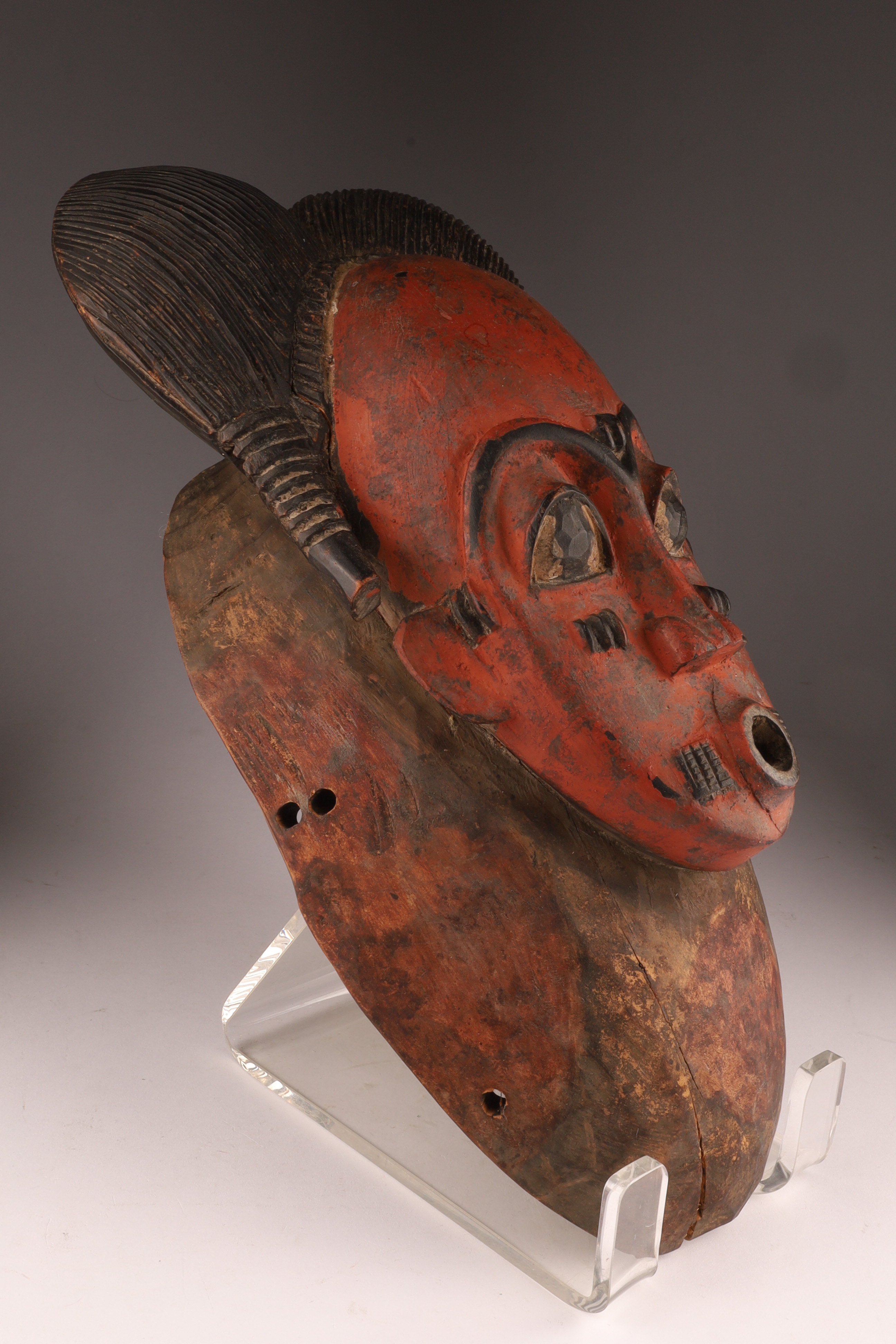 African Ivory Coast Polychrome Guro Mask measuring 16 inches H x 7 W,