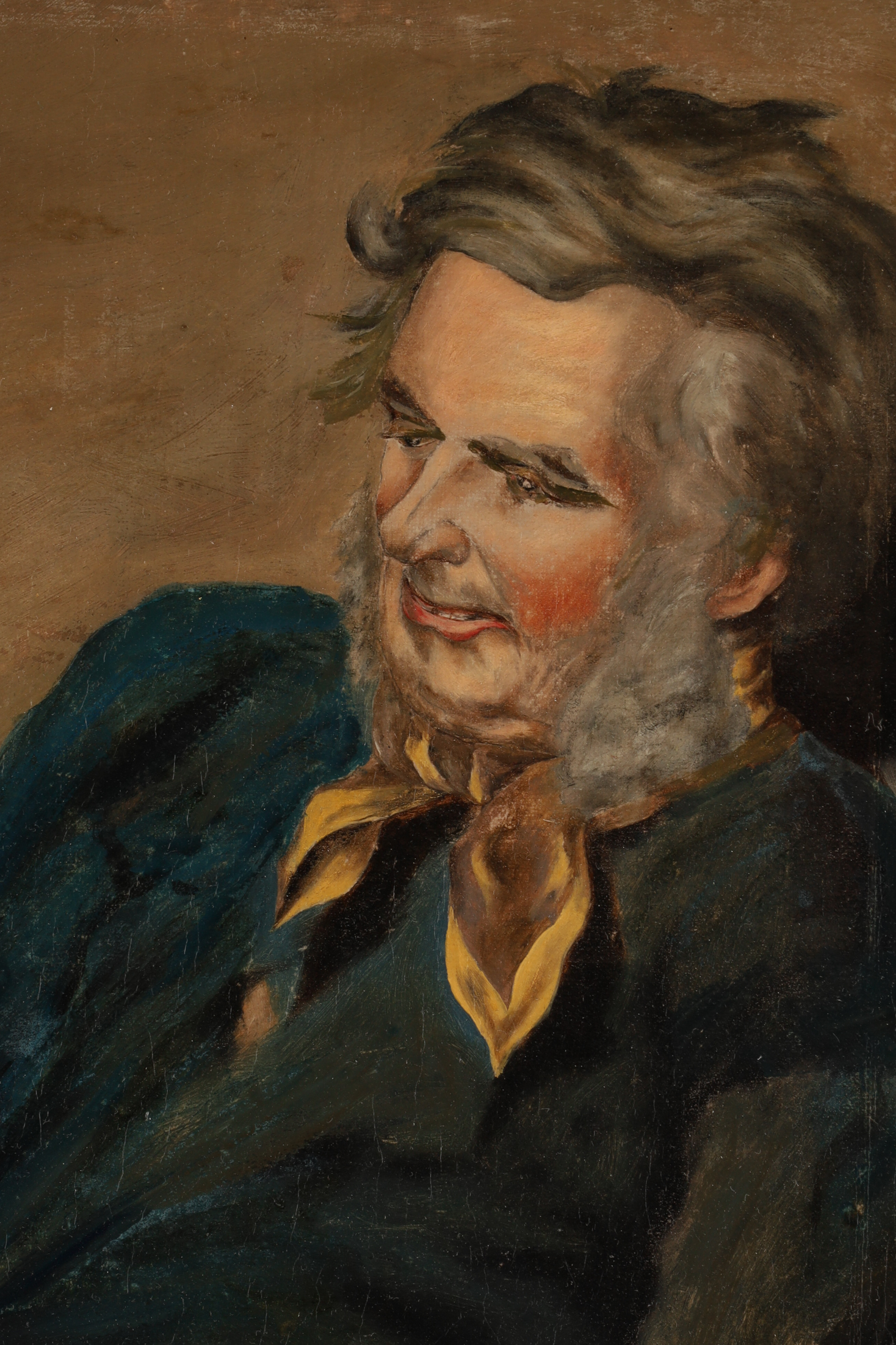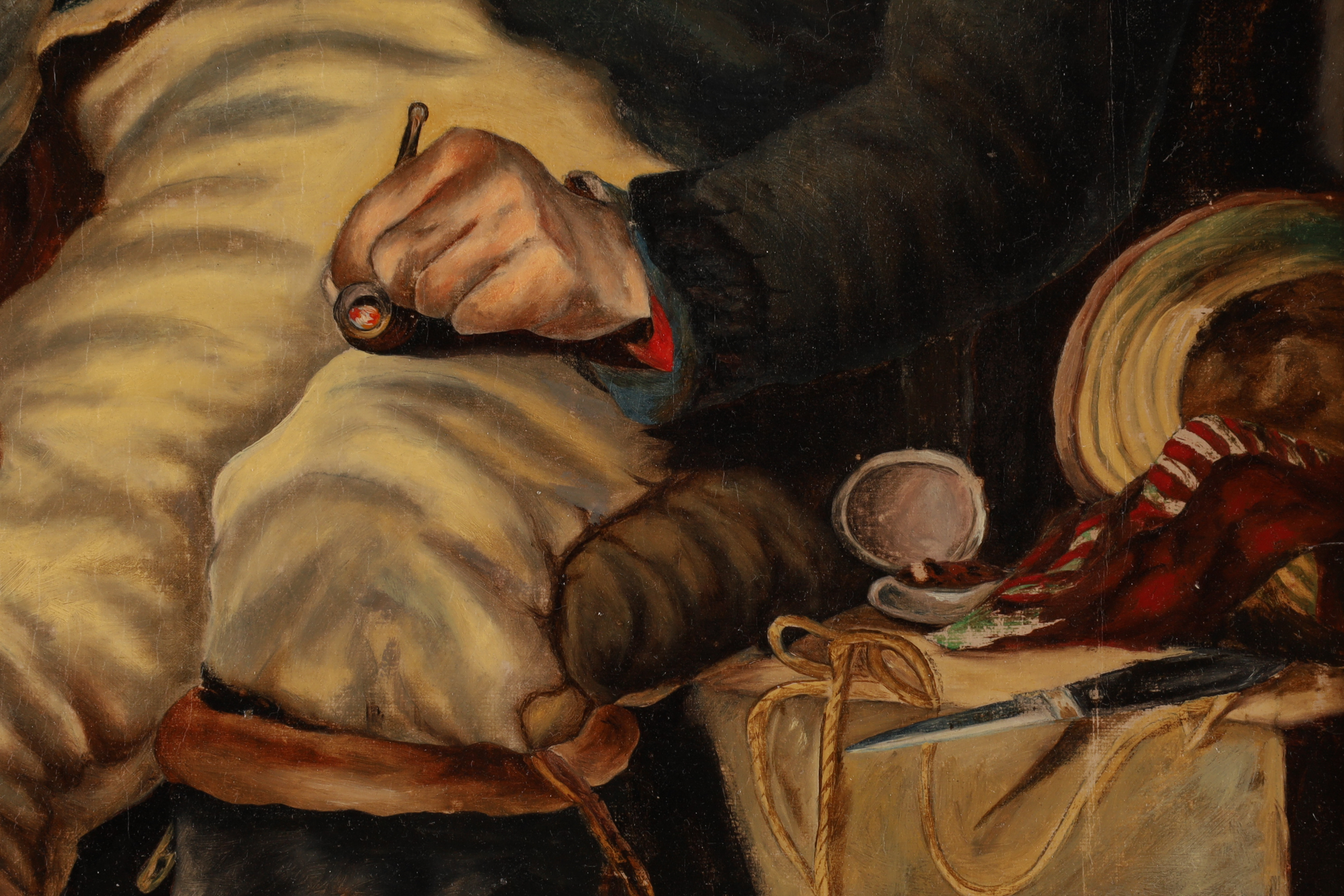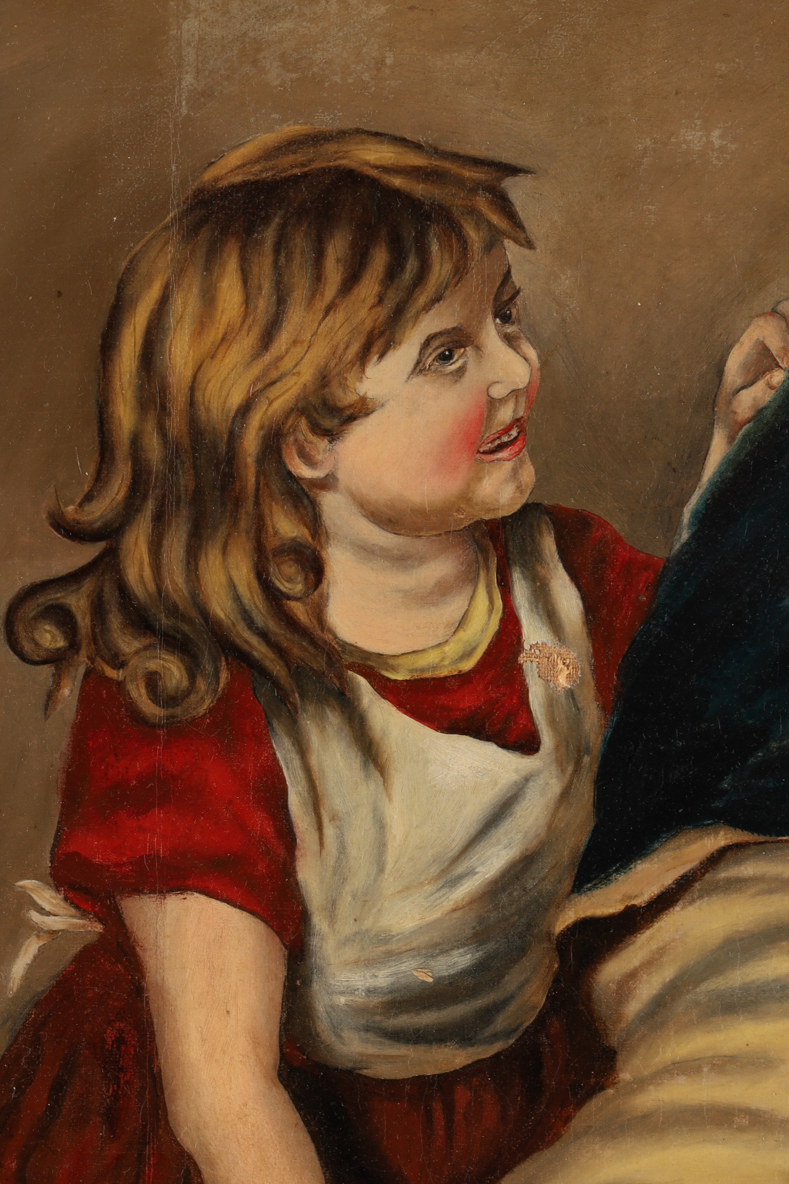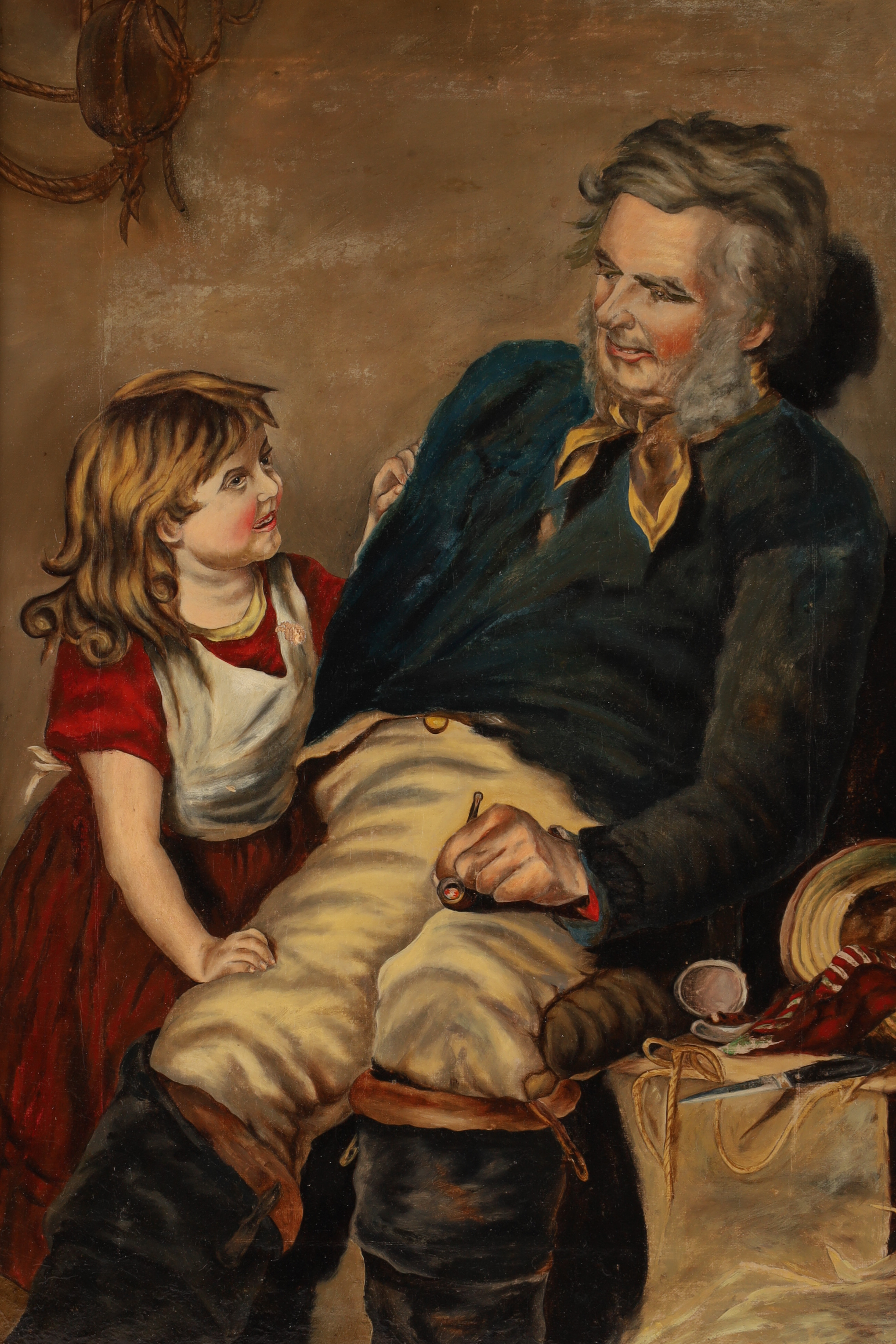 19th C American Folk Art Oil on Canvas Man with Child