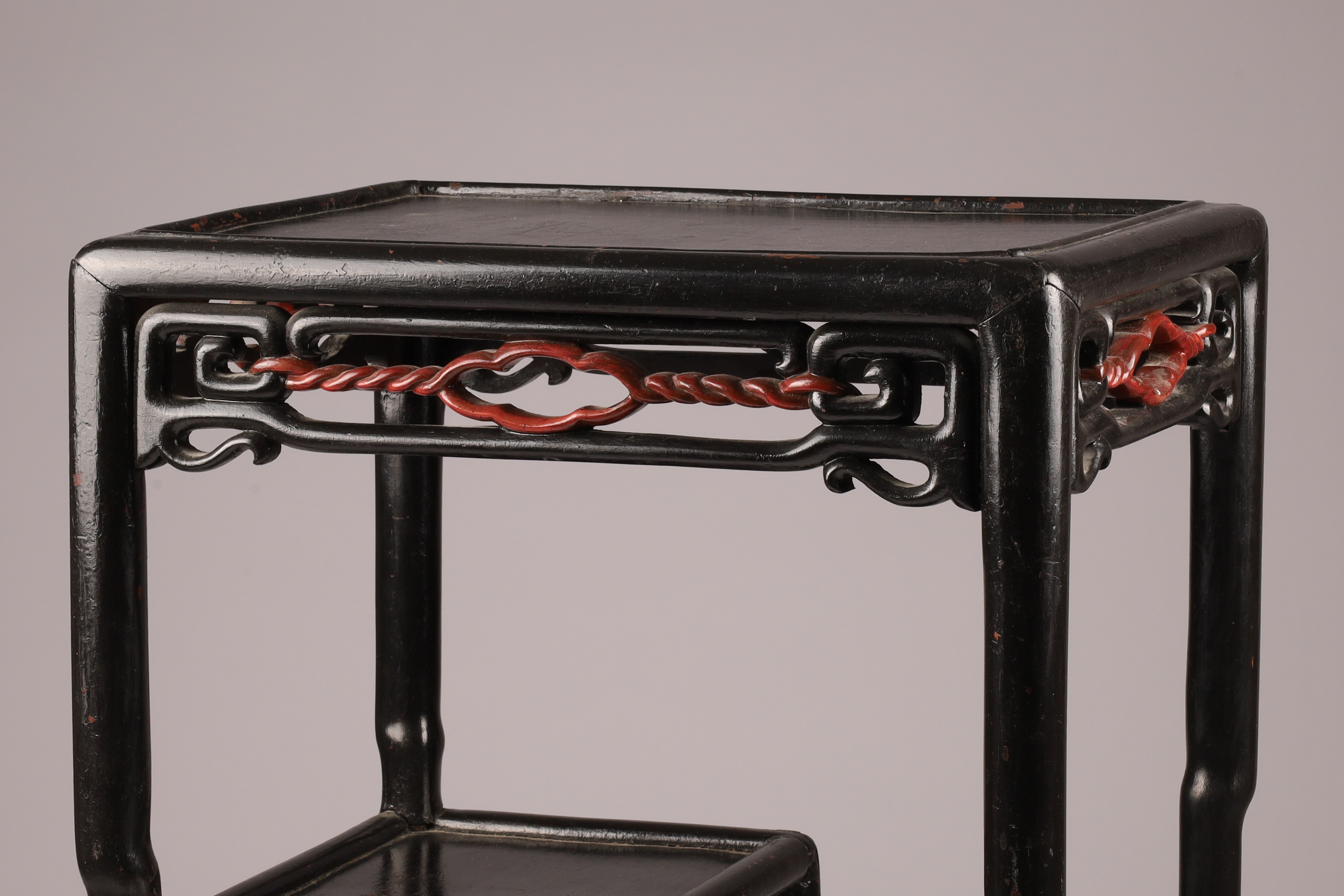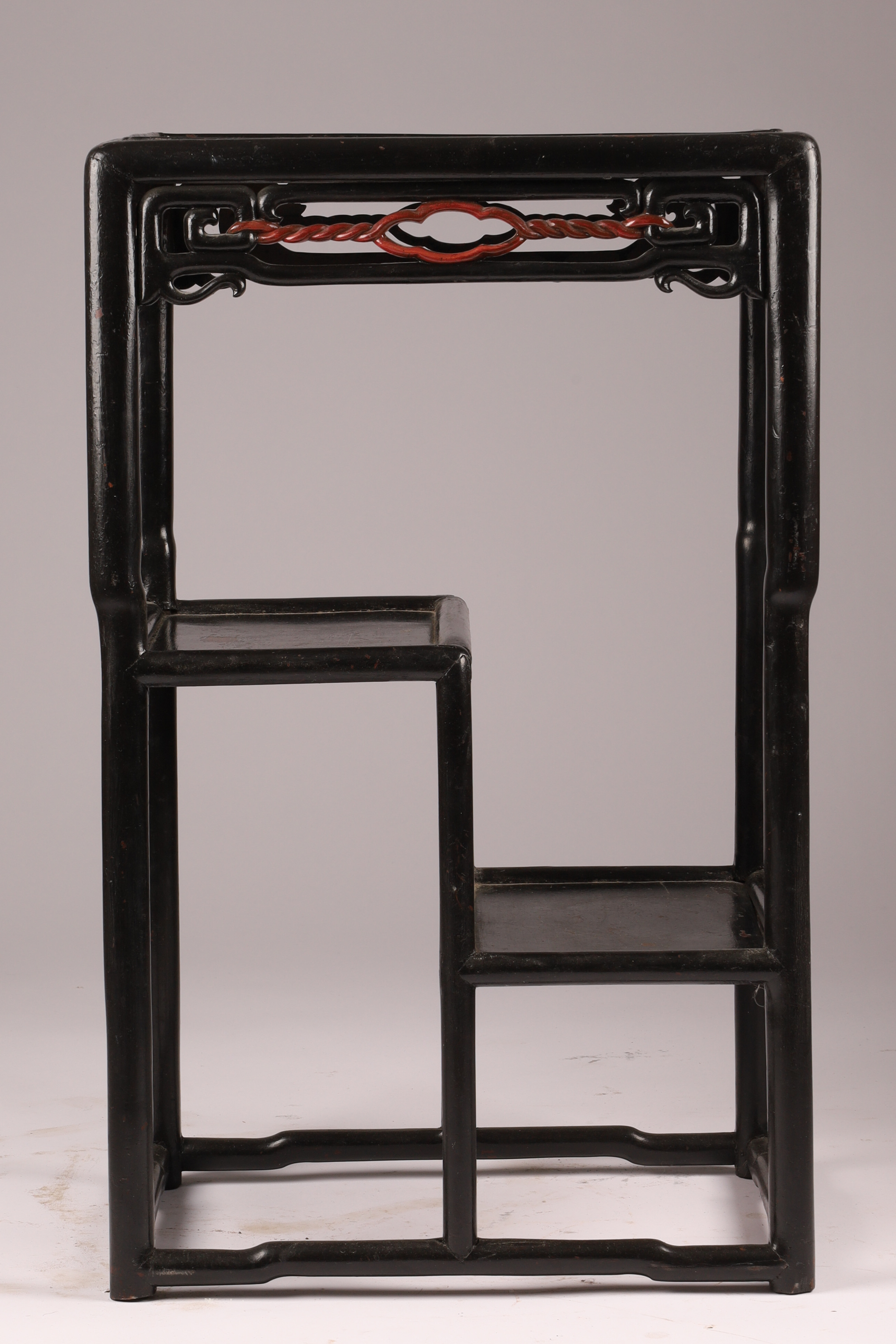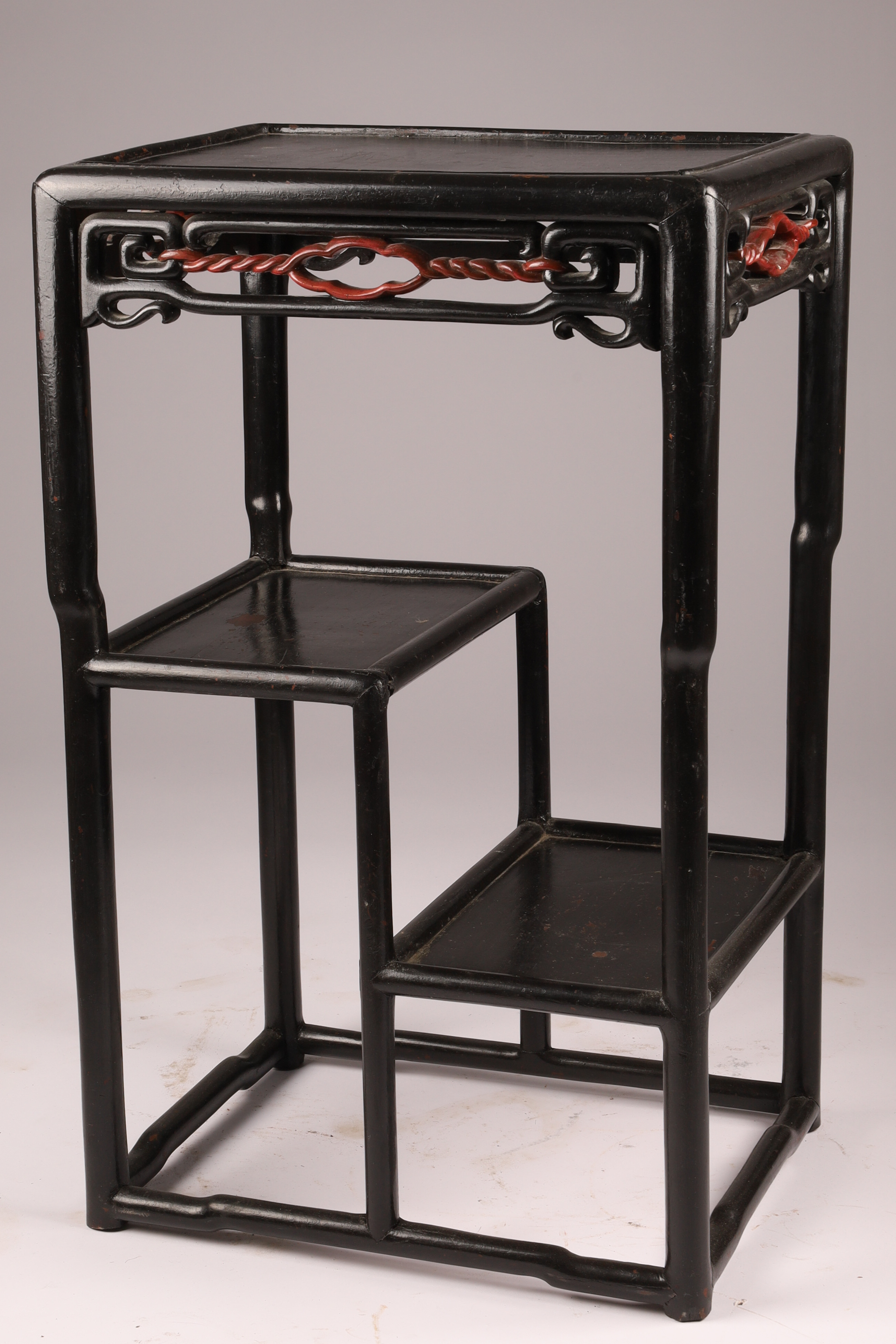 Antique Chinese Side Table Plant Stand, ebonized with twist detail. Measuring 26 inches H x 16 W x 12 deep.
