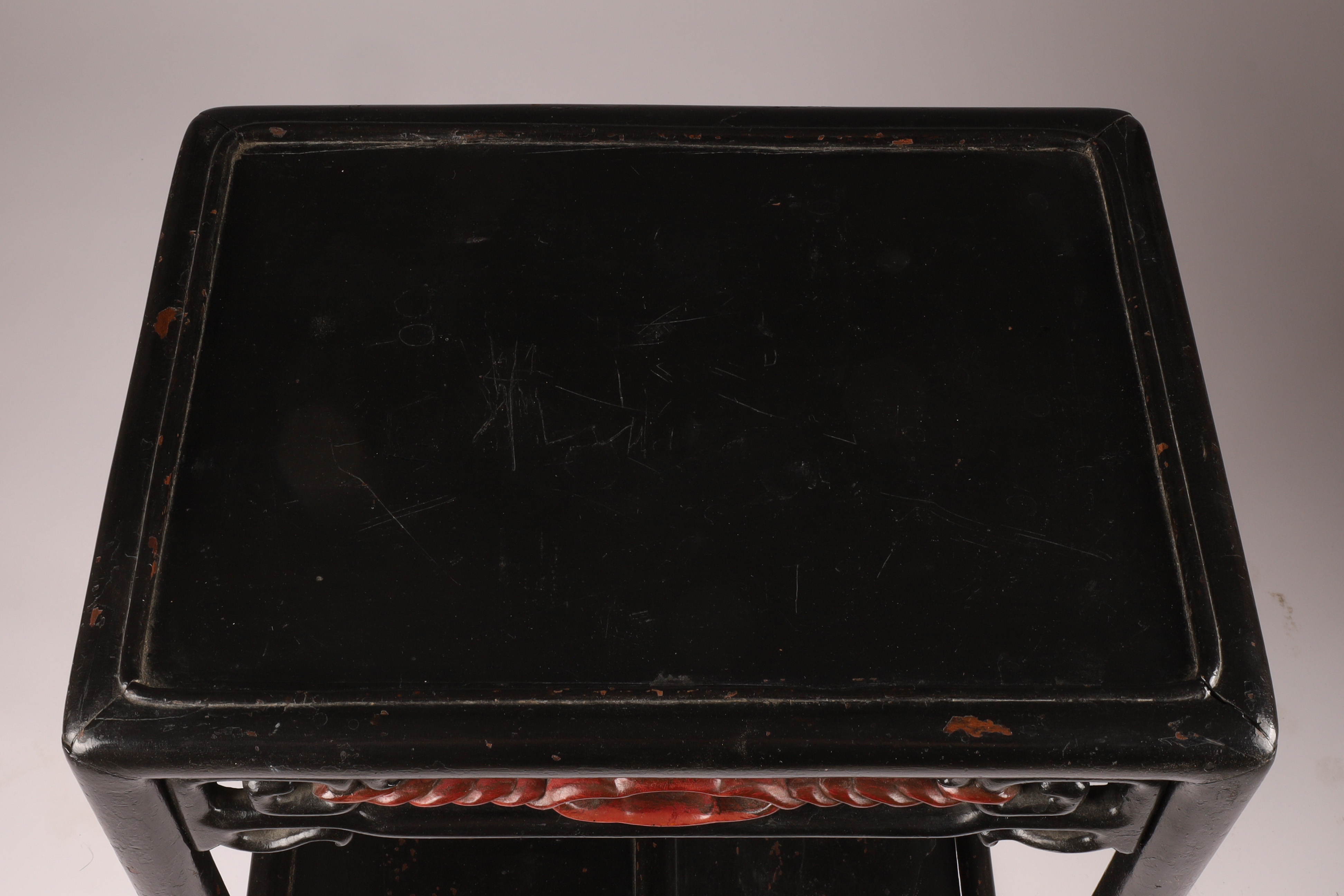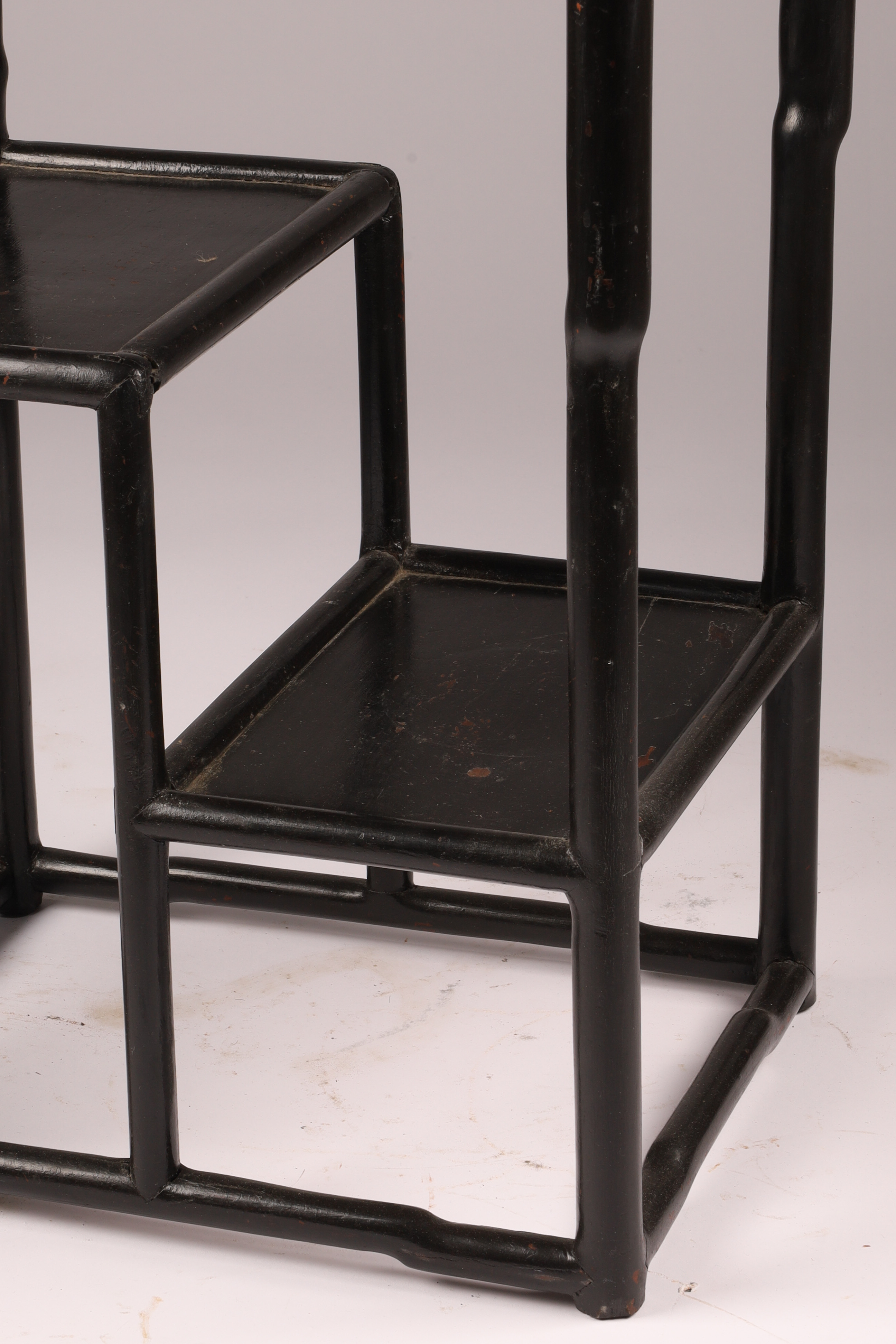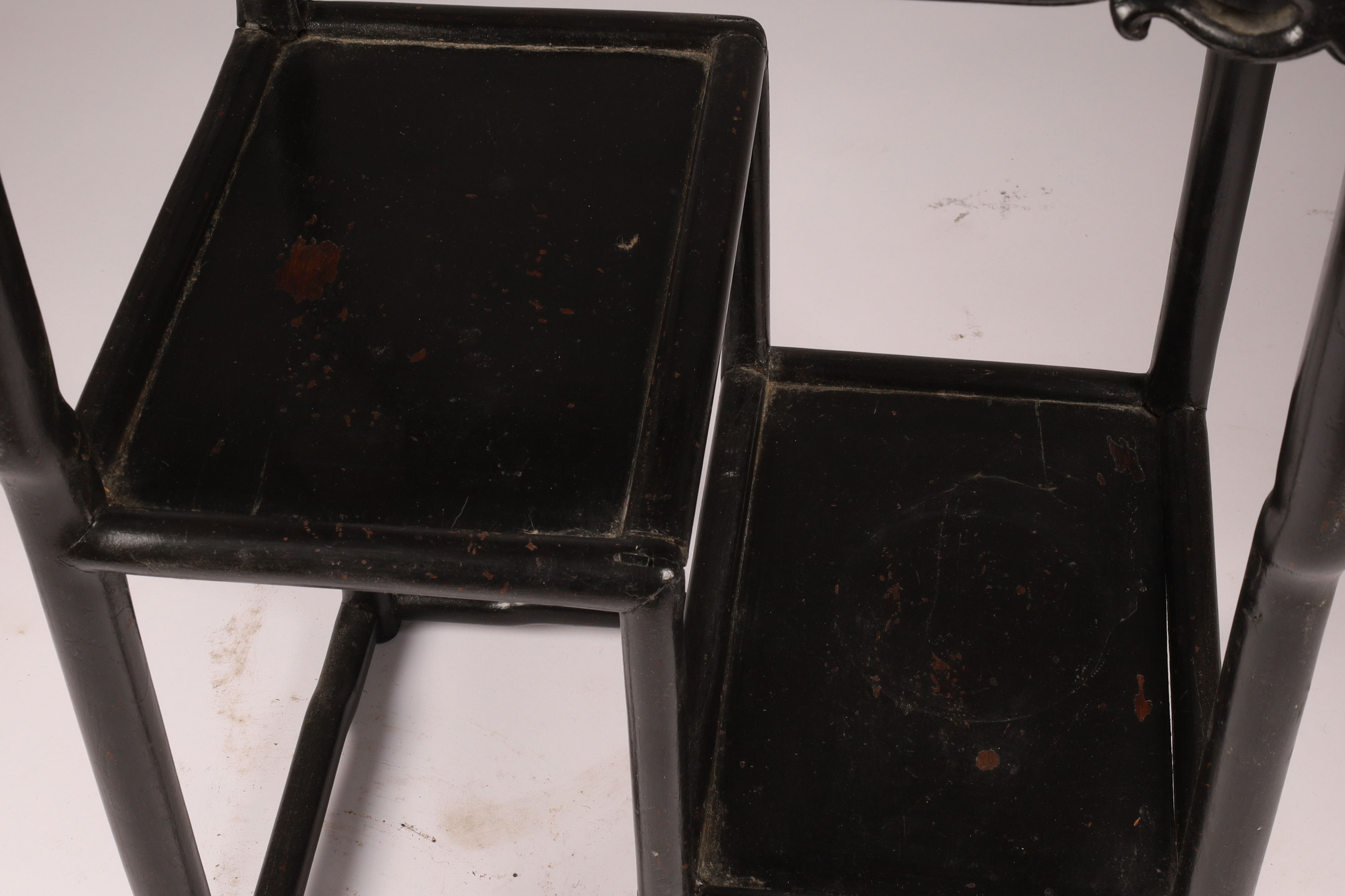 Antique Chinese Side Table Plant Stand, ebonized with twist detail. Measuring 26 inches H x 16 W x 12 deep.