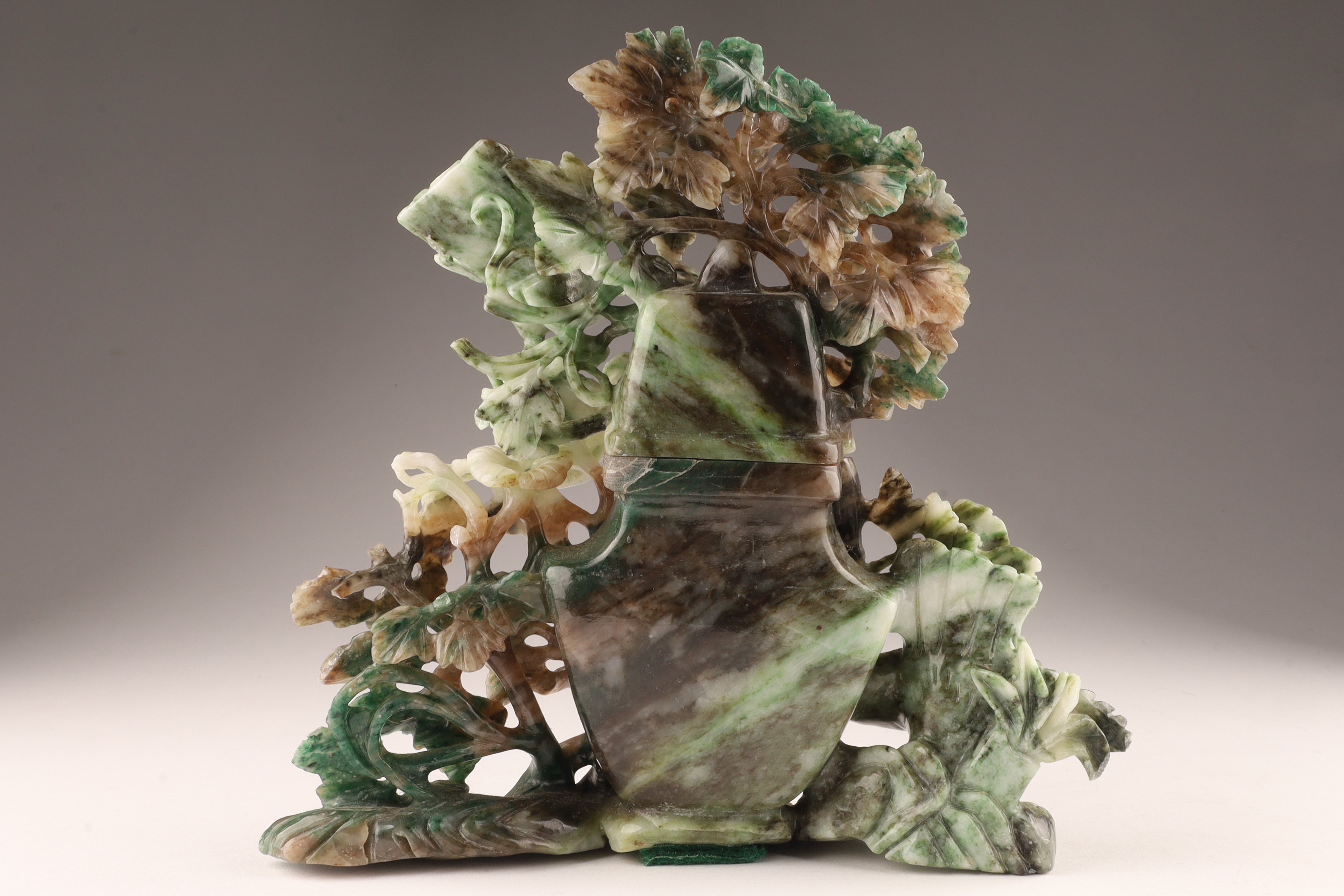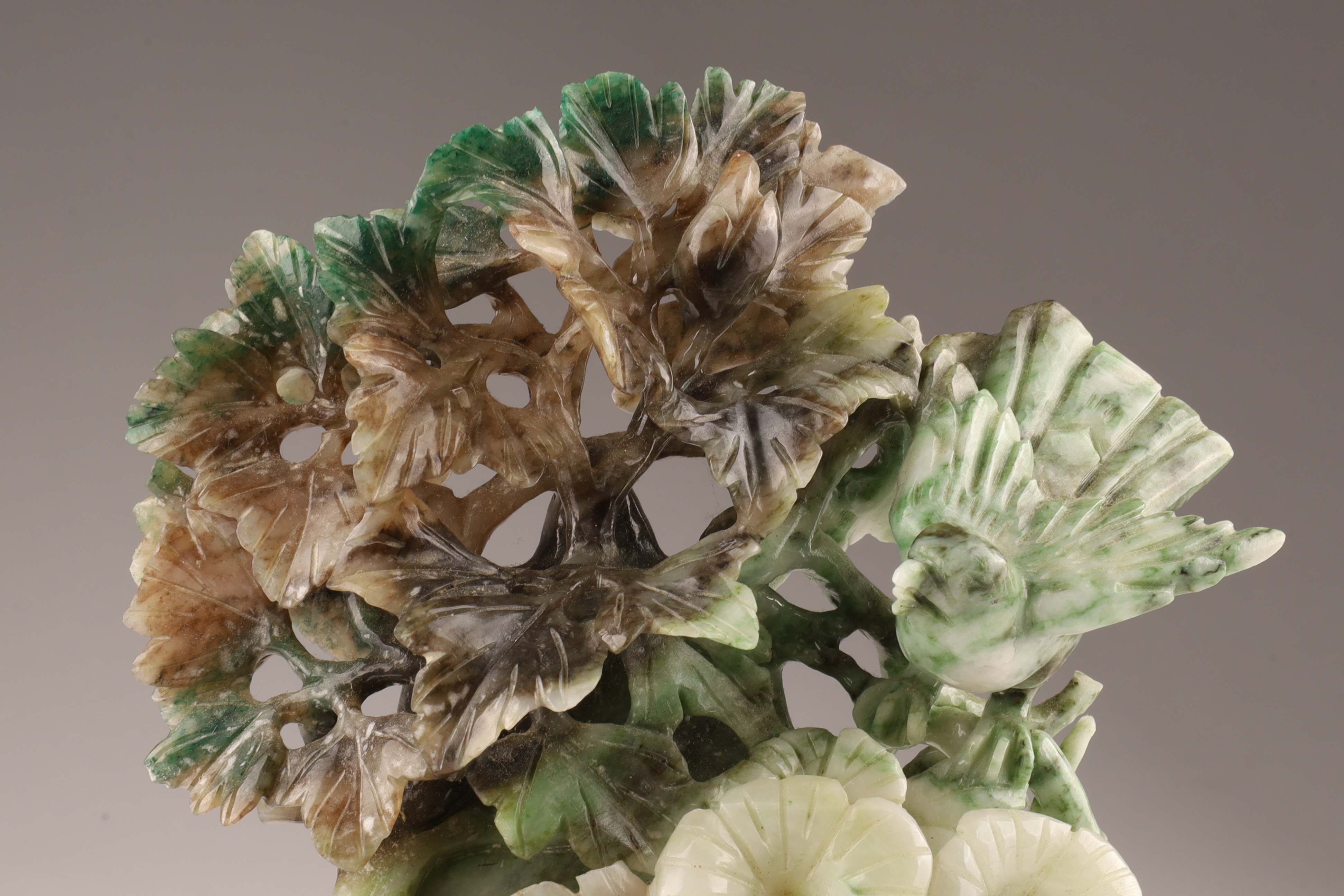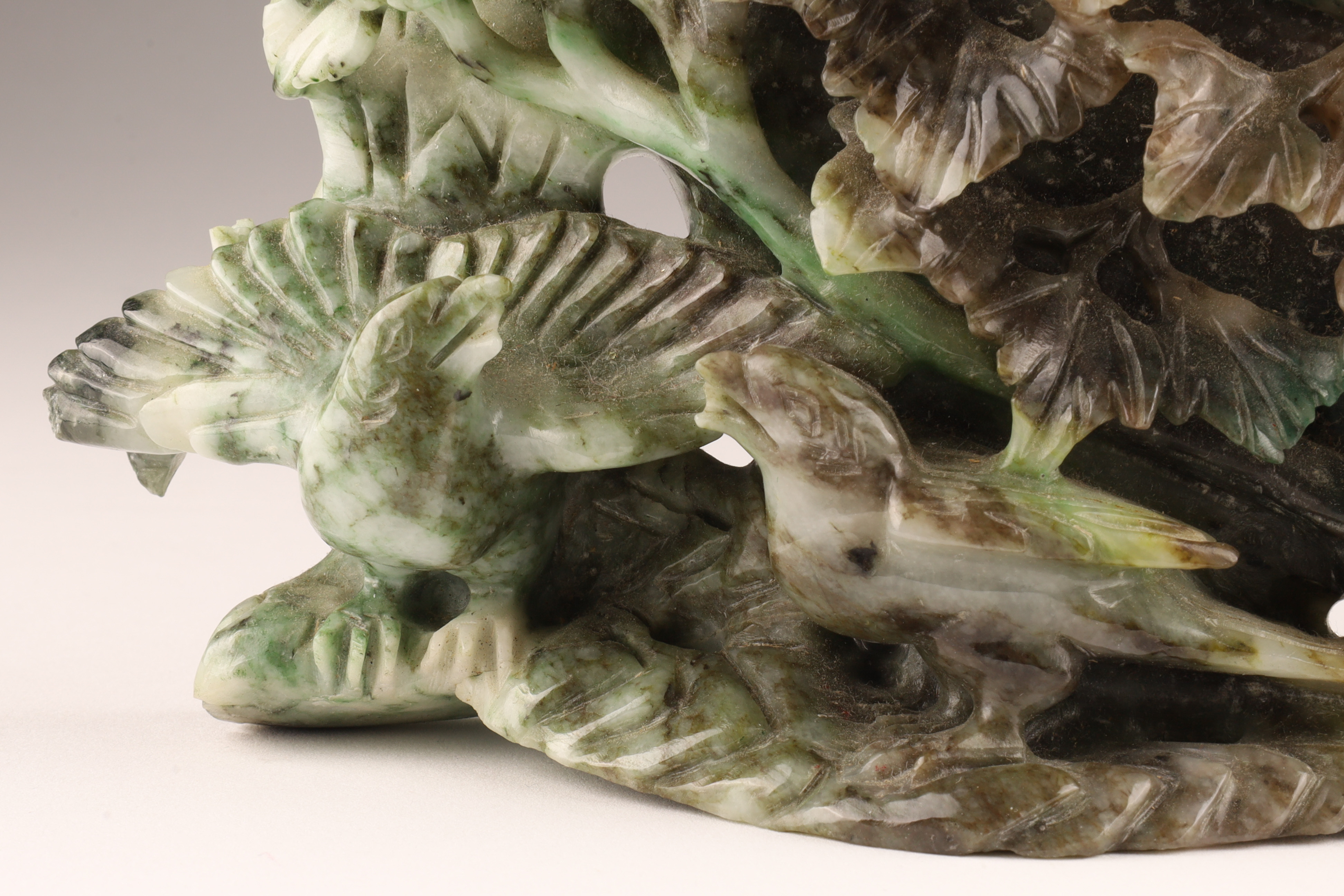Chinese Jade Covered Vase Birds and Foliage Grouping