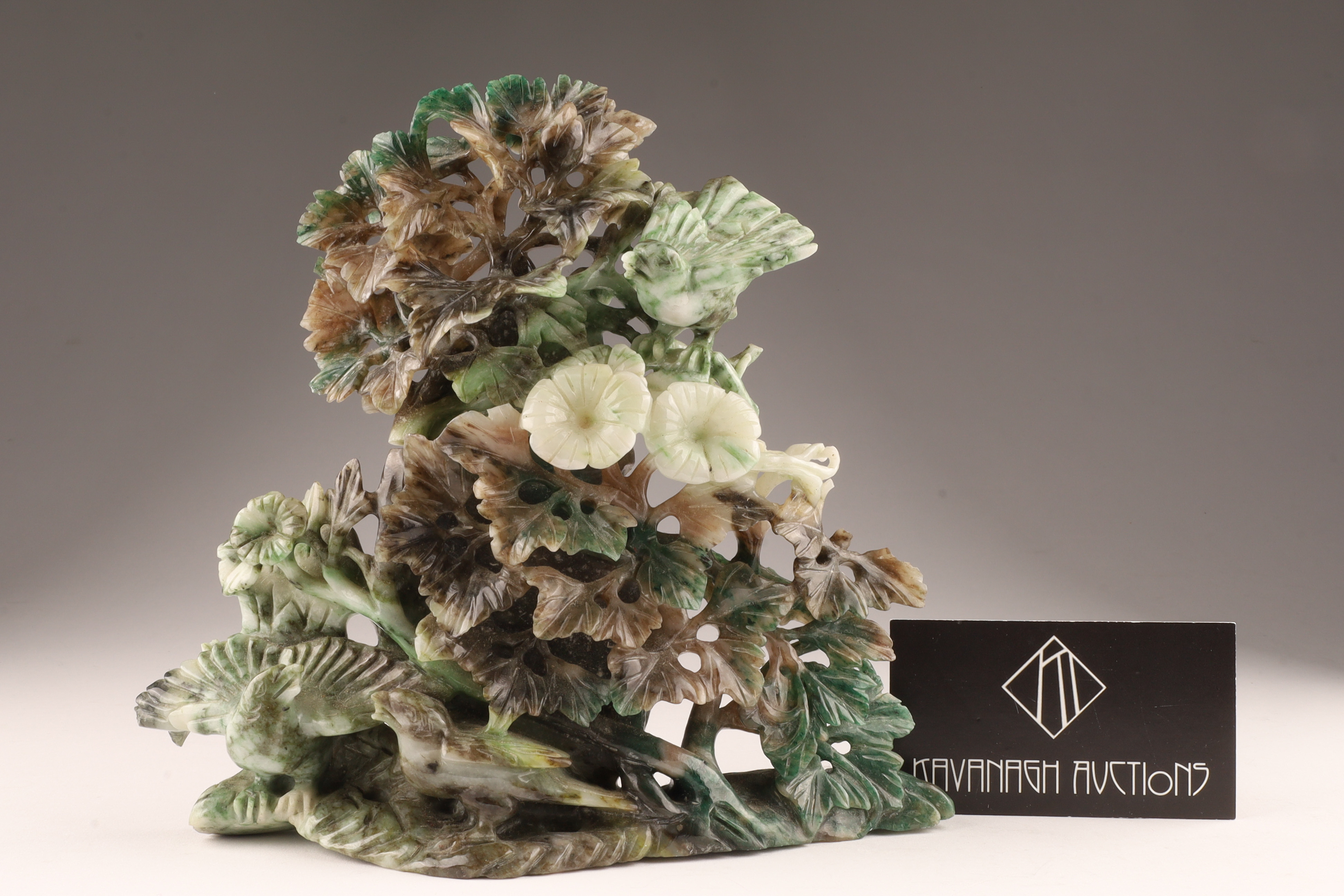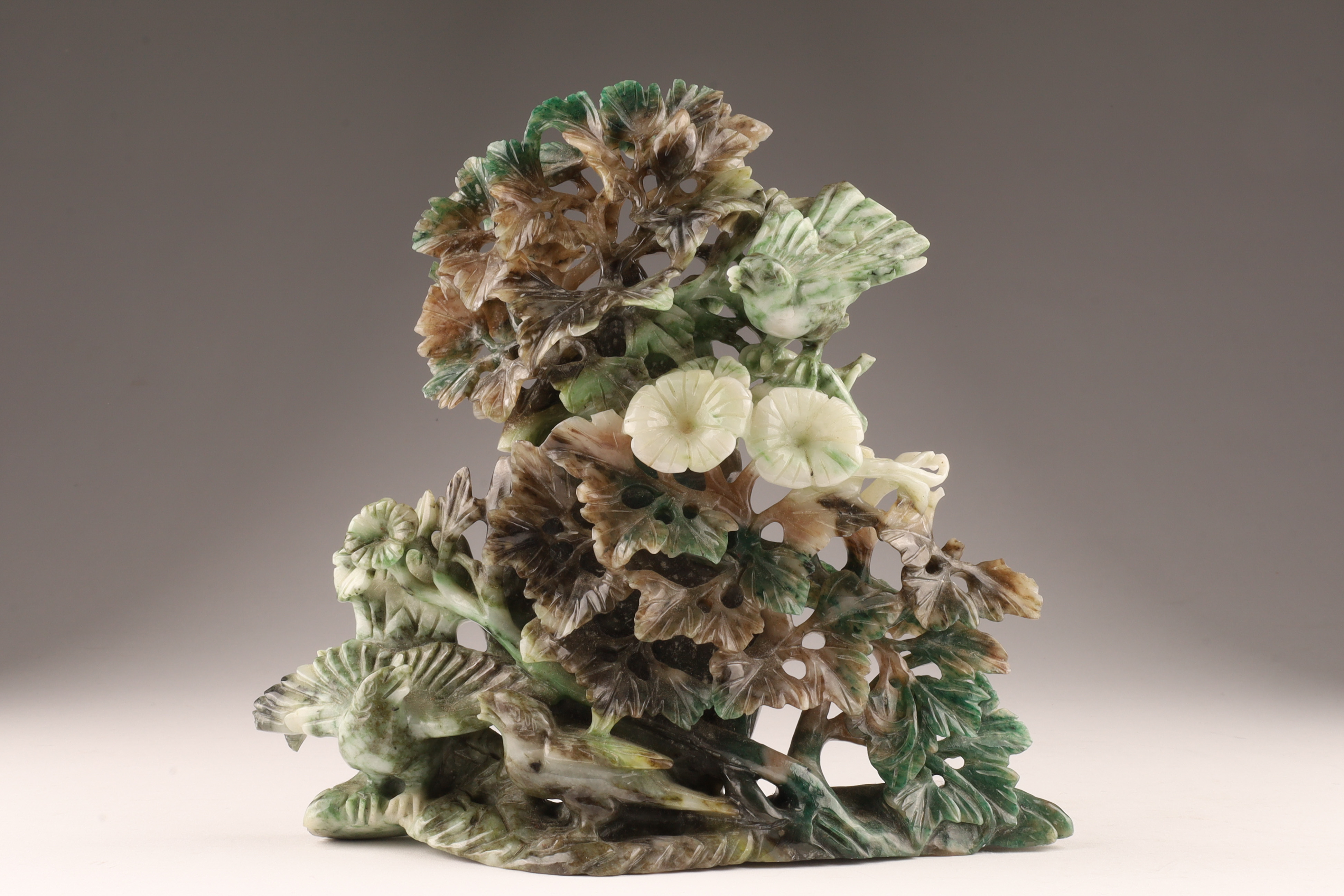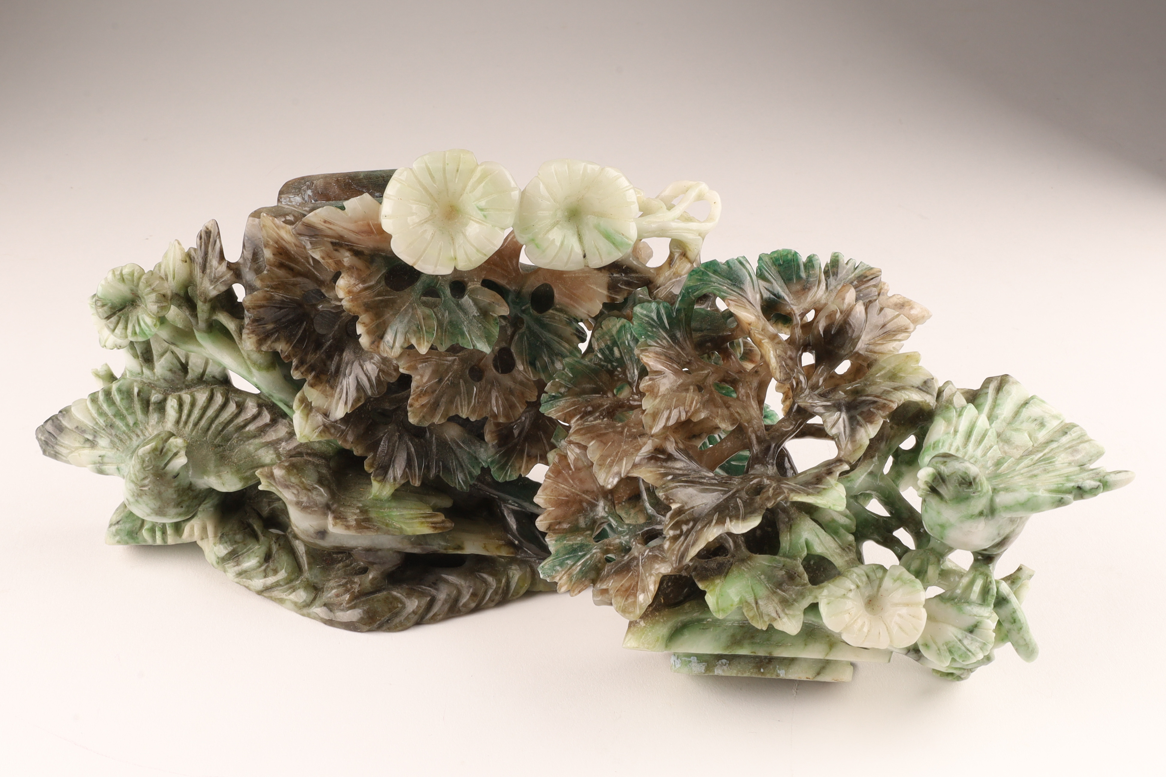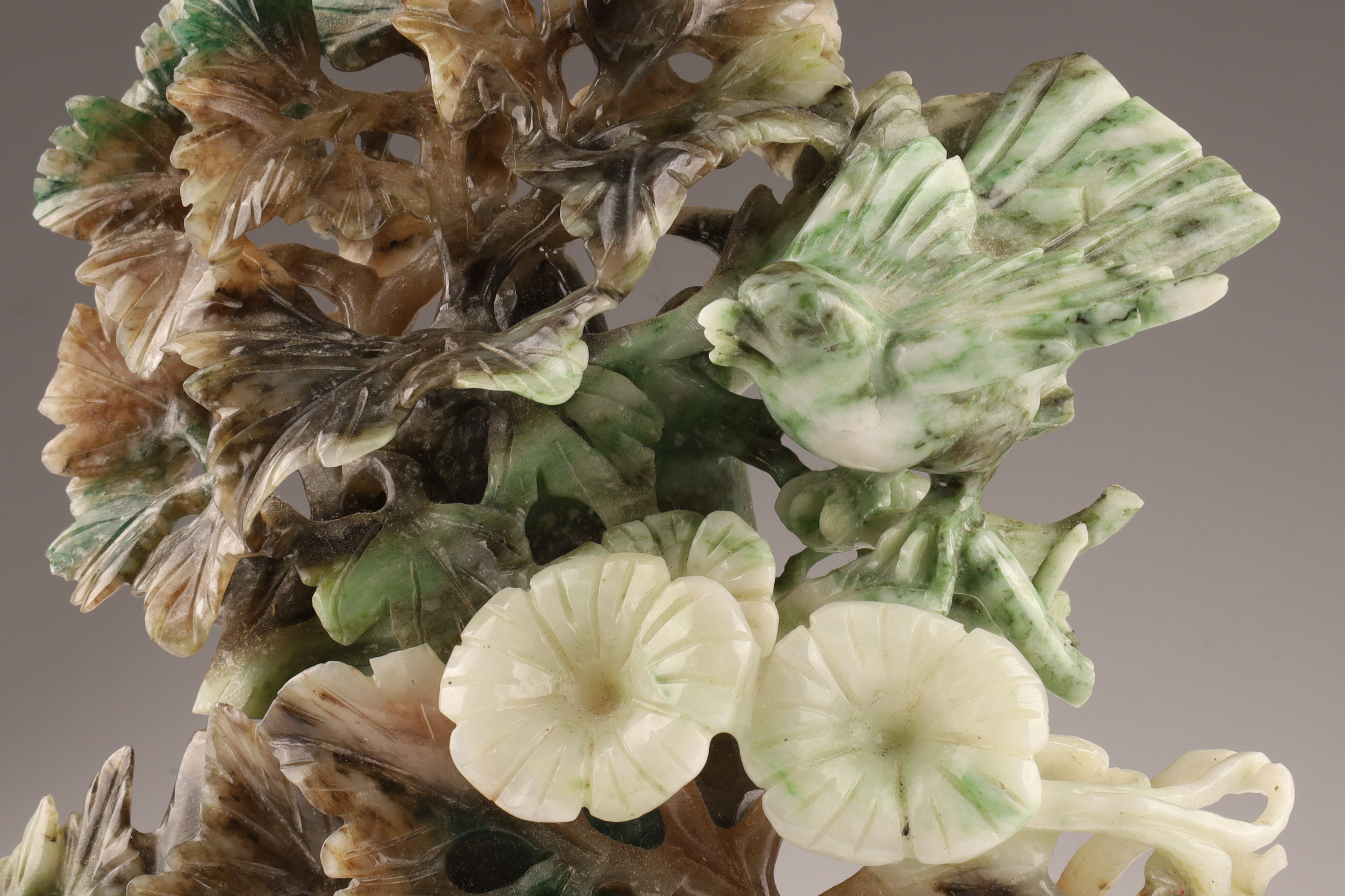 Chinese Jade Covered Vase Birds and Foliage Grouping