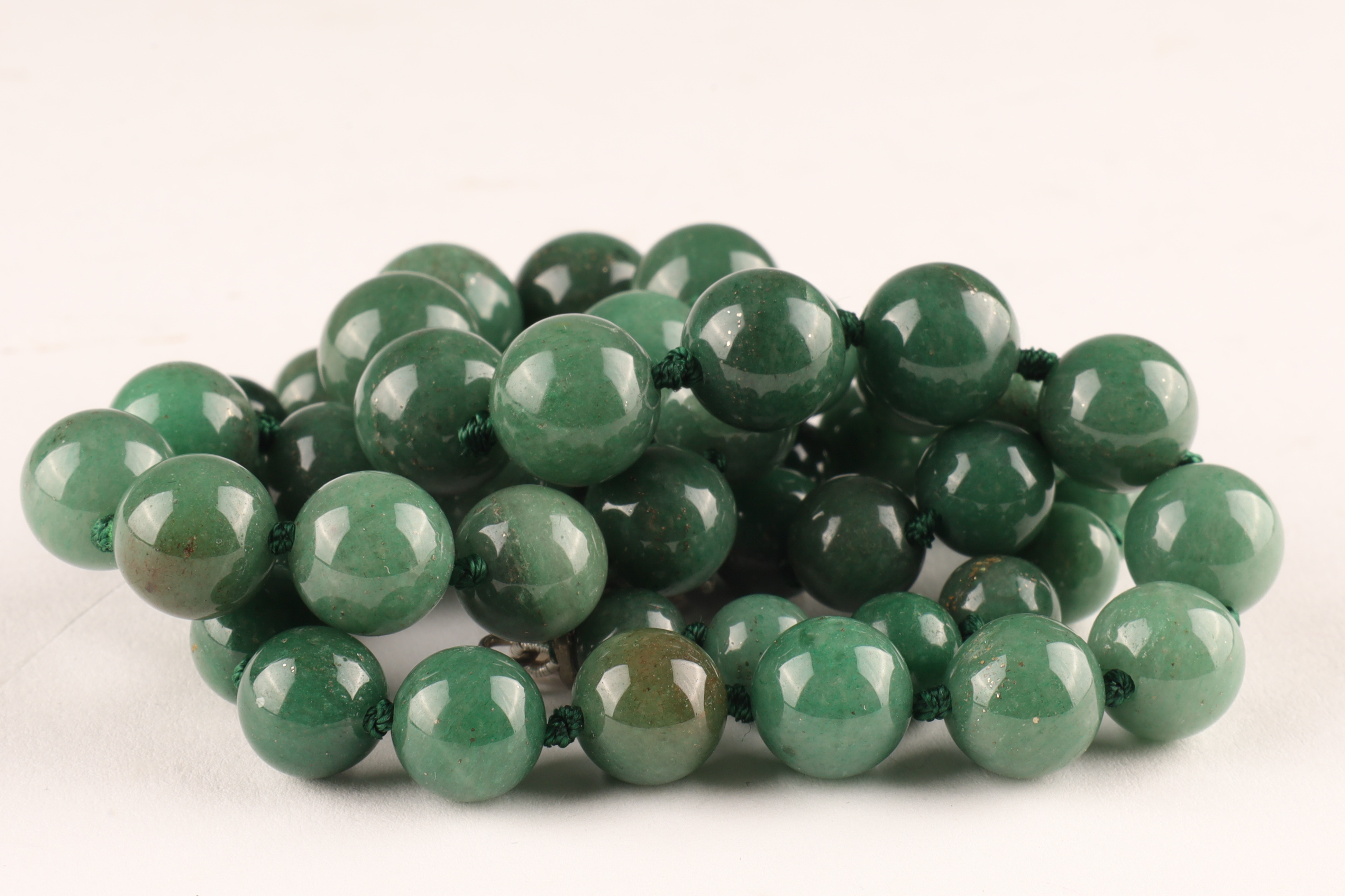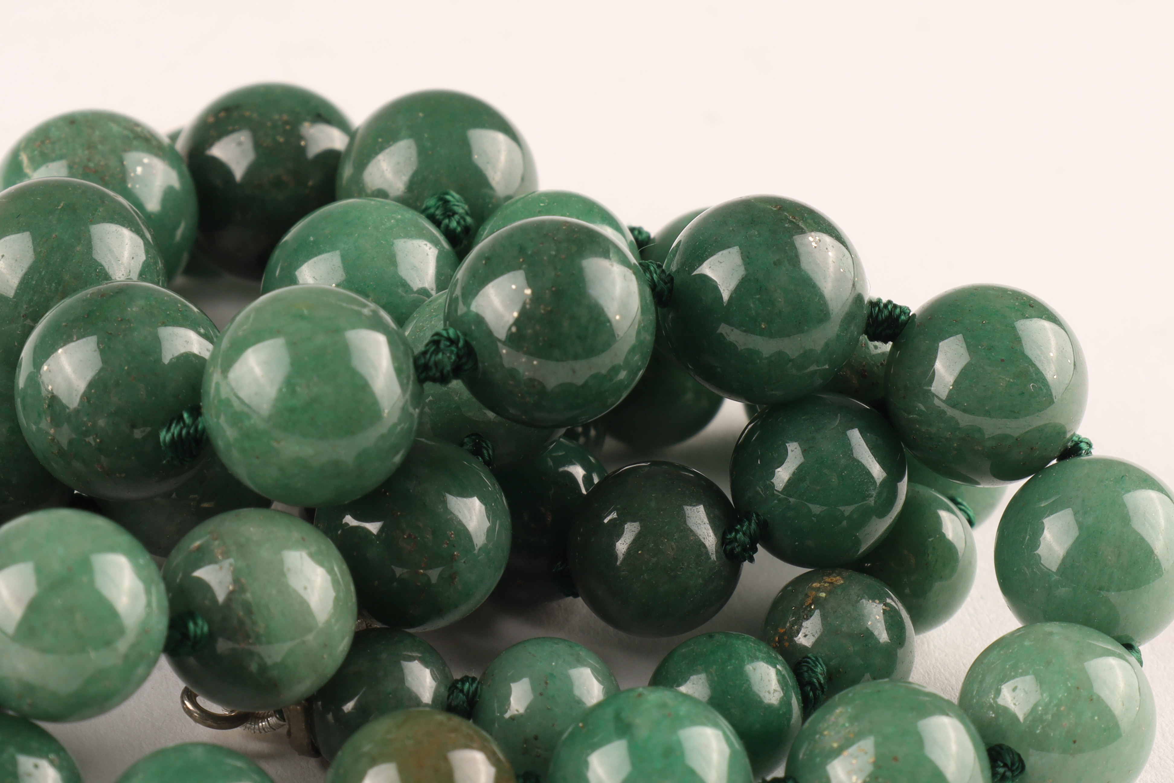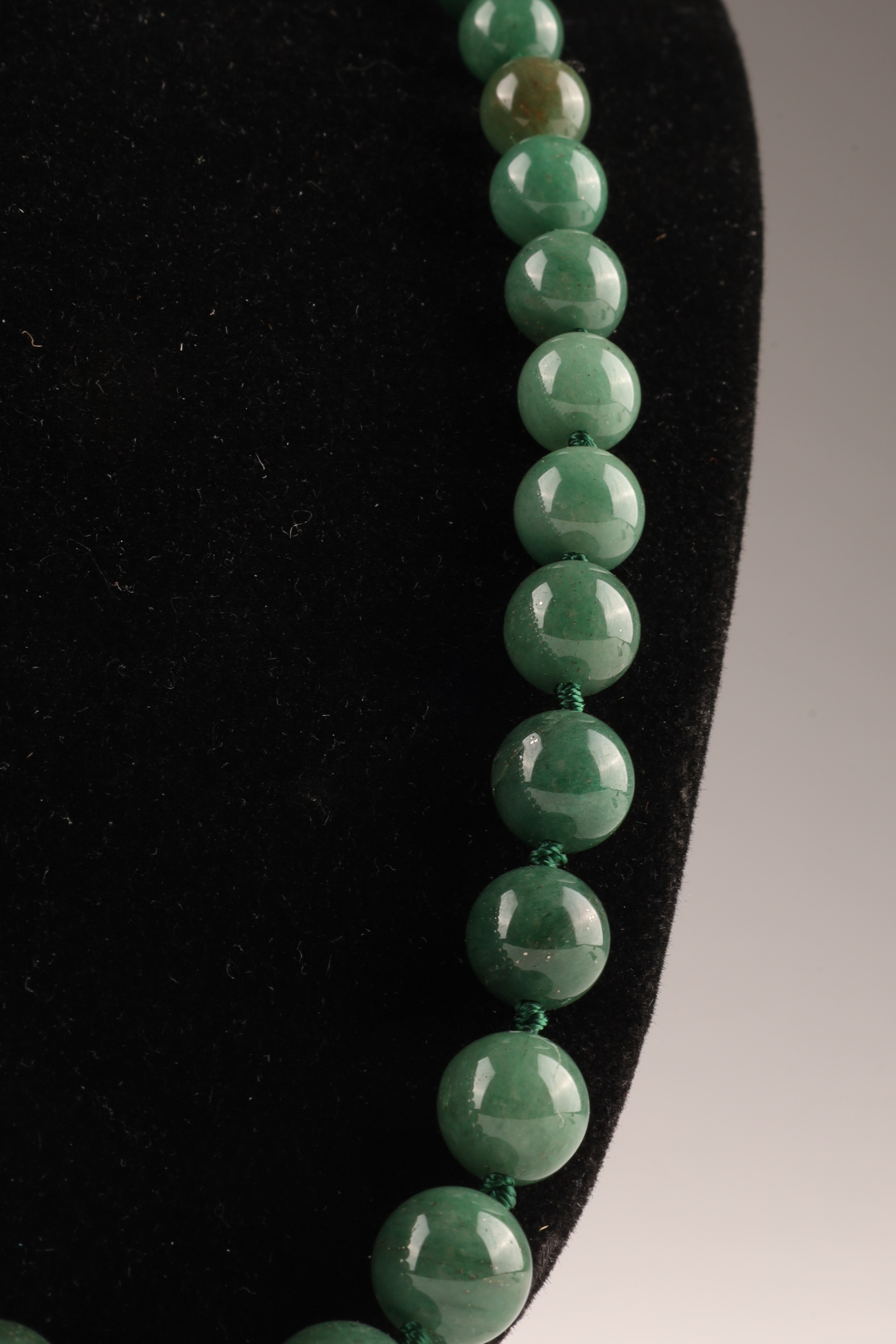 Chinese Green Jade Graduated Beads Necklace on knotted thread. 24 inches L.