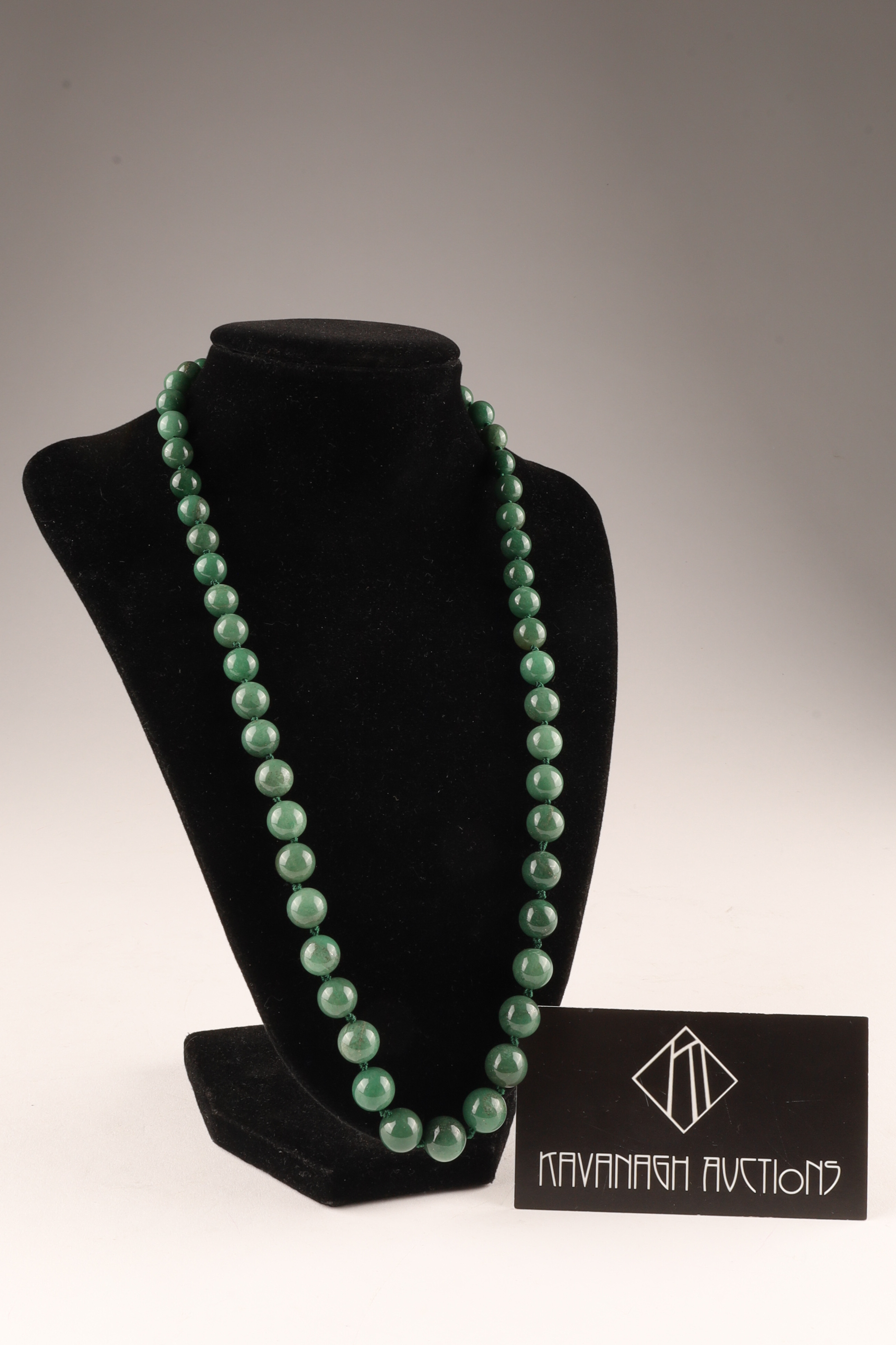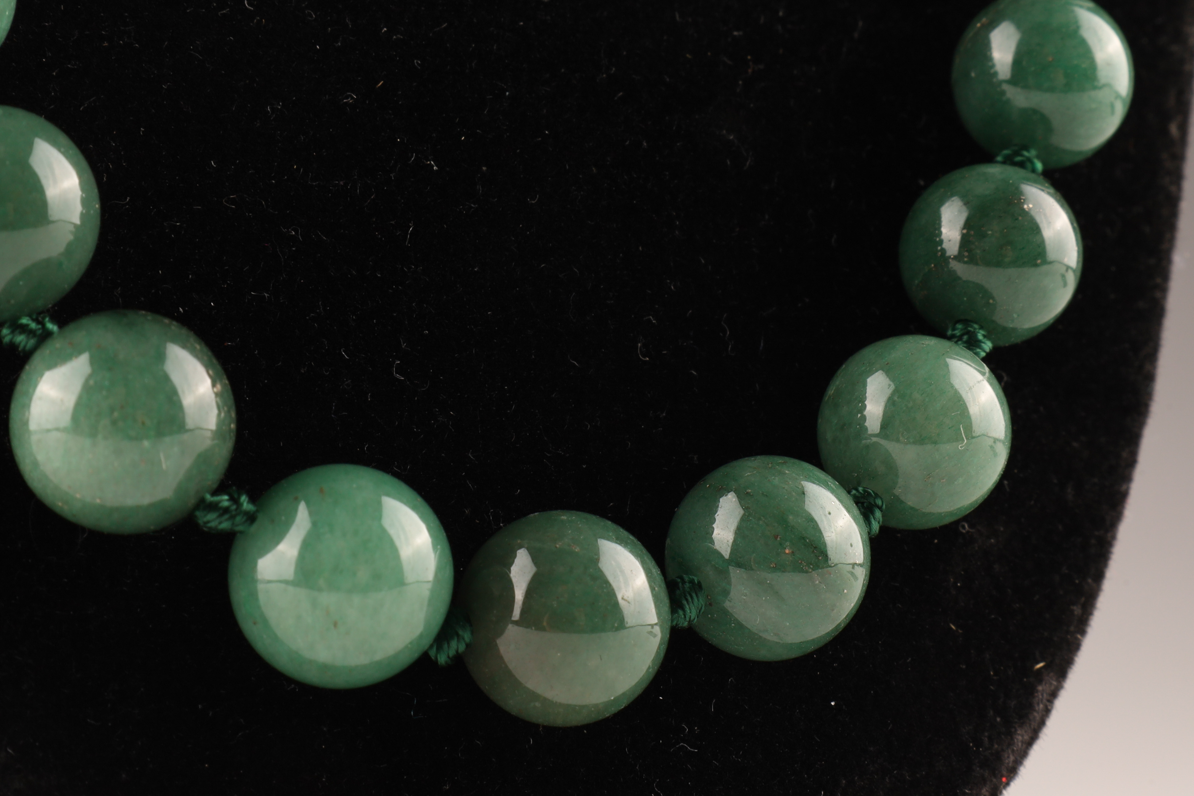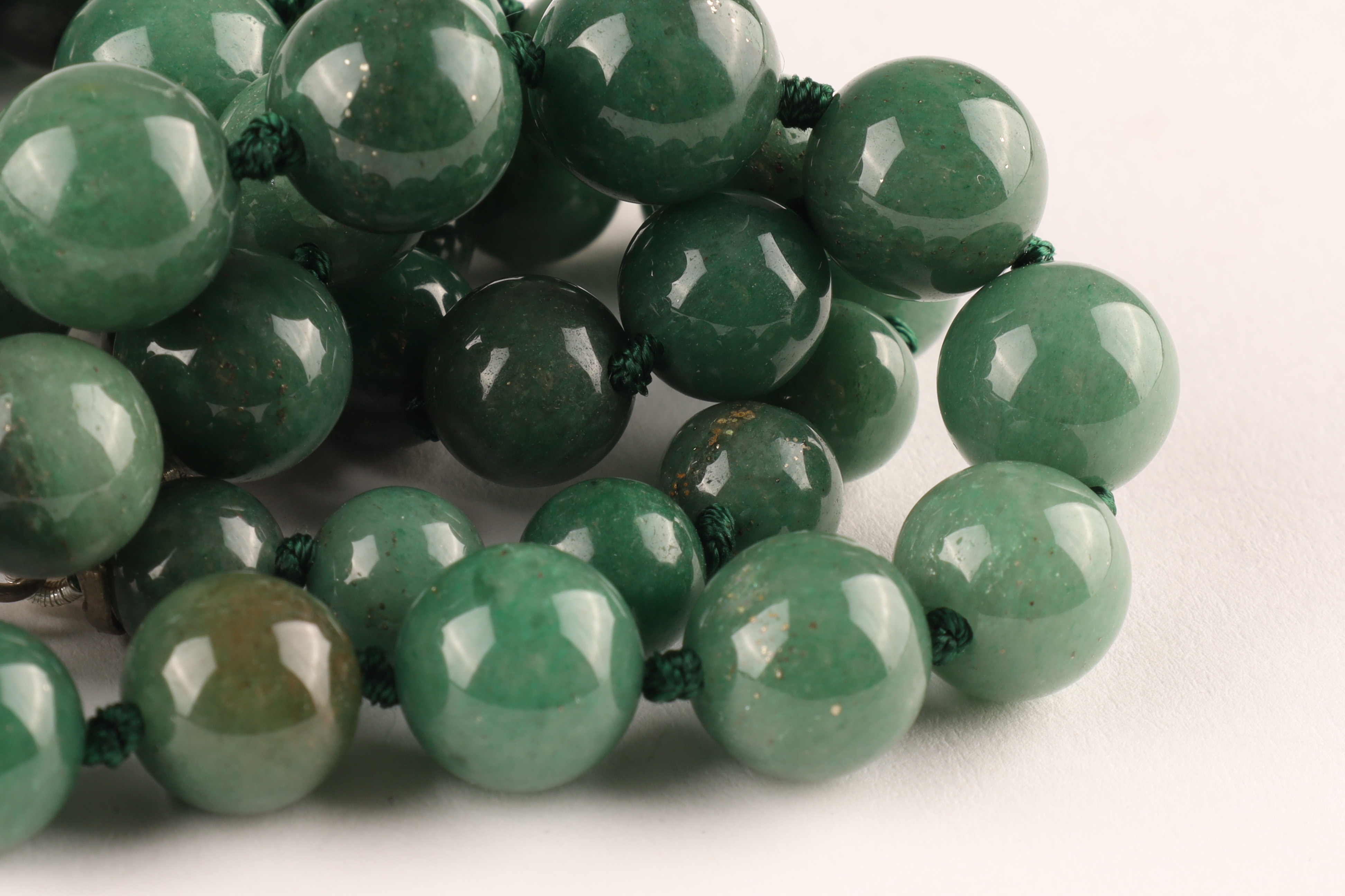 Chinese Green Jade Graduated Beads Necklace on knotted thread. 24 inches L.