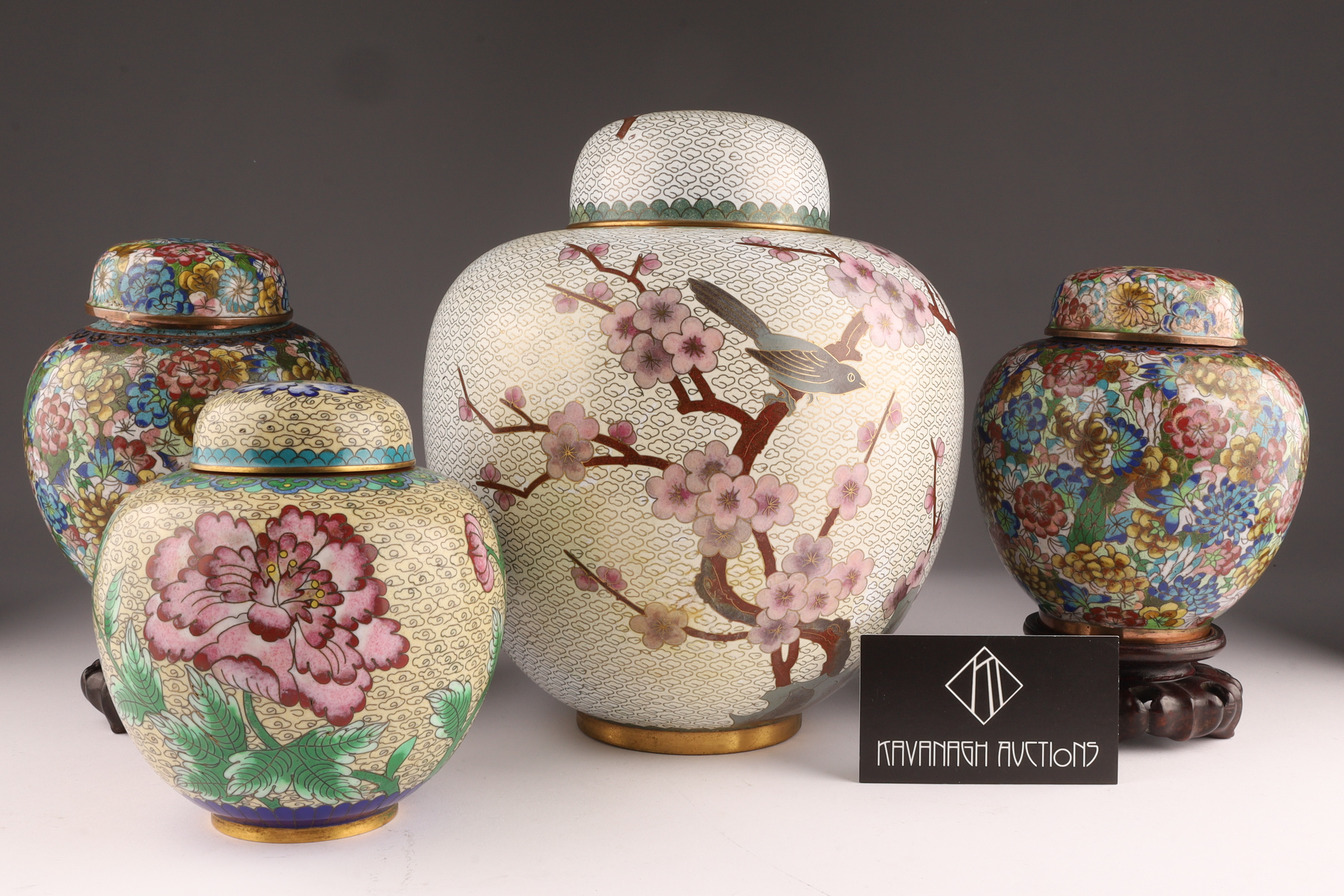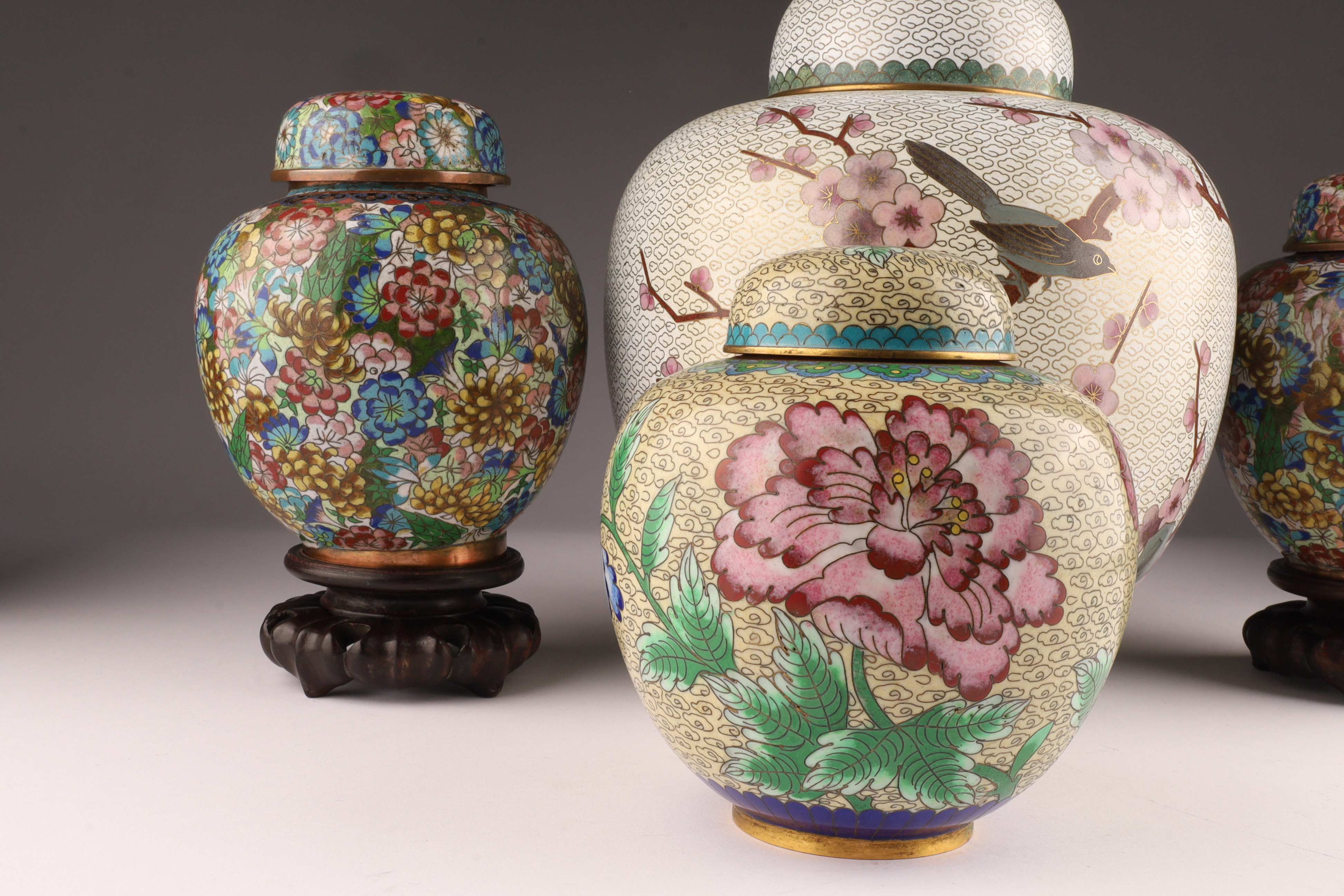 Lot of Four Chinese Cloisonne Ginger Jars