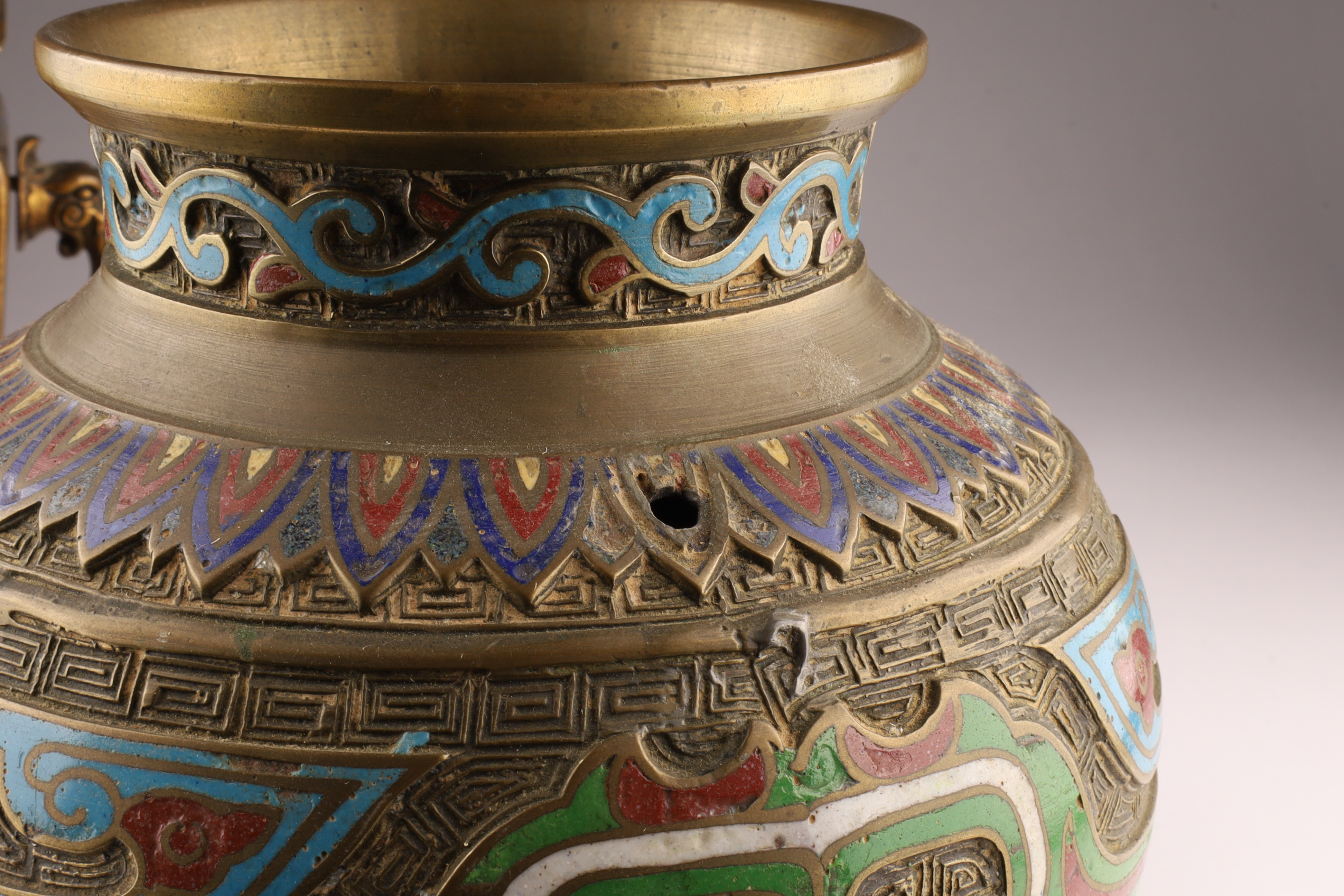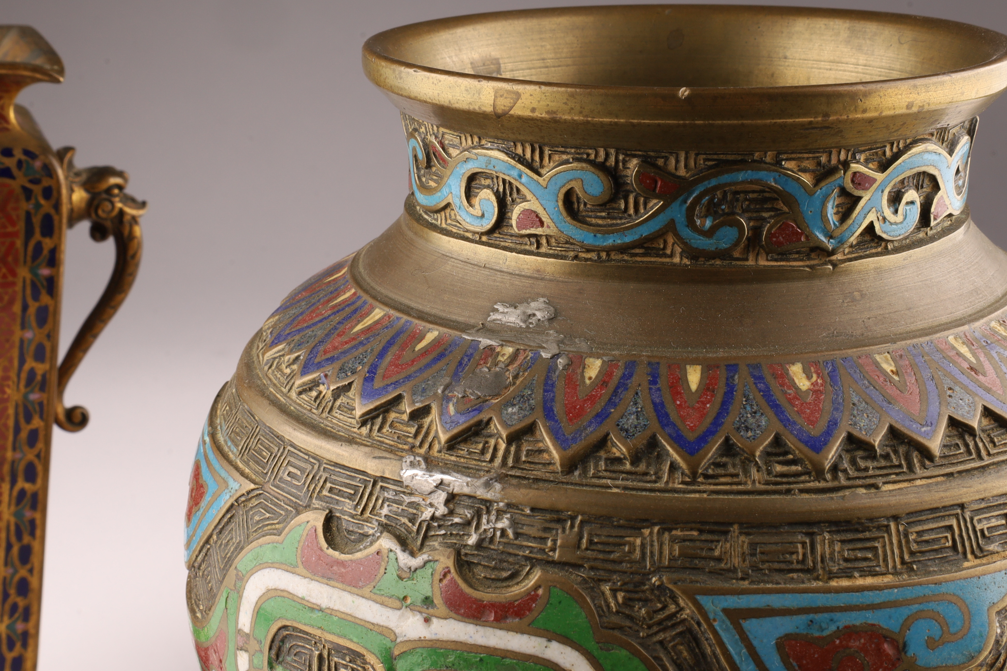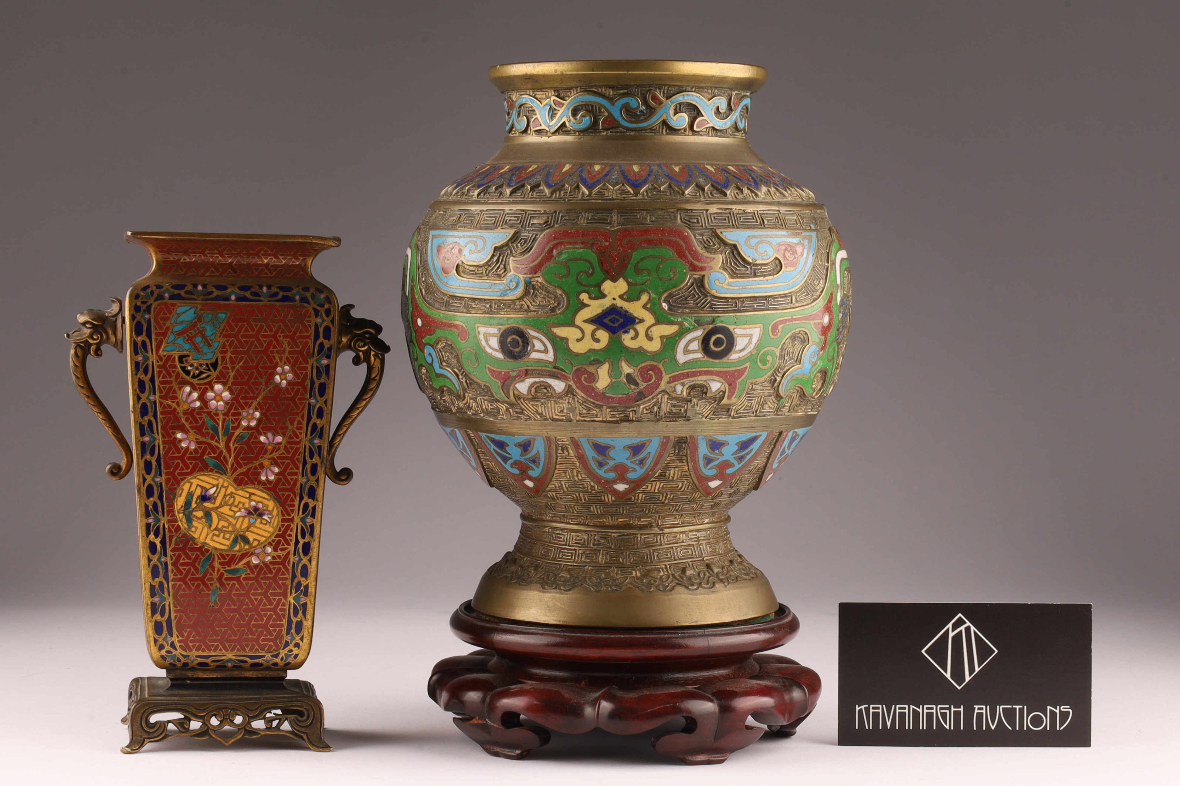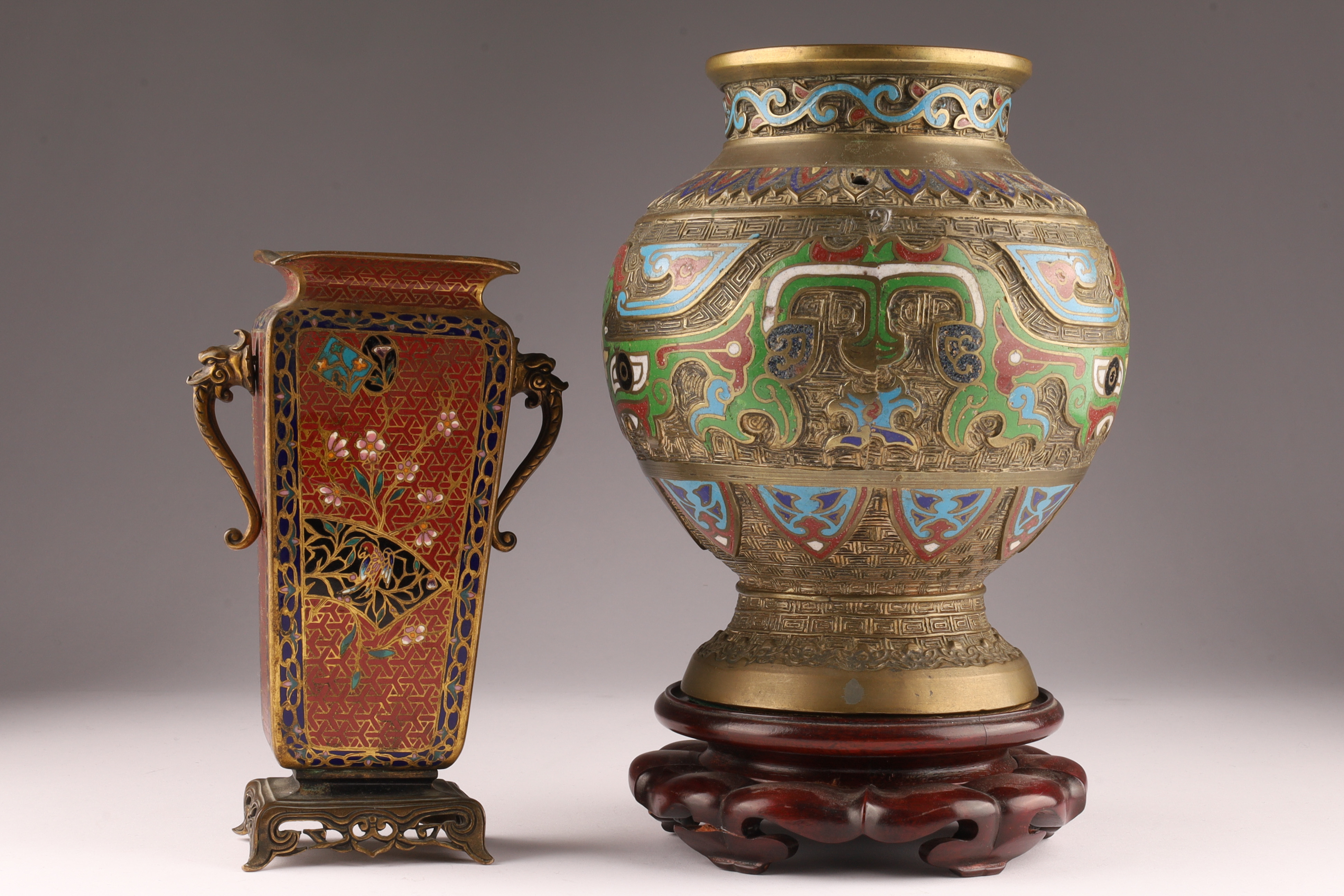 Lot of Two Chinese Archaic Style Cloisonne Champleve Vases