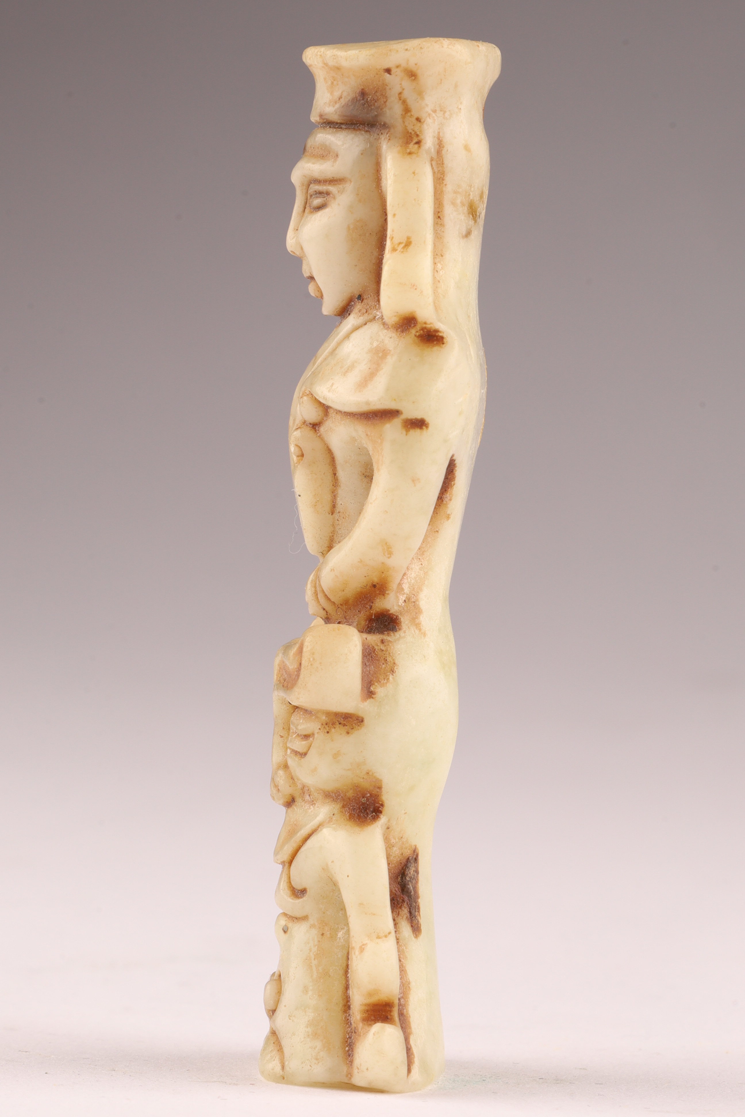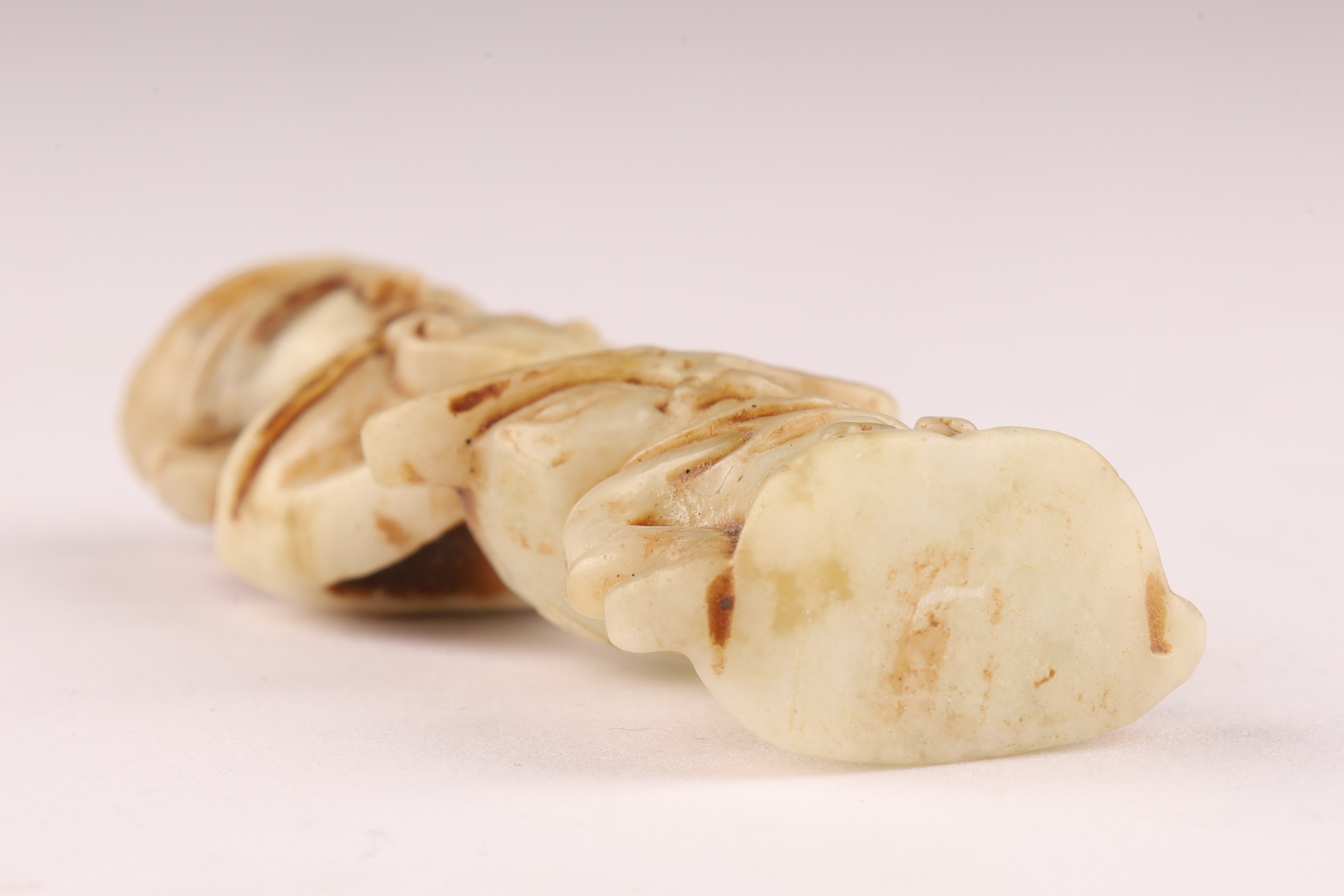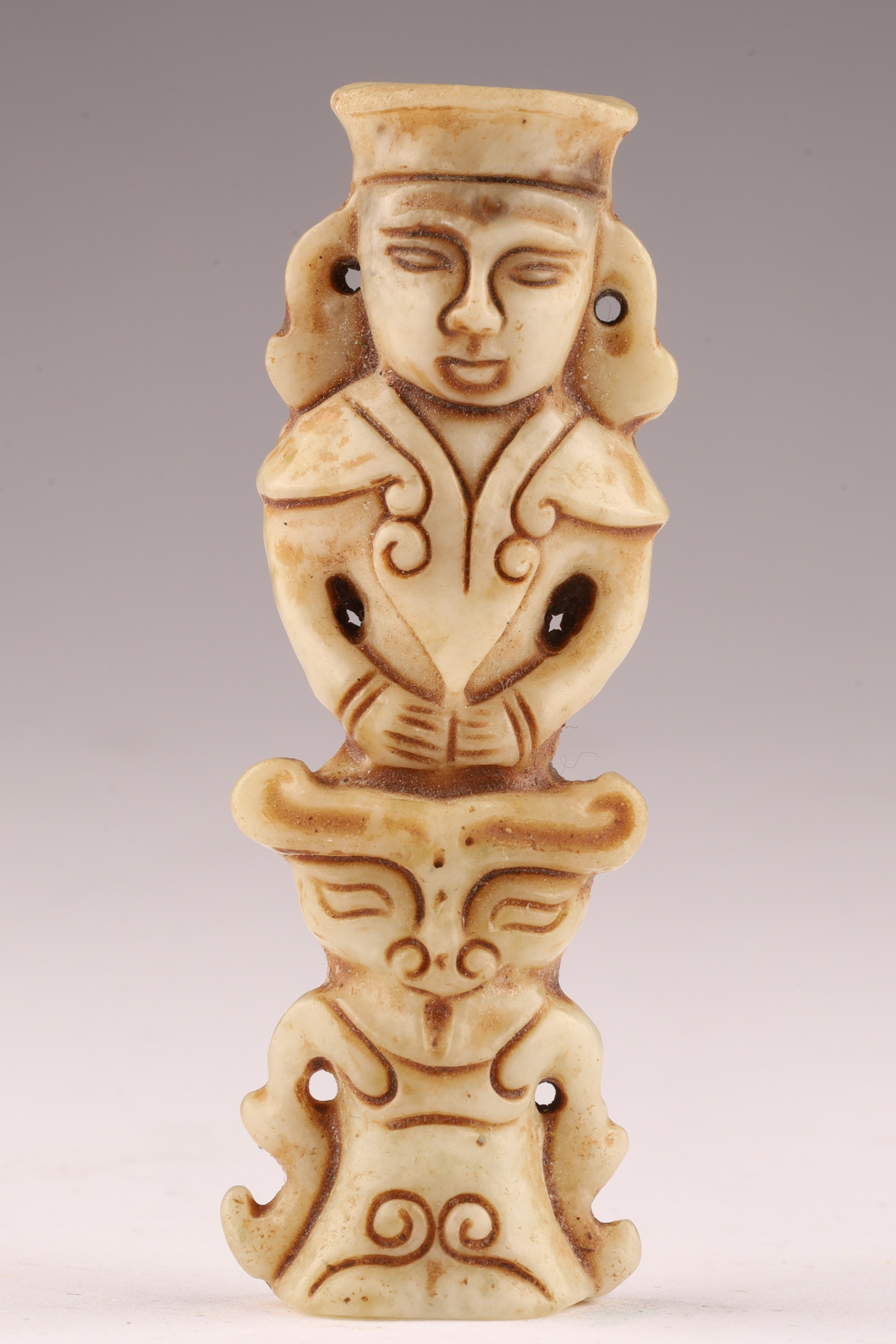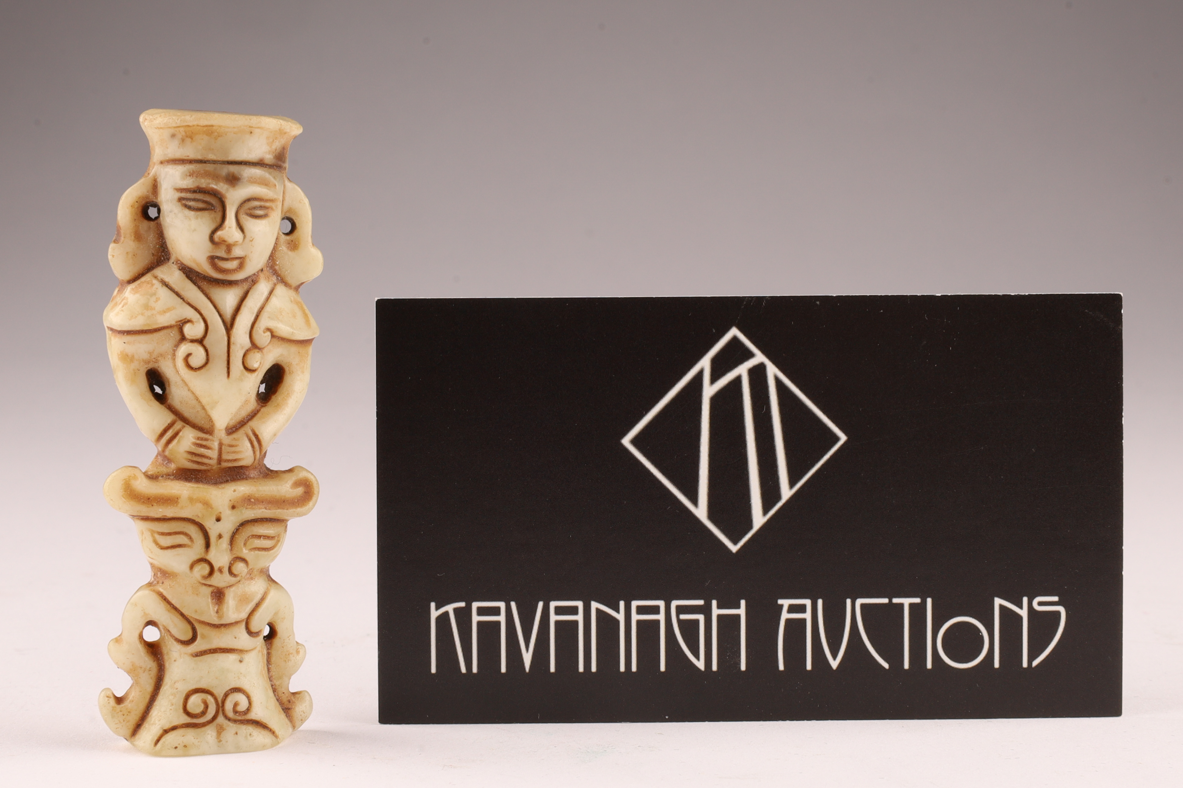 Chinese Carved Jade Pendant, archaic style figural pendant measures 3 inches.