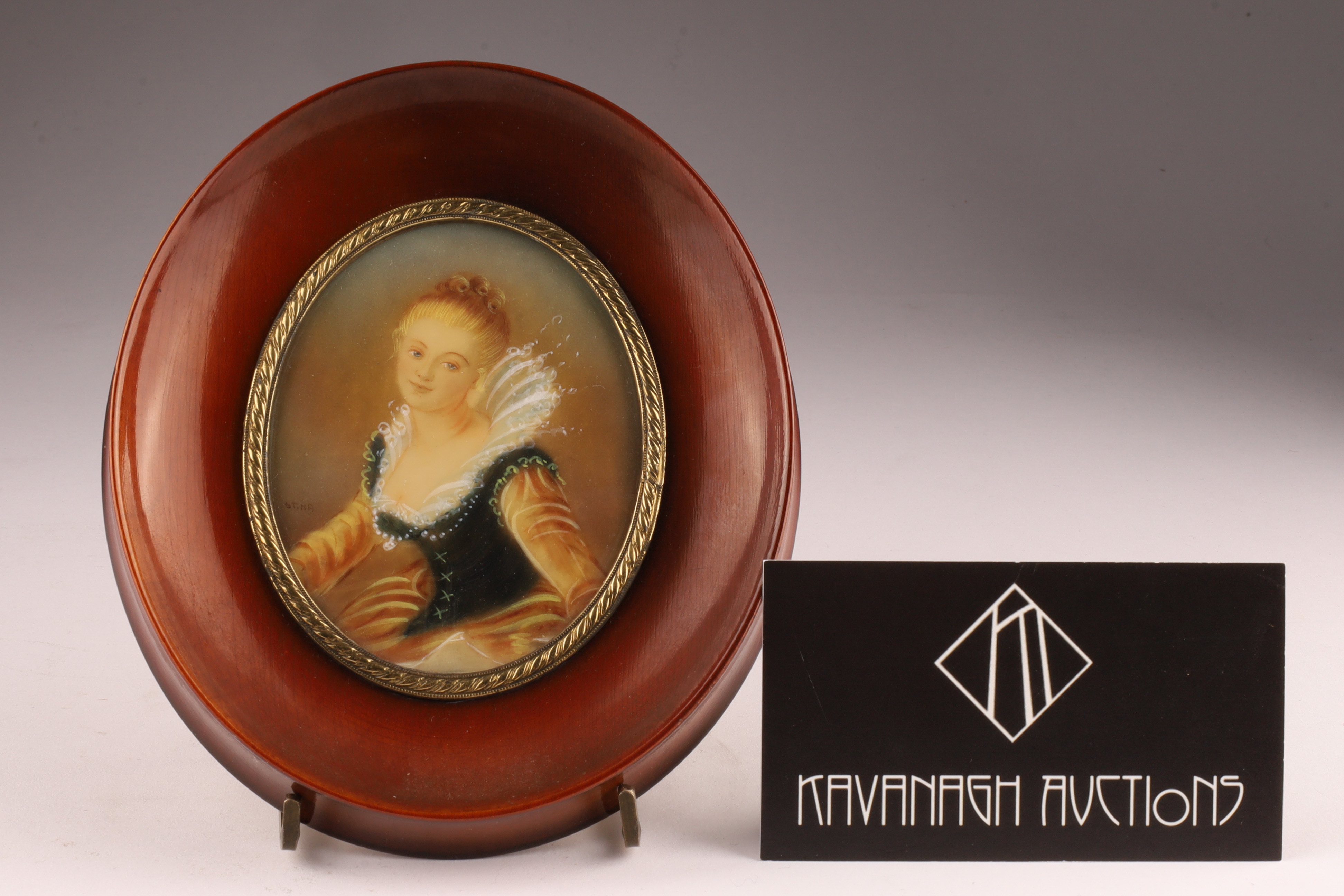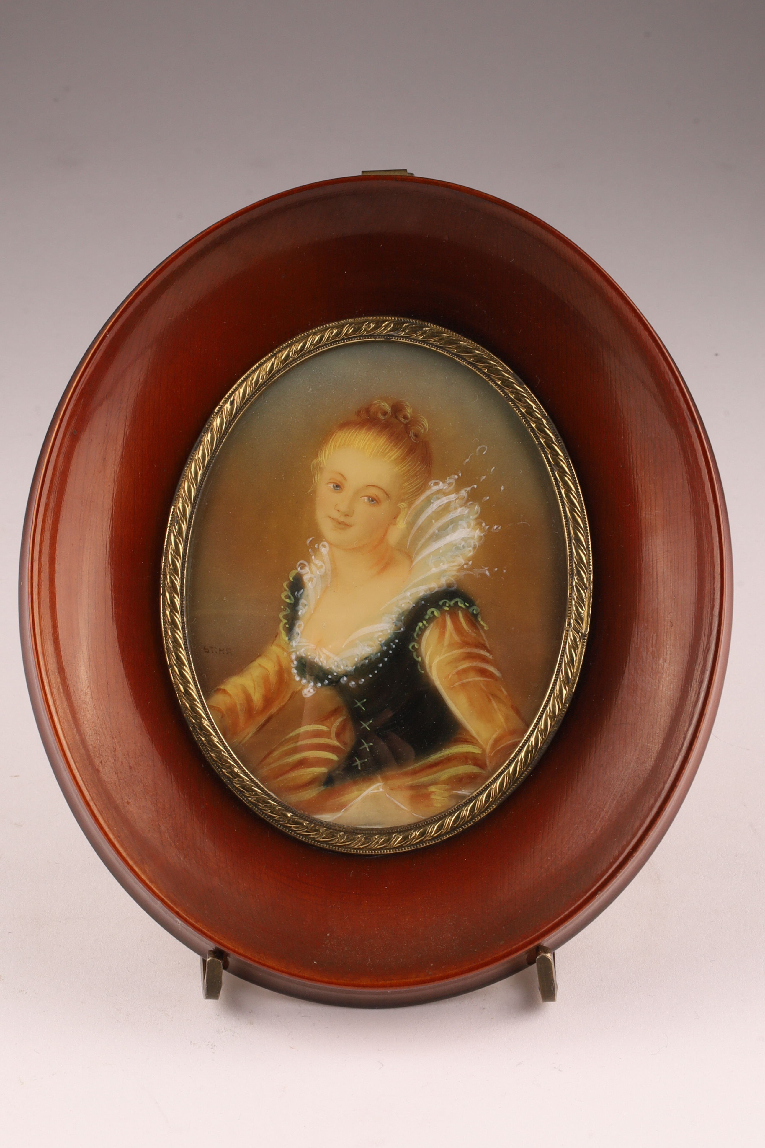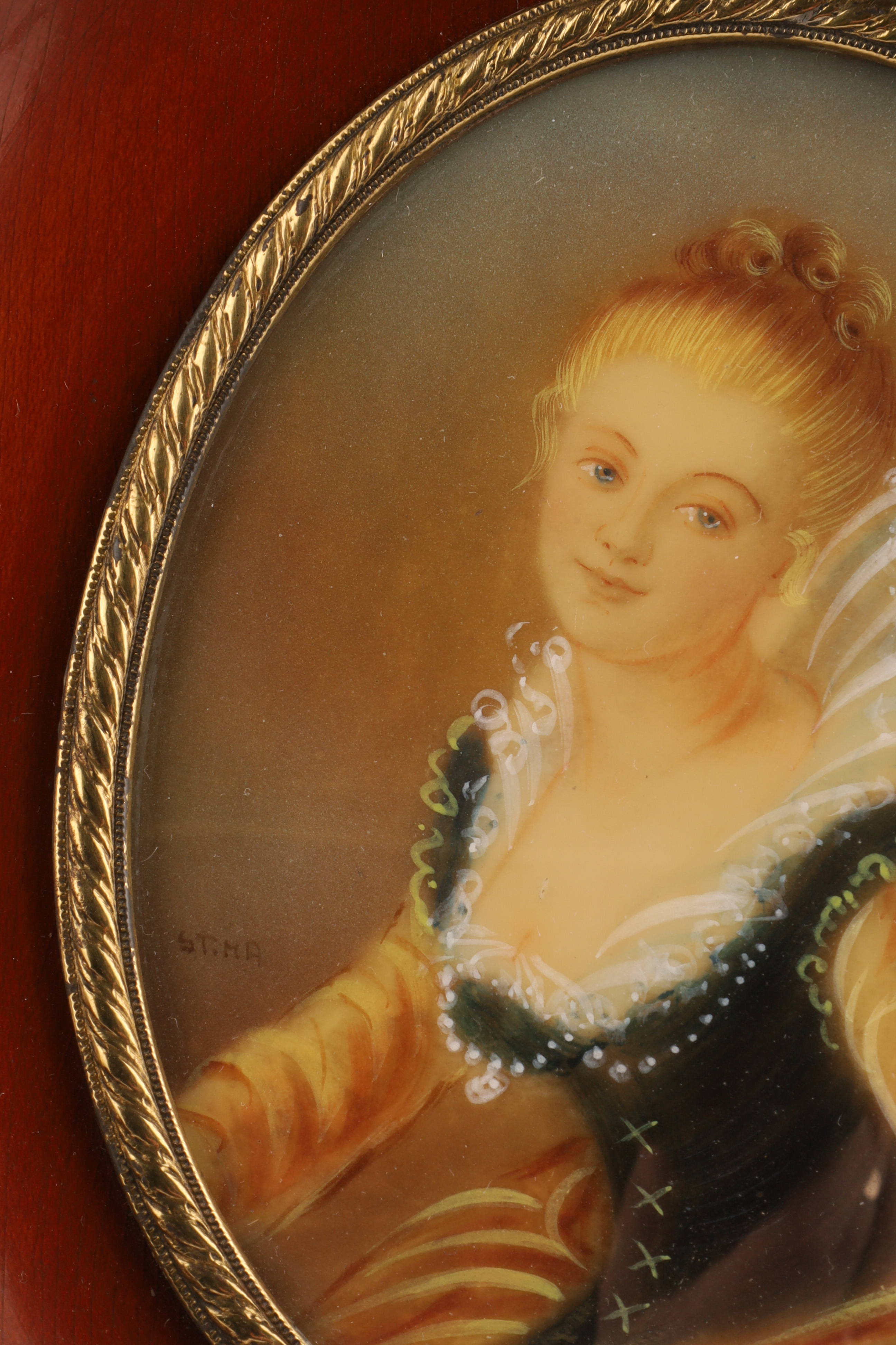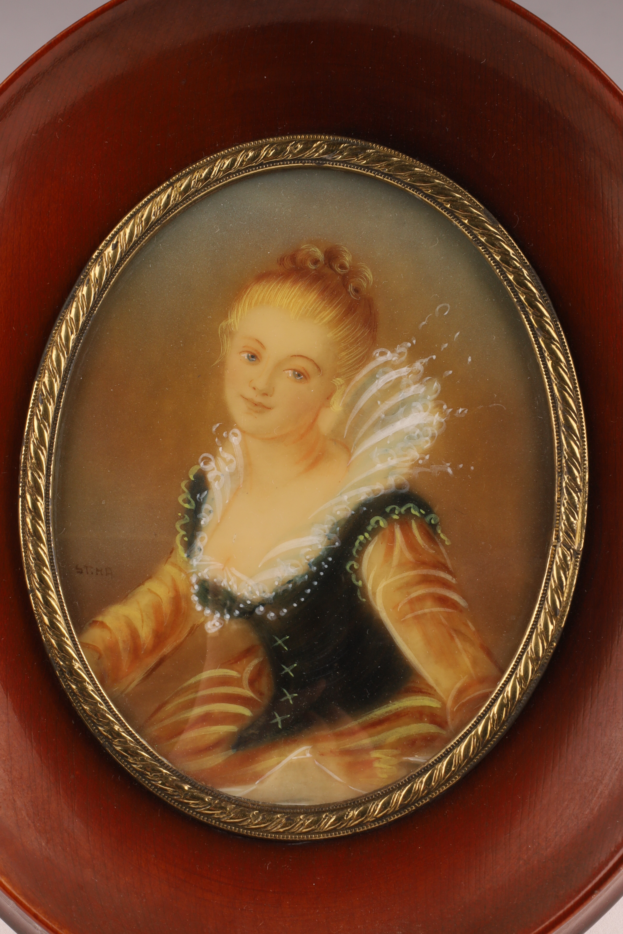 Antique Portrait Miniature of a Lady in Renaissance Dress, Signed
