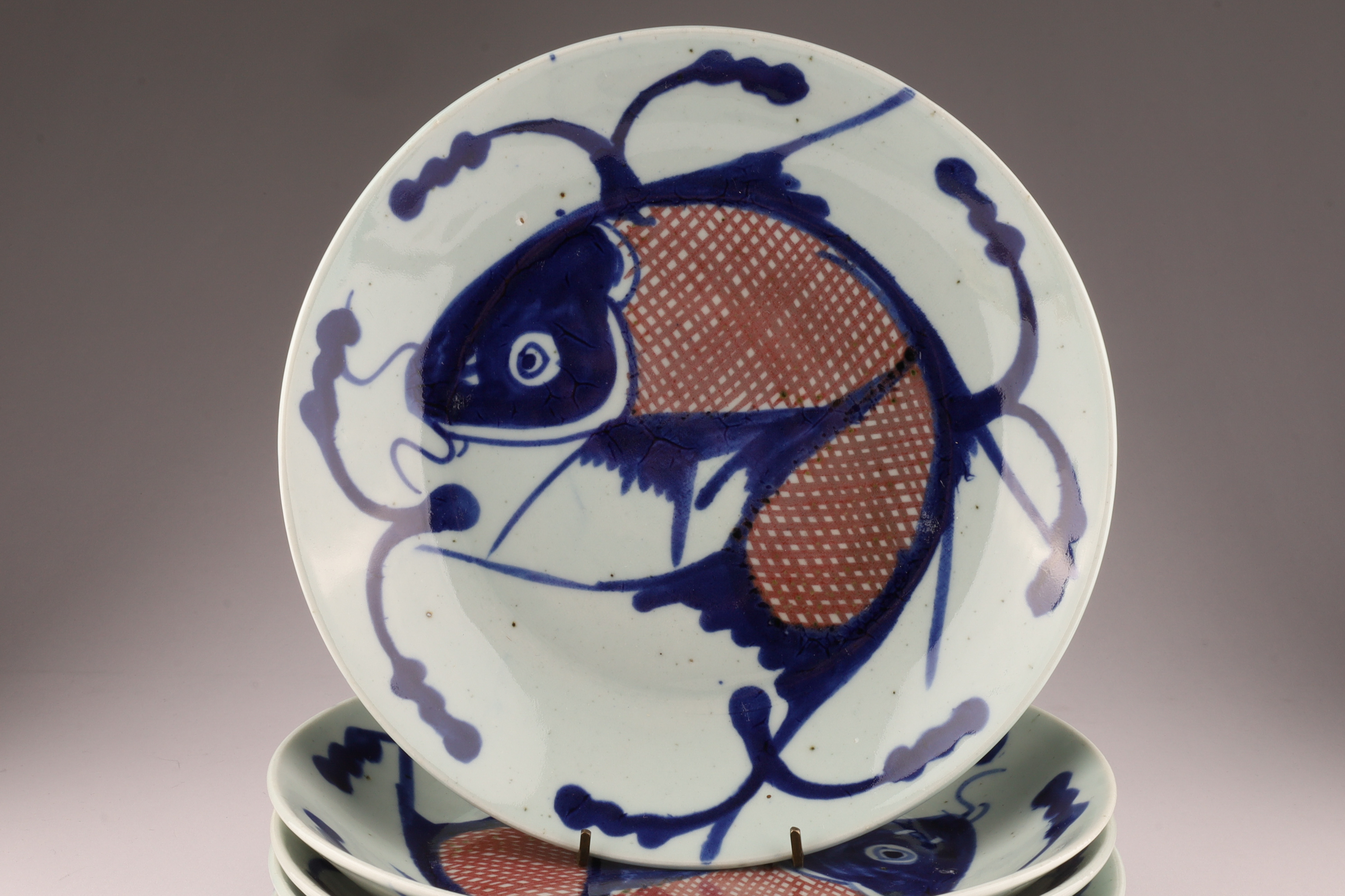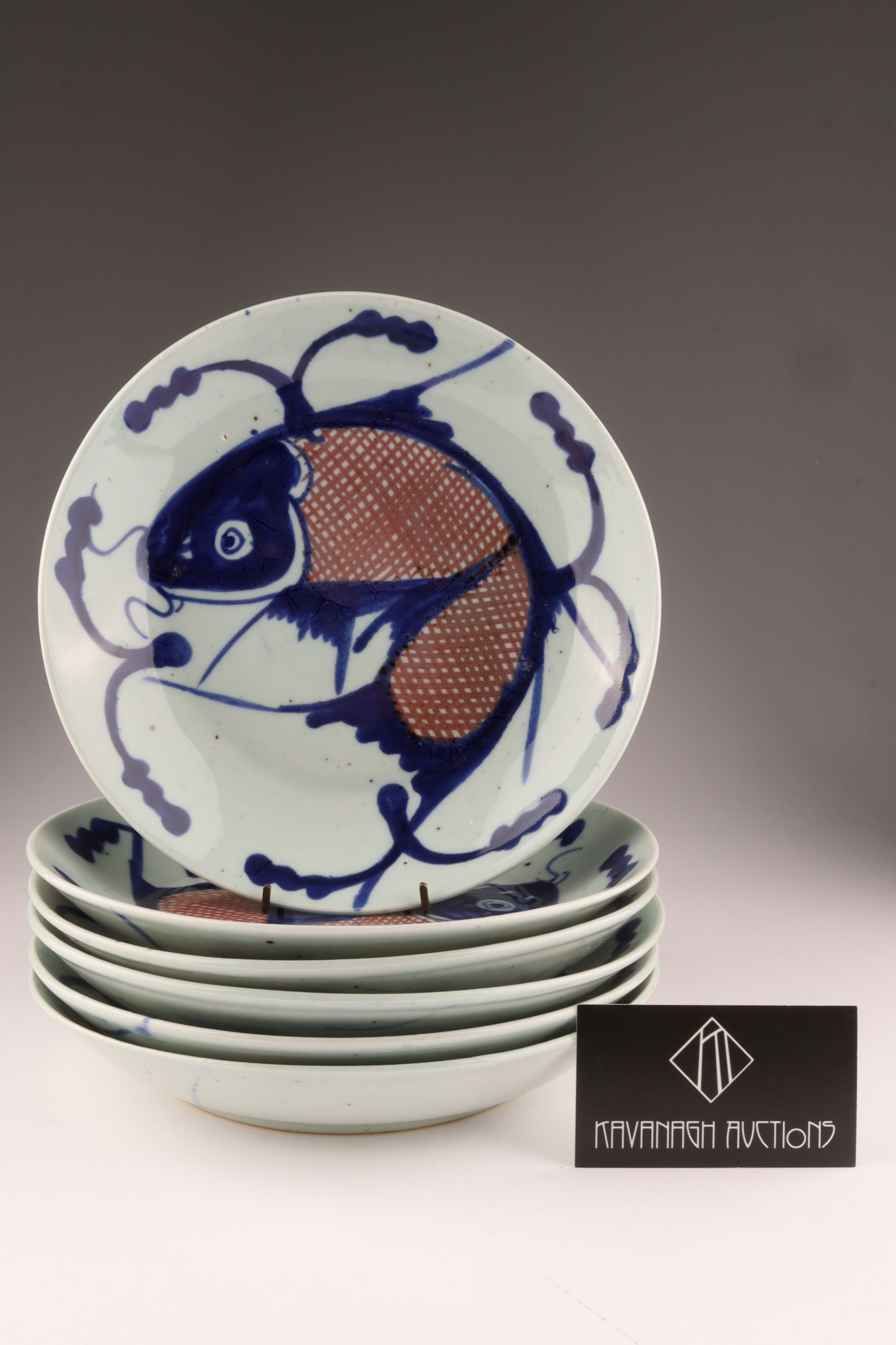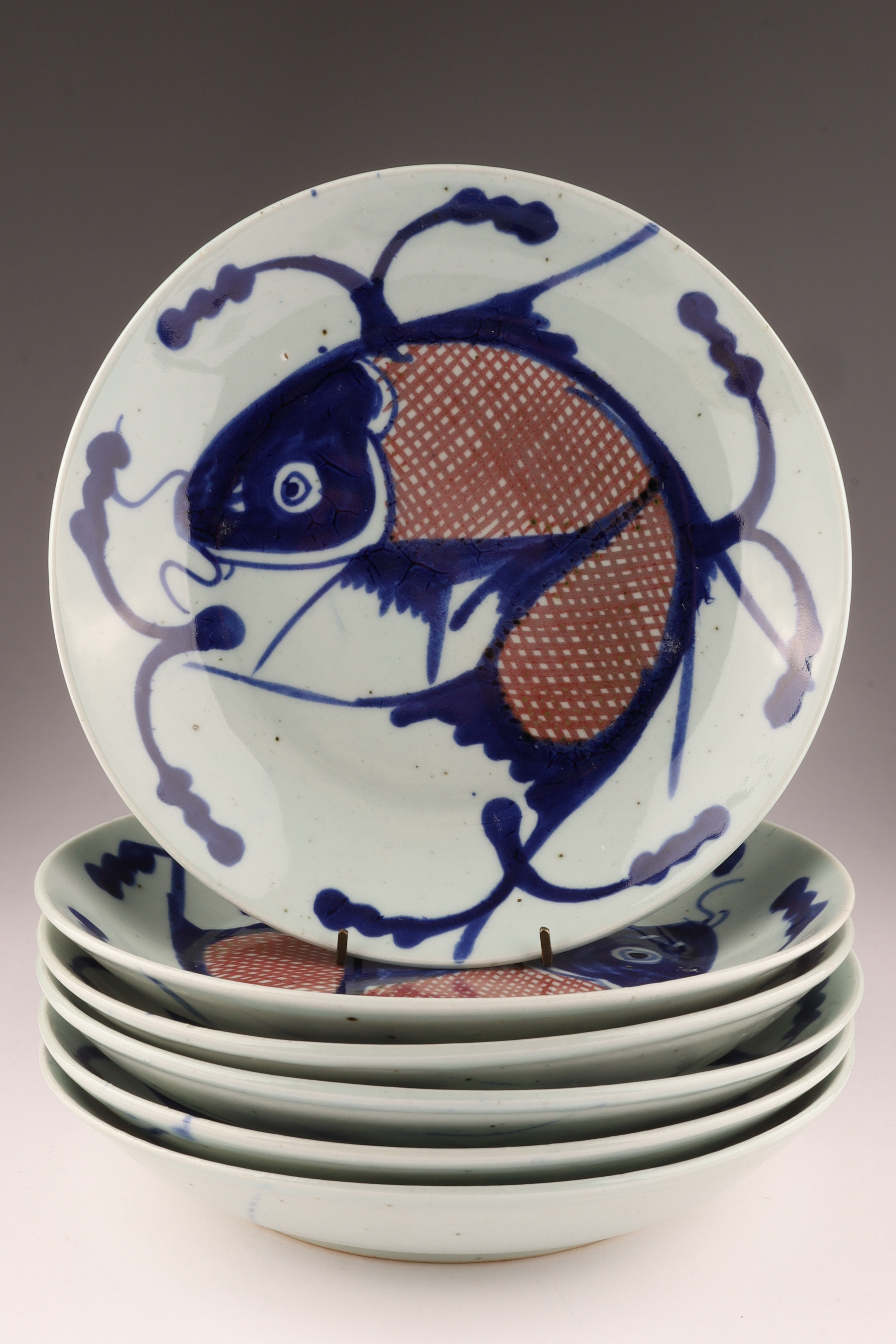 Set of 6 Antique Chinese Porcelain Dishes Koi Fish Decoration