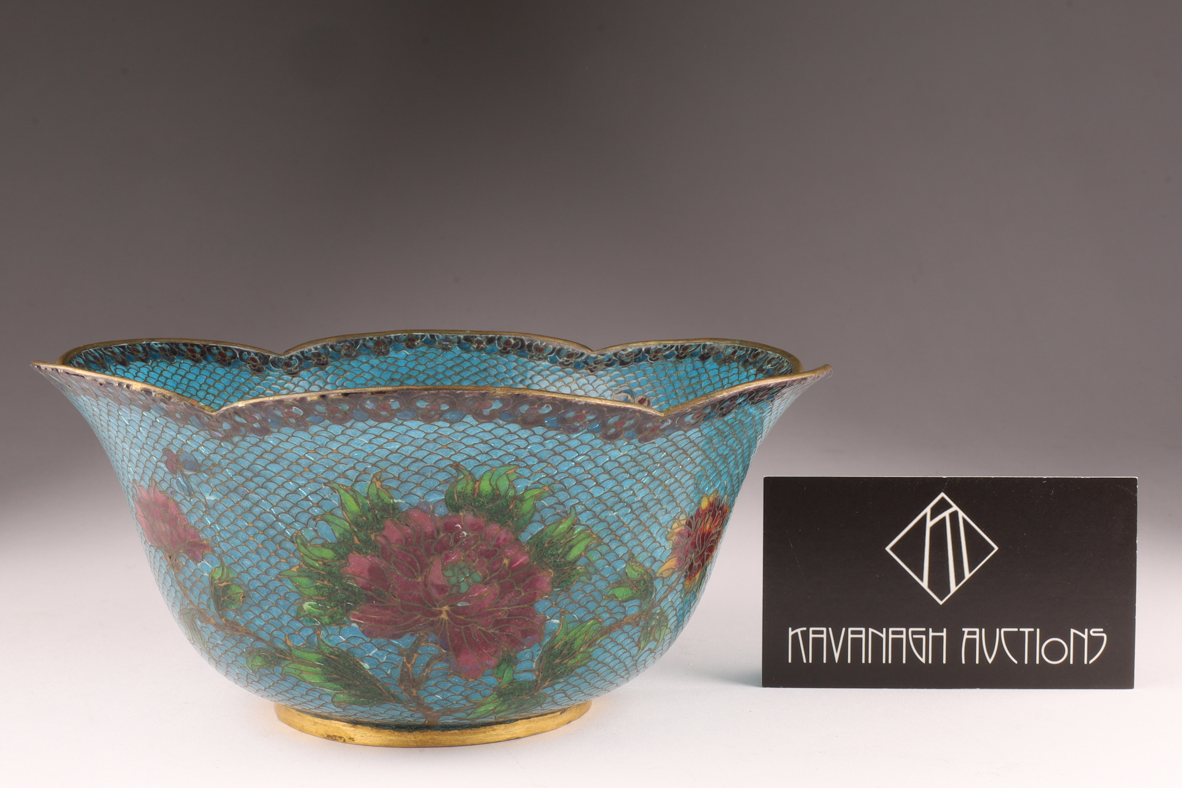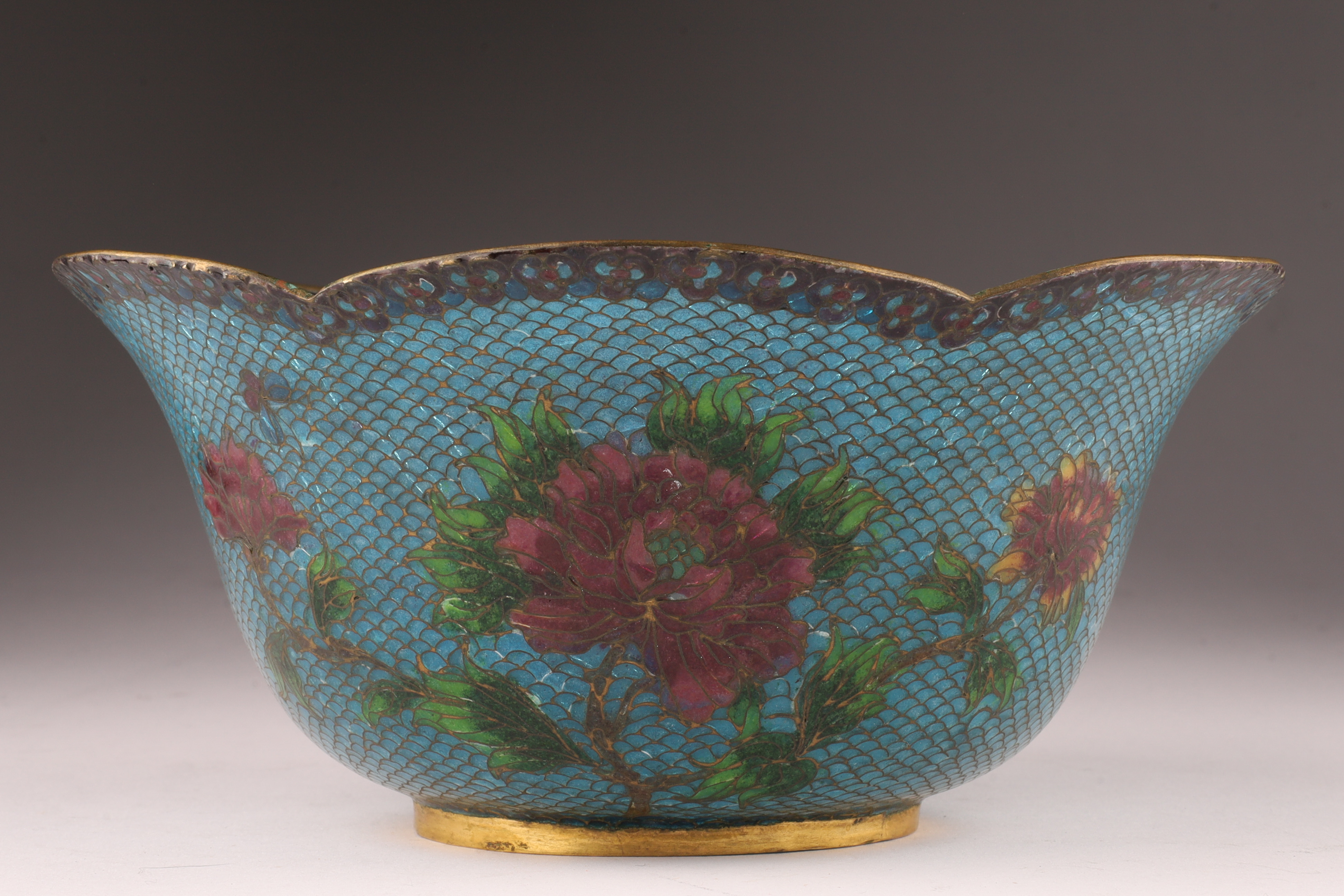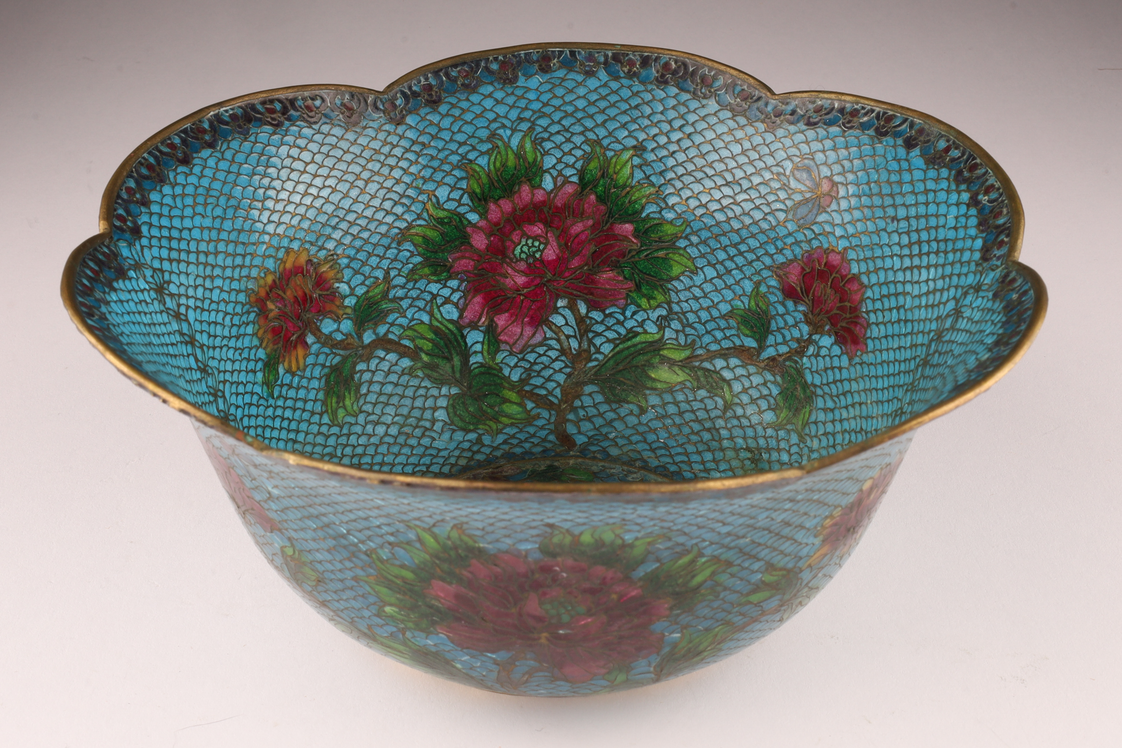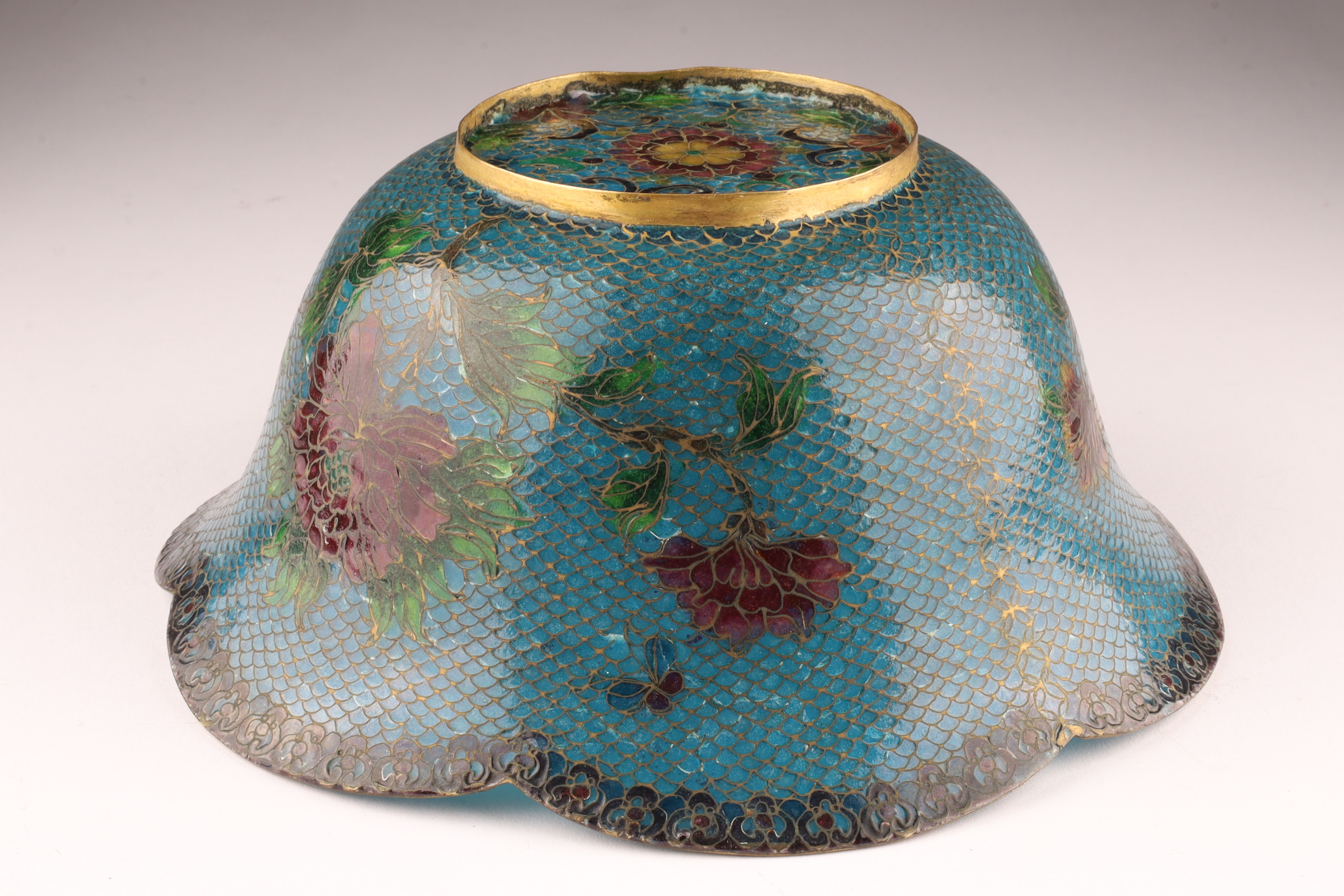 Chinese Plique a Jour Cloisonne Enamel Lobed Footed Bowl