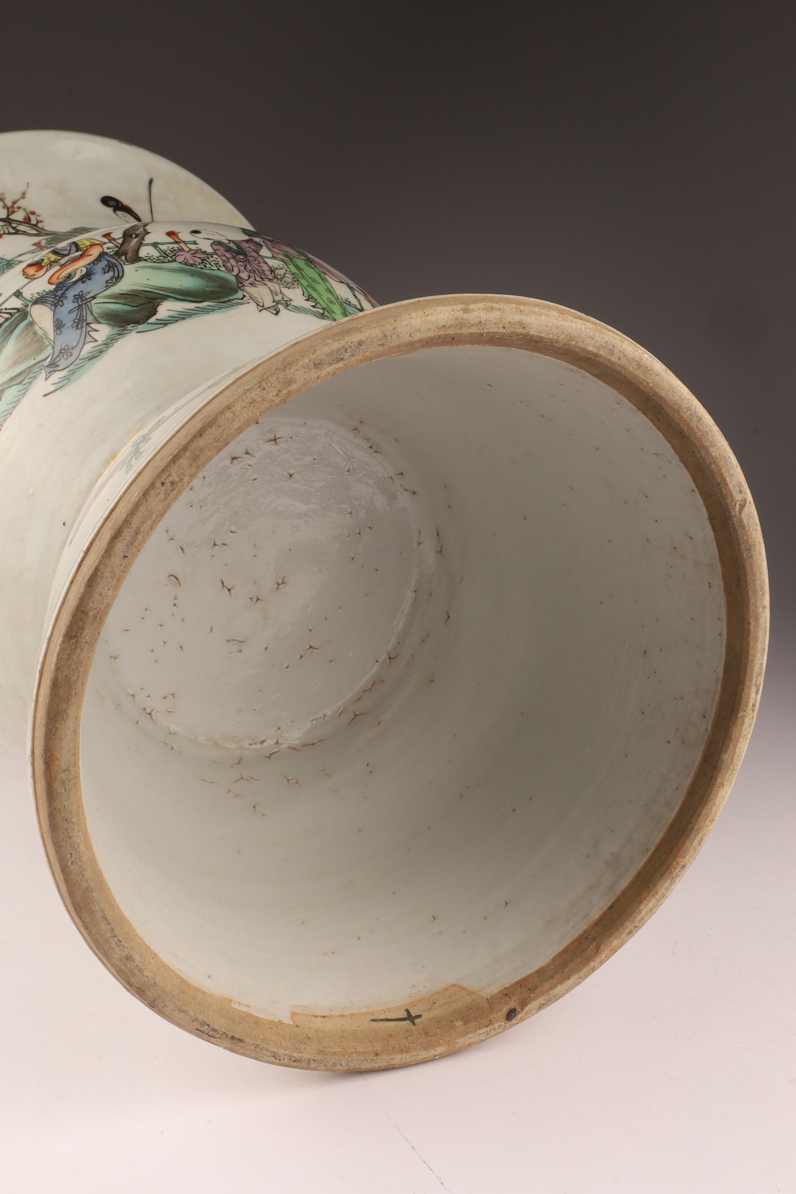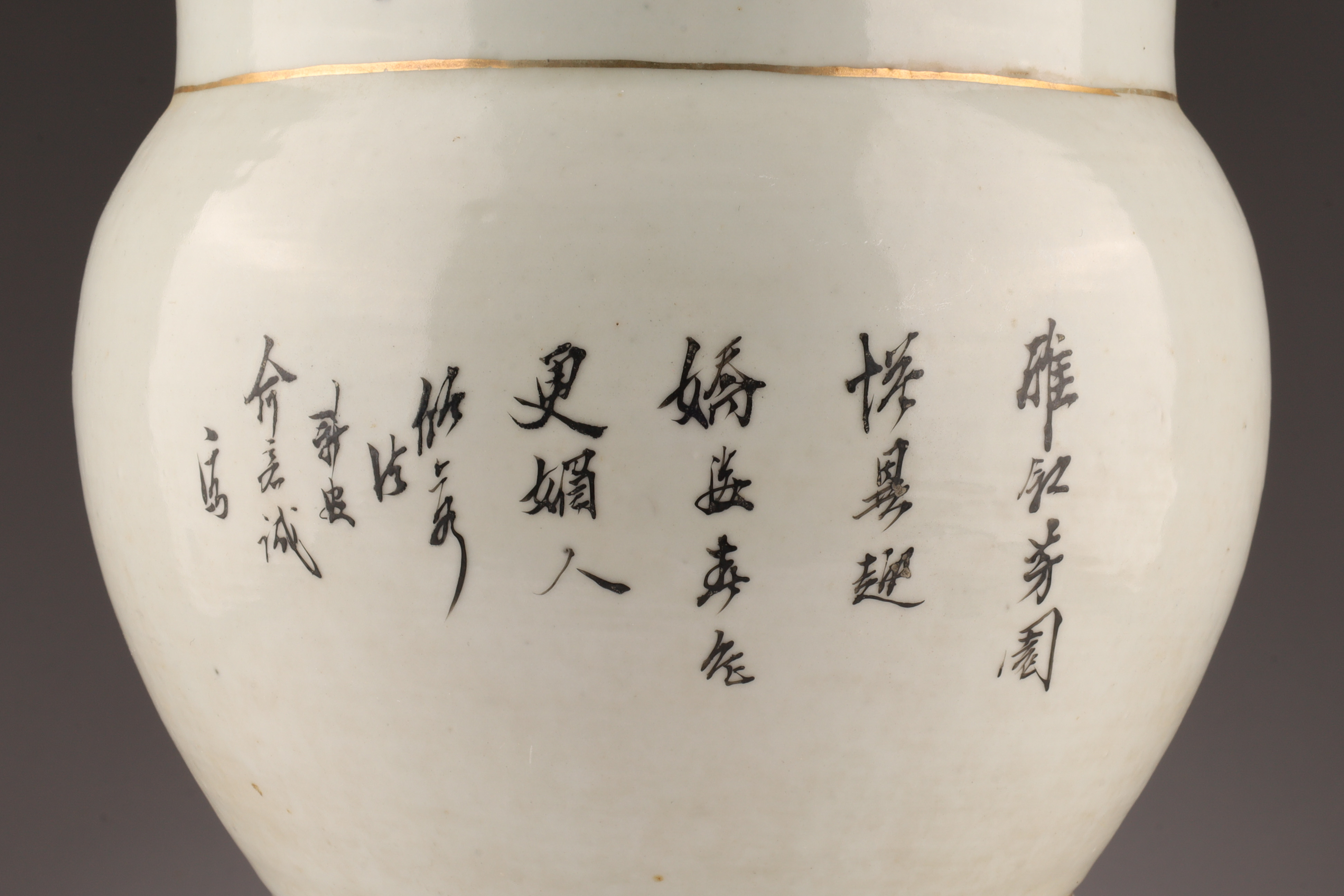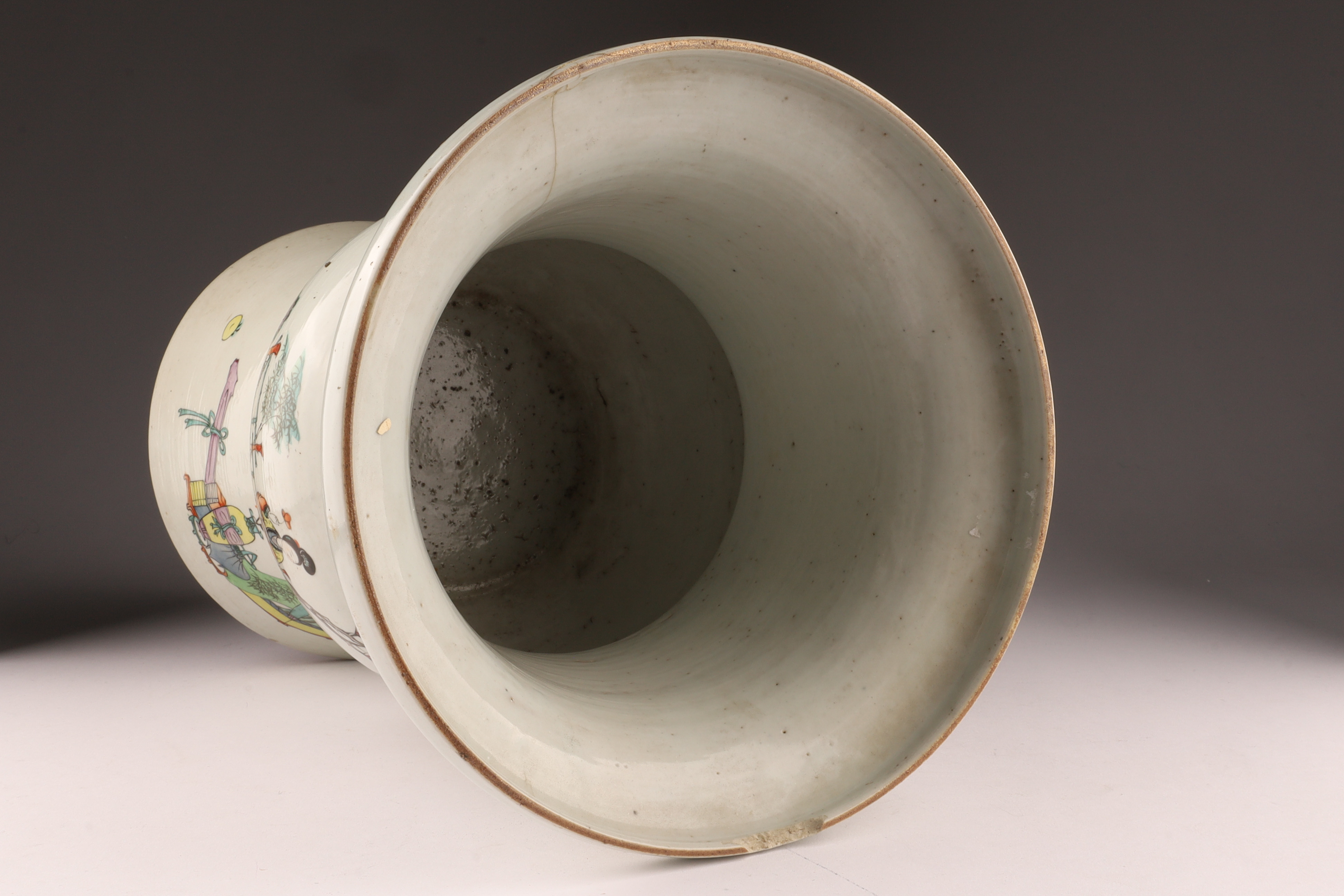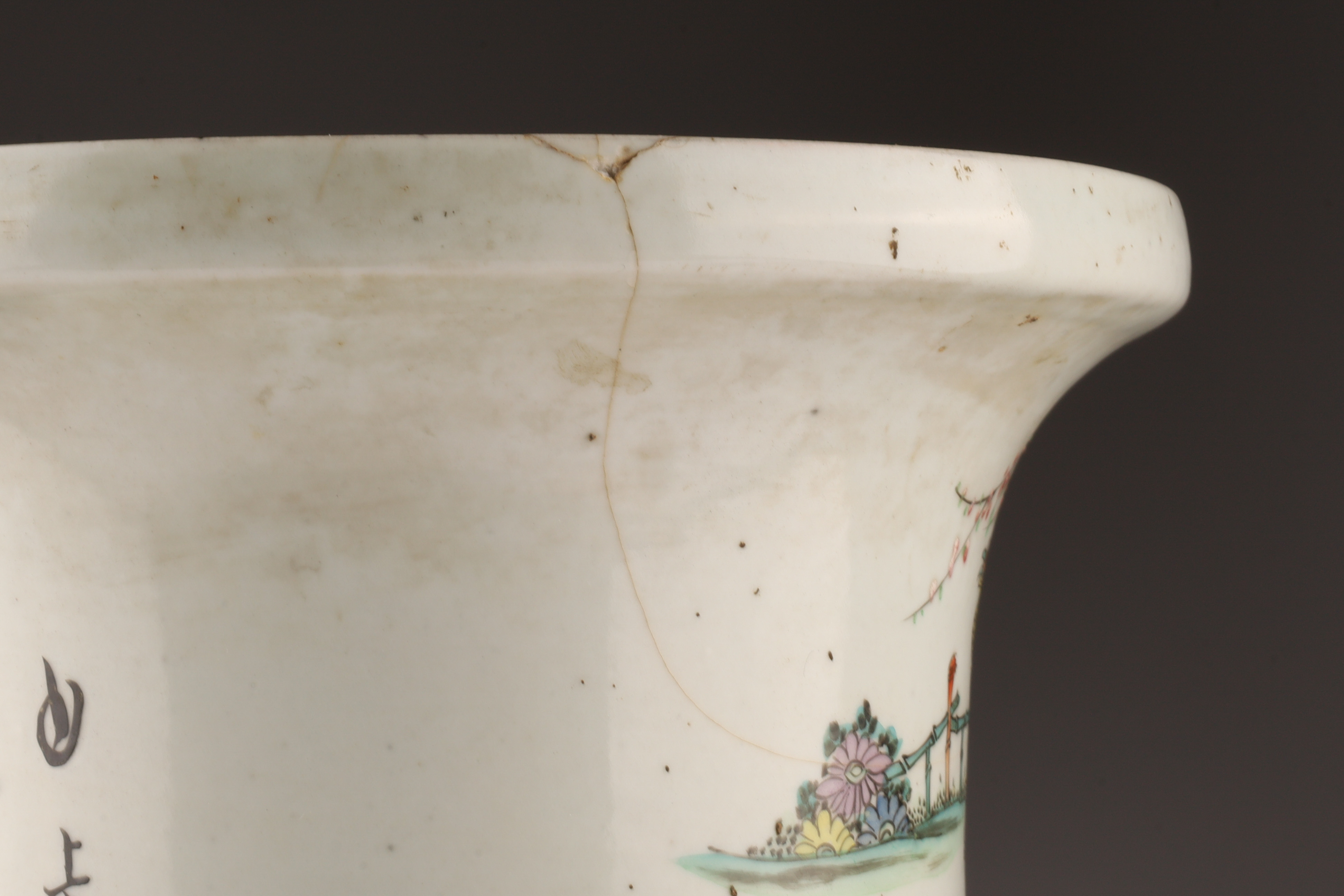 Antique Chinese Famille Rose Gu-Form Vase with Calligraphy and Court Ladies