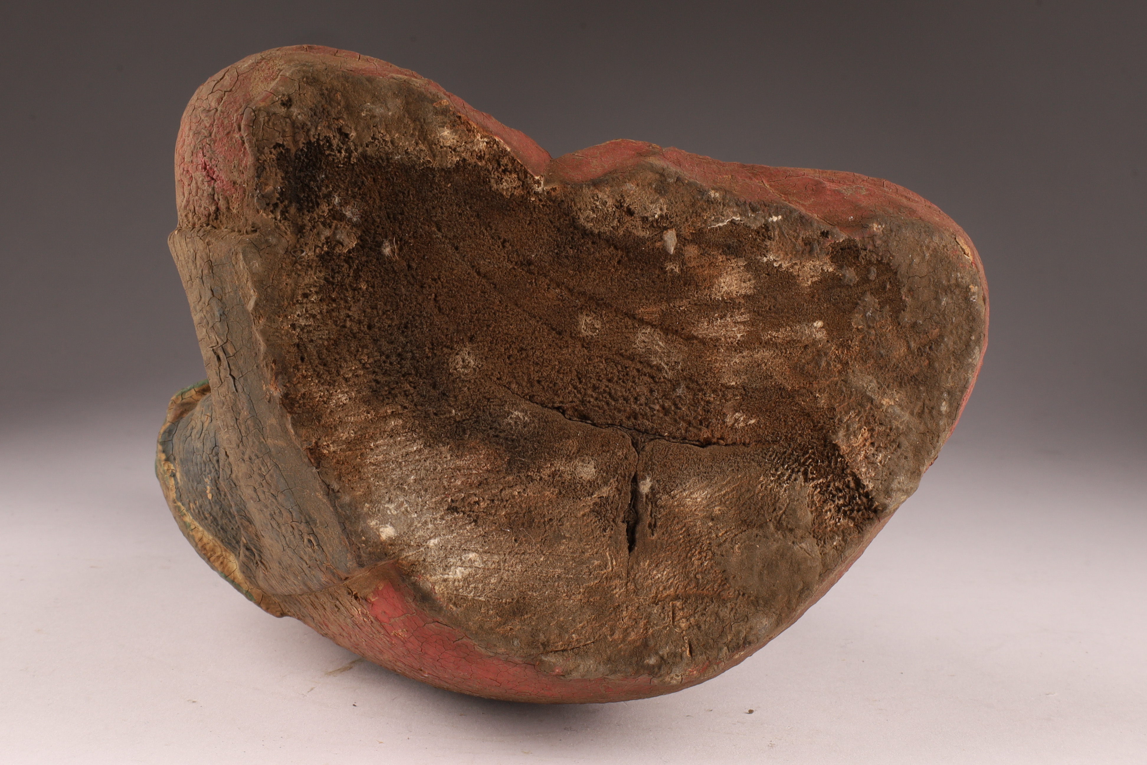 Medium: Carved and polychromed wood with traces of gilding; hollowed at the back for consecration.