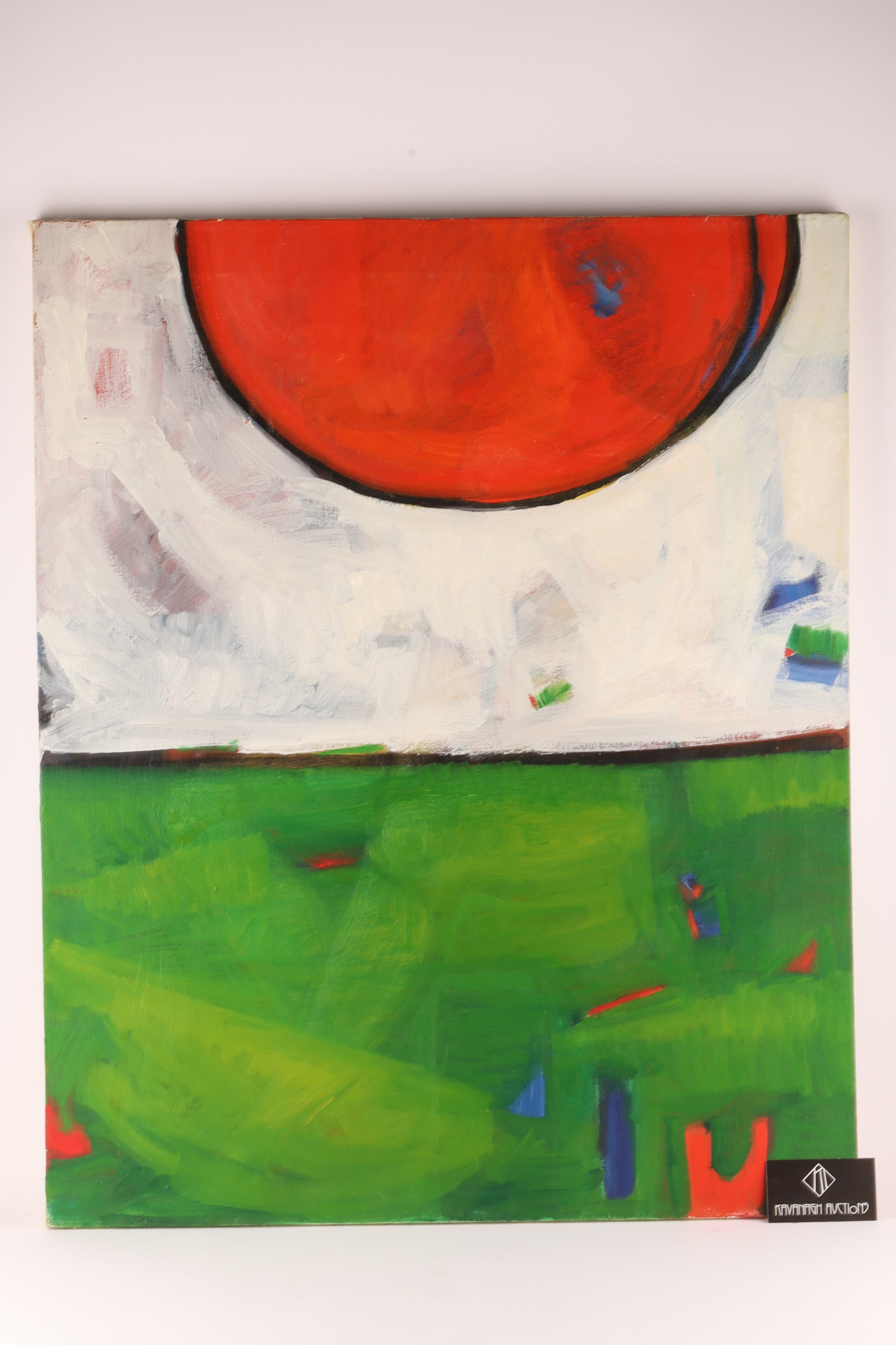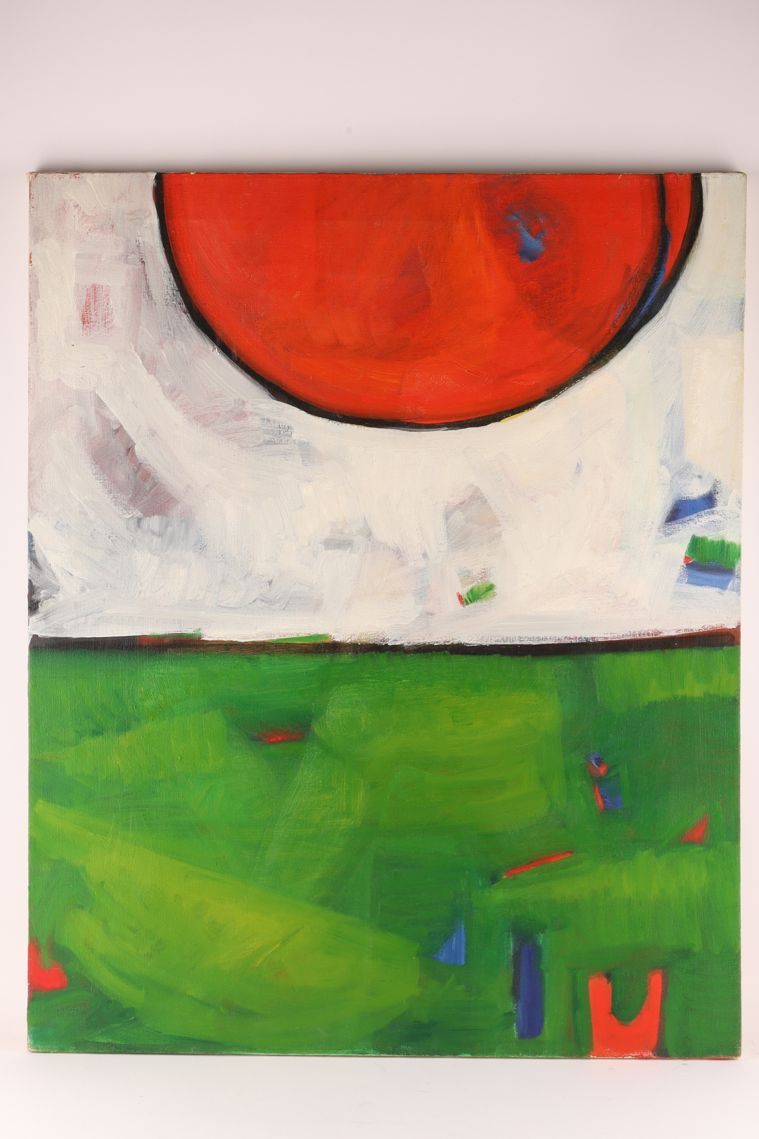 Marcel Favreau (Canadian, 1921-2009), Abstract Painting with Red Disc and Green Field