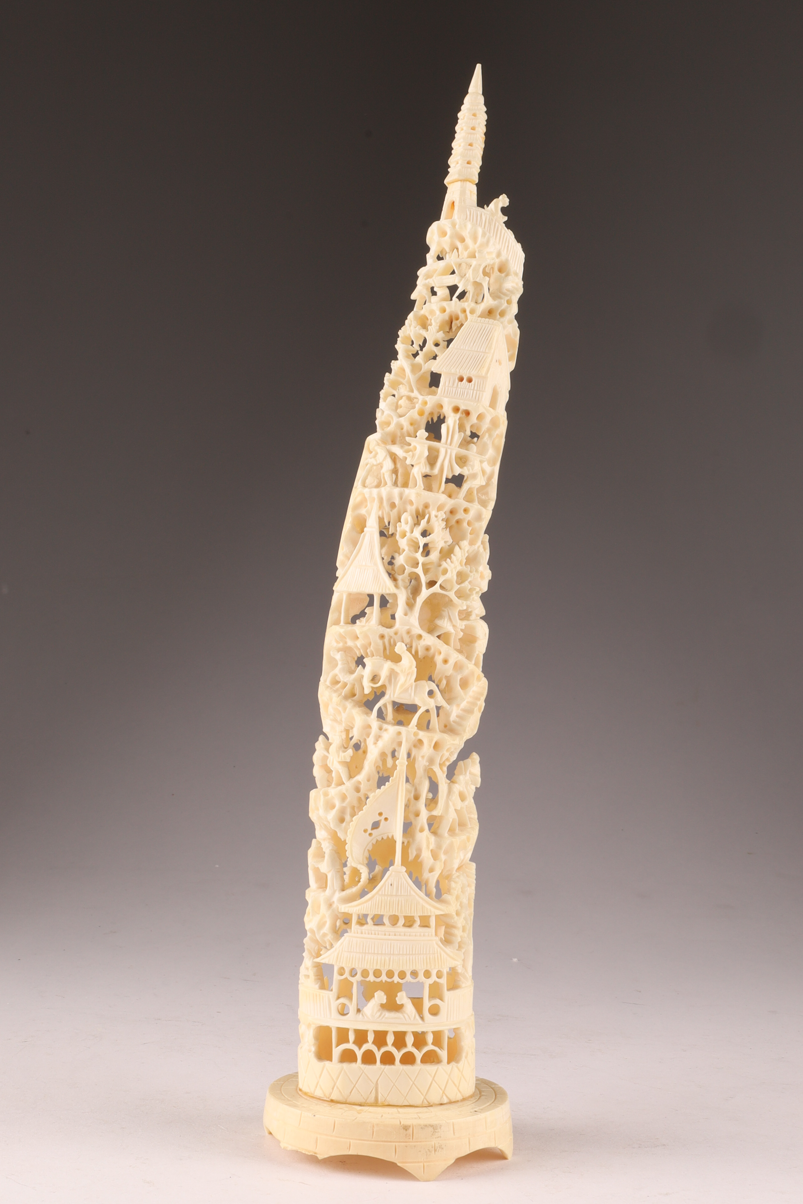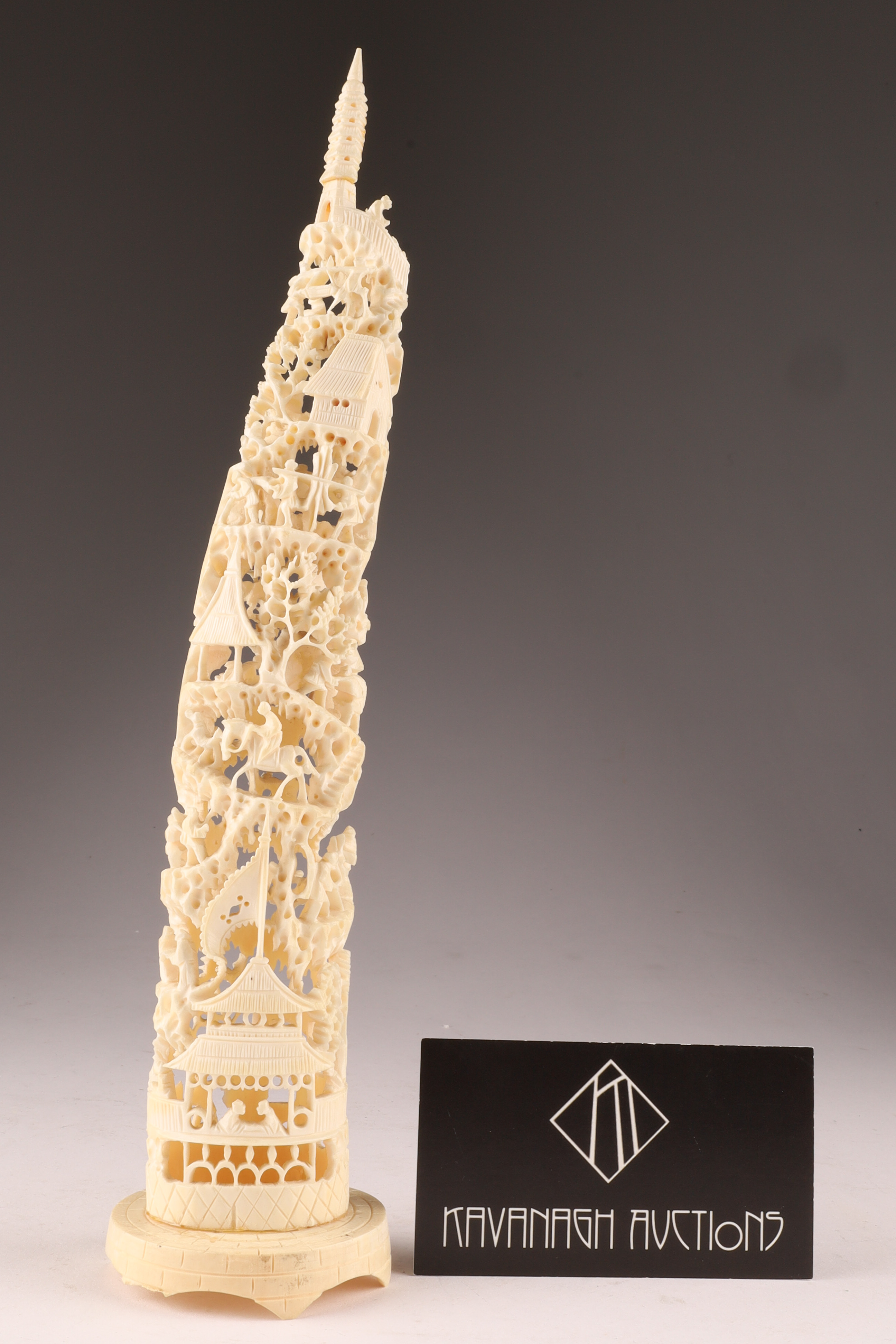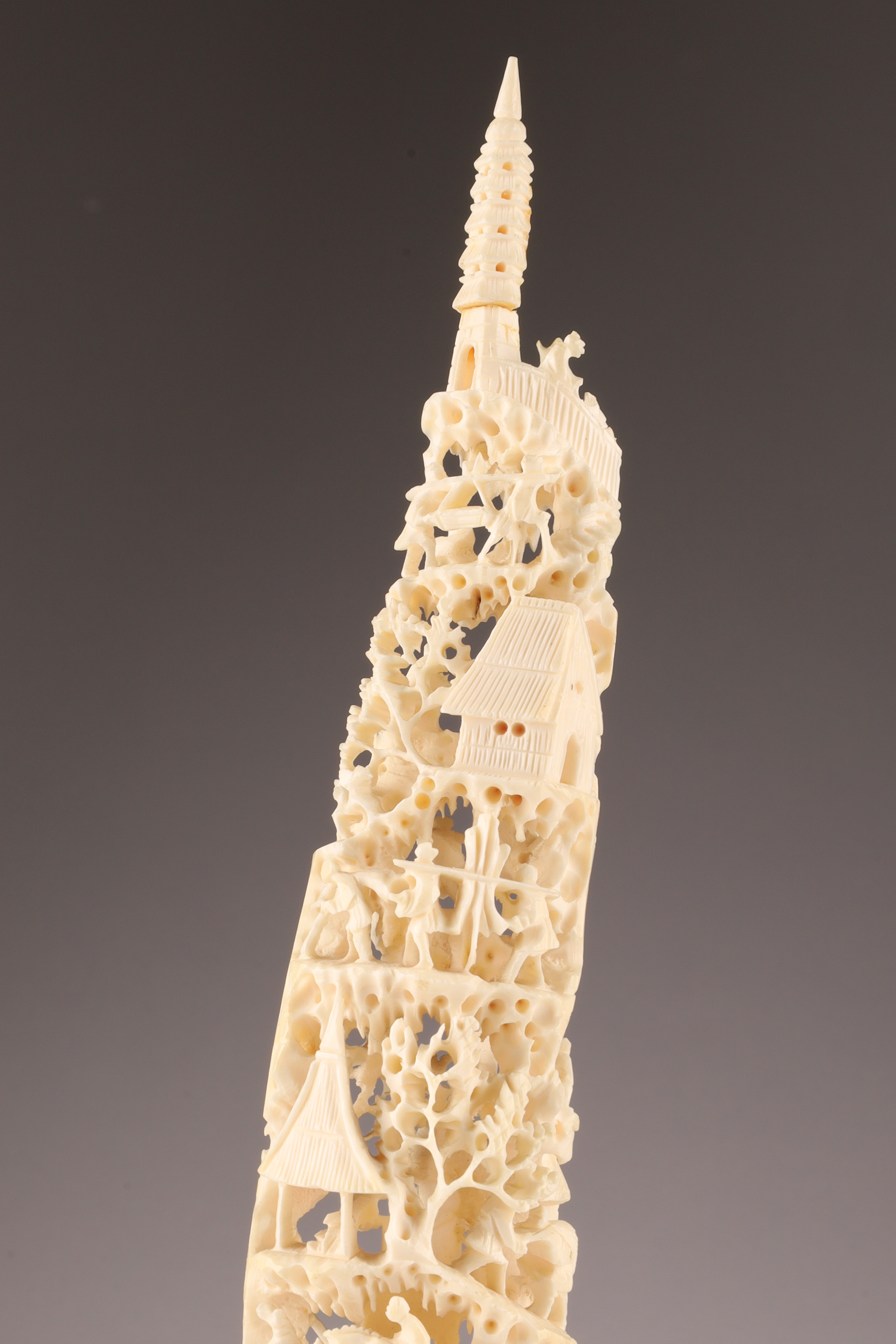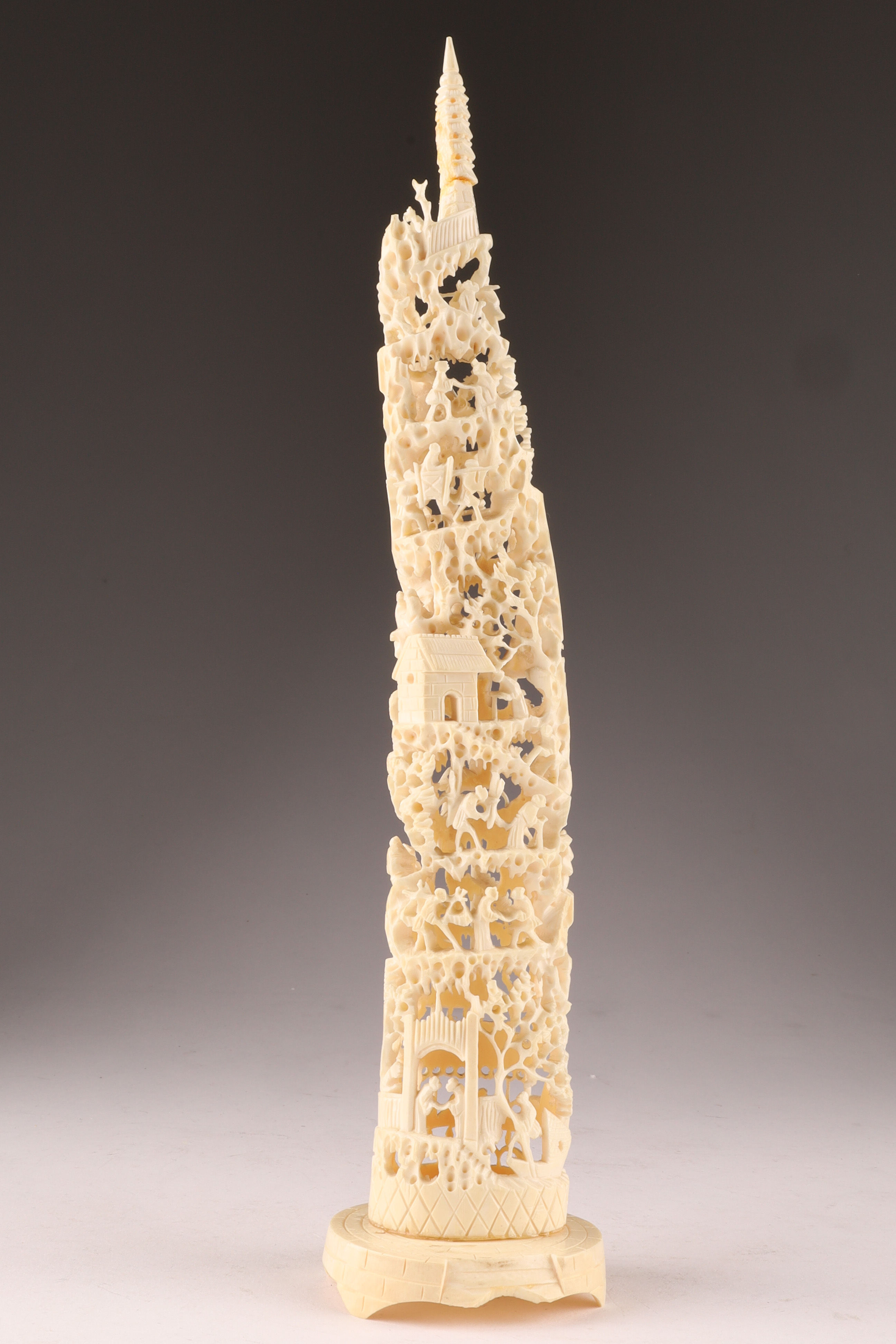 Antique Carved Chinese Reticulated Landscape Scene. 11 inches