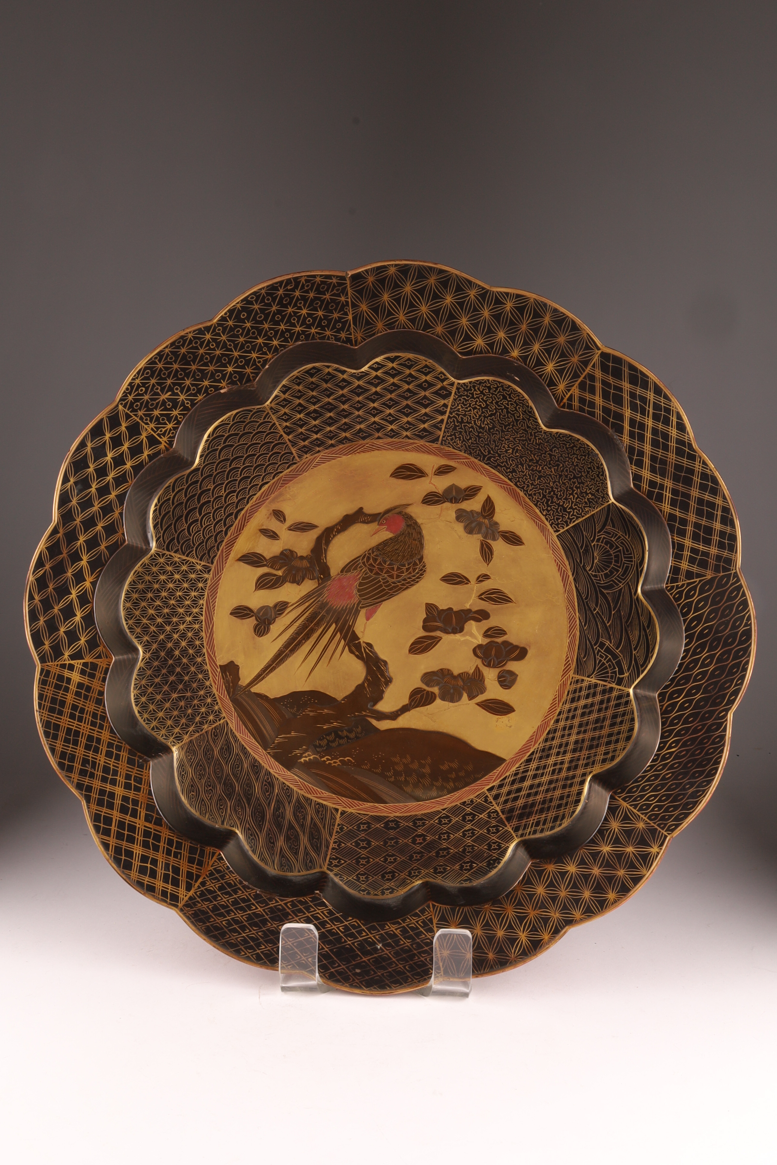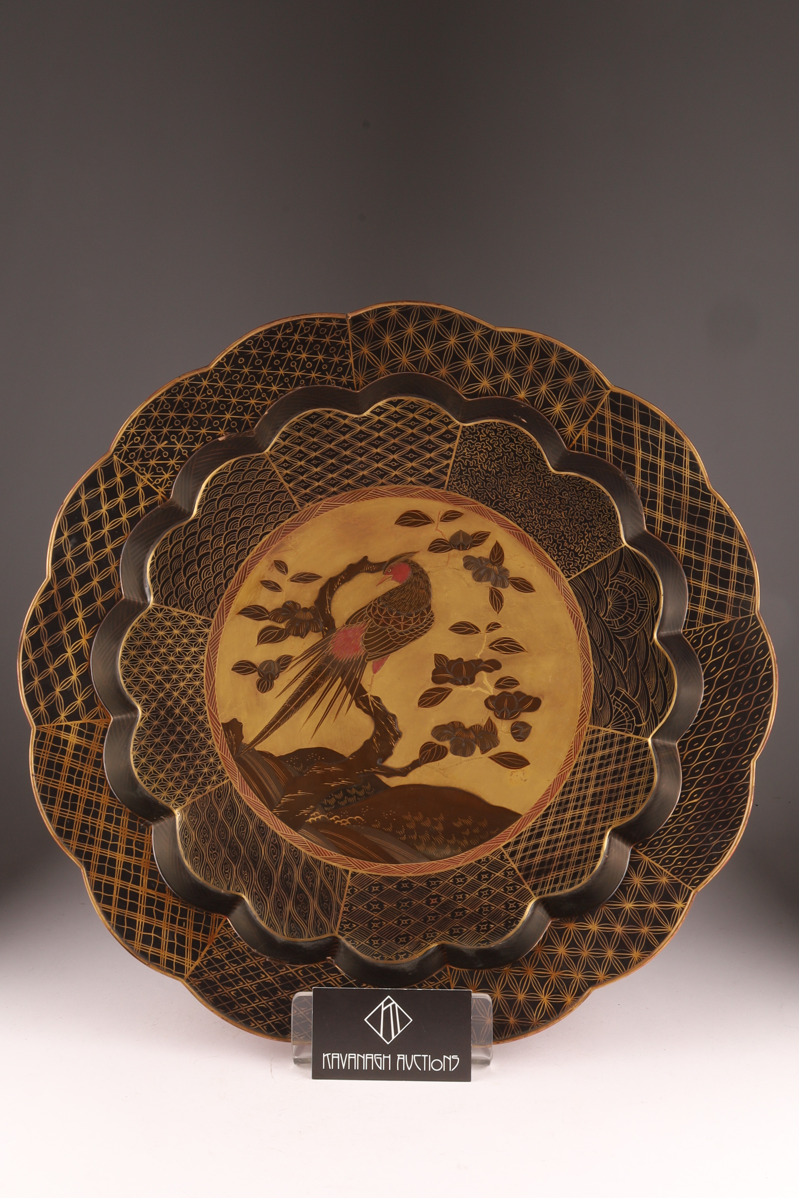Large Chinese or Japanese Signed Gilt Lacquer Tray