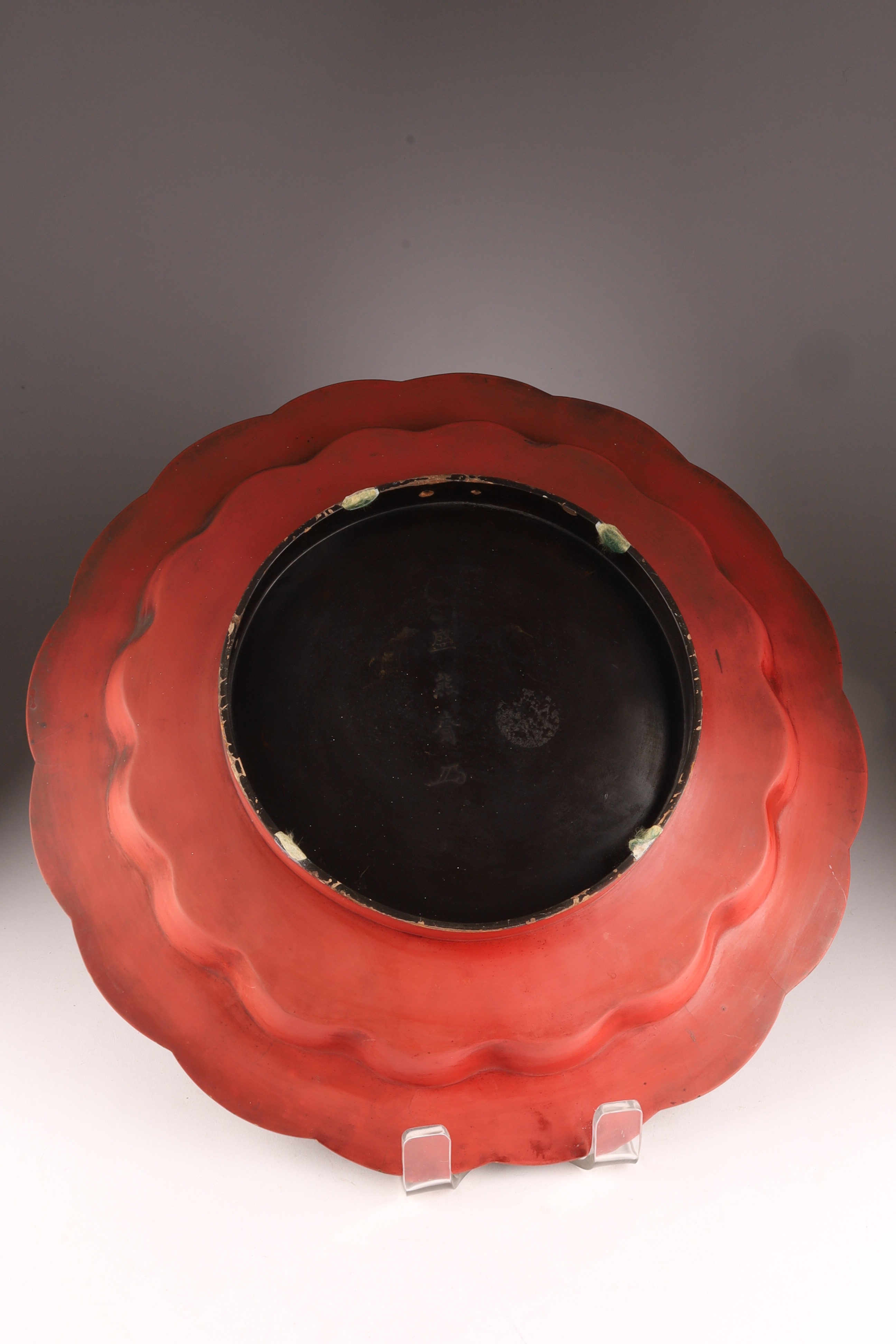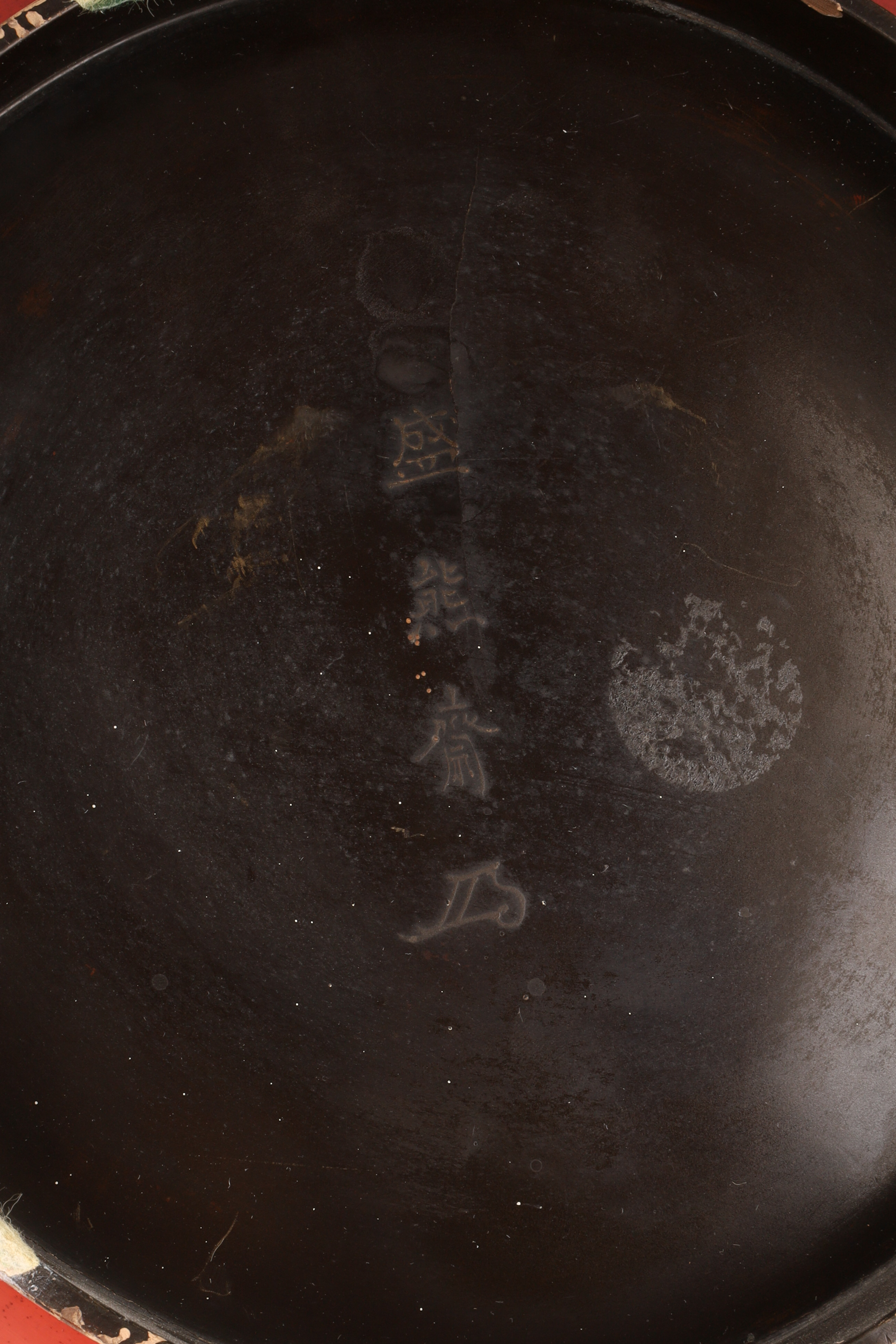 Large Chinese or Japanese Signed Gilt Lacquer Tray. 17 inches wide.