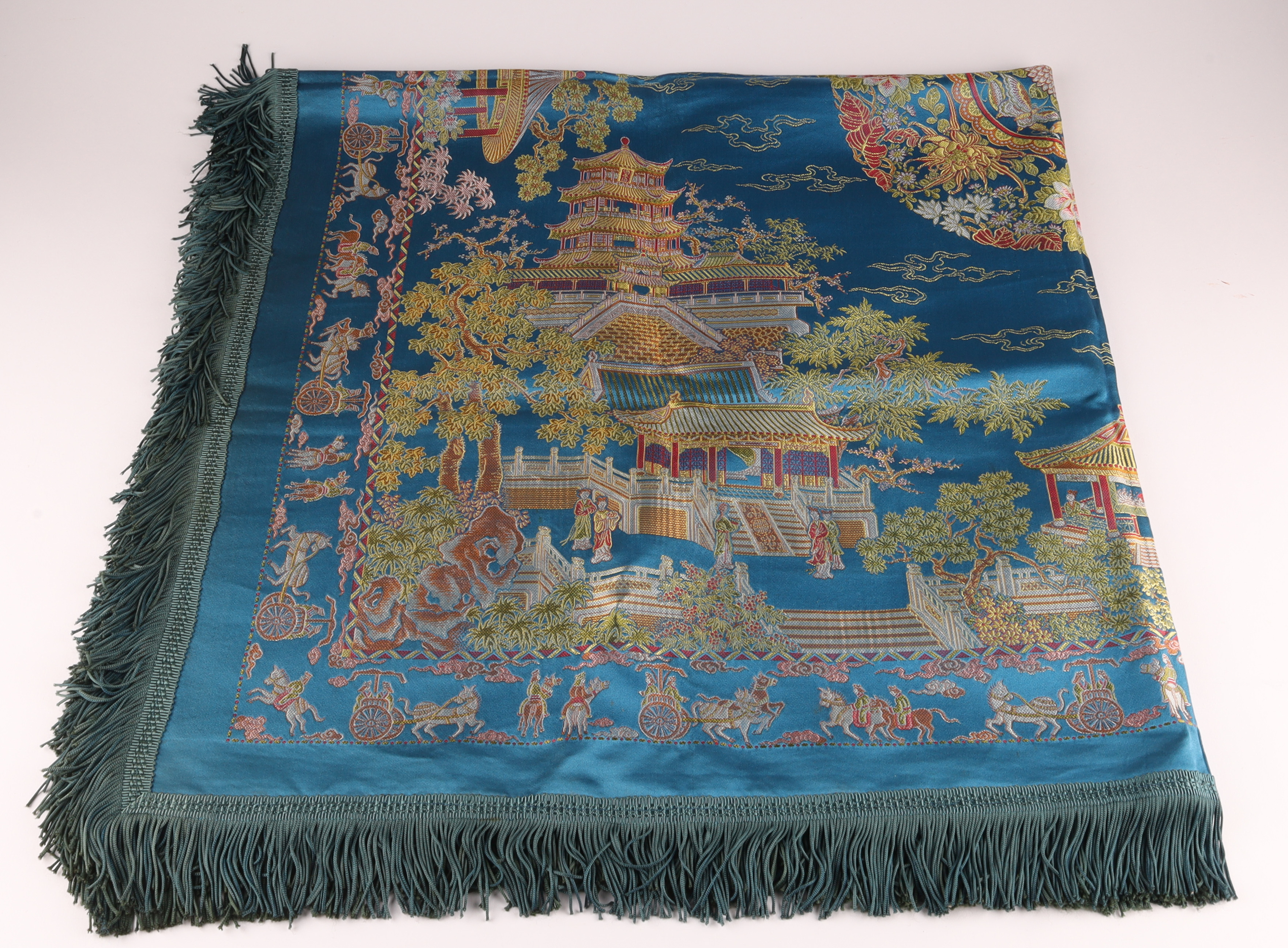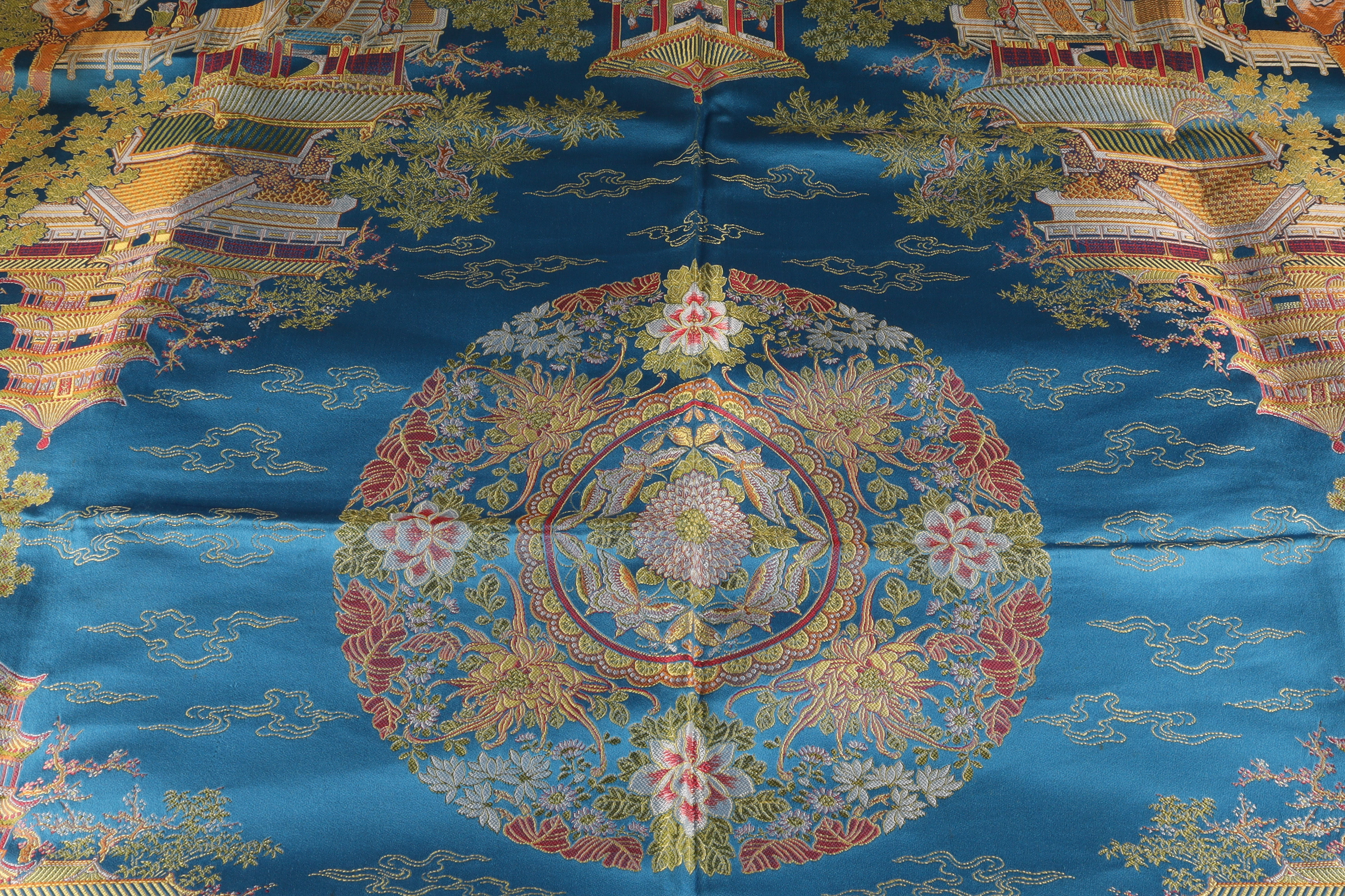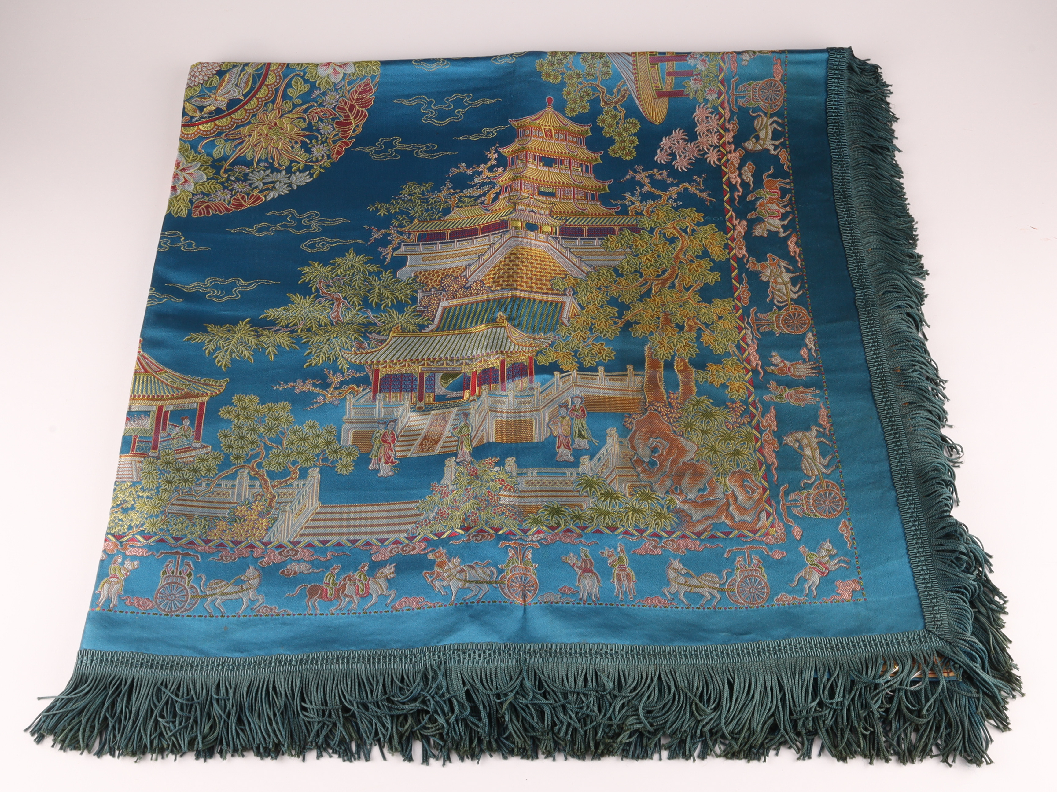Chinese Kesi Silk Landscape with Medallion. 38 x 38 inches.