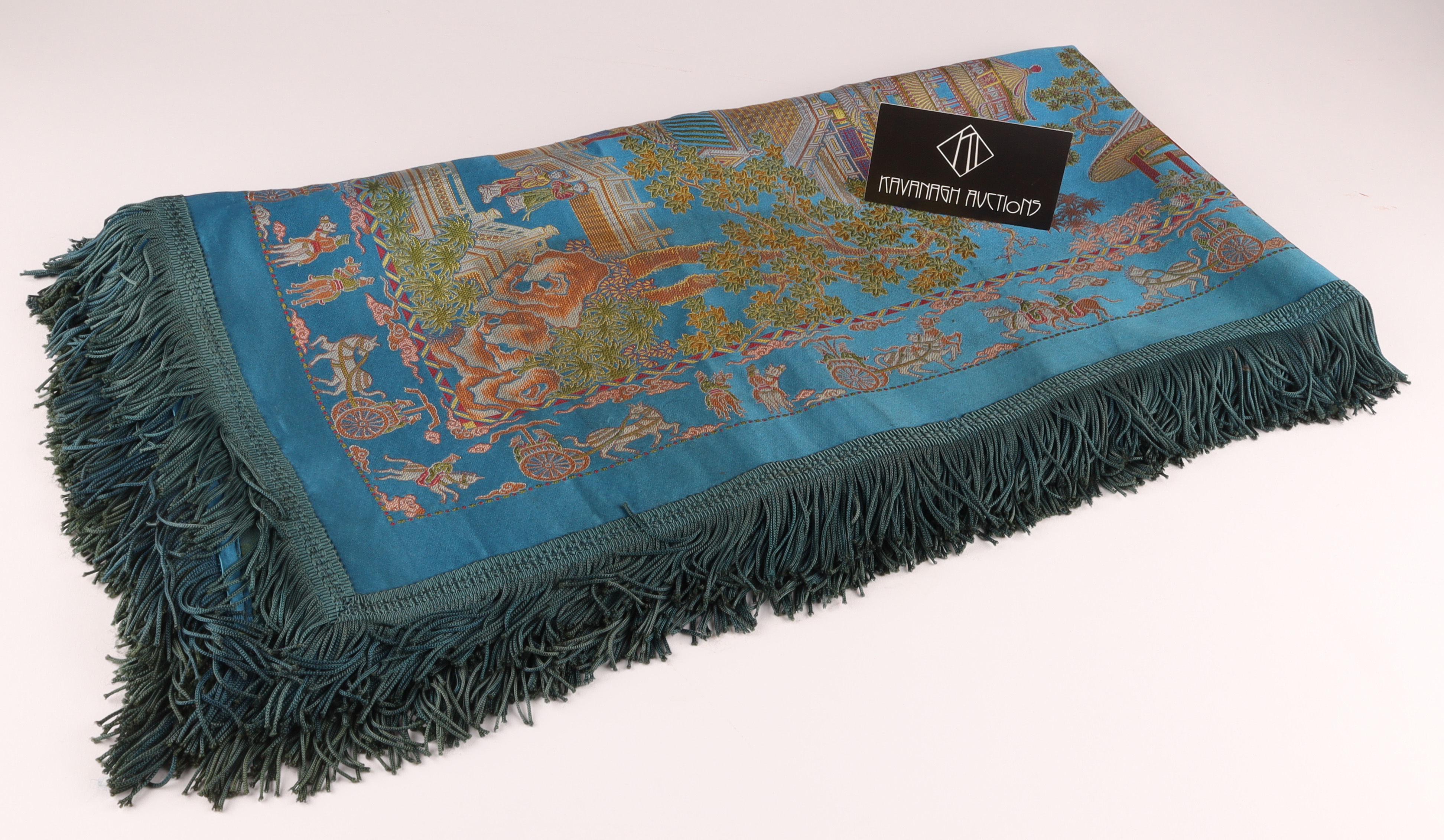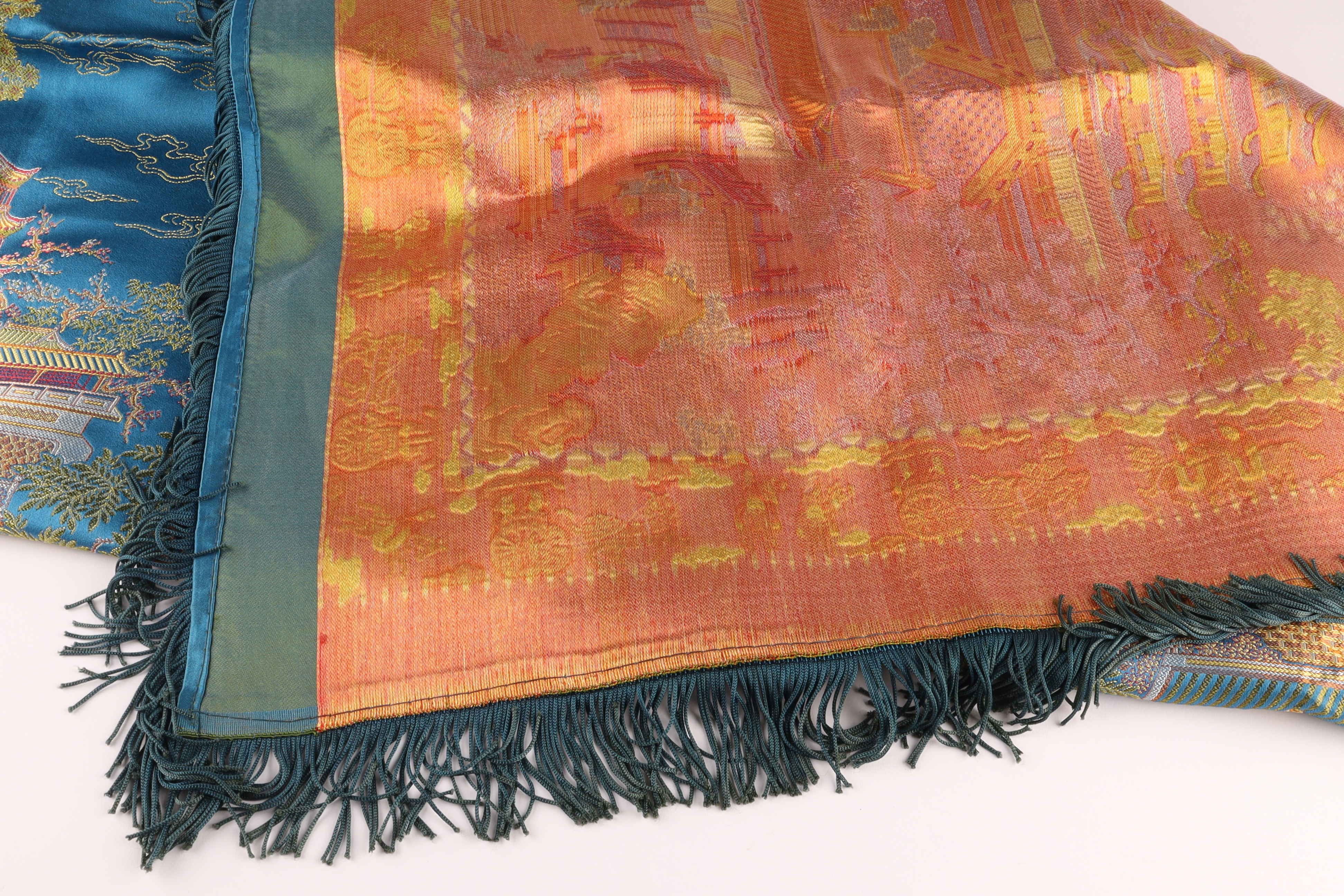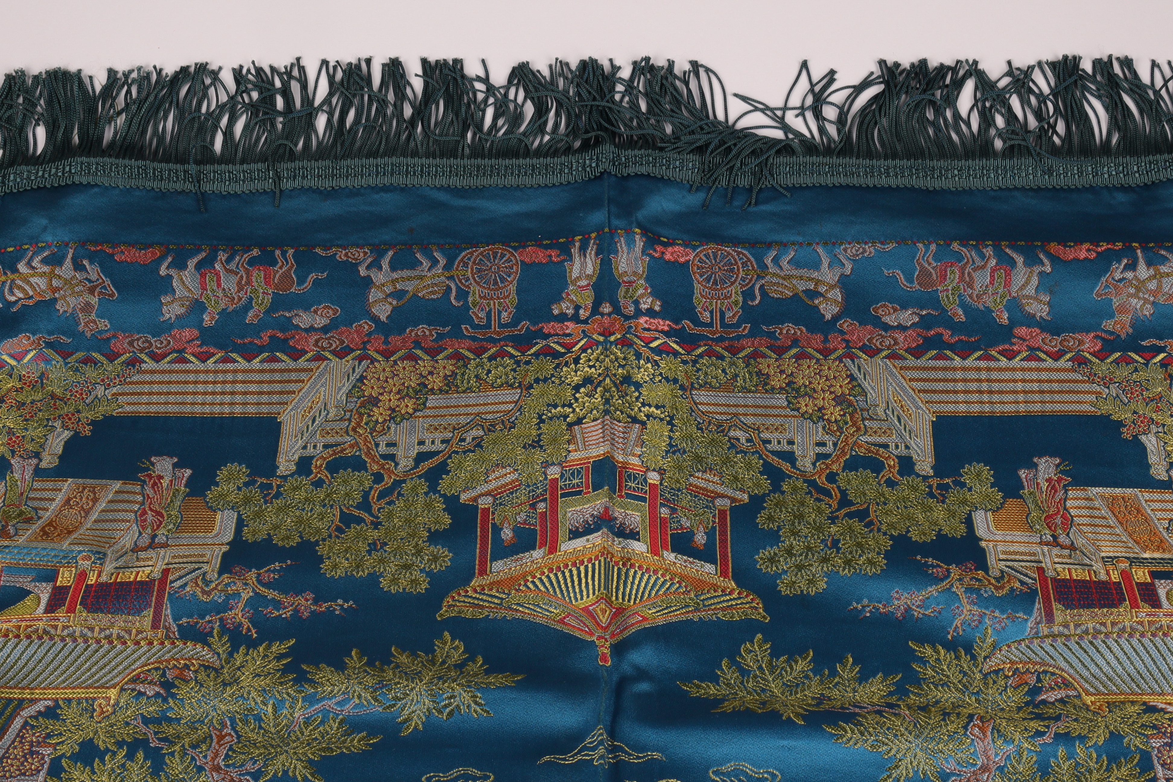Chinese Kesi Silk Landscape with Medallion. 38 x 38 inches.