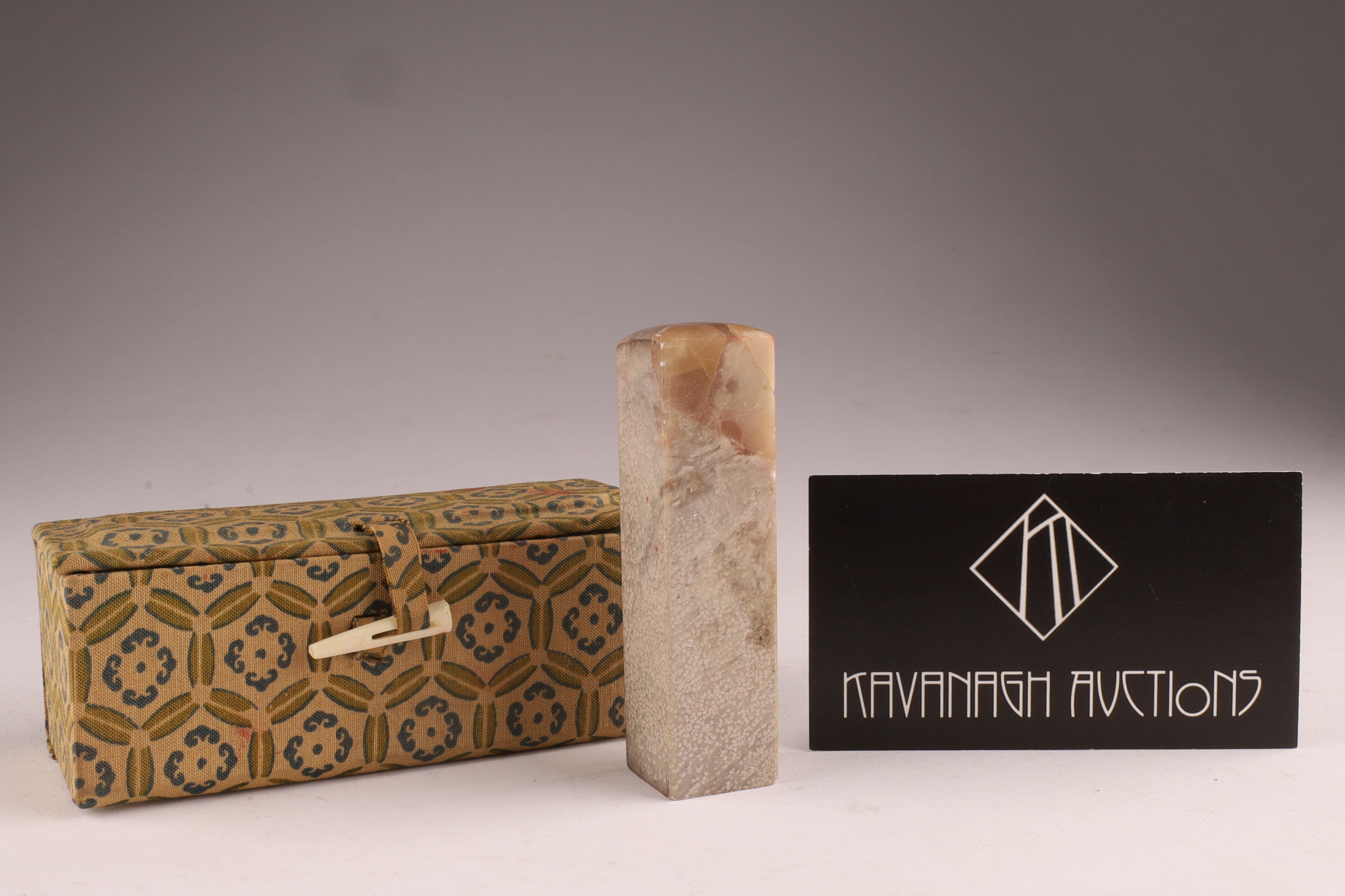 Chinese Soapstone Seal in Brocade Box