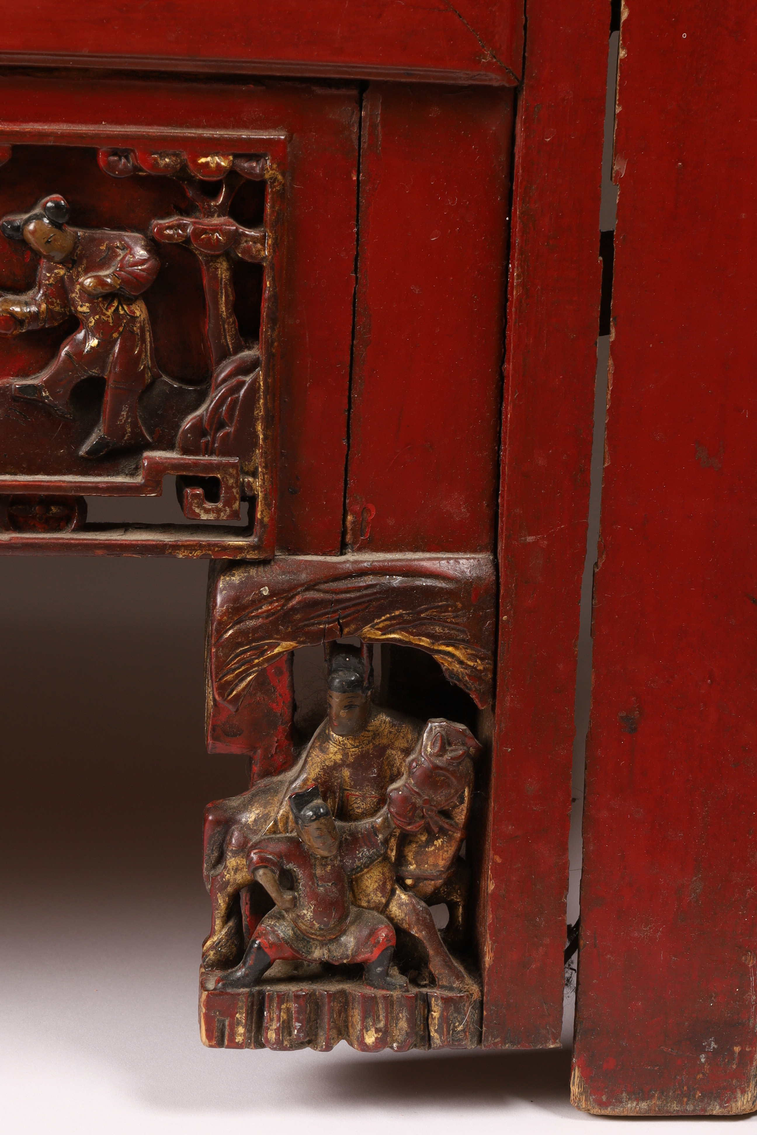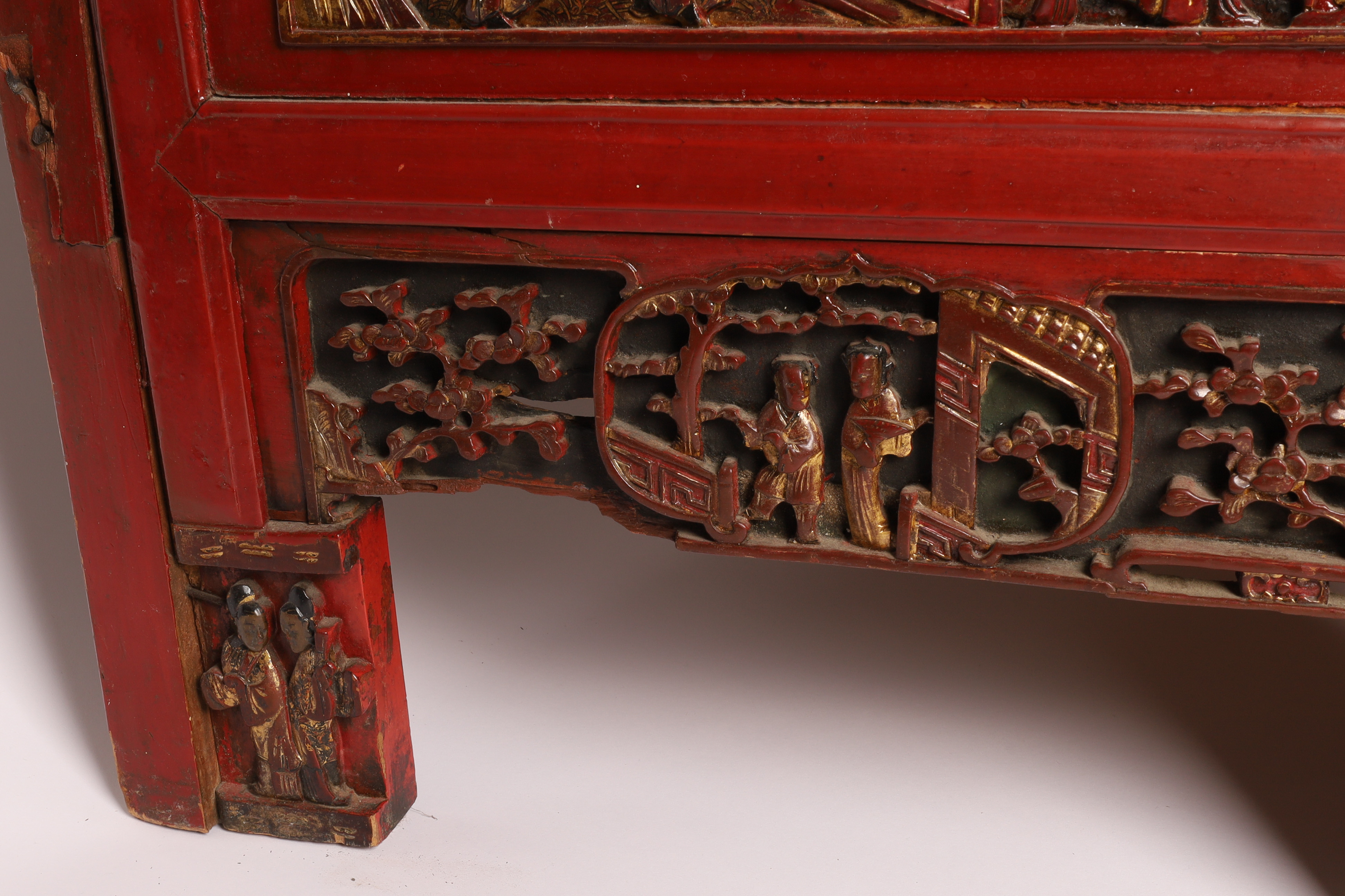 Chinese Red-Lacquer Carved Wedding / Temple Cabinet, Qing Dynasty to Republic Period, late 19th-early 20th century.