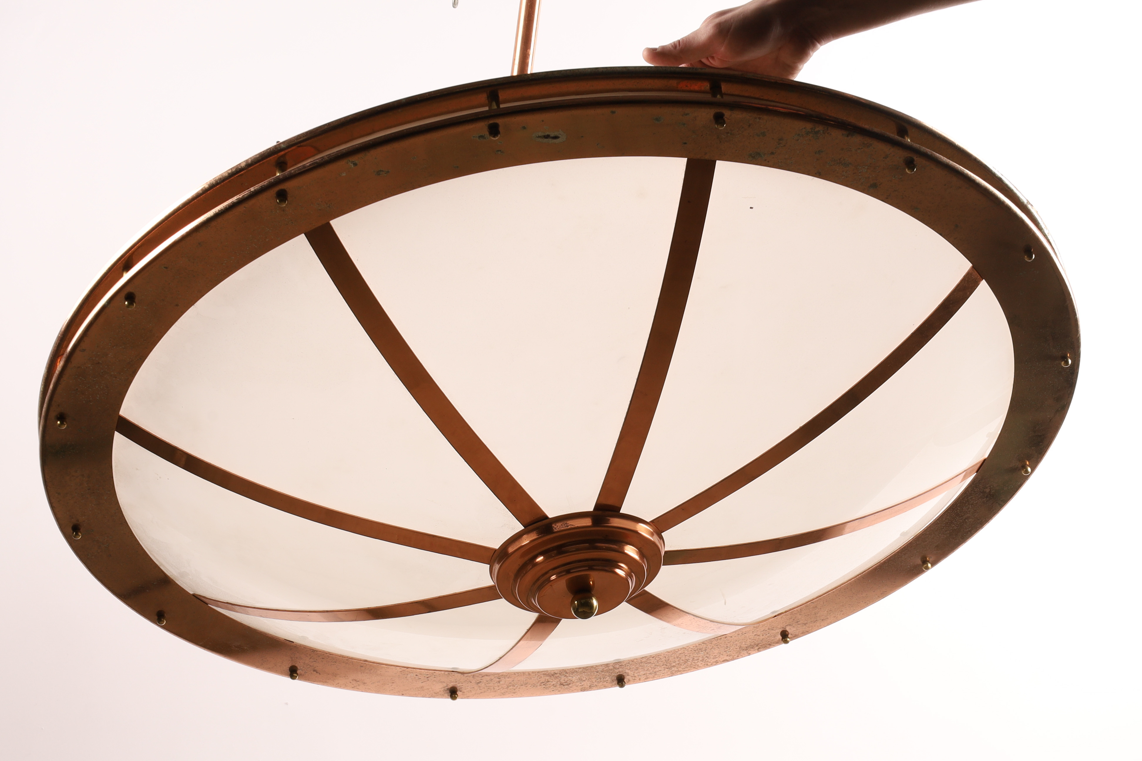 Large Art Deco Style Copper Ceiling Light Fixture Chandelier with Frosted Shade