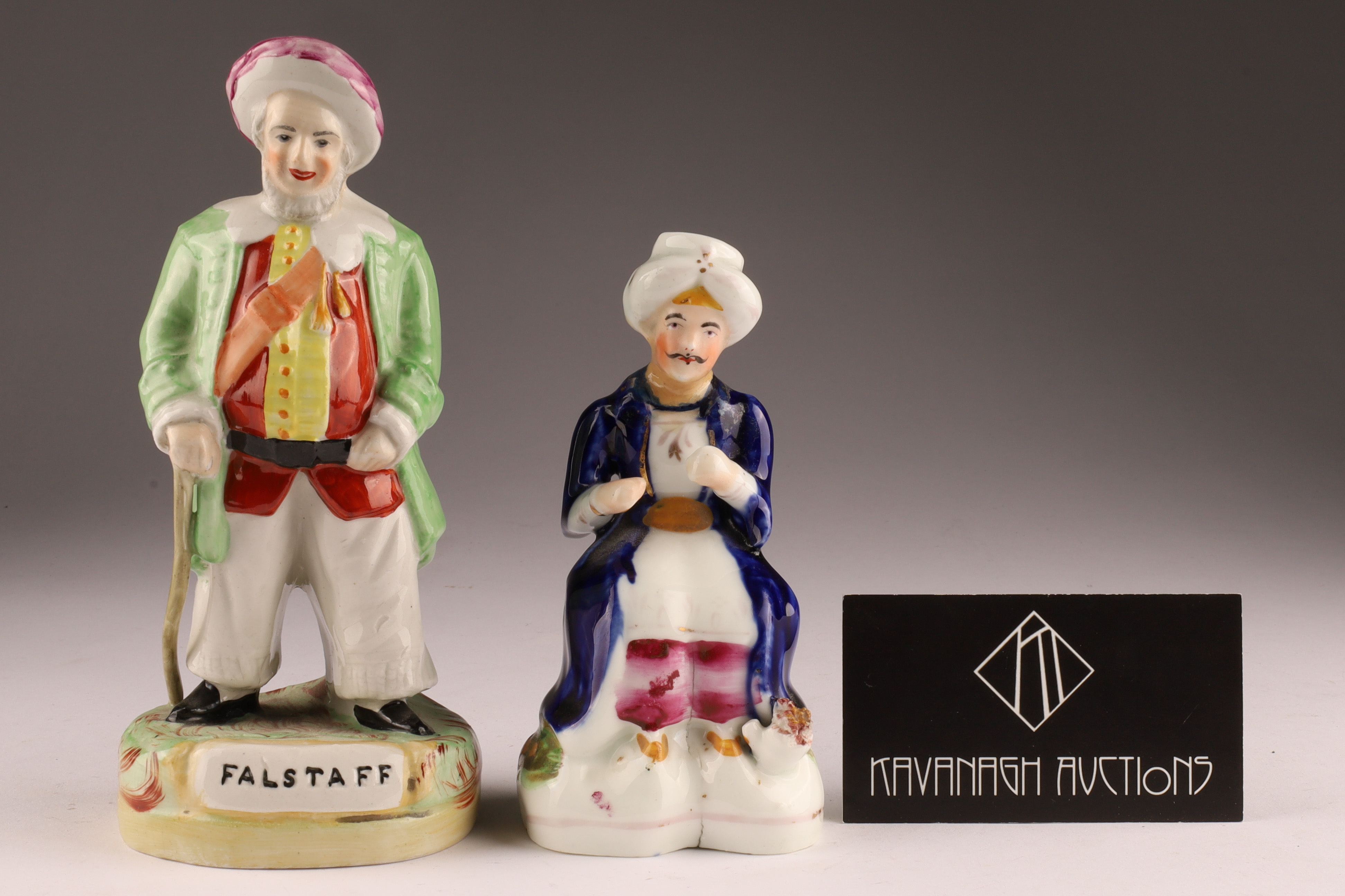 Lot of Two Victorian Staffordshire Male Figurines, John Falstaff, Middle Eastern Man