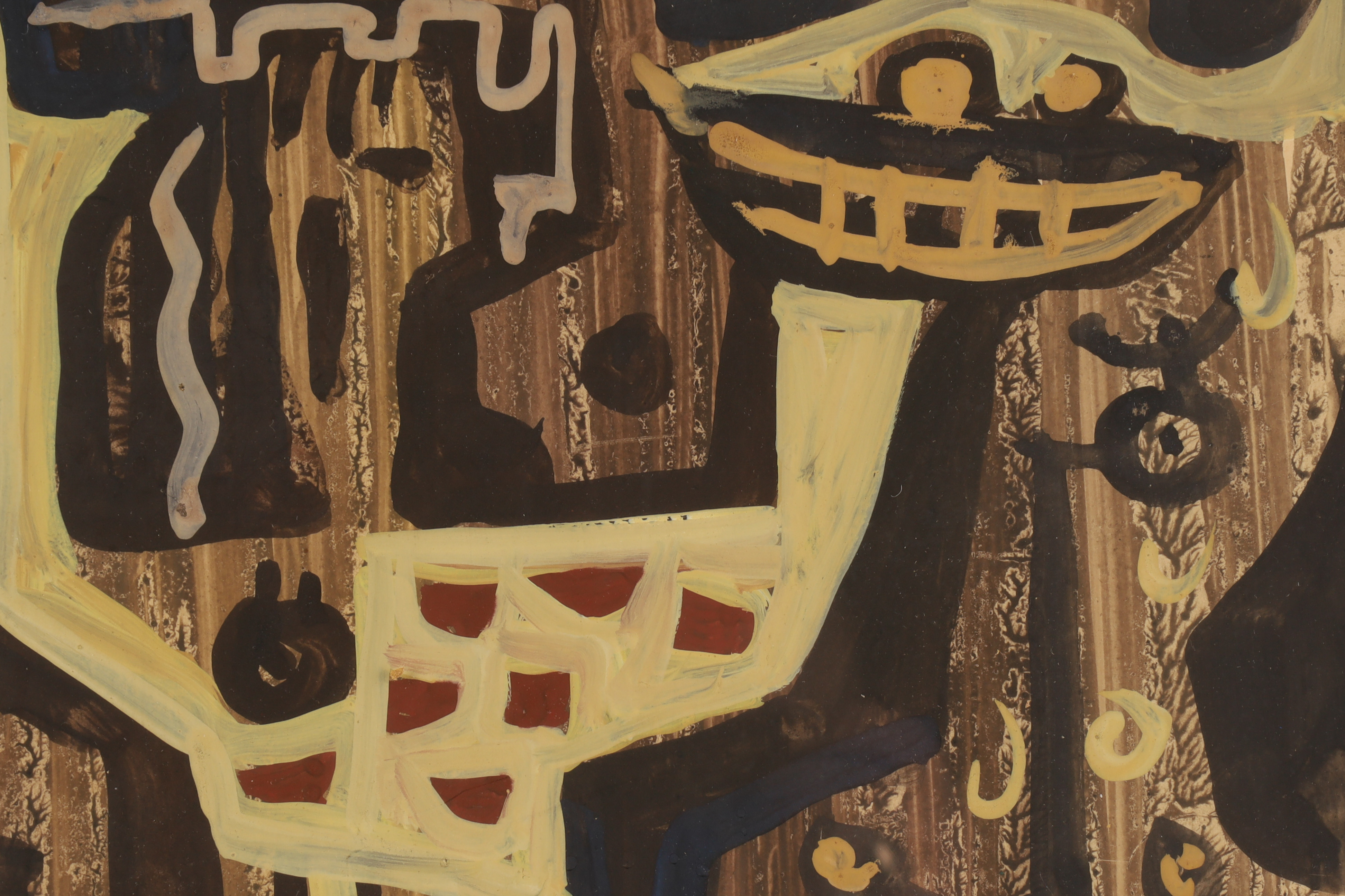 Mid Century Abstract Expressionist Mixed Media on Paper Signed